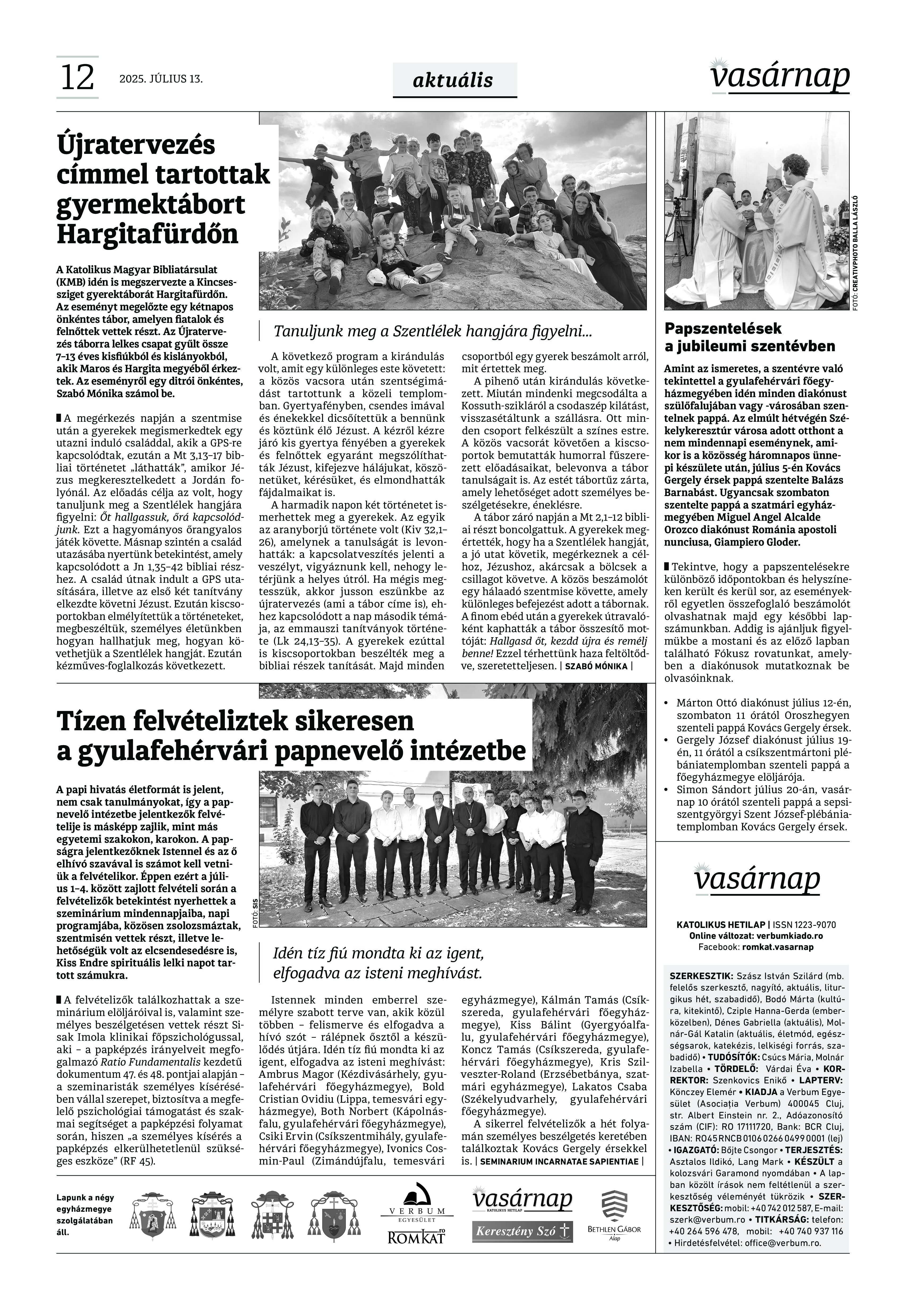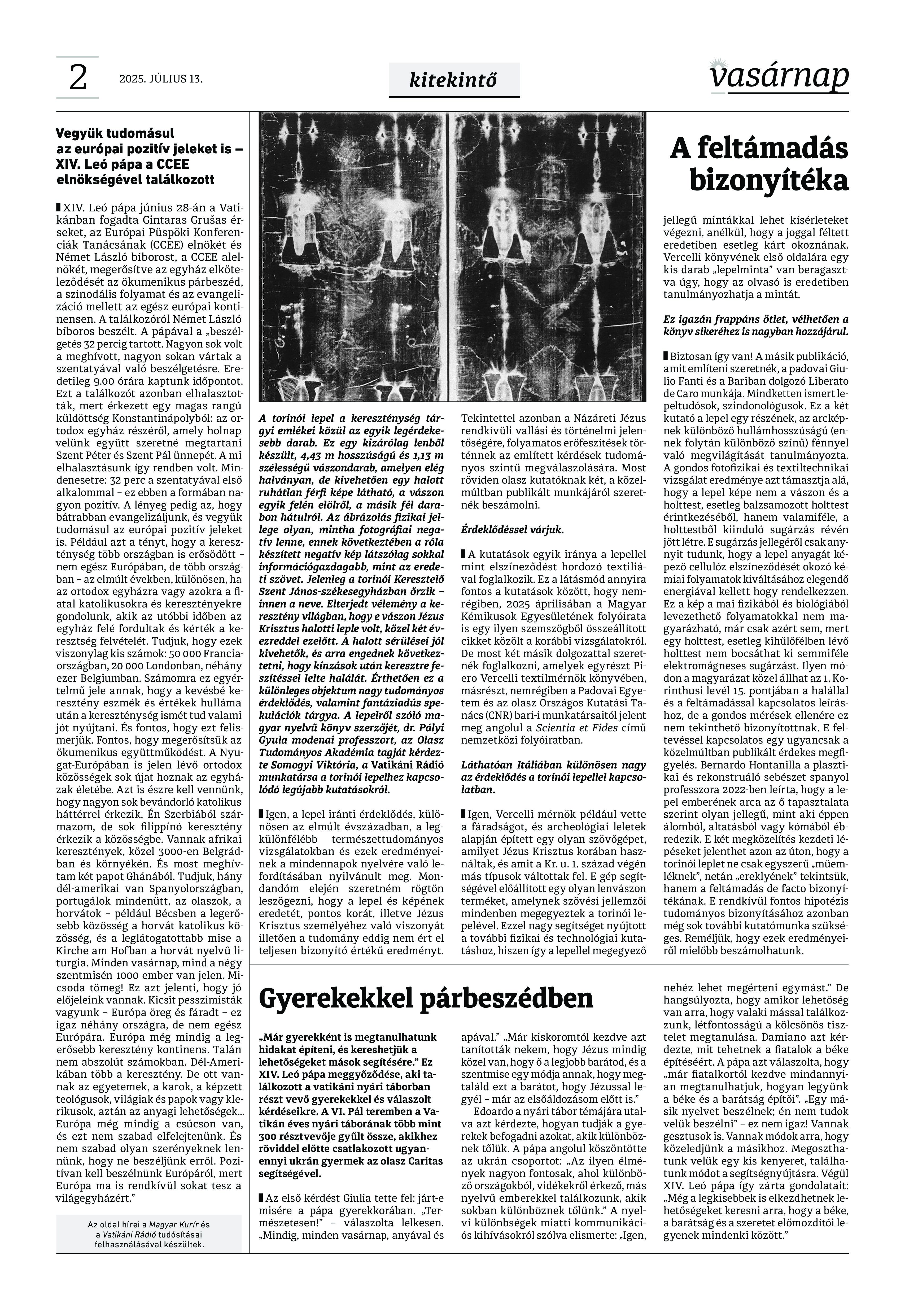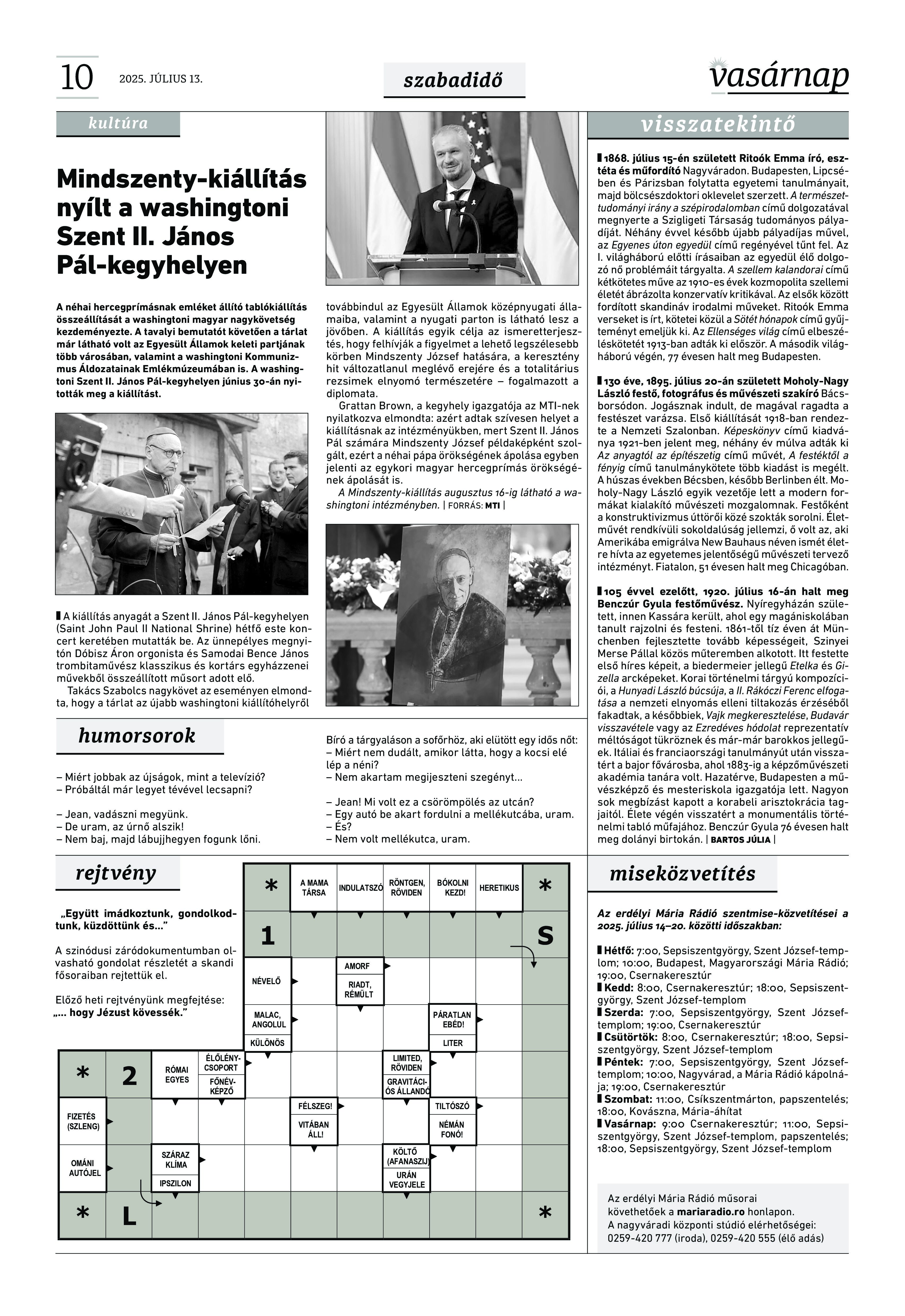 A Vasárnap Katolikus Hetilap 2025. július 13. / XXXV évf. / 28. számának digitális változata.