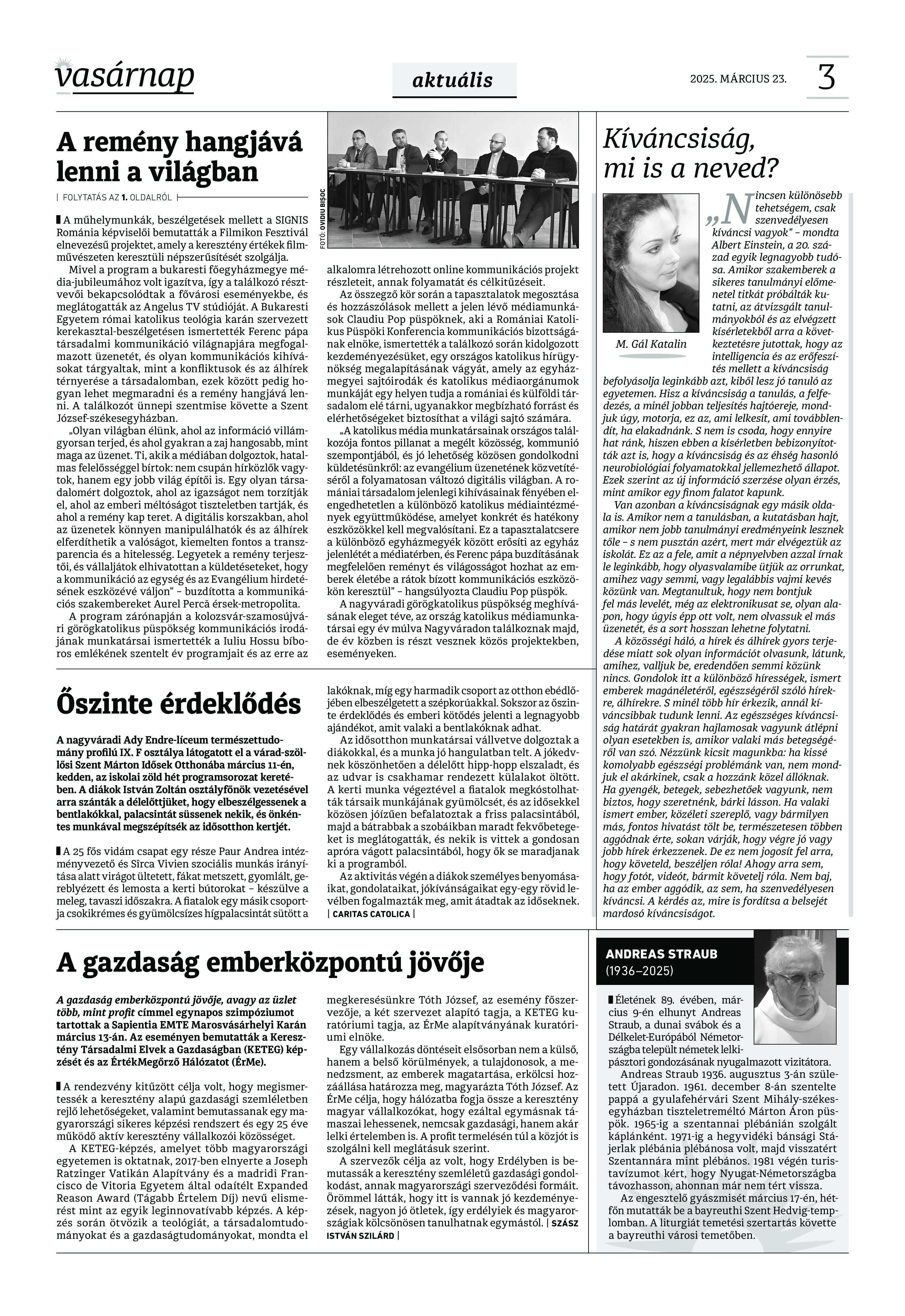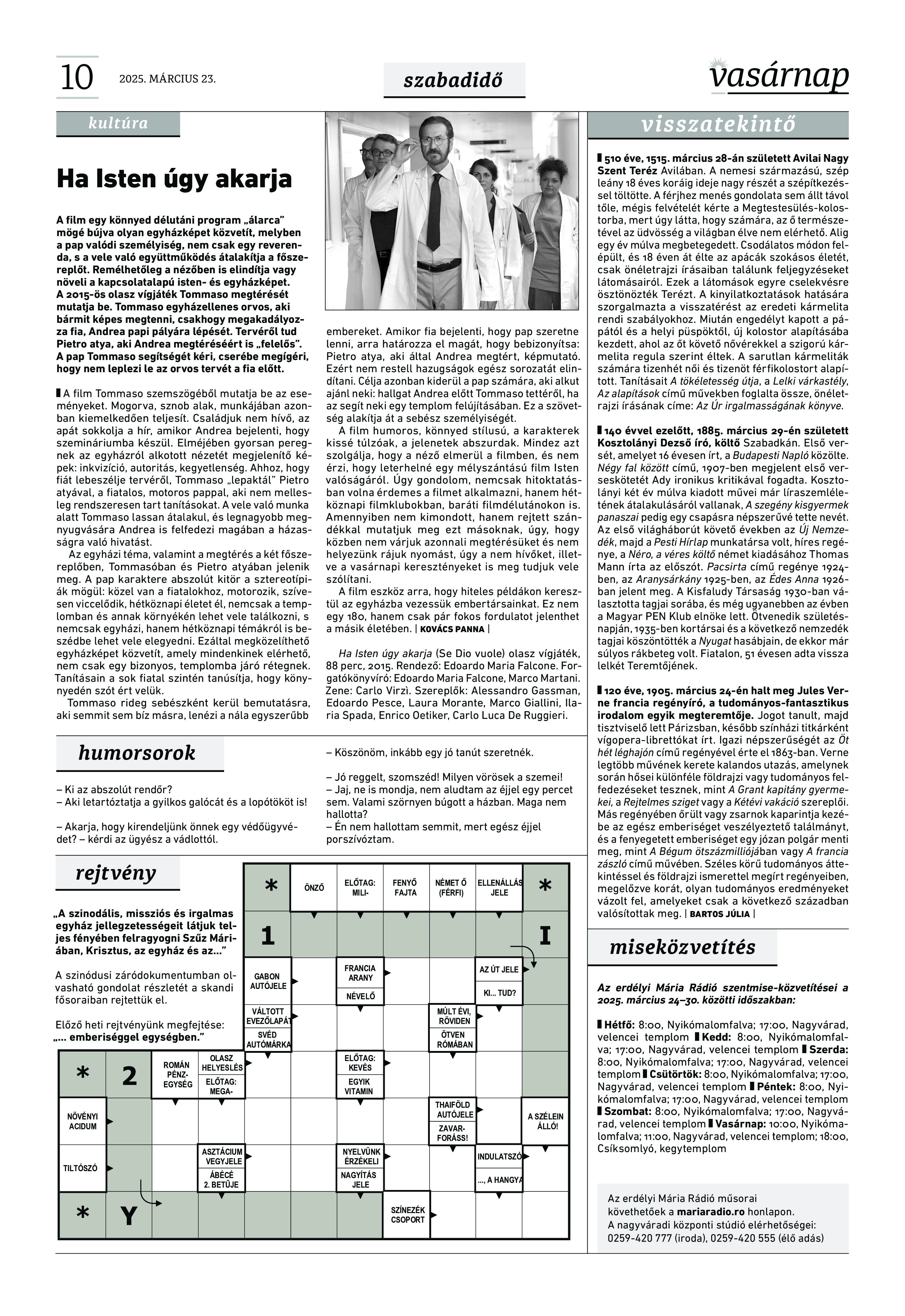 VASÁRNAP - 2025. március 23. A Vasárnap Katolikus Hetilap 2025. március 23. / XXXV évf. / 12. számának digitális változata. 1 / 12 2 & 3 / 12 4 & 5 / 12 6 & 7 / 12 8 & 9 / 12 10 & 11 / 12 12 / 12