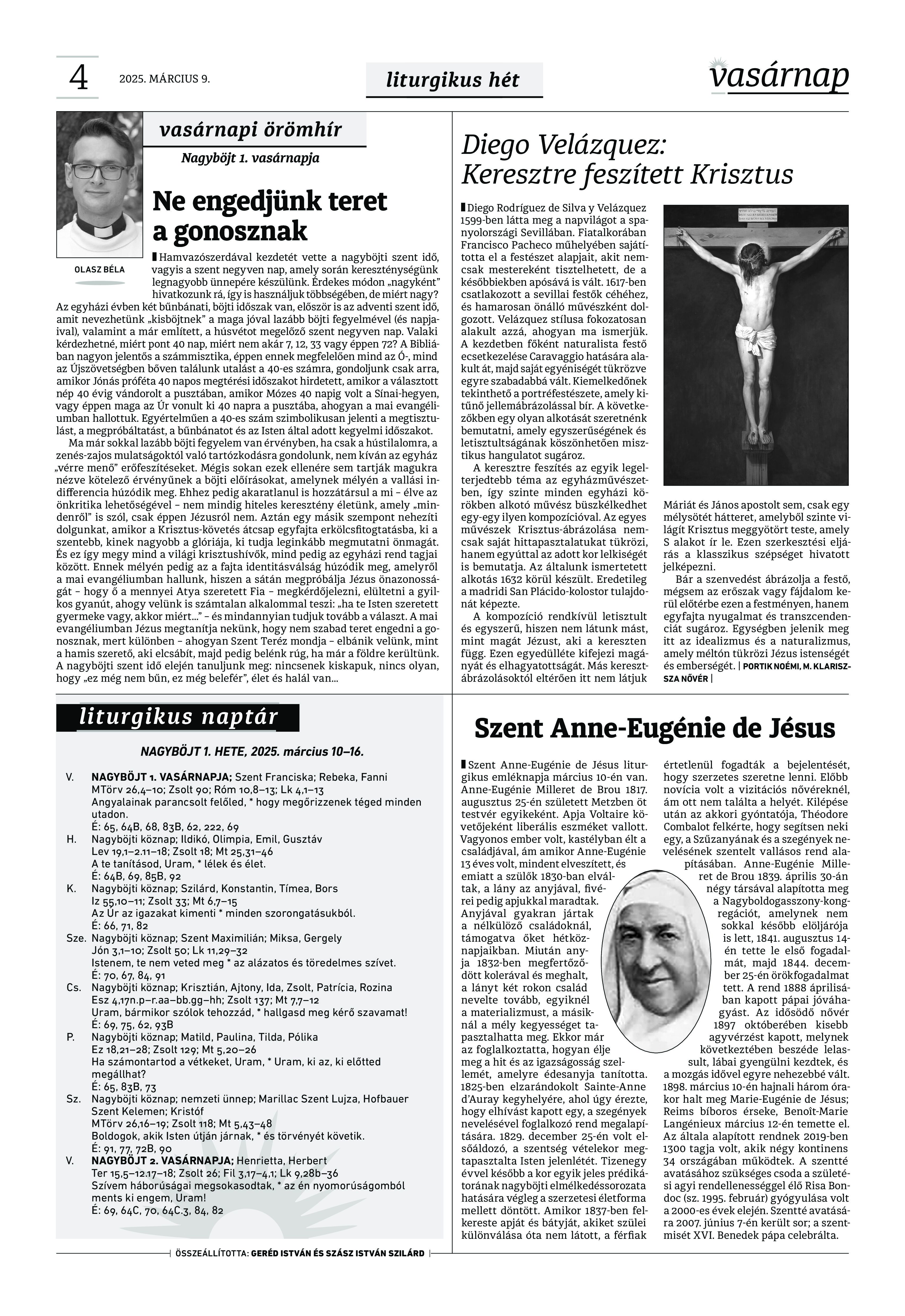 VASÁRNAP - 2025. március 9. A Vasárnap Katolikus Hetilap 2025. március 9. / XXXV évf. / 10. számának digitális változata. 1 / 12 2 & 3 / 12 4 & 5 / 12 6 & 7 / 12 8 & 9 / 12 10 & 11 / 12 12 / 12