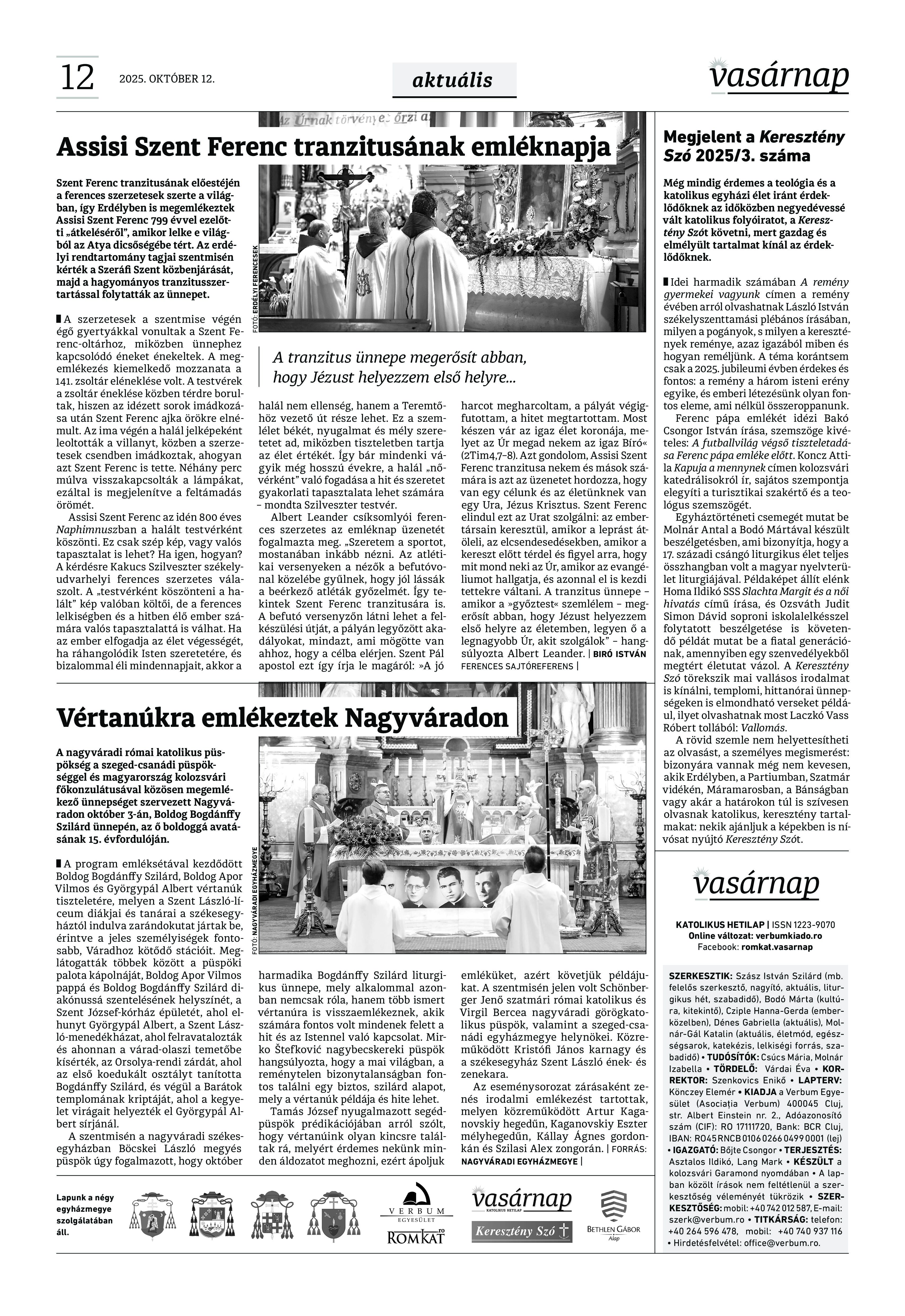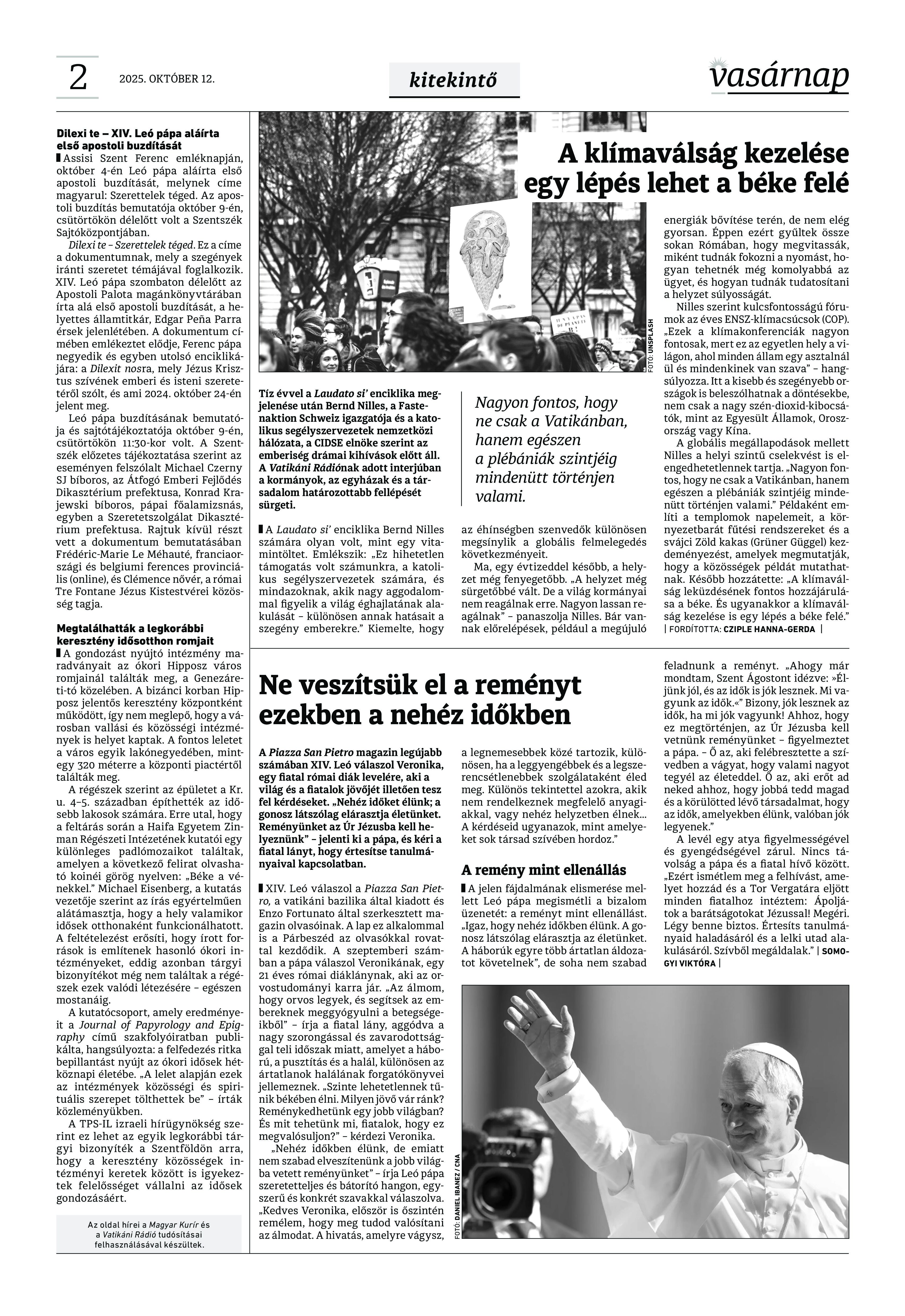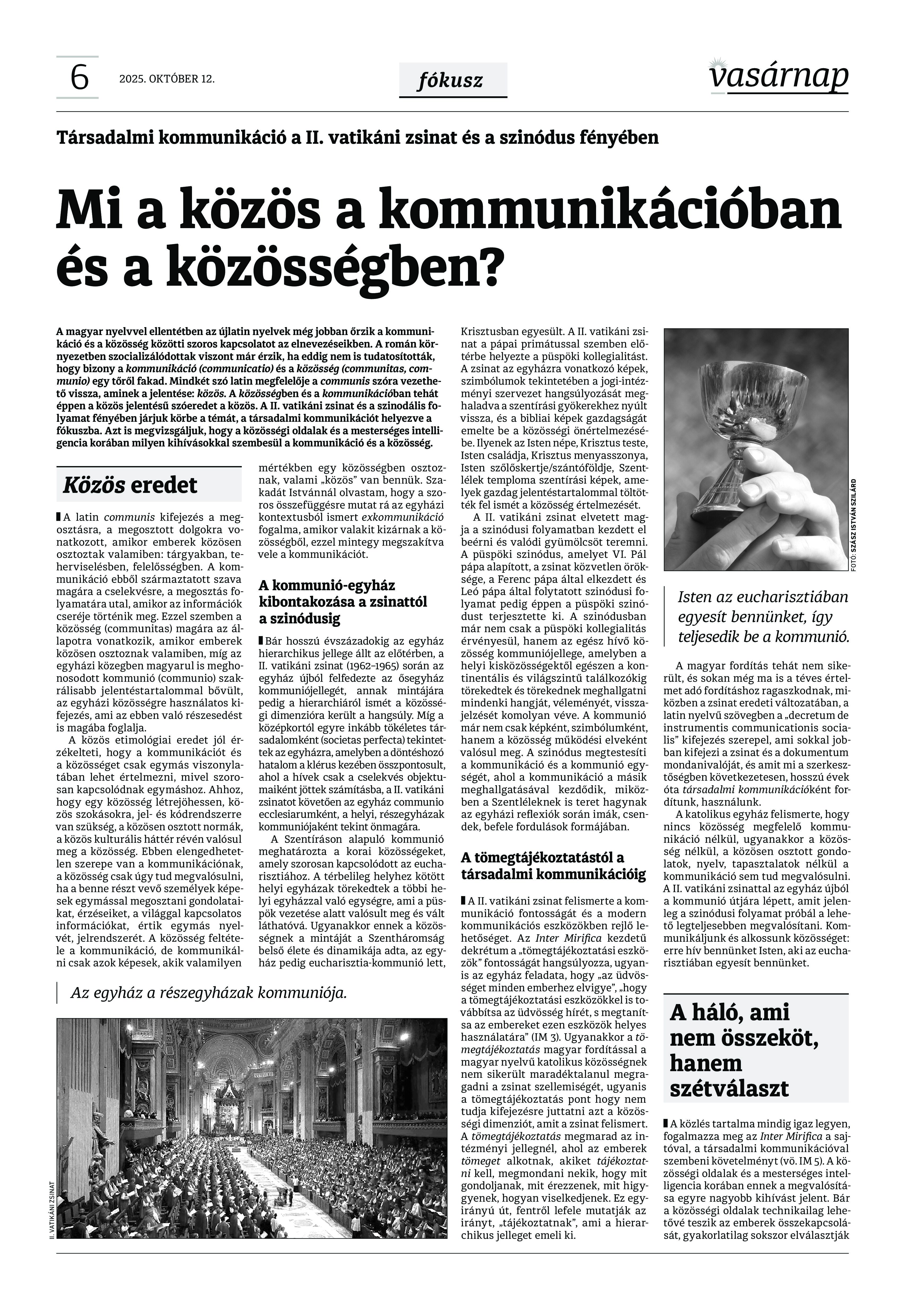 VASÁRNAP - 2025. október 12. A Vasárnap Katolikus Hetilap 2025. október 12.. / XXXV évf. / 41. számának digitális változata. 1 / 12 2 & 3 / 12 4 & 5 / 12 6 & 7 / 12 8 & 9 / 12 10 & 11 / 12 12 / 12