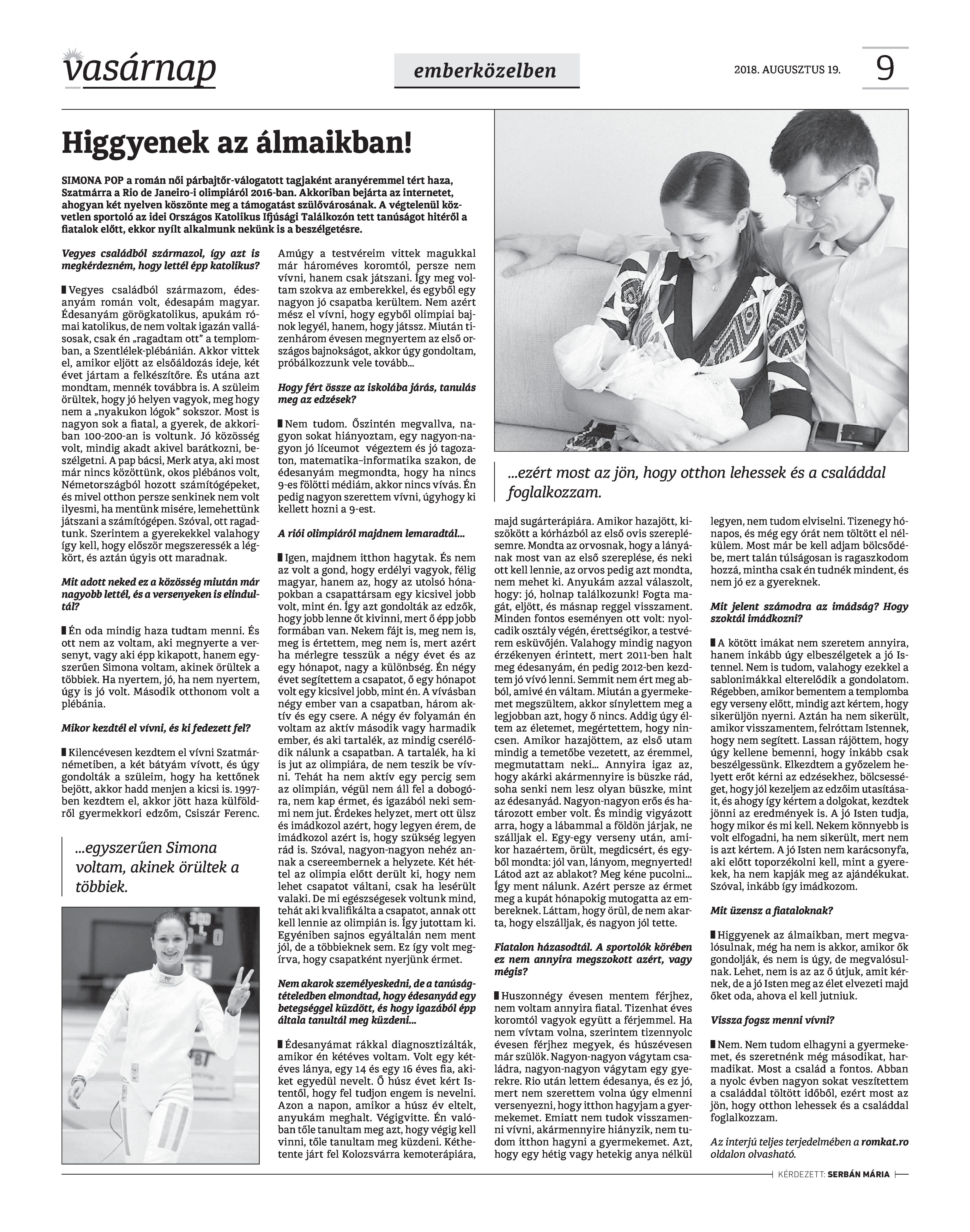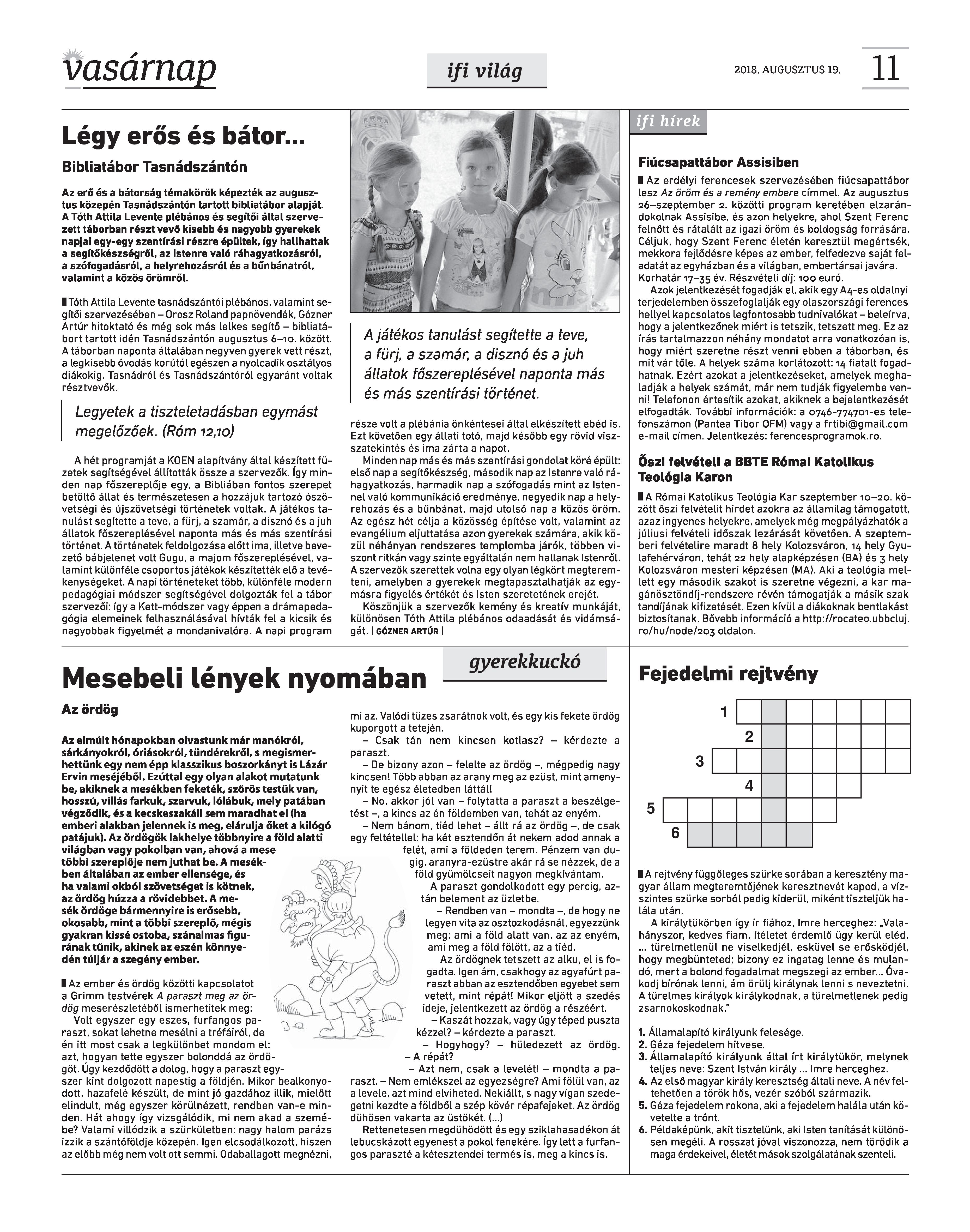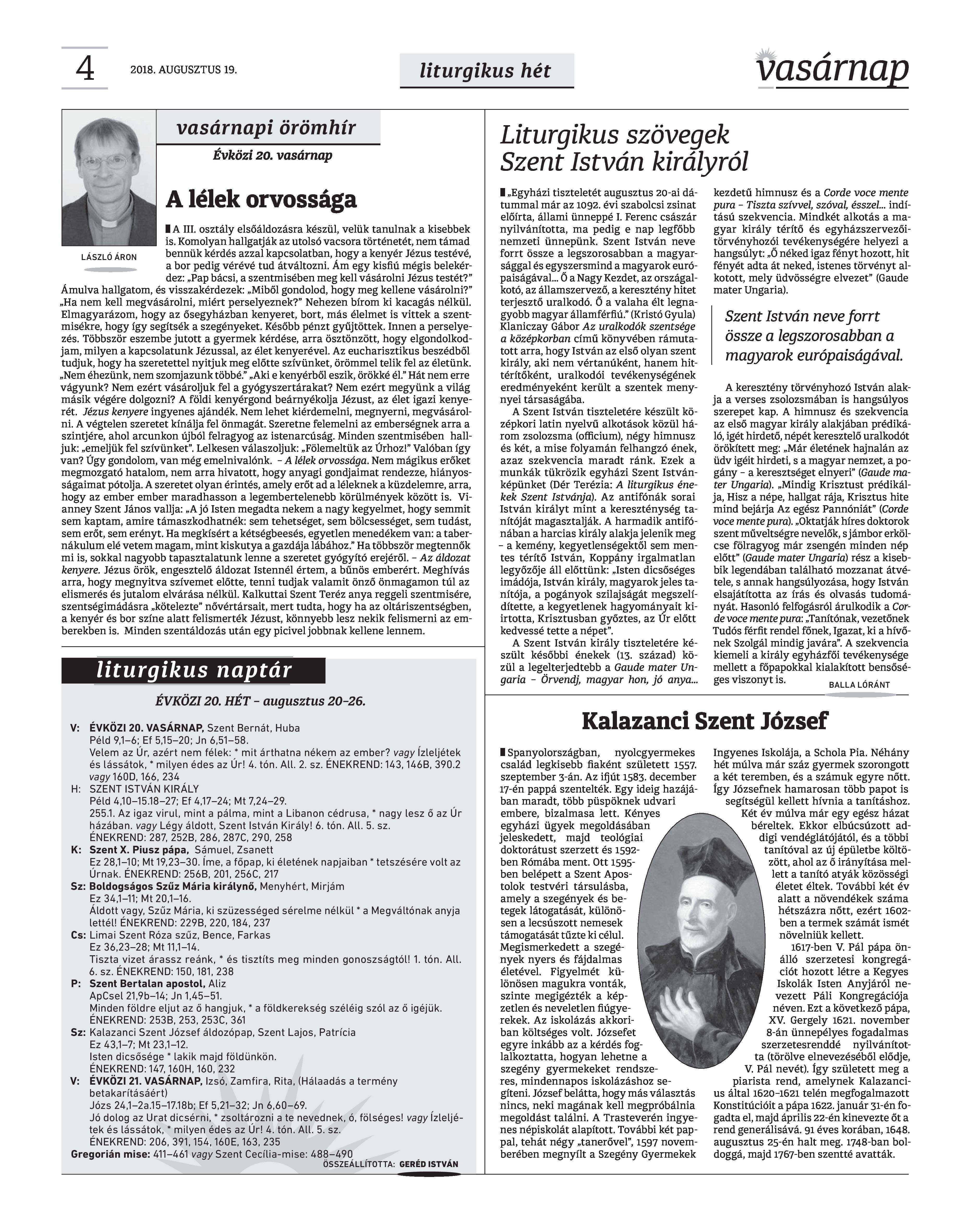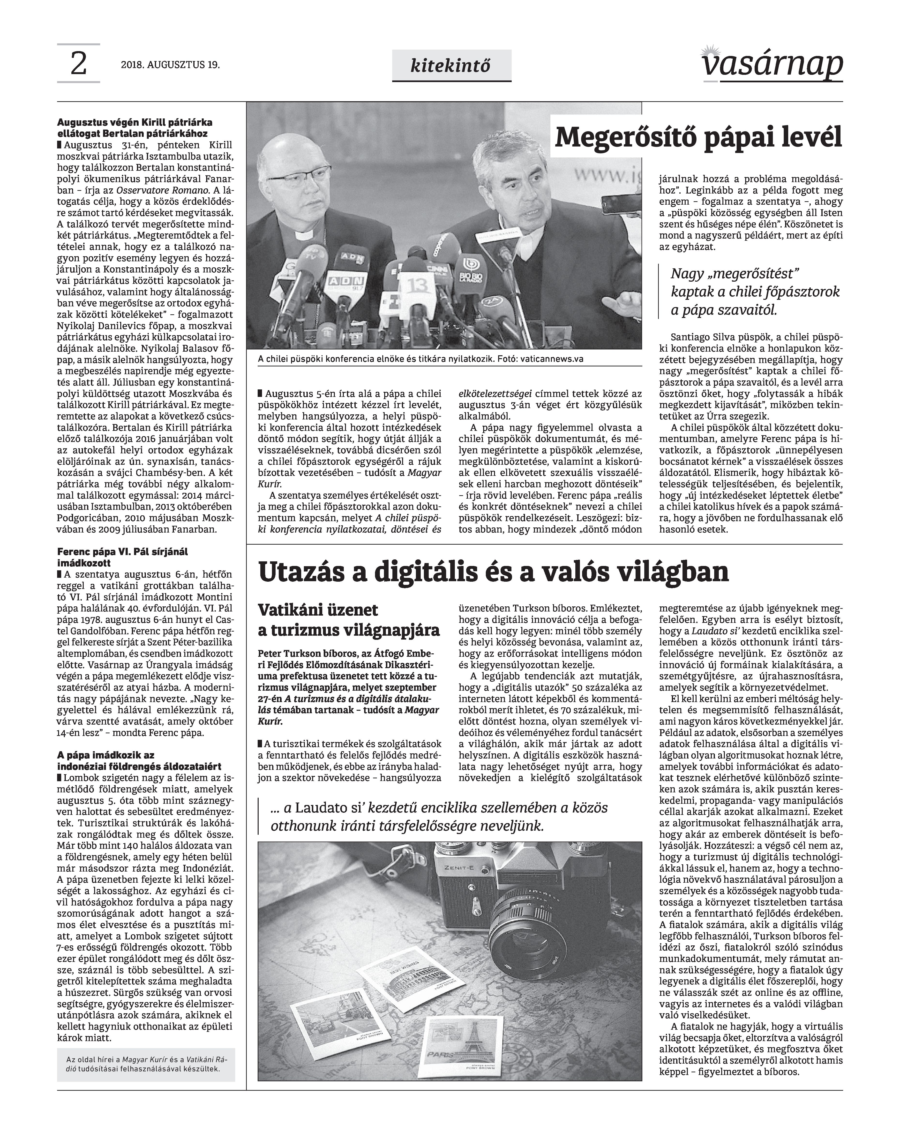 VASÁRNAP - 2018. AUGUSZTUS 19. A Vasárnap Katolikus Hetilap 2018. augusztus 19. / XXVIII. évf. / 33. számának digitális változata. 1 / 12 2 & 3 / 12 4 & 5 / 12 6 & 7 / 12 8 & 9 / 12 10 & 11 / 12 12 / 12