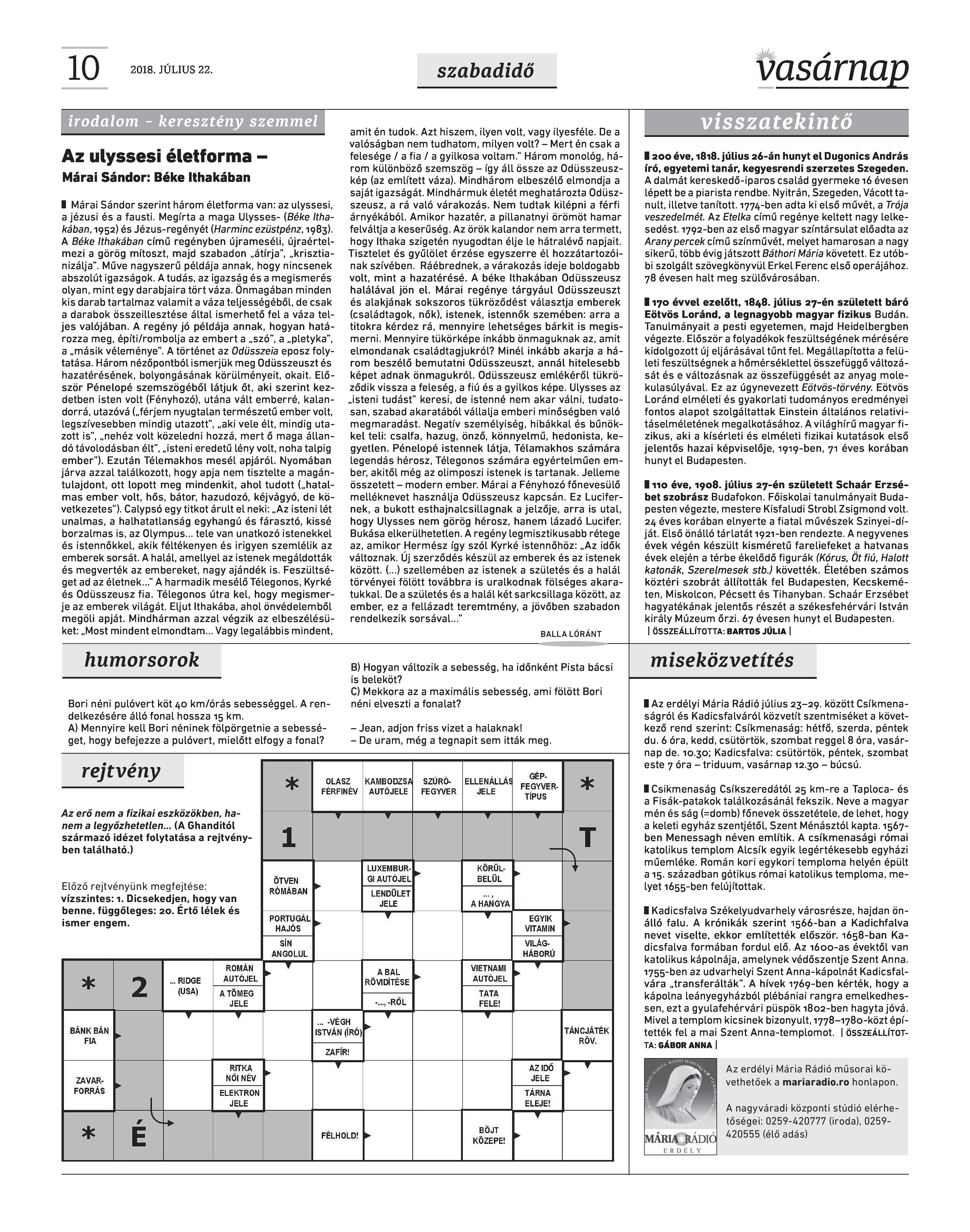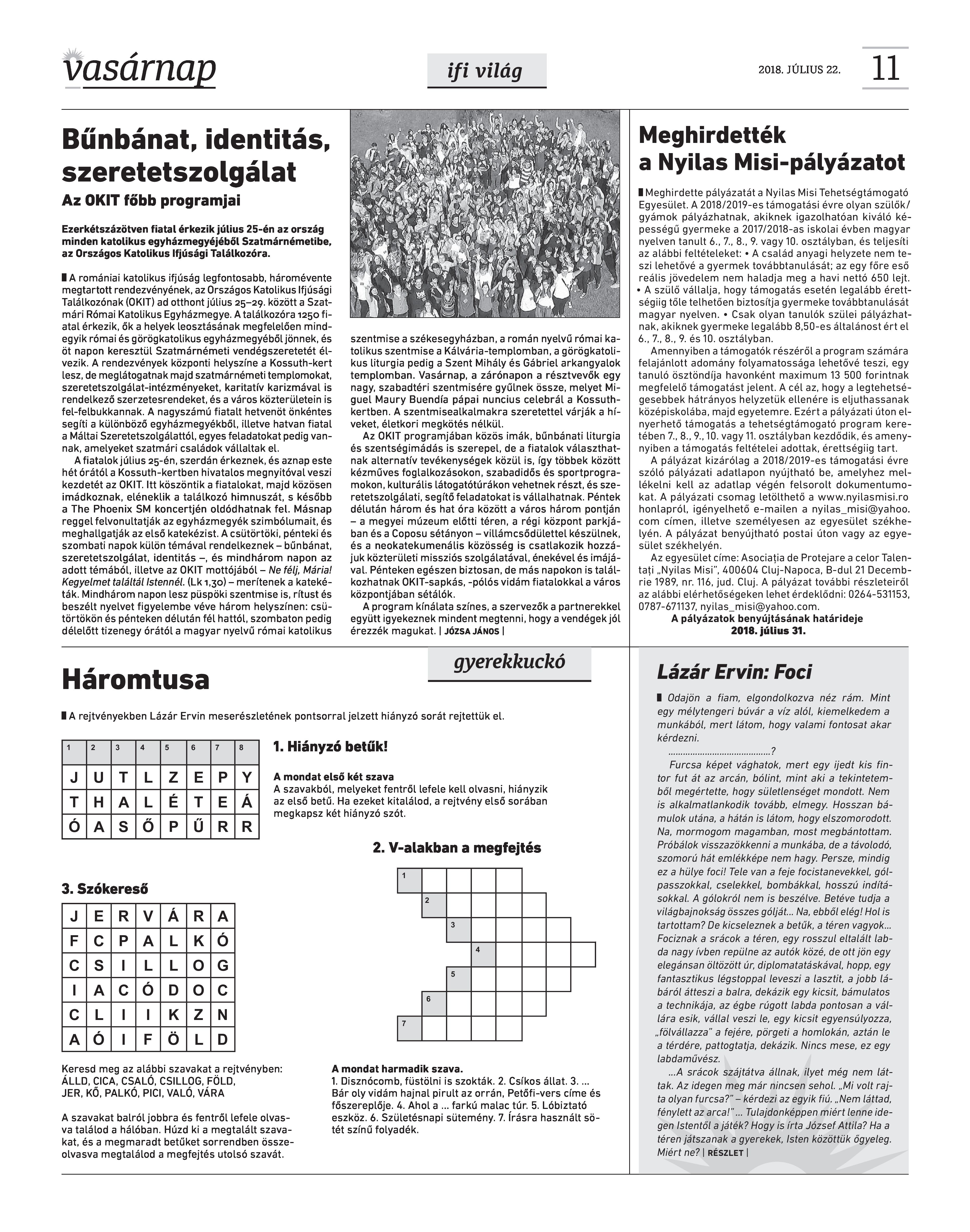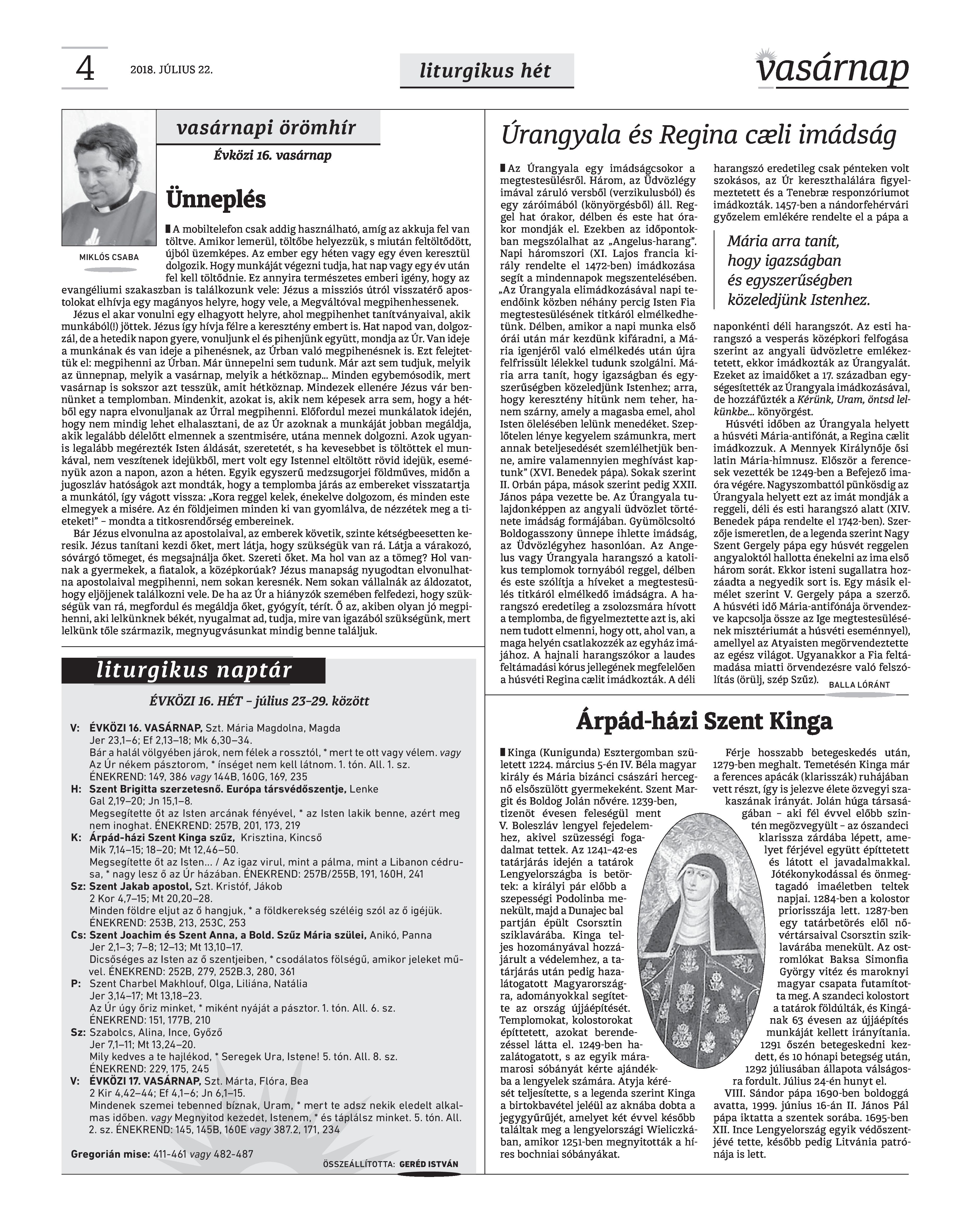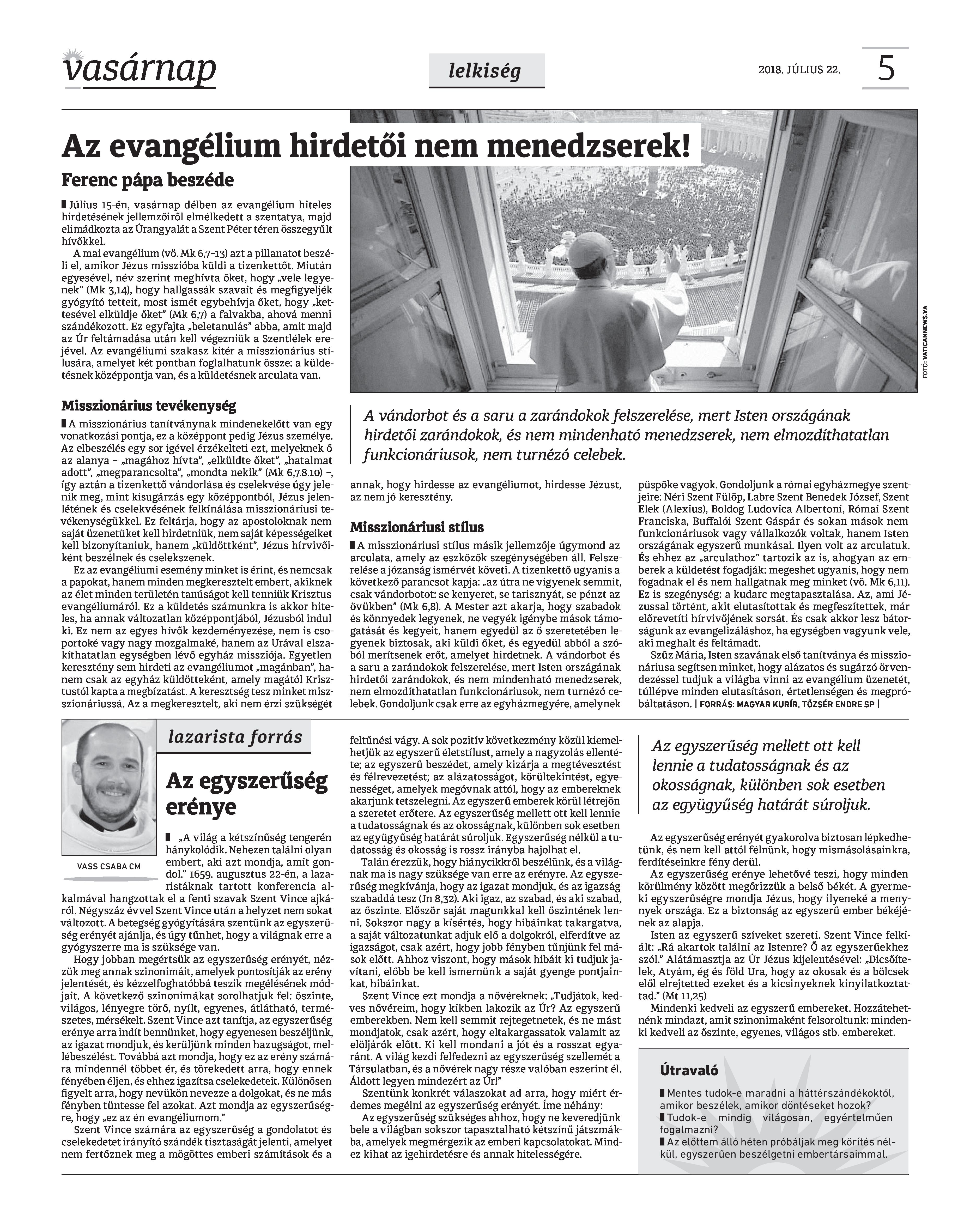 VASÁRNAP - 2018. JÚLIUS 22. A Vasárnap Katolikus Hetilap 2018. július 22. / XXVIII. évf. / 29. számának digitális változata. 1 / 12 2 & 3 / 12 4 & 5 / 12 6 & 7 / 12 8 & 9 / 12 10 & 11 / 12 12 / 12