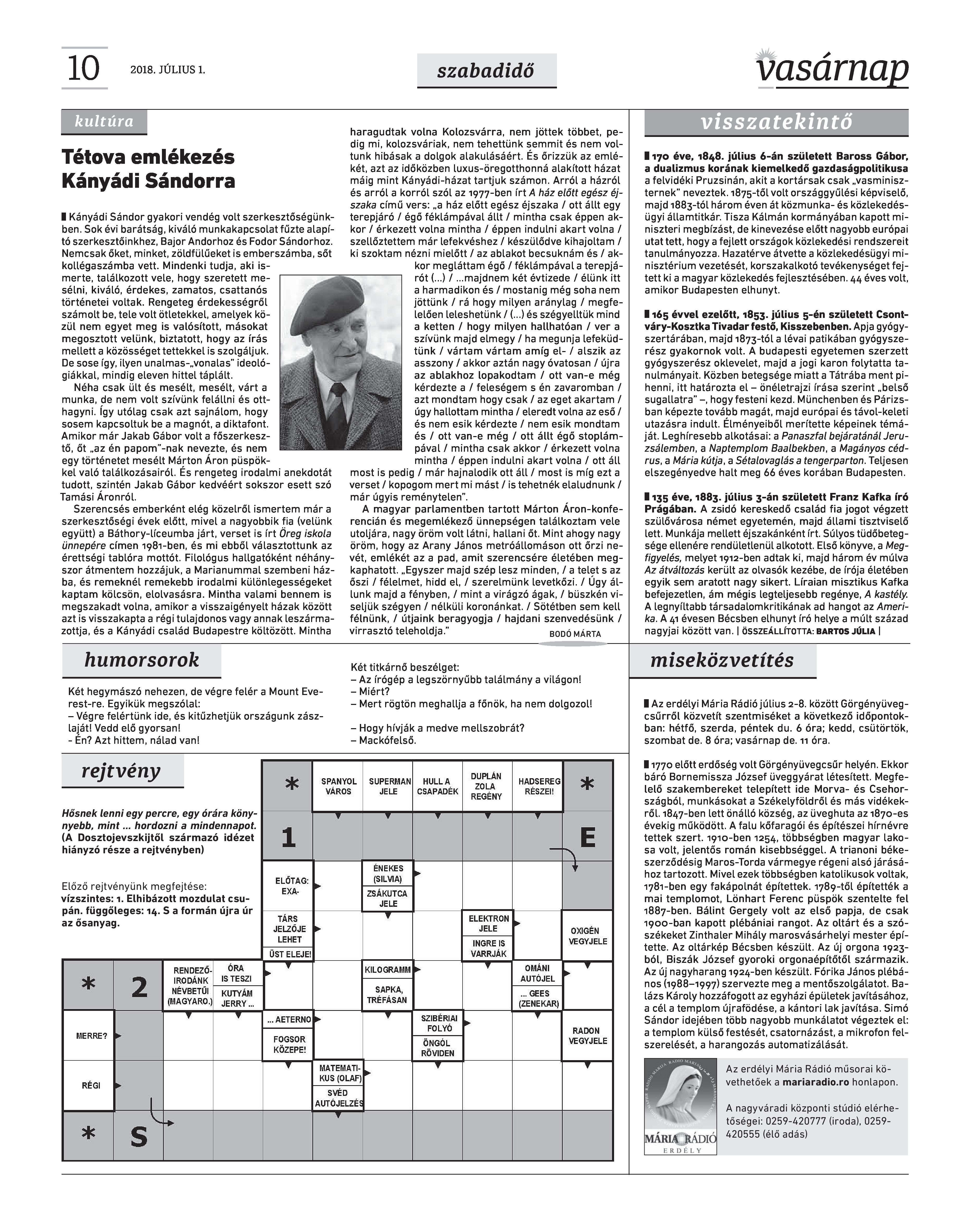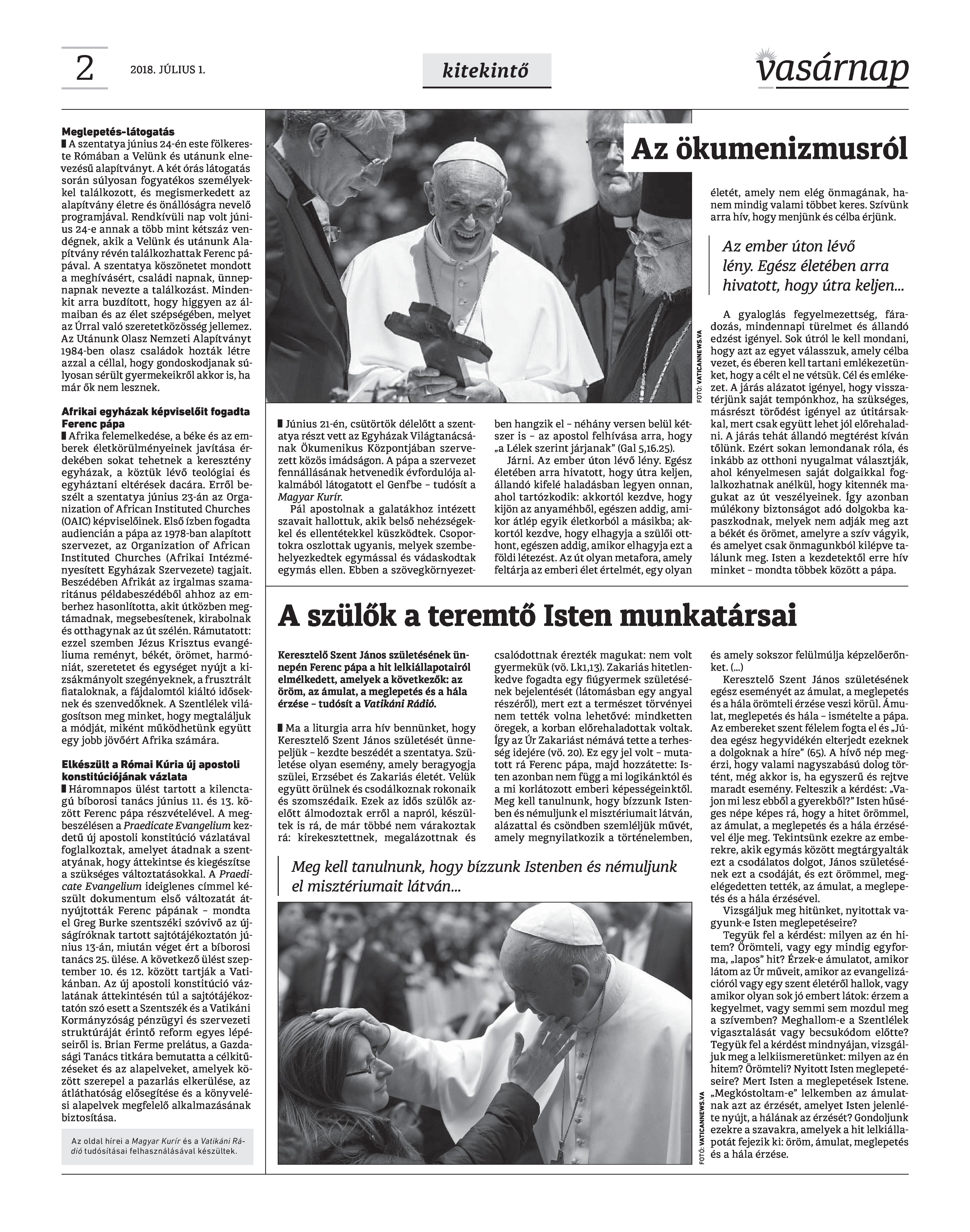 VASÁRNAP - 2018. JÚLIUS 1. A Vasárnap Katolikus Hetilap 2018. július 1. / XXVIII. évf. / 26. számának digitális változata. 1 / 12 2 & 3 / 12 4 & 5 / 12 6 & 7 / 12 8 & 9 / 12 10 & 11 / 12 12 / 12