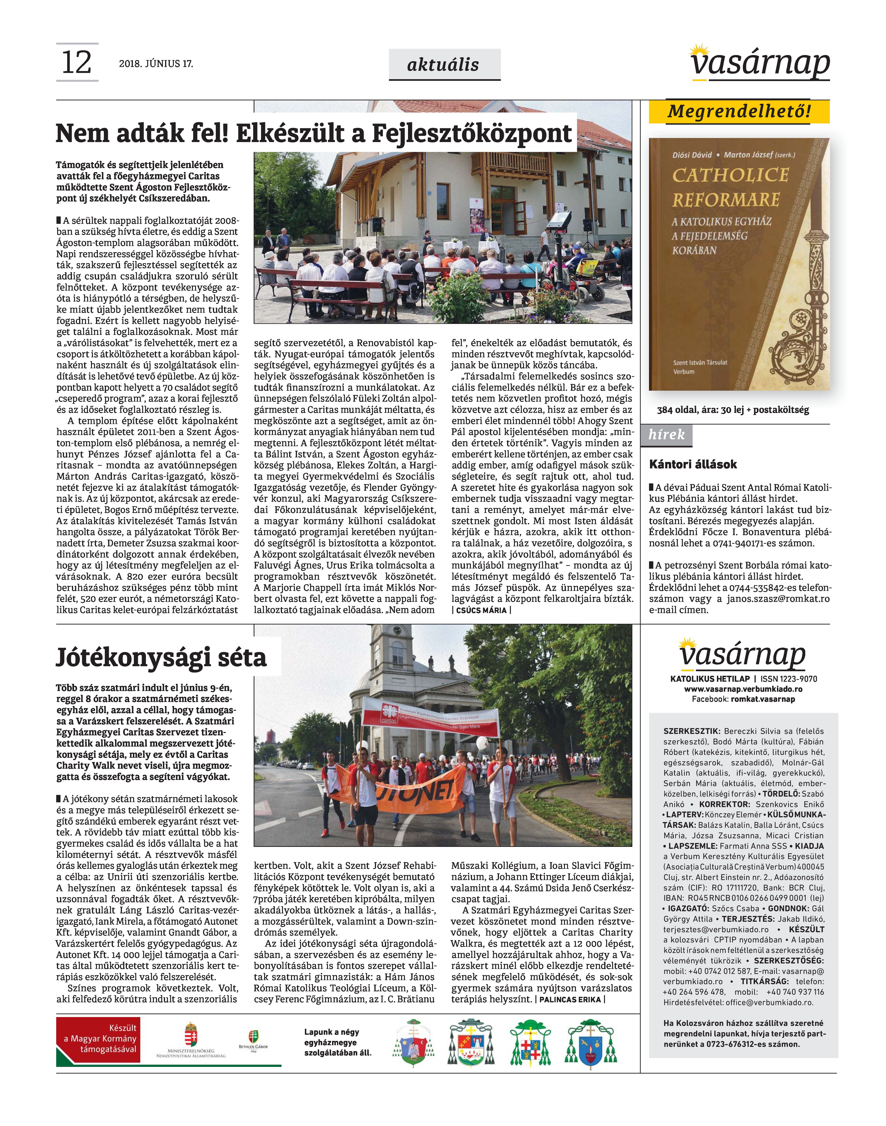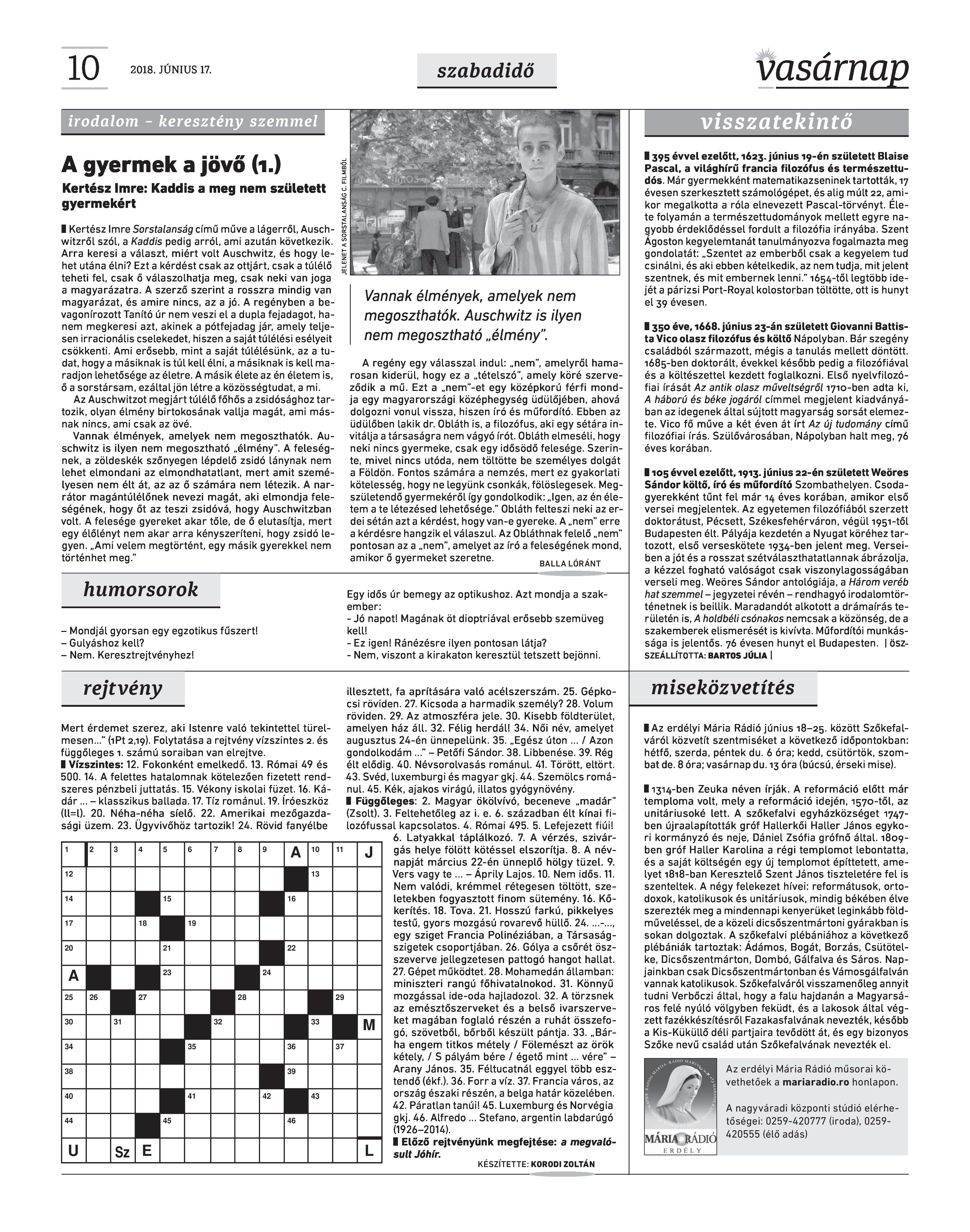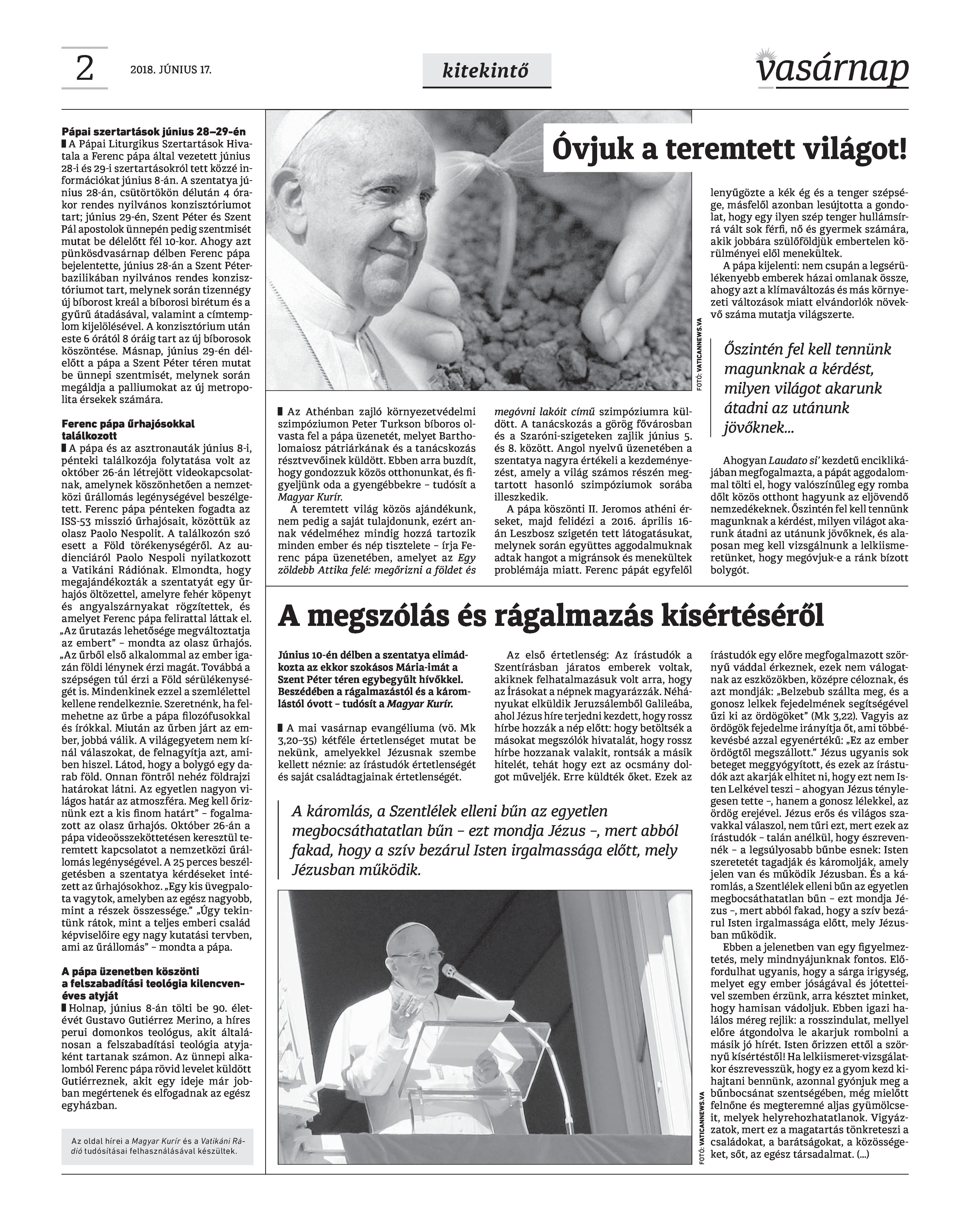 VASÁRNAP - 2018. JÚNIUS 17. A Vasárnap Katolikus Hetilap 2018. június 17. / XXVIII. évf. / 24. számának digitális változata. 1 / 12 2 & 3 / 12 4 & 5 / 12 6 & 7 / 12 8 & 9 / 12 10 & 11 / 12 12 / 12