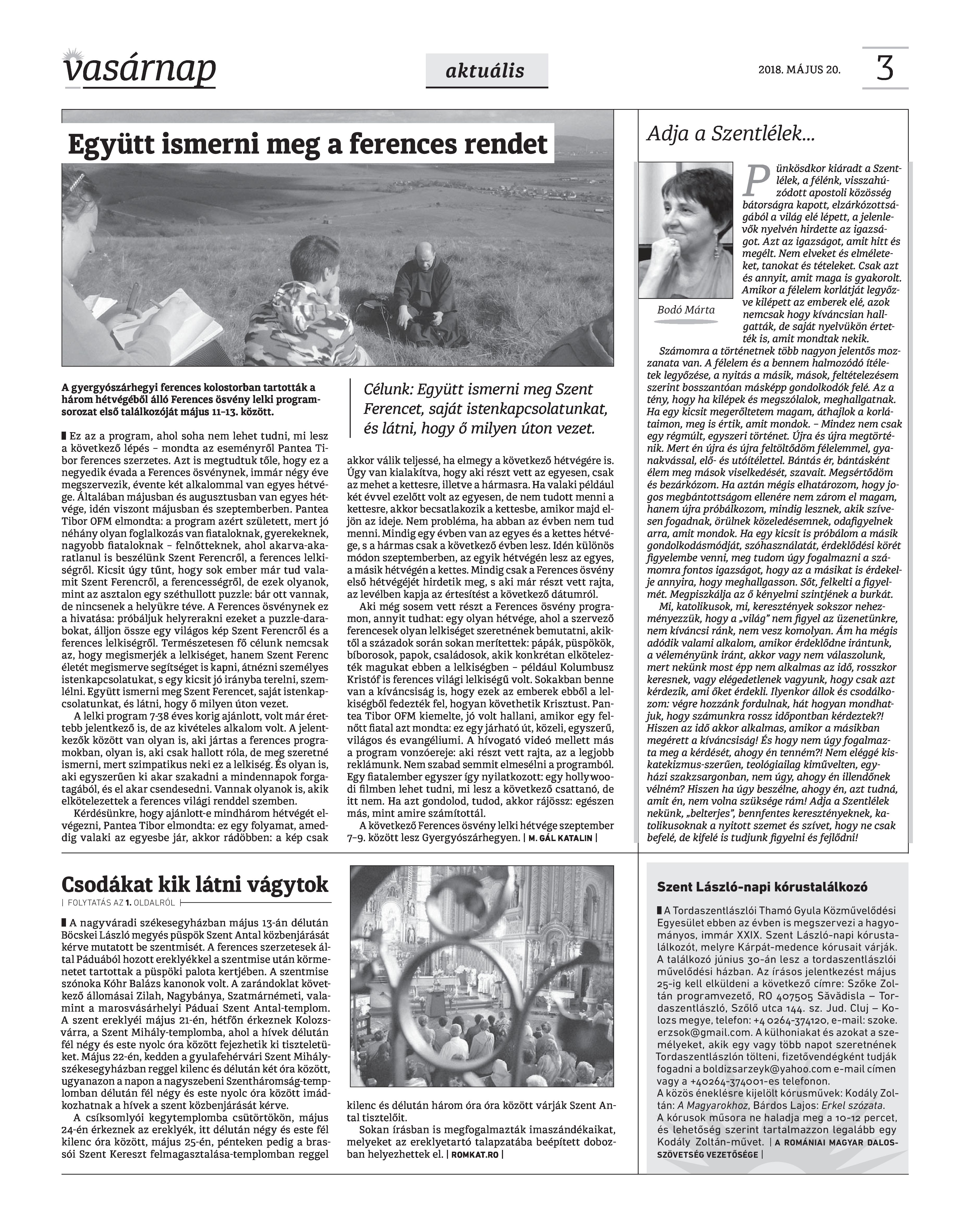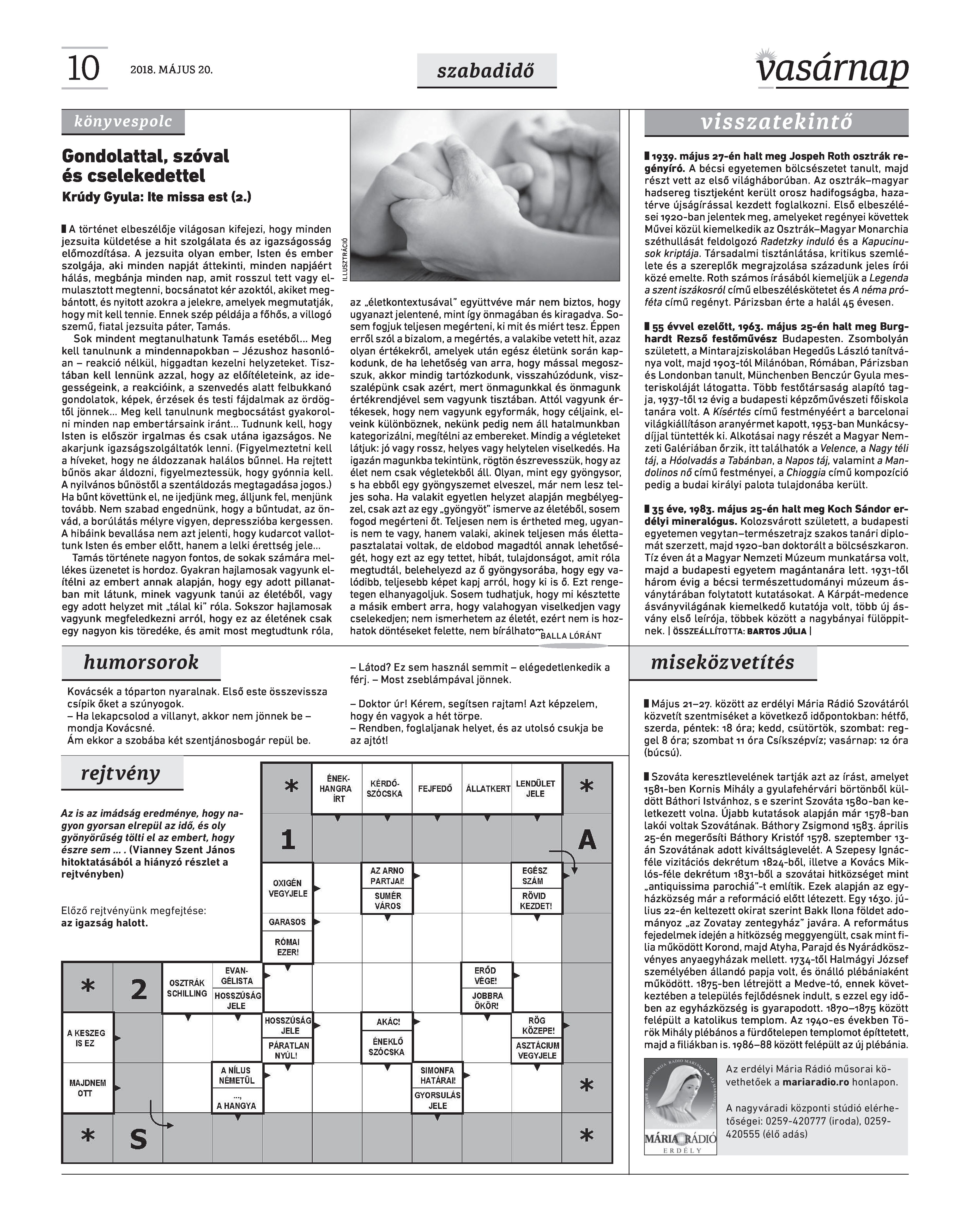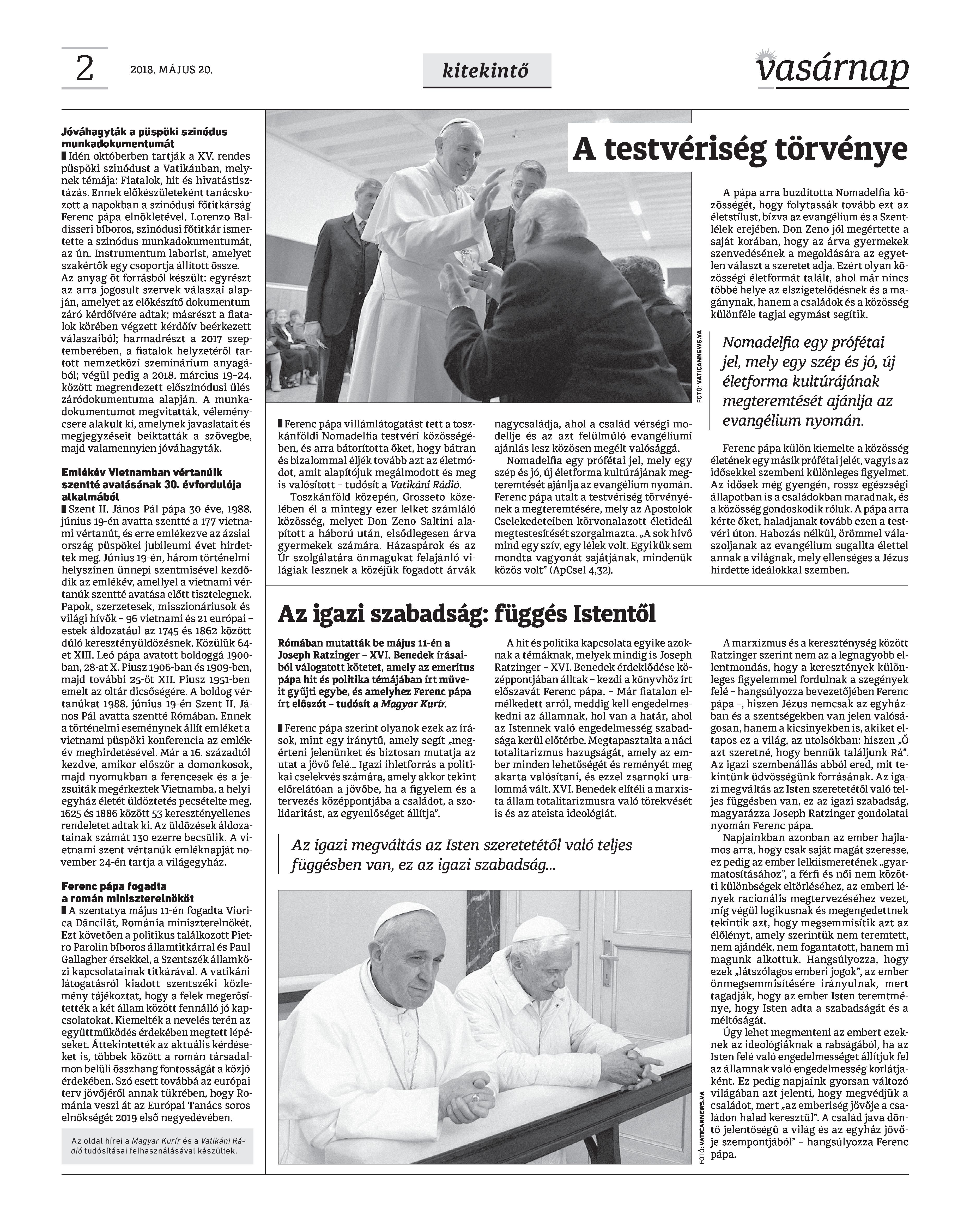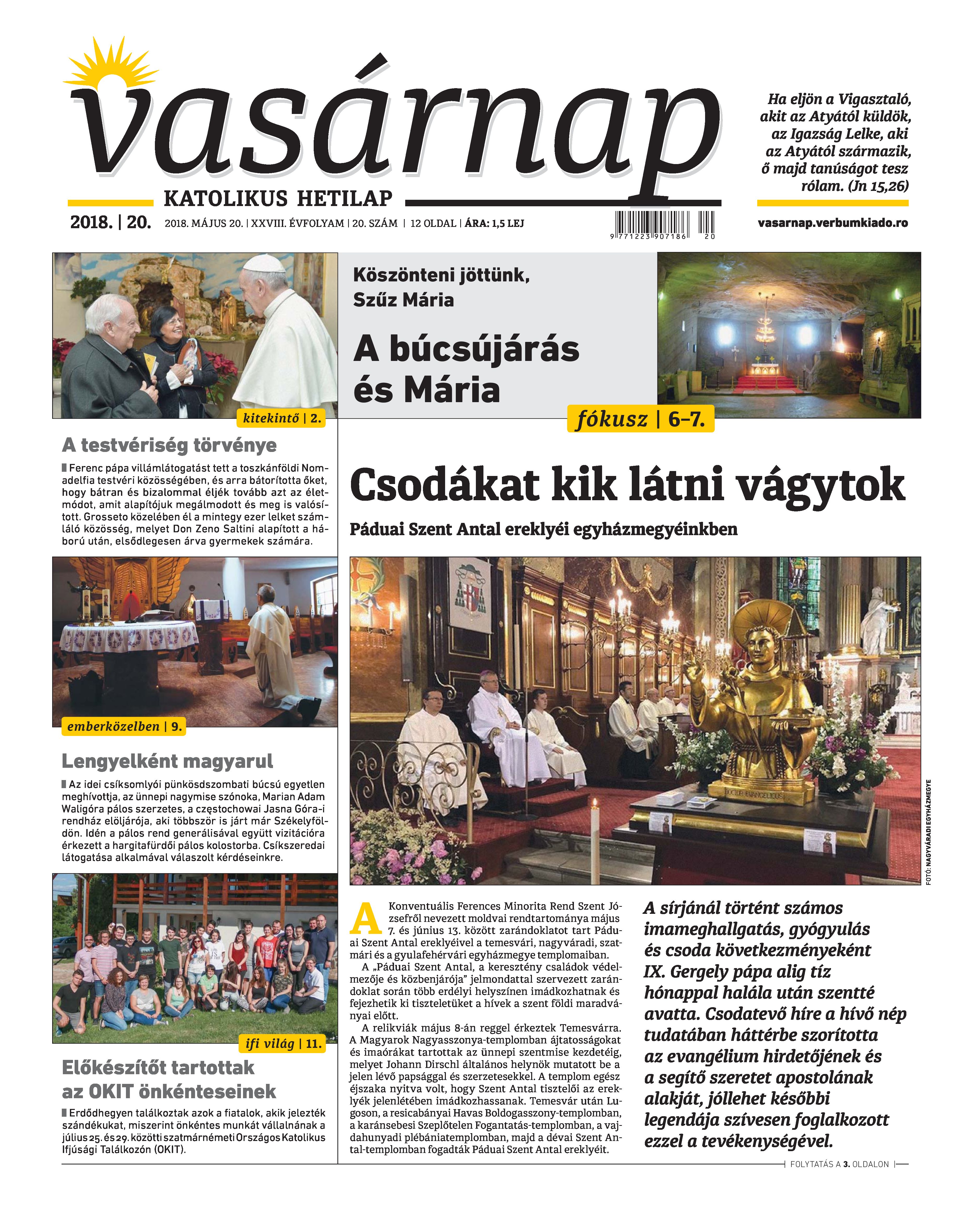 Vasárnap Katolikus Hetilap 2018. május 20. / XXVIII. évf. / 20. számának digitális változata.