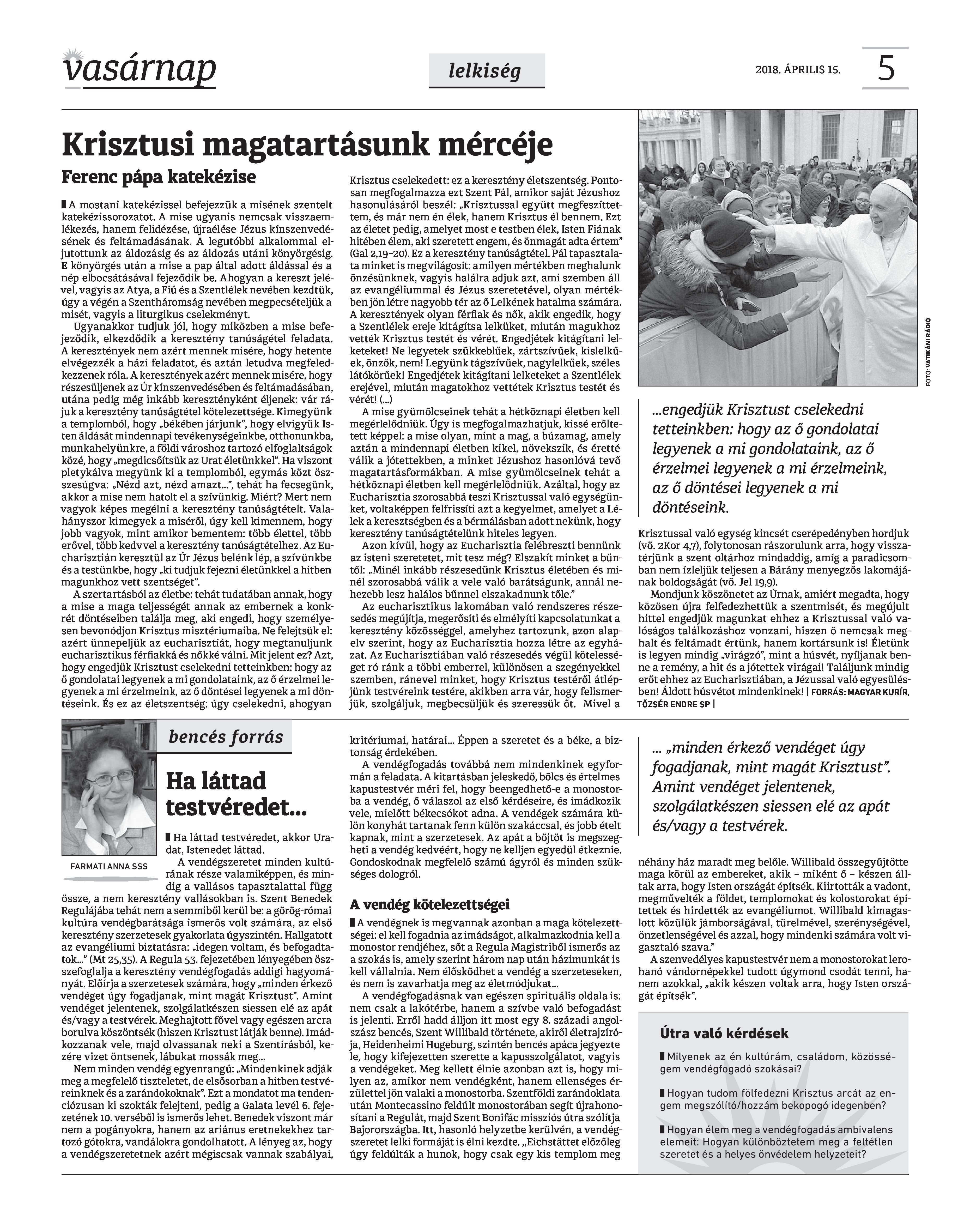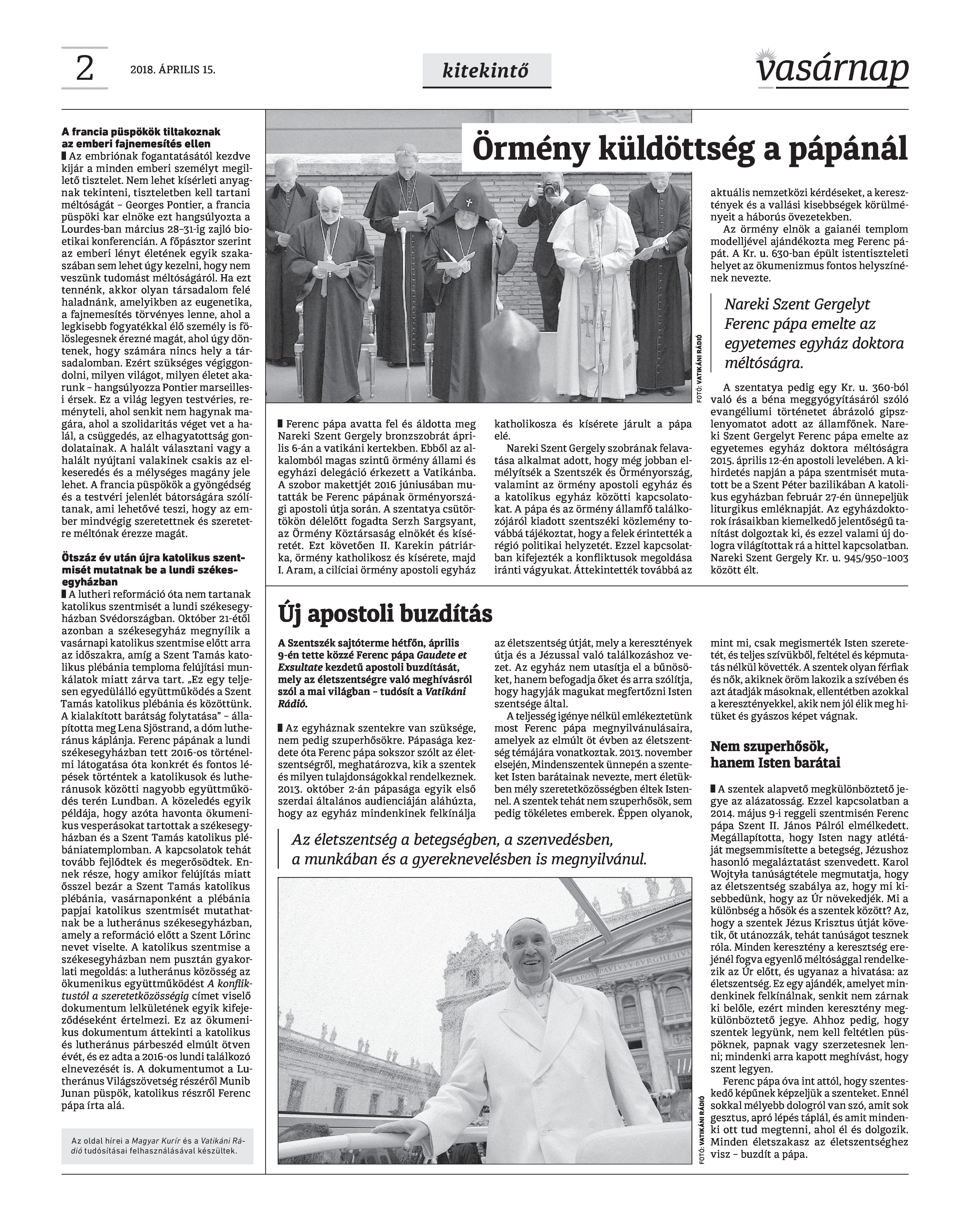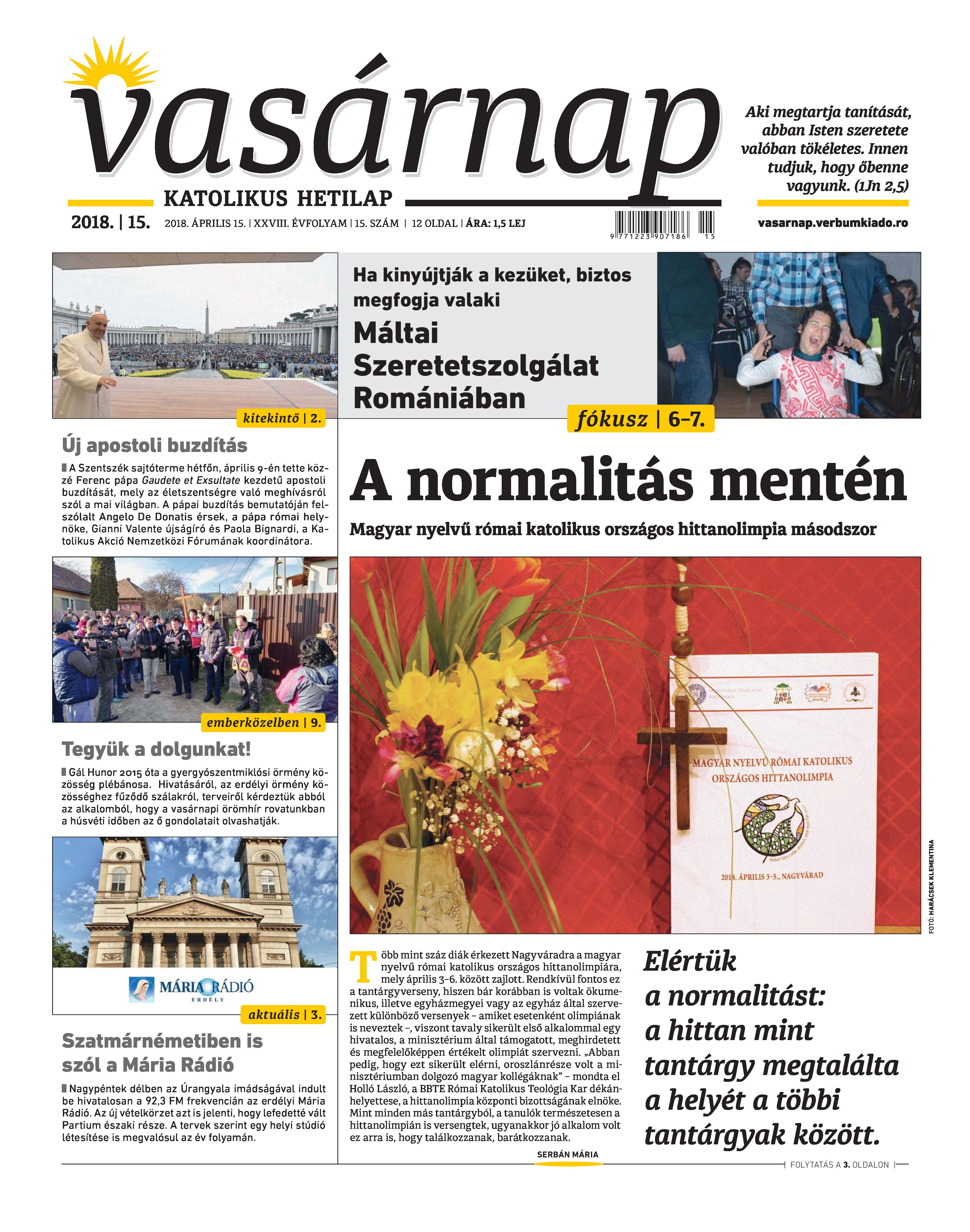 VASÁRNAP - 2018. ÁPRILIS 15. A Vasárnap Katolikus Hetilap 2018. április 15. / XXVIII. évf. / 15. számának digitális változata. 1 / 12 2 & 3 / 12 4 & 5 / 12 6 & 7 / 12 8 & 9 / 12 10 & 11 / 12 12 / 12