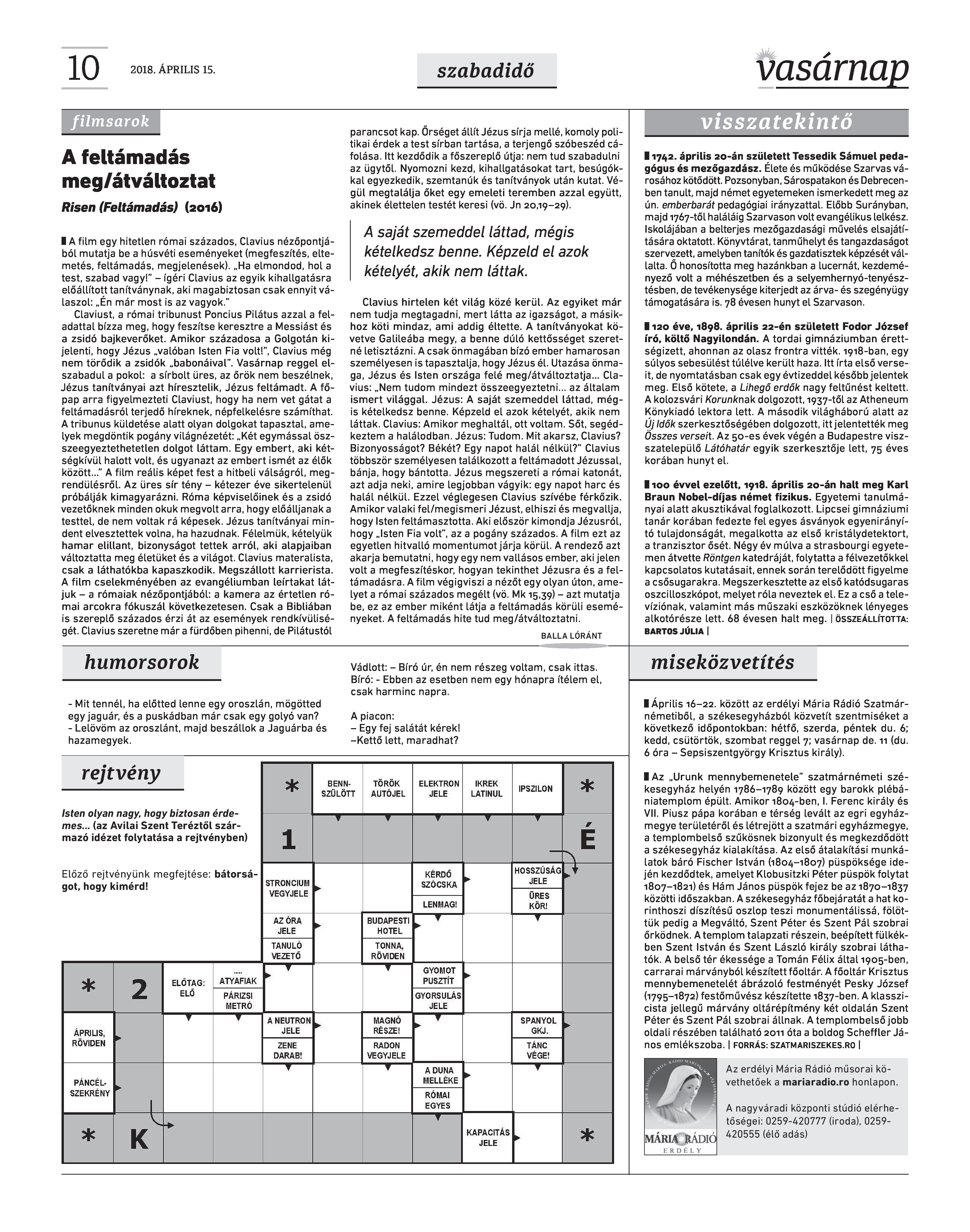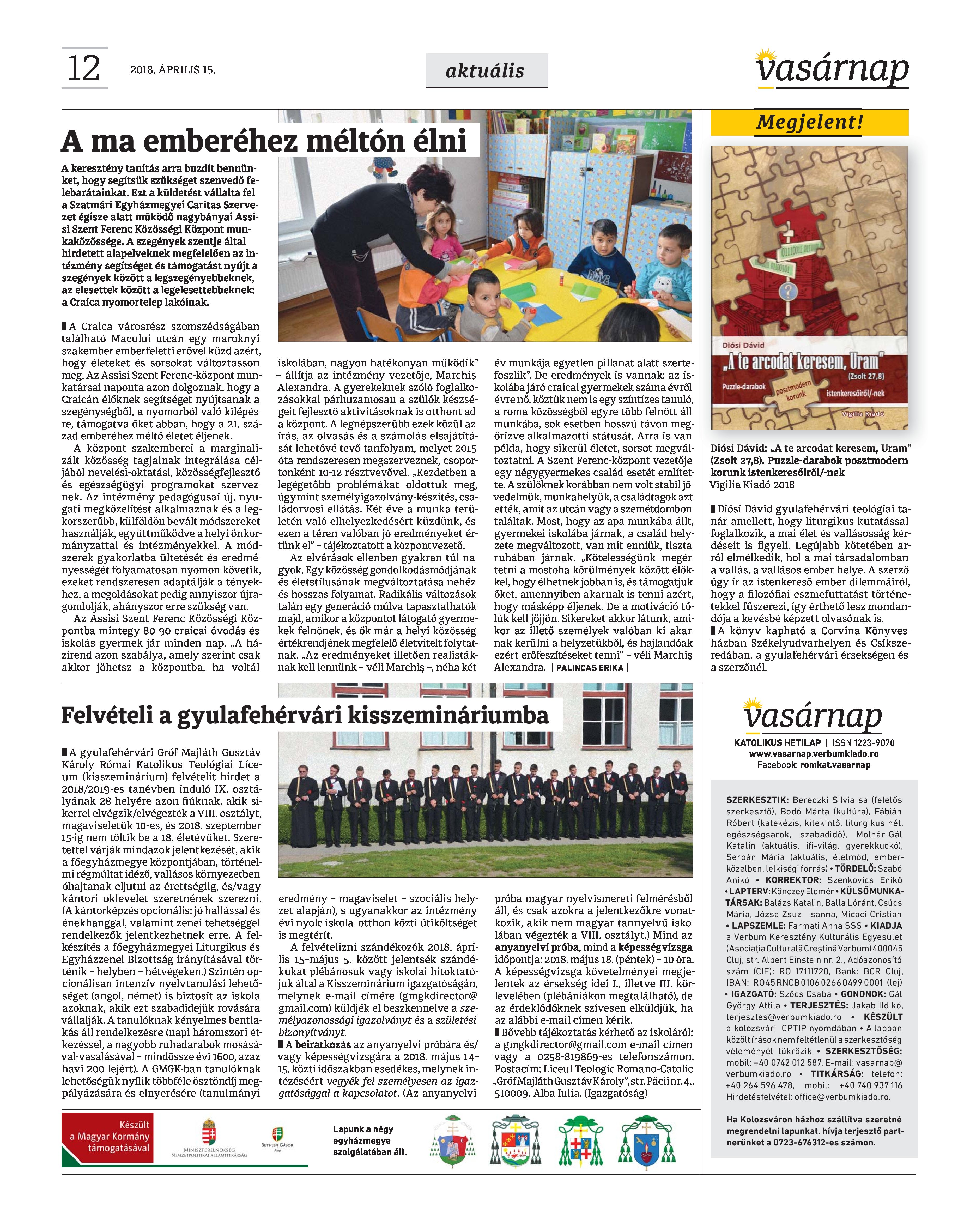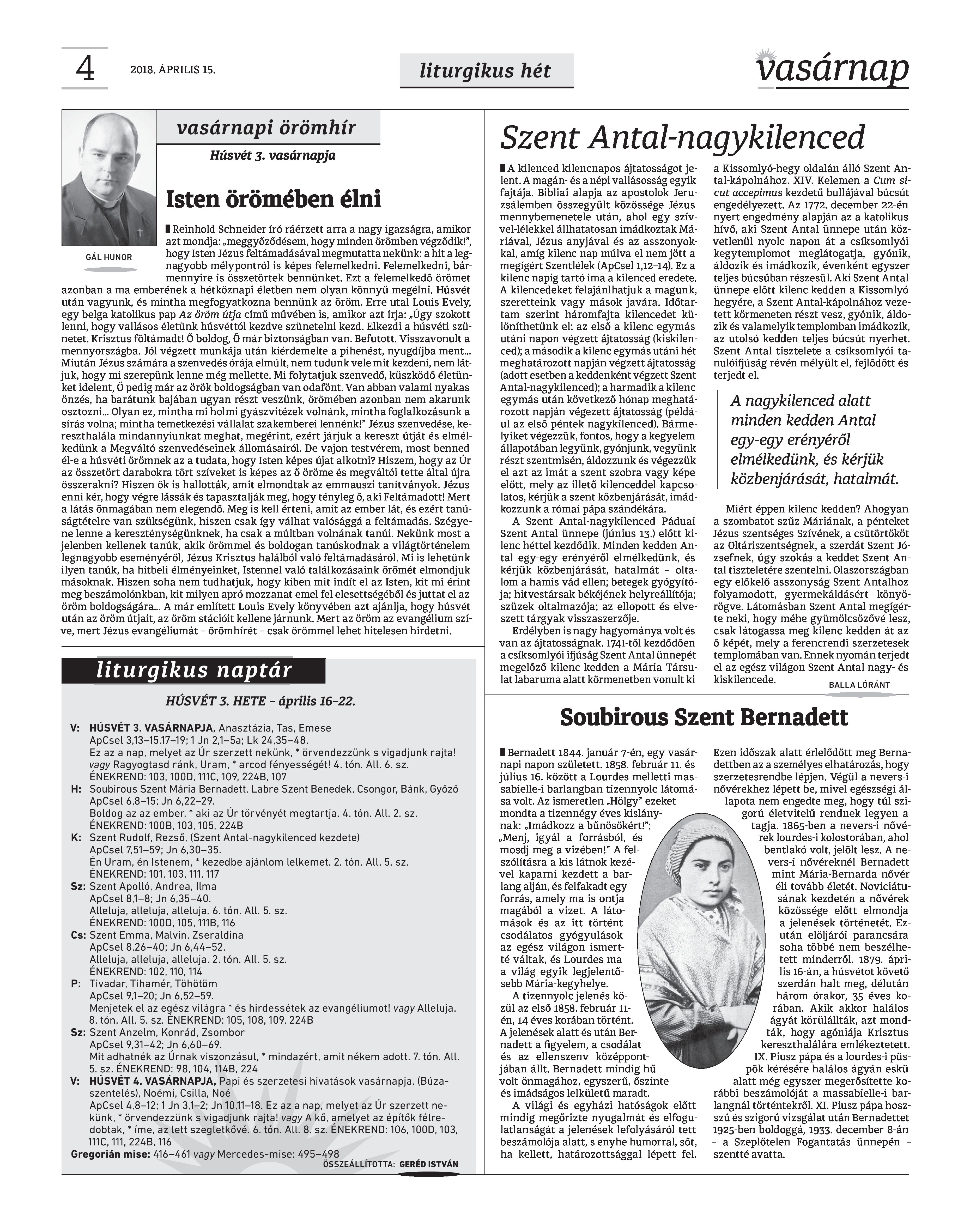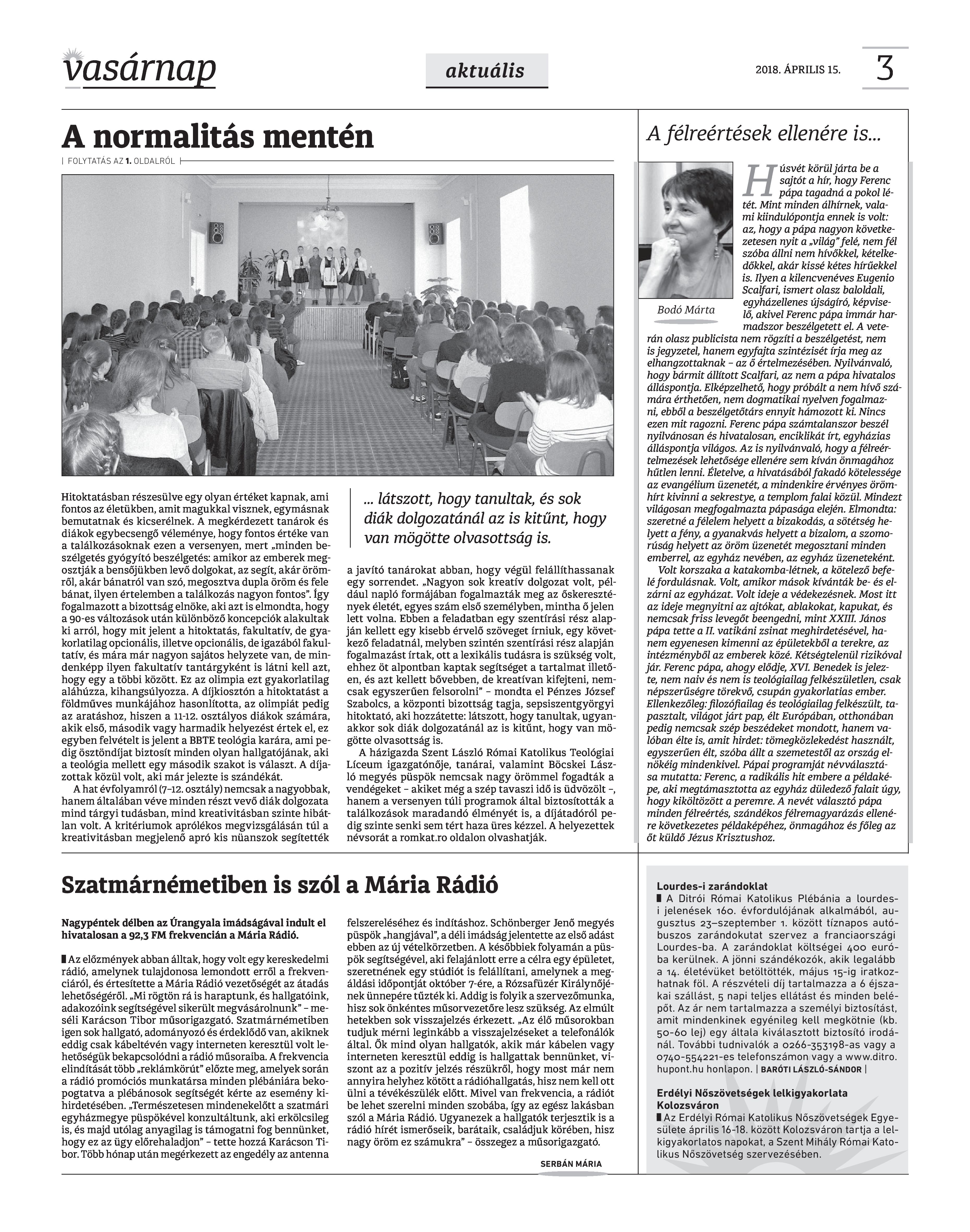 VASÁRNAP - 2018. ÁPRILIS 15. A Vasárnap Katolikus Hetilap 2018. április 15. / XXVIII. évf. / 15. számának digitális változata. 1 / 12 2 & 3 / 12 4 & 5 / 12 6 & 7 / 12 8 & 9 / 12 10 & 11 / 12 12 / 12