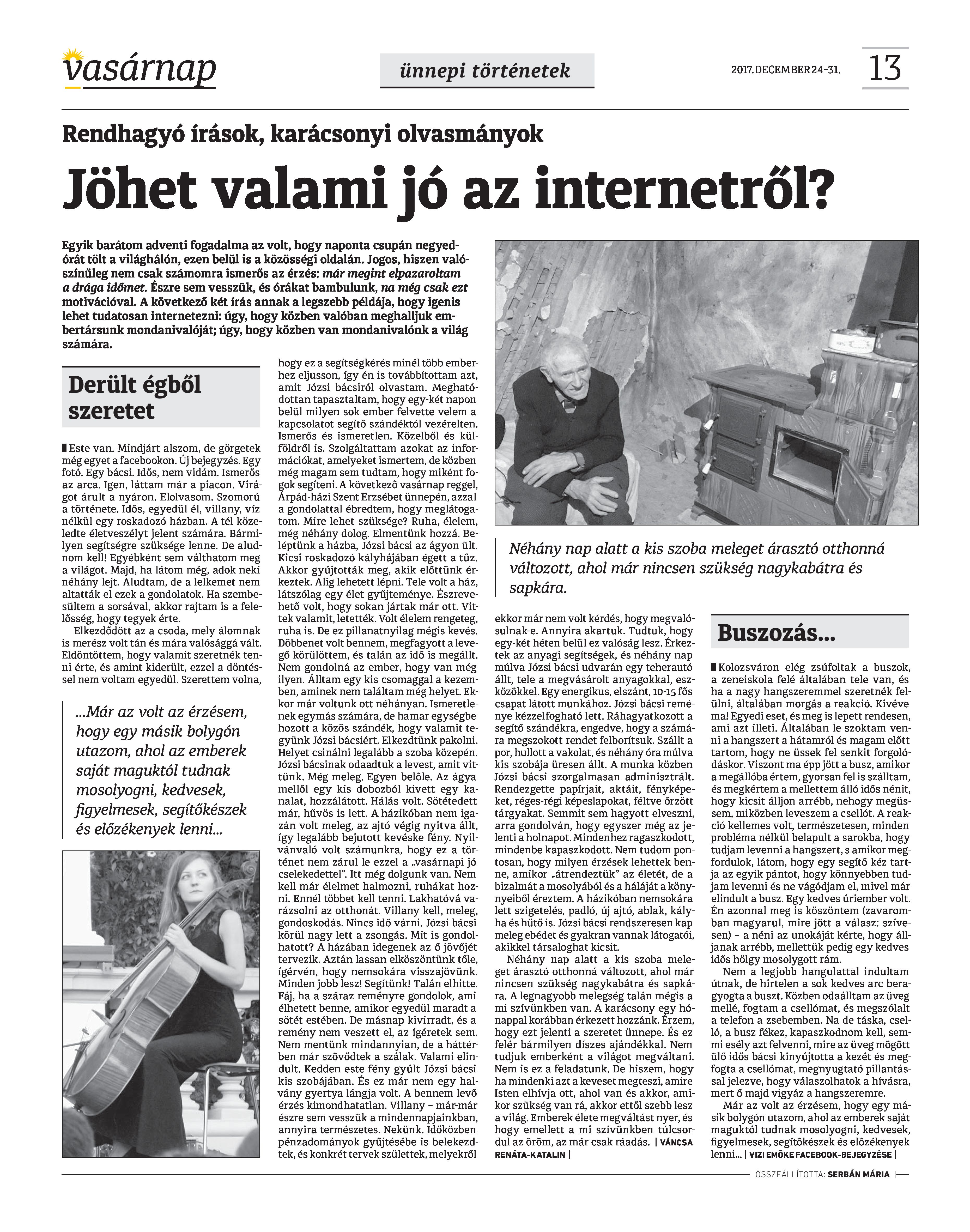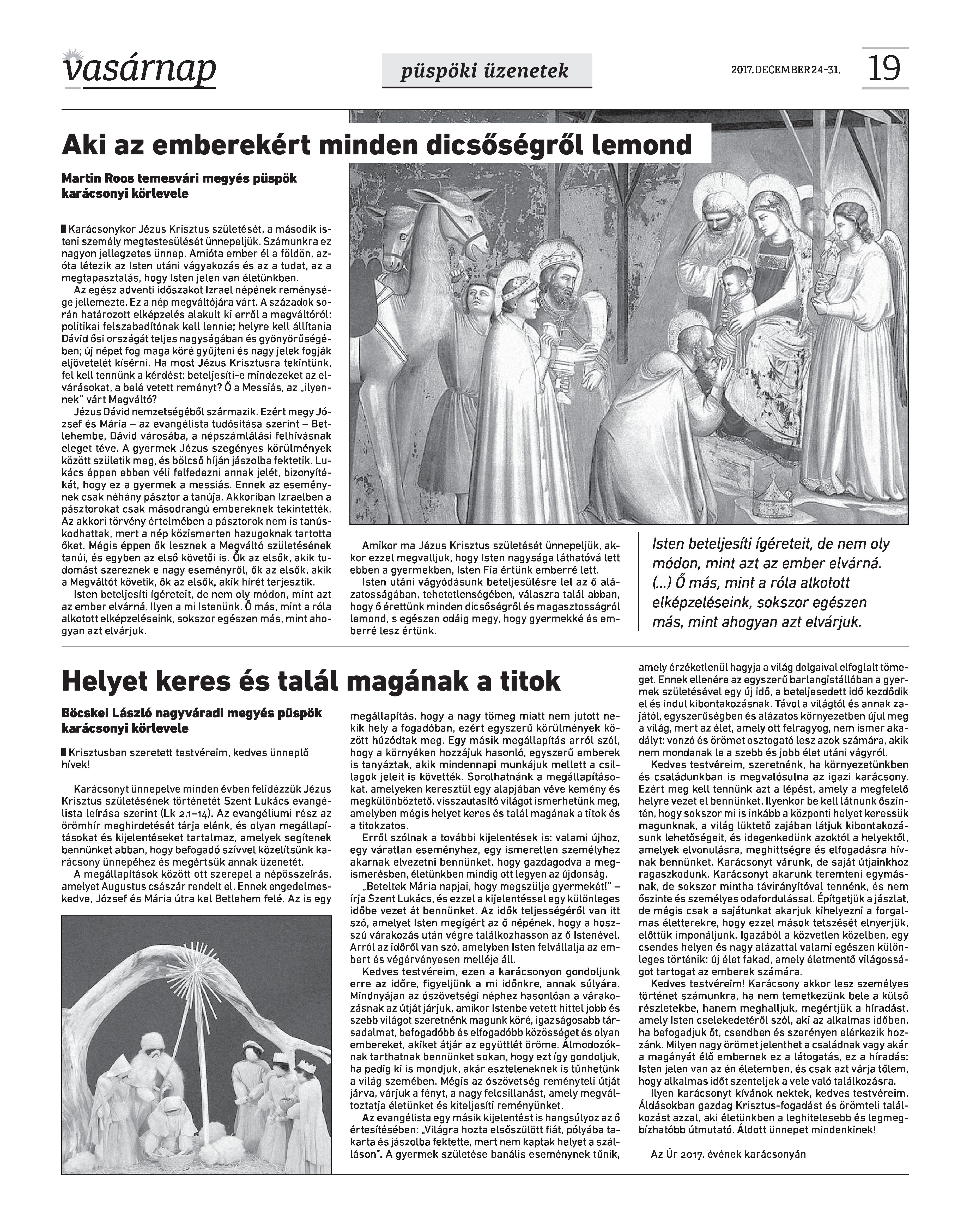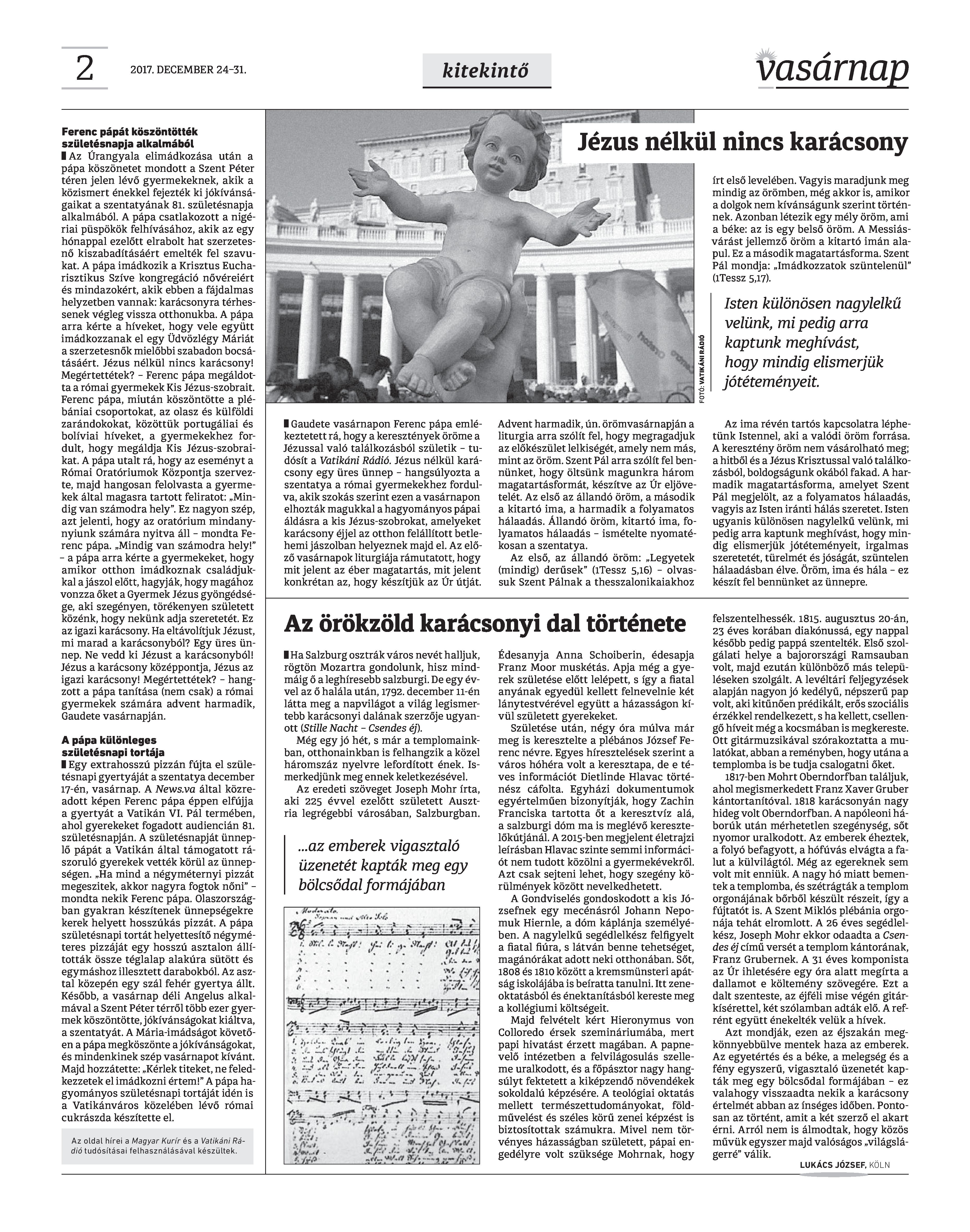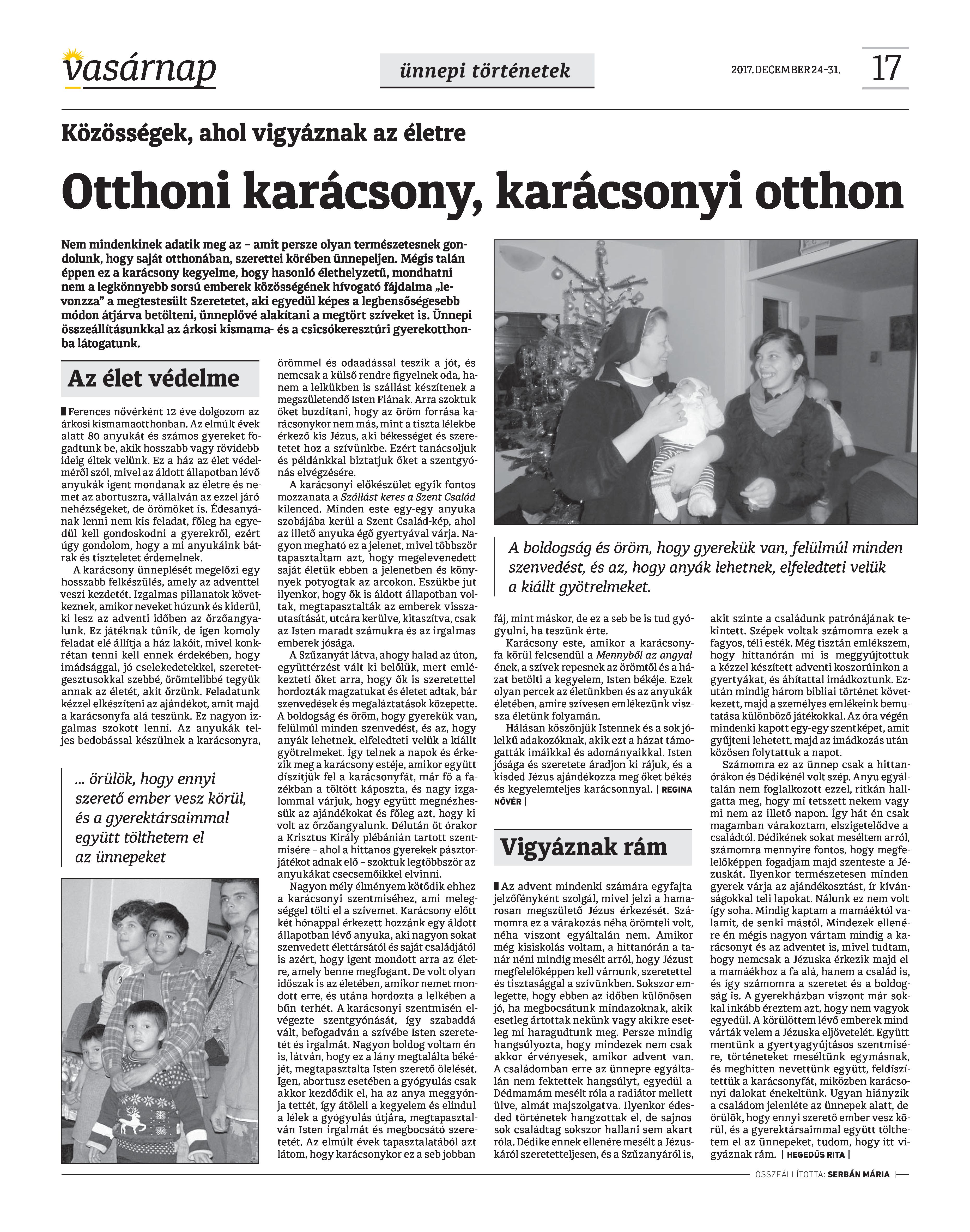 Vasárnap Katolikus Hetilap 2017. december 24-31. / XXVII. évf. / 52-53. számának digitális változata.