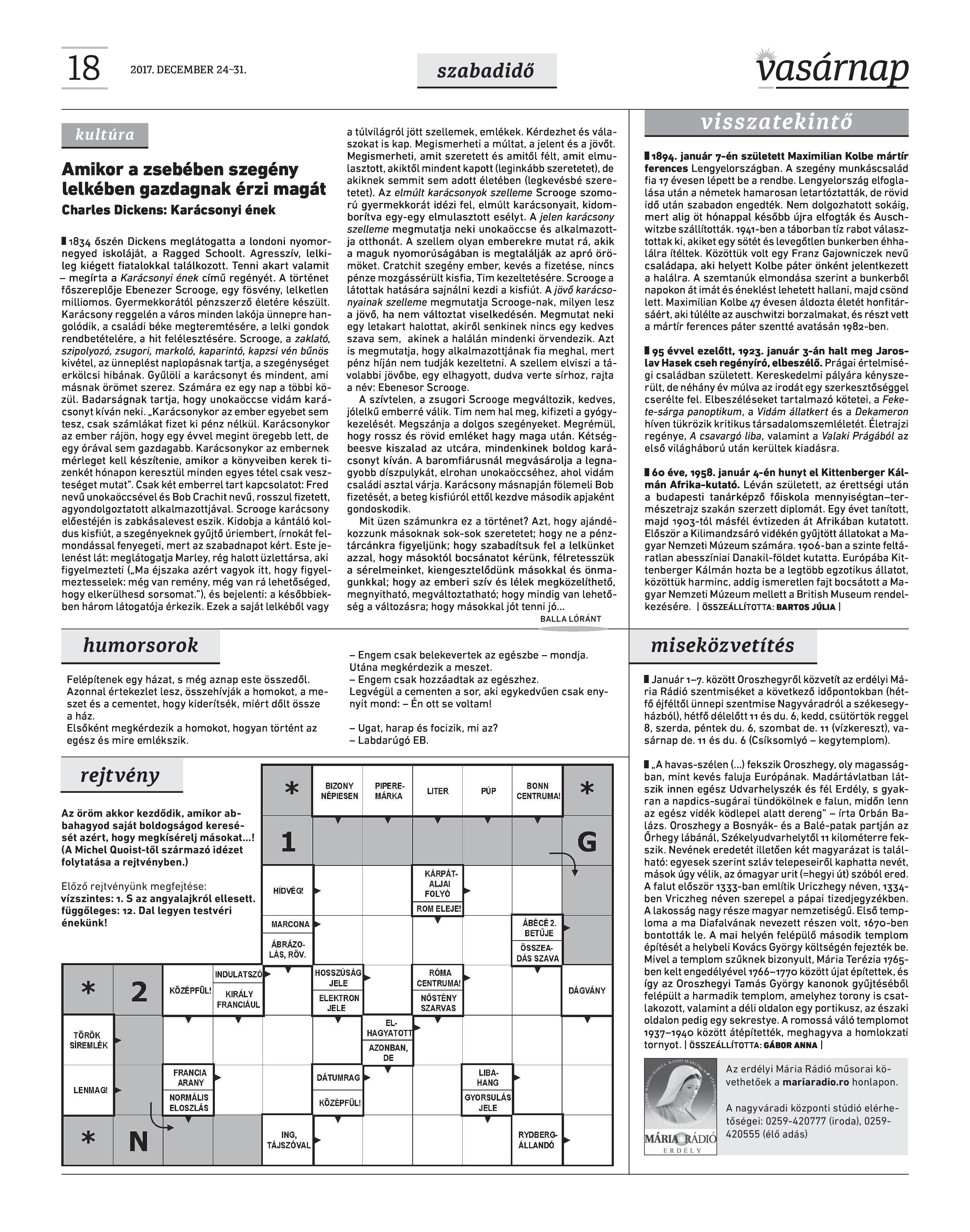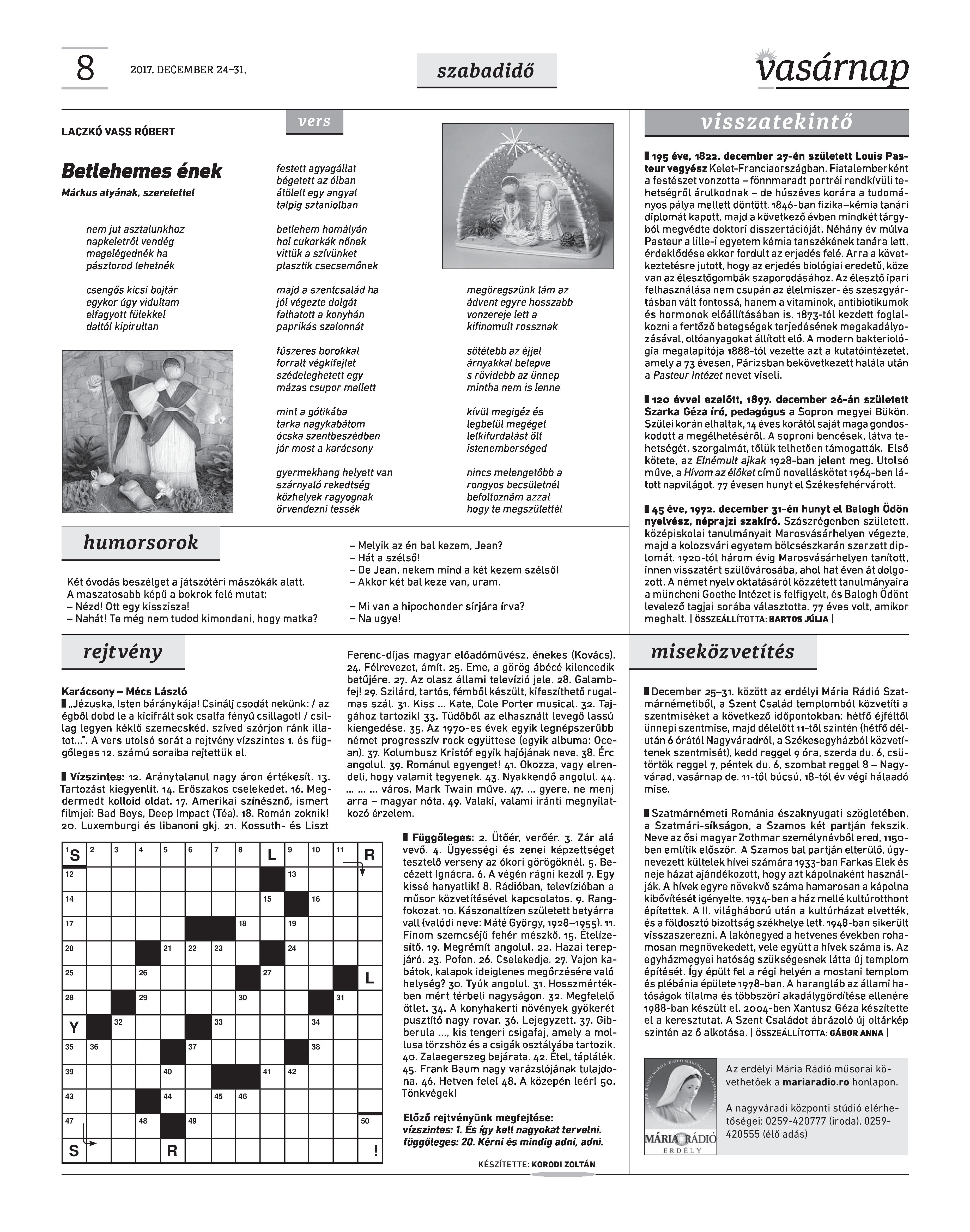 VASÁRNAP - 2017. DECEMBER 24-31.