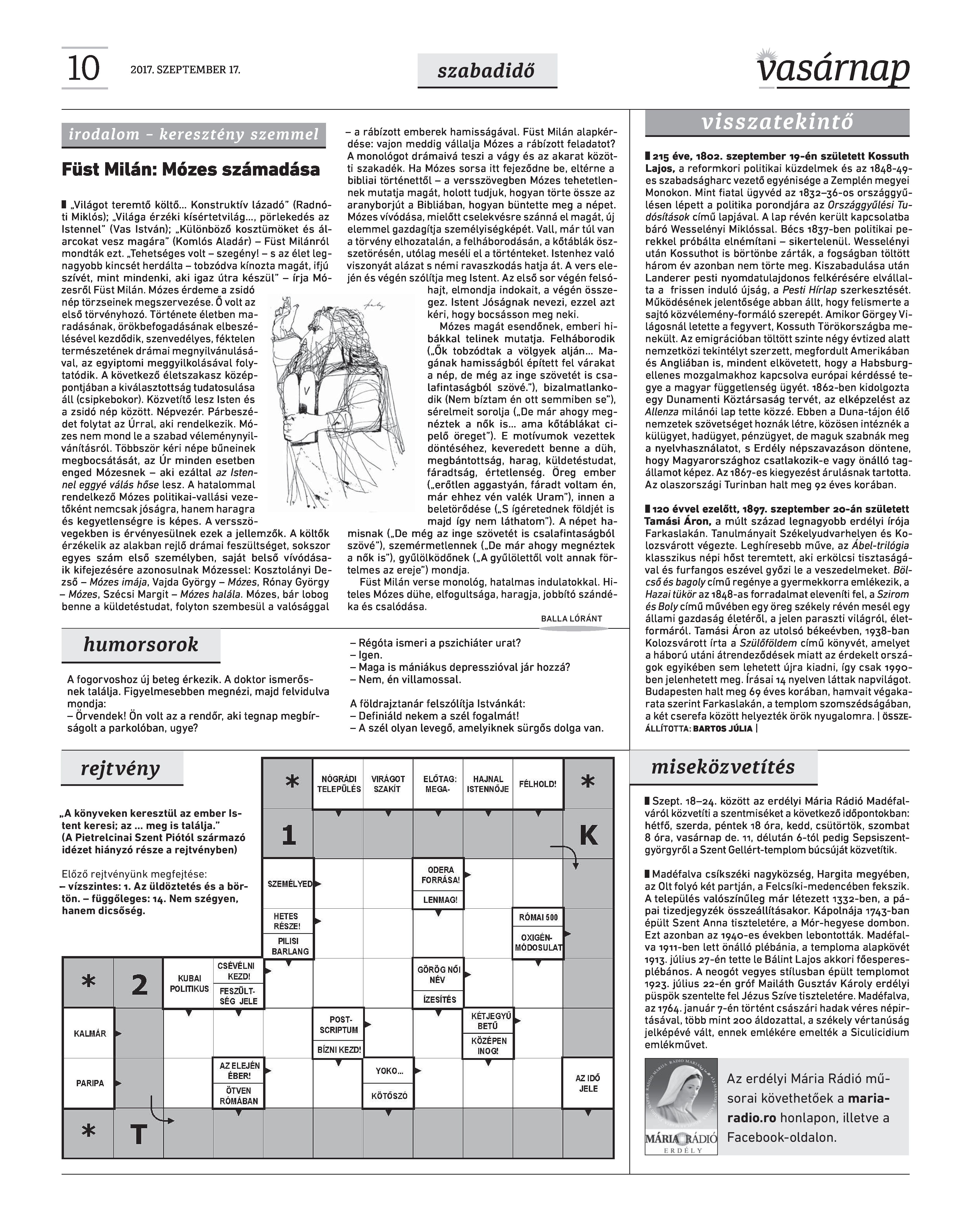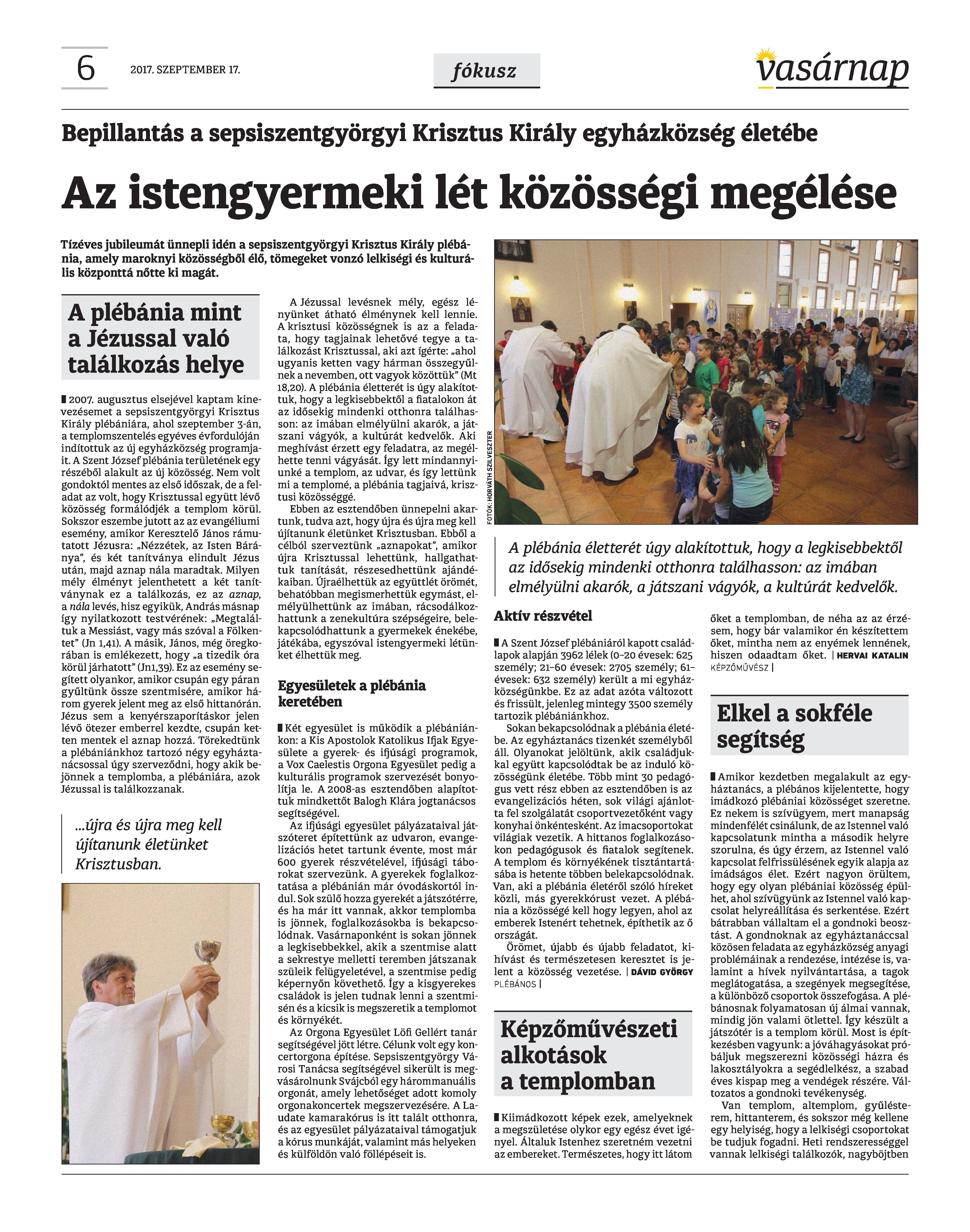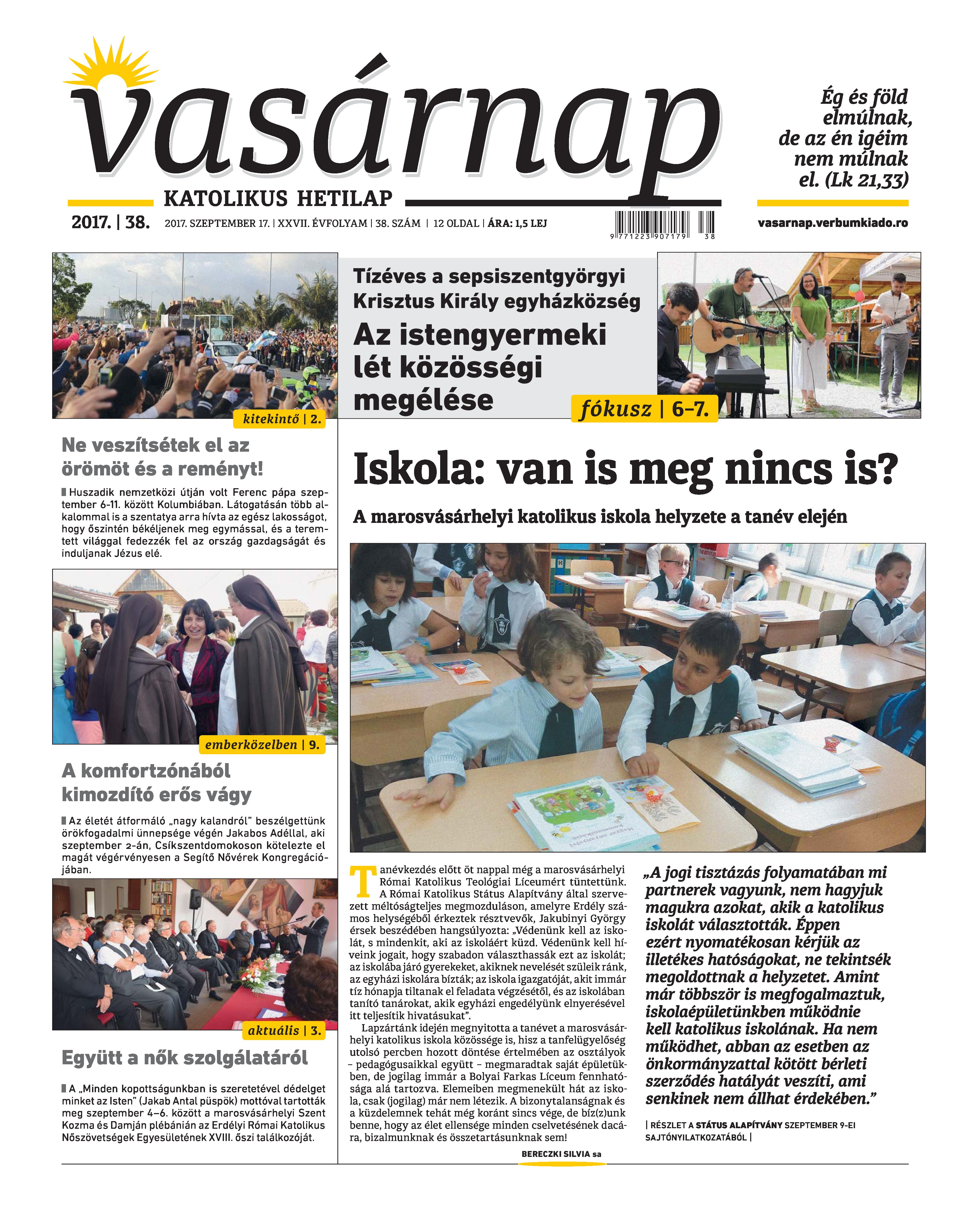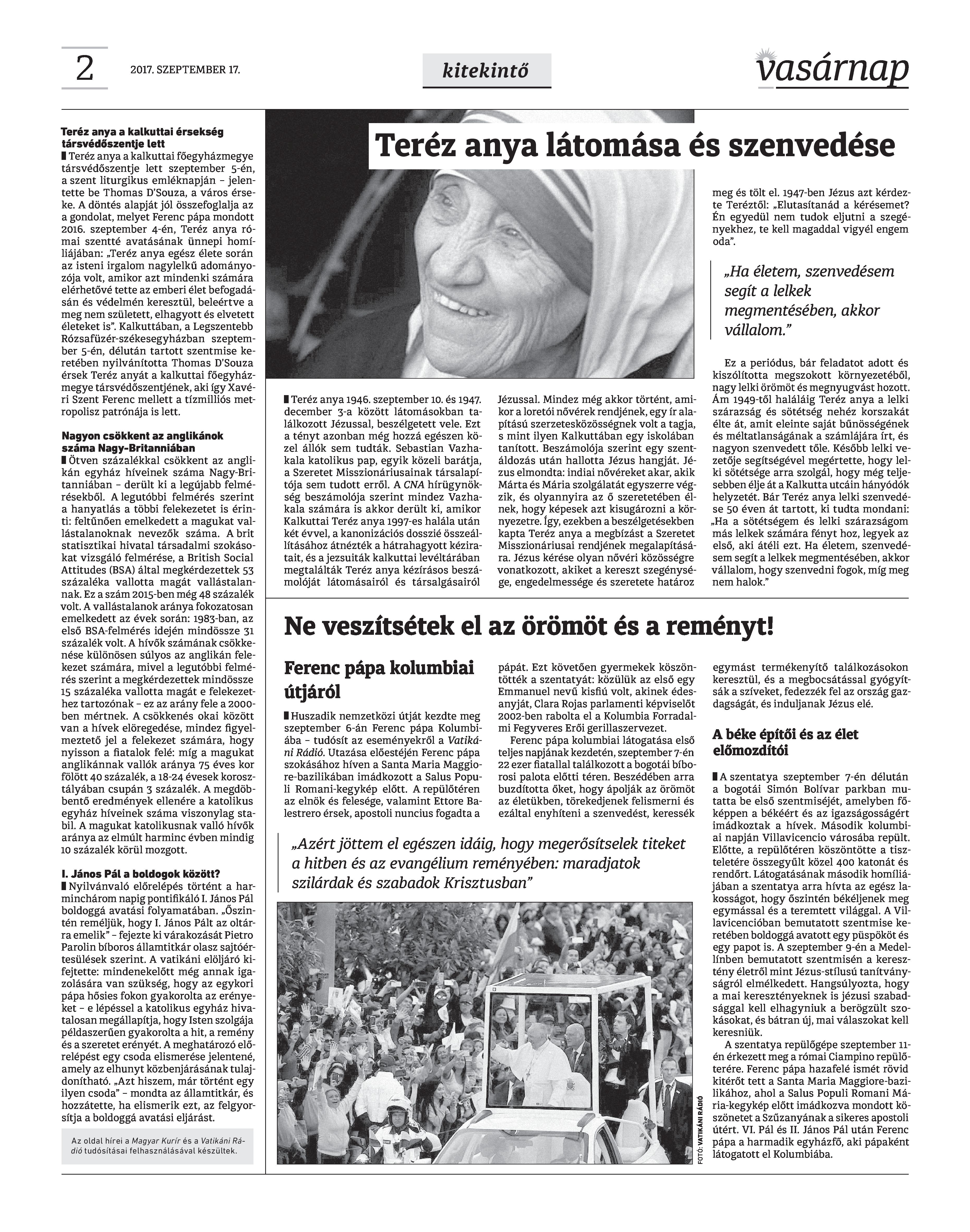 VASÁRNAP - 2017. SZEPTEMBER 17. A Vasárnap Katolikus Hetilap 2017. szeptember 17. / XXVII. évf. / 38. számának digitális változata. 1 / 12 2 & 3 / 12 4 & 5 / 12 6 & 7 / 12 8 & 9 / 12 10 & 11 / 12 12 / 12