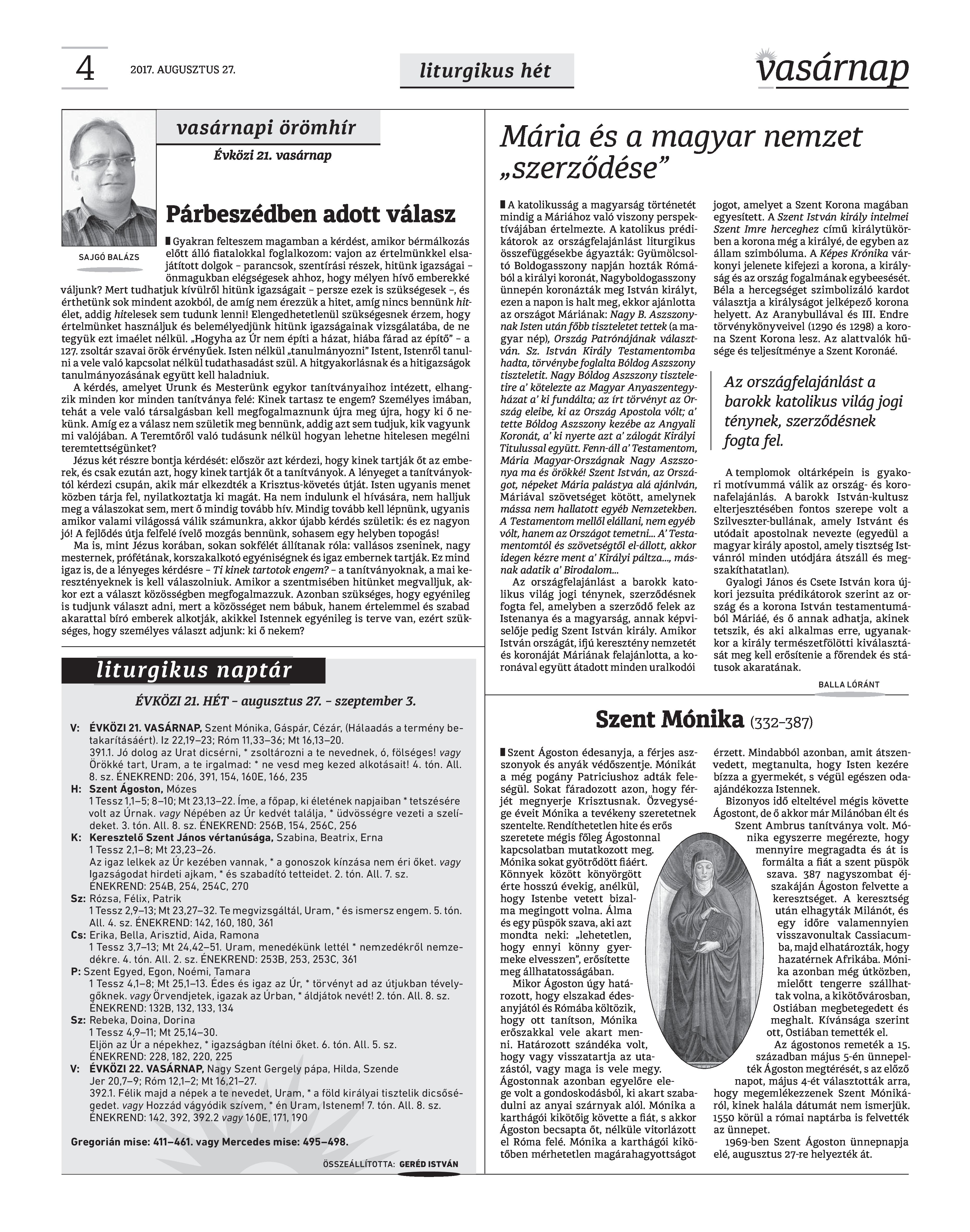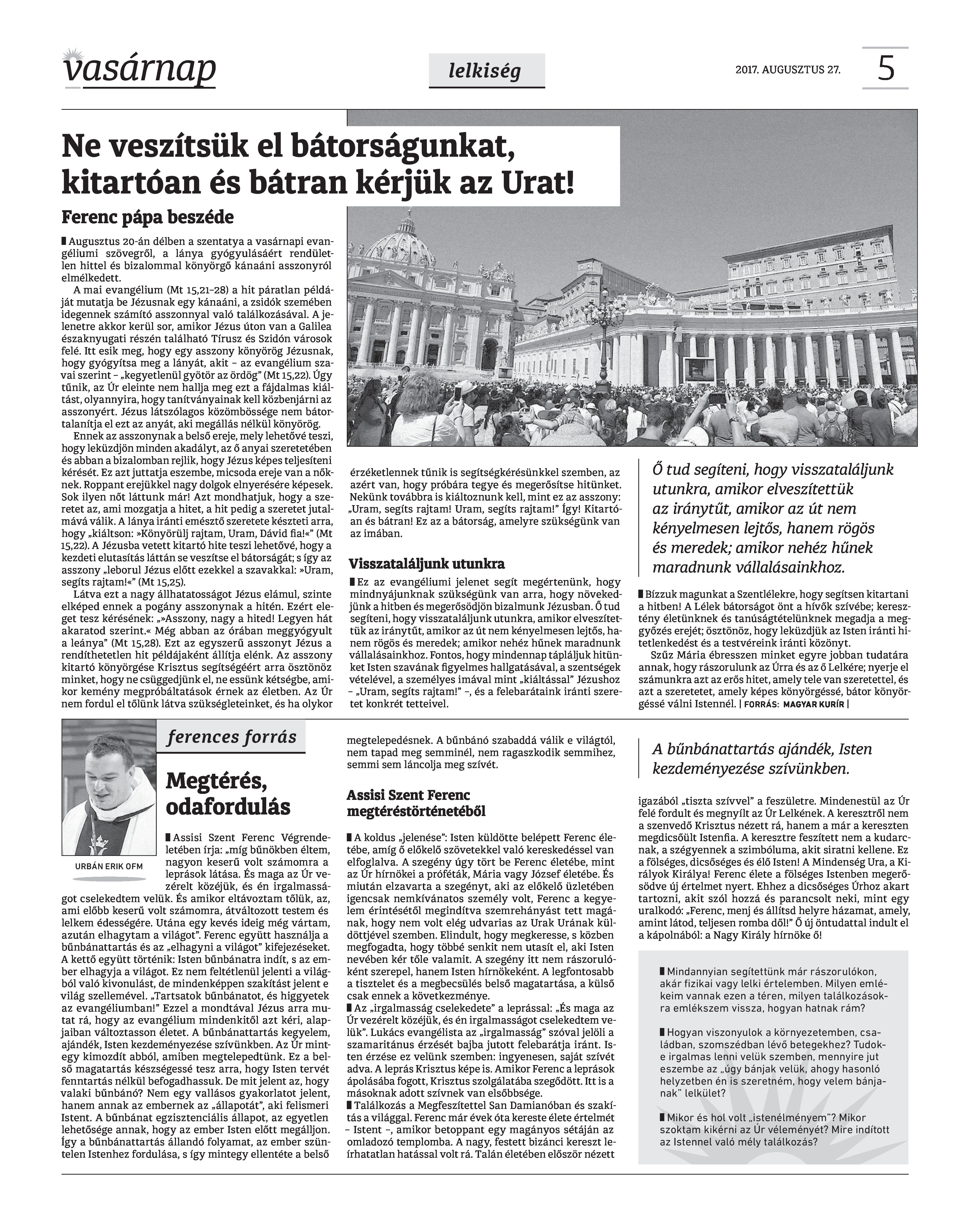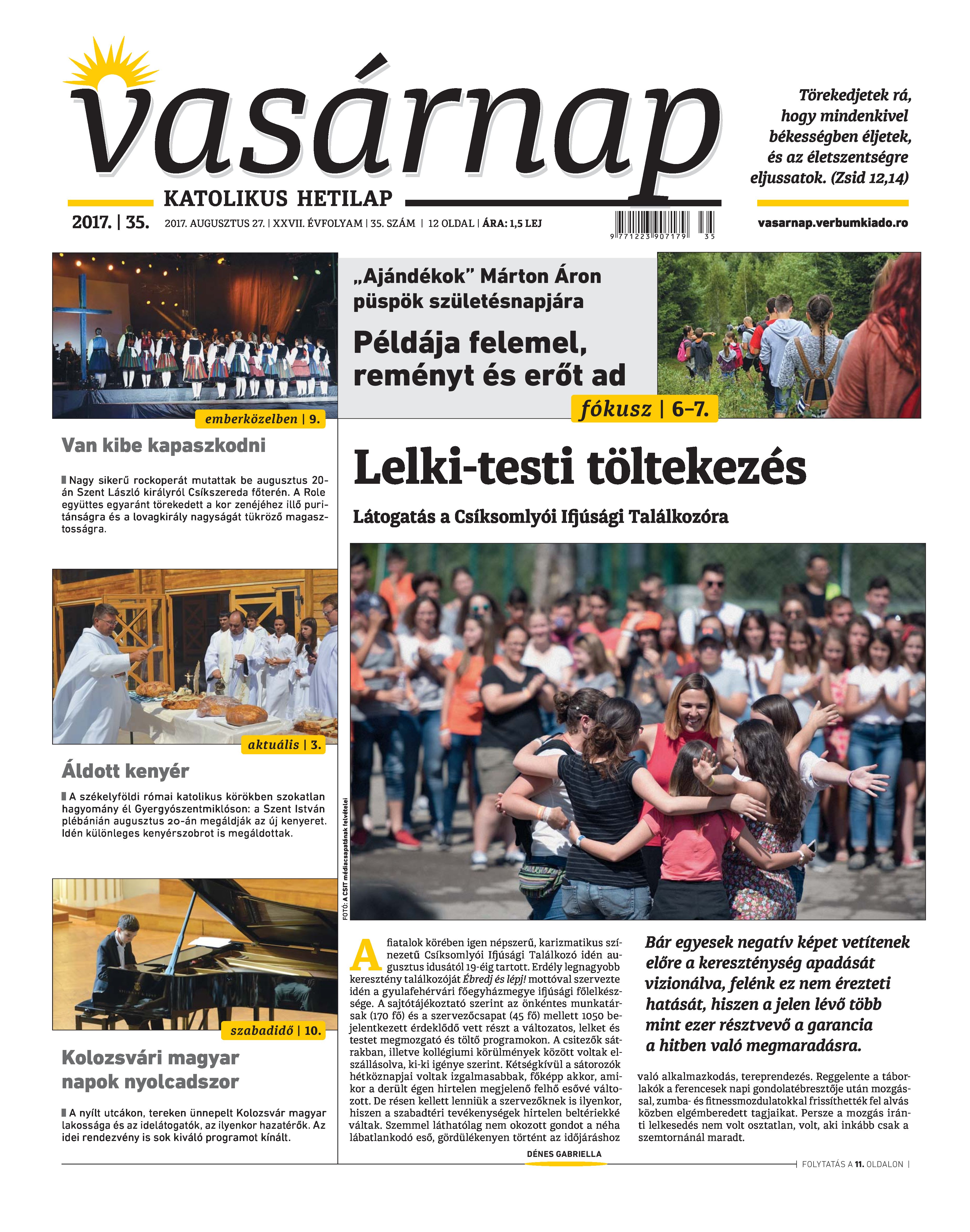 Vasárnap Katolikus Hetilap 2017. augusztus 27. / XXVII. évf. / 35. számának digitális változata.