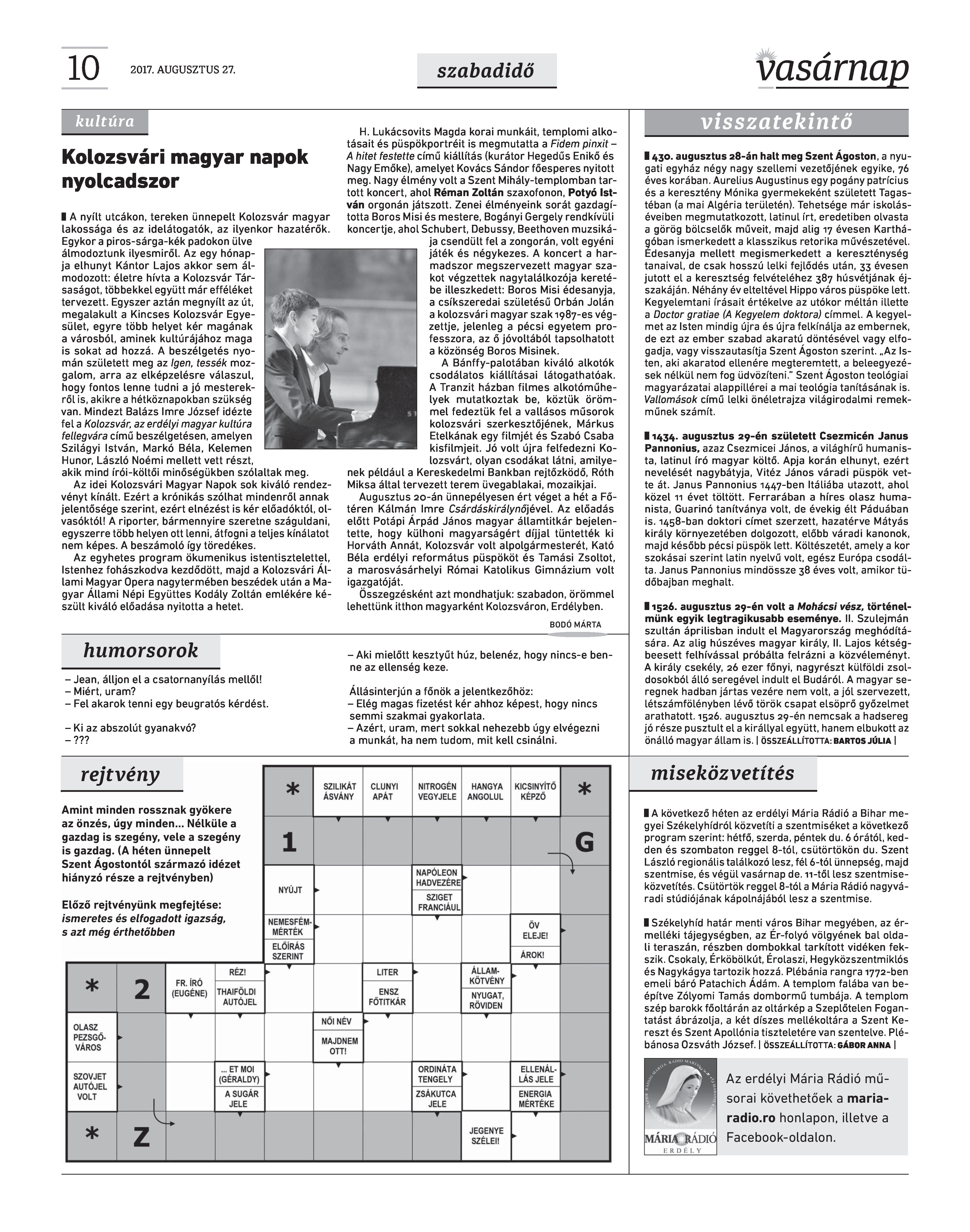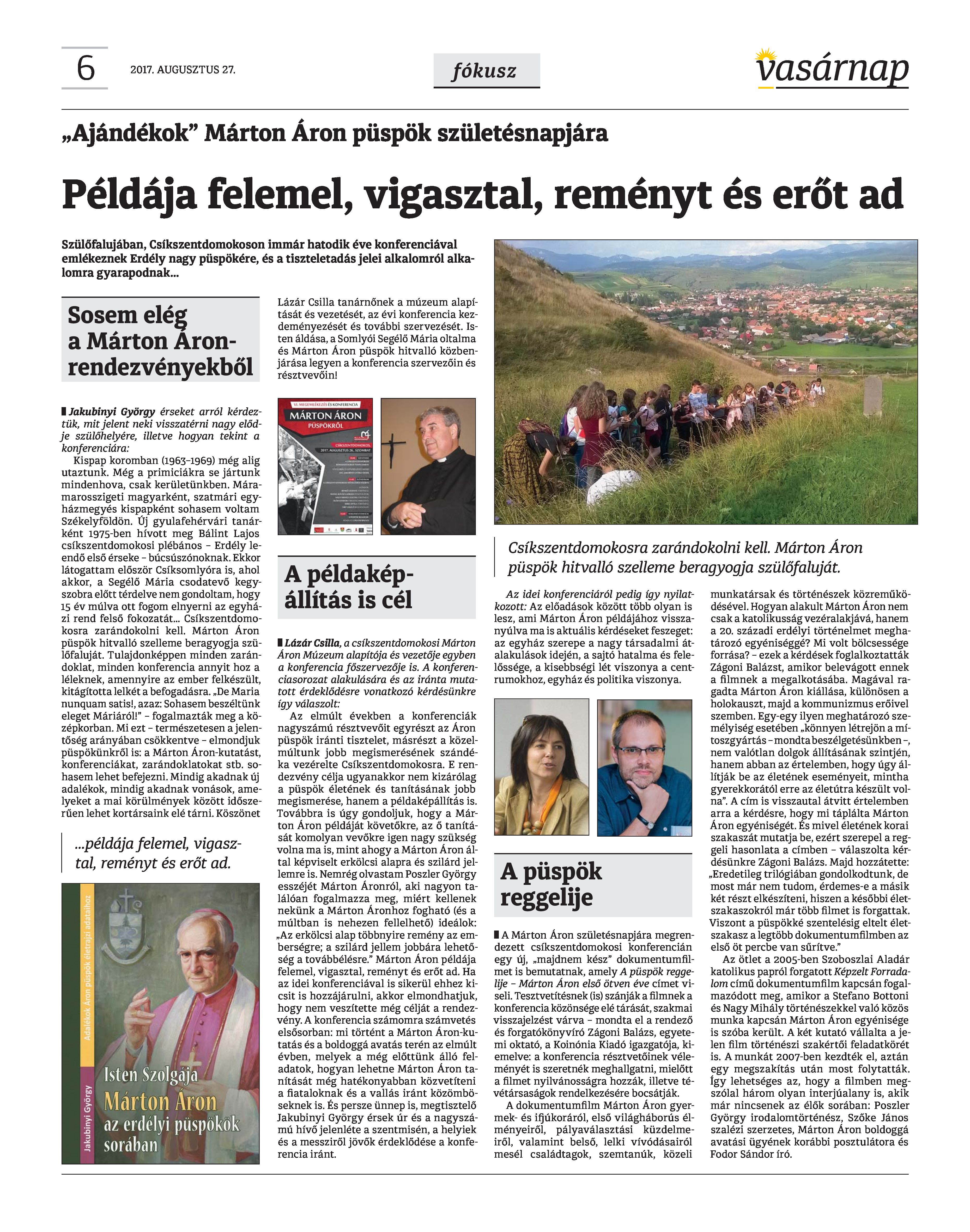 VASÁRNAP - 2017. AUGUSZTUS 27.