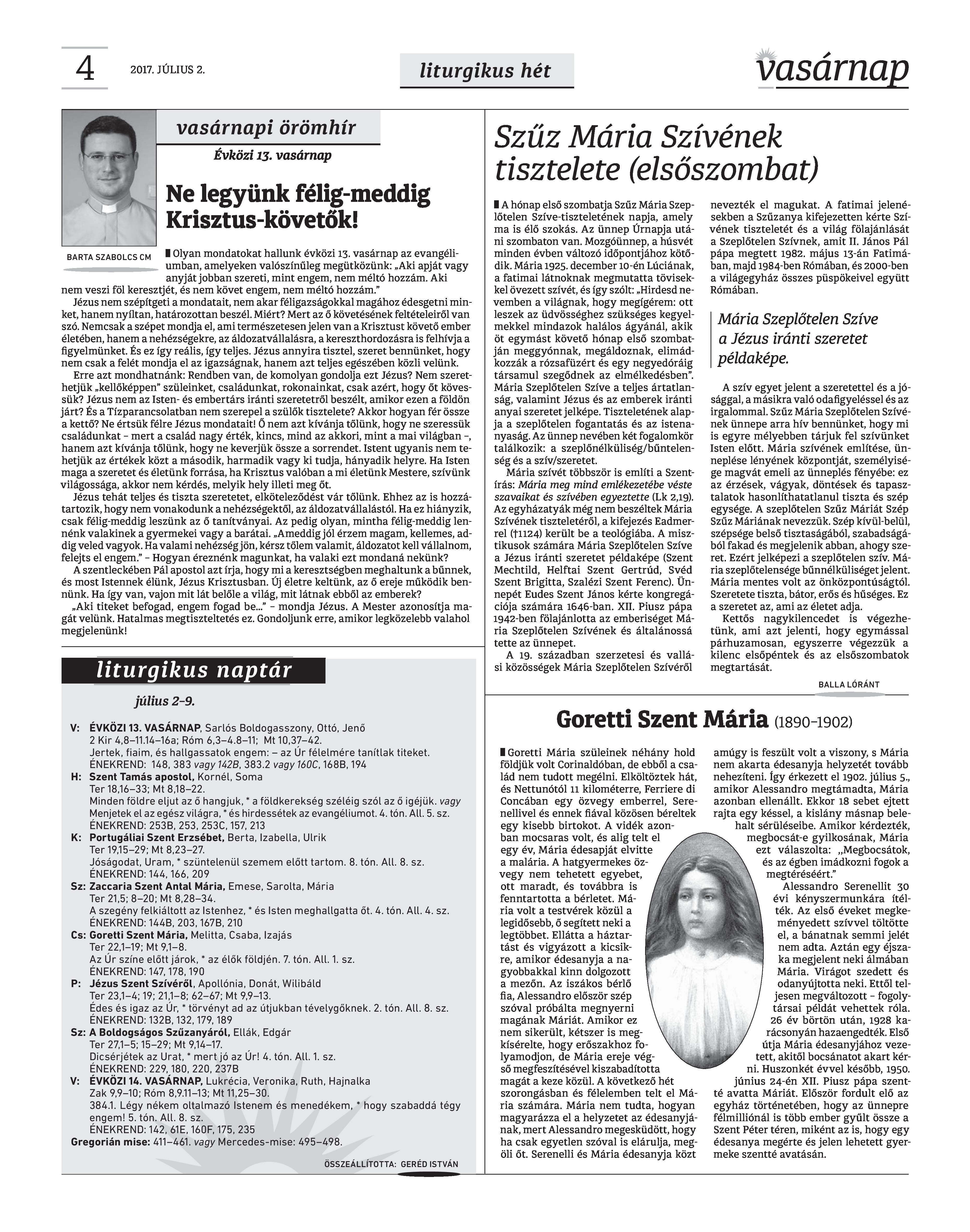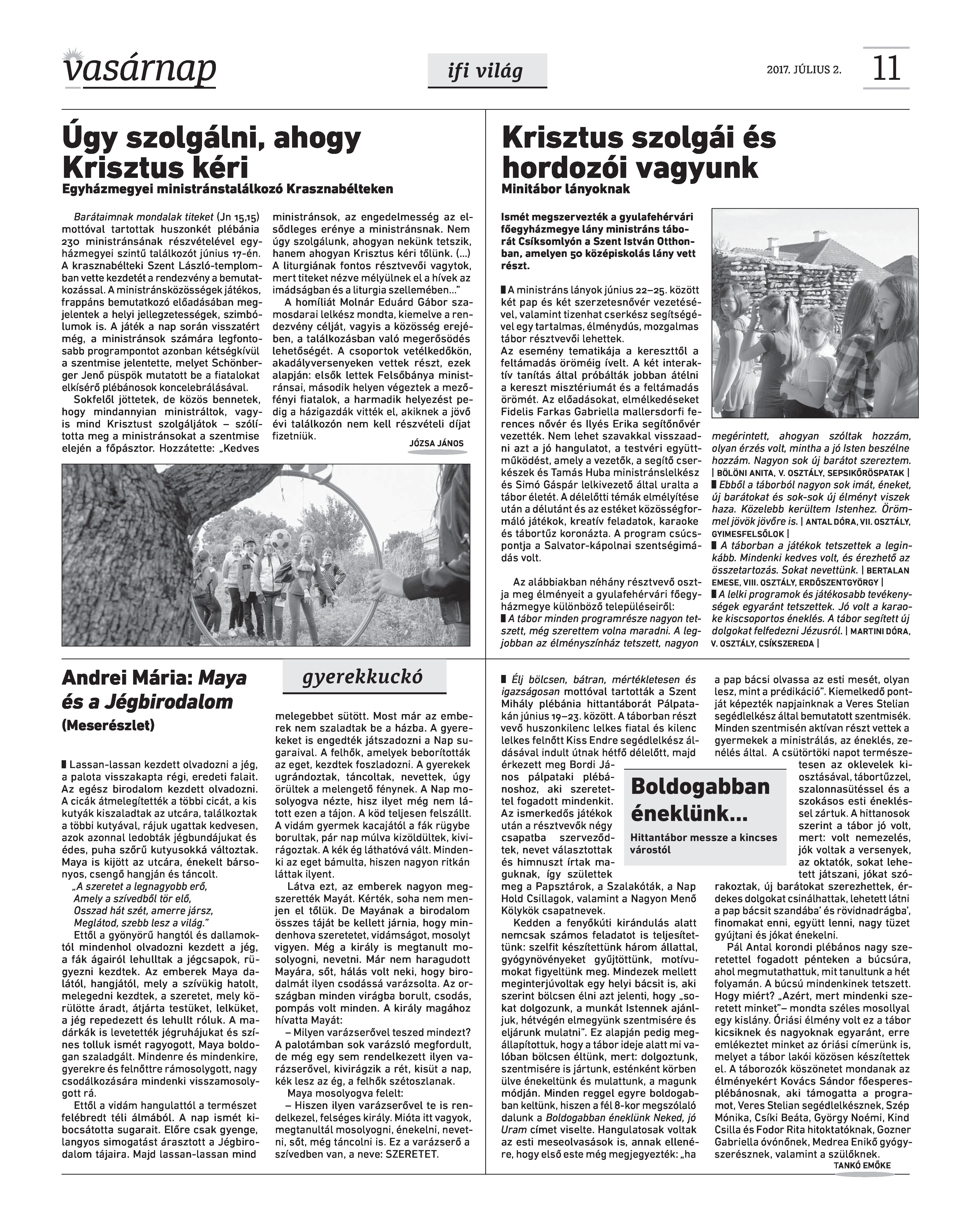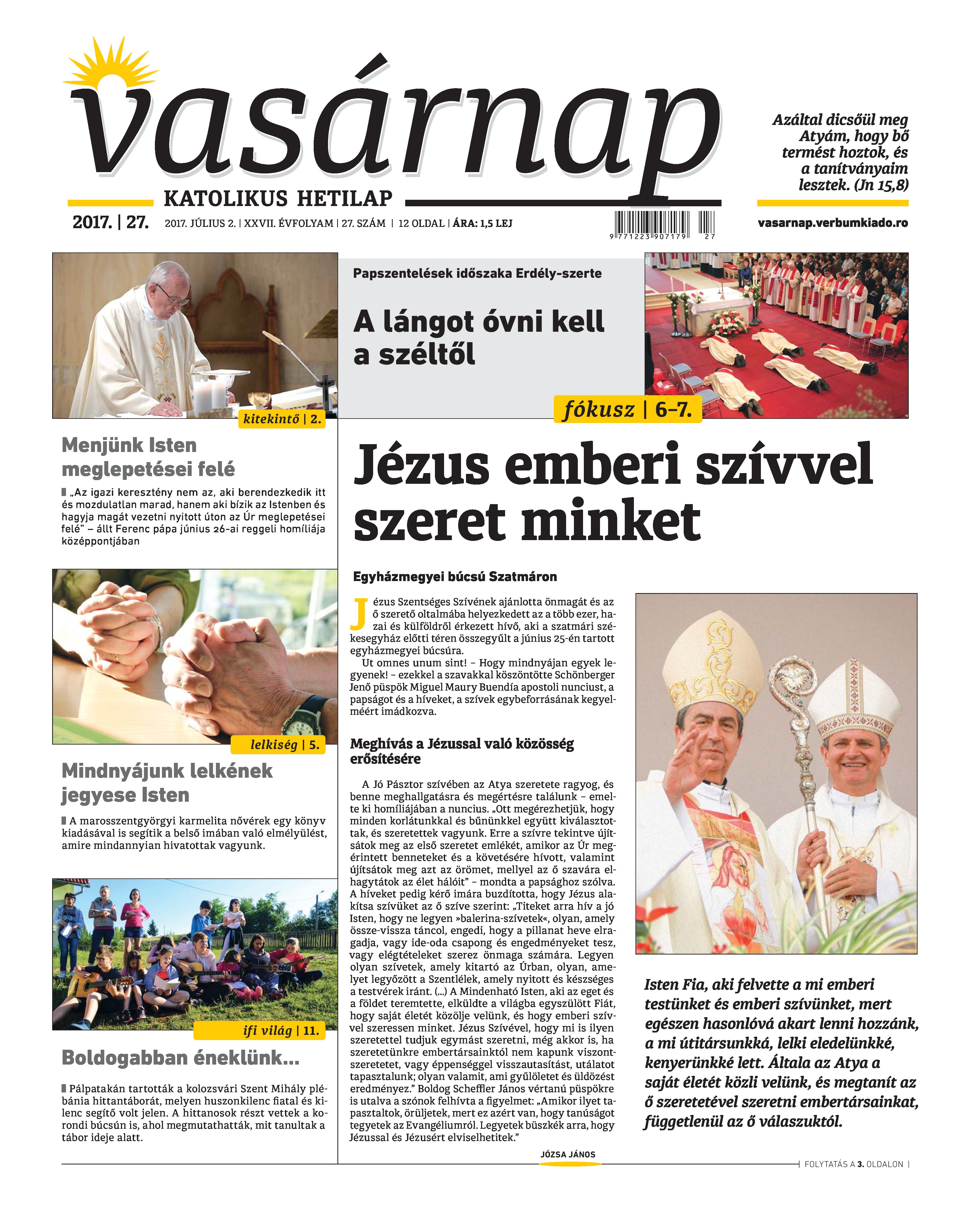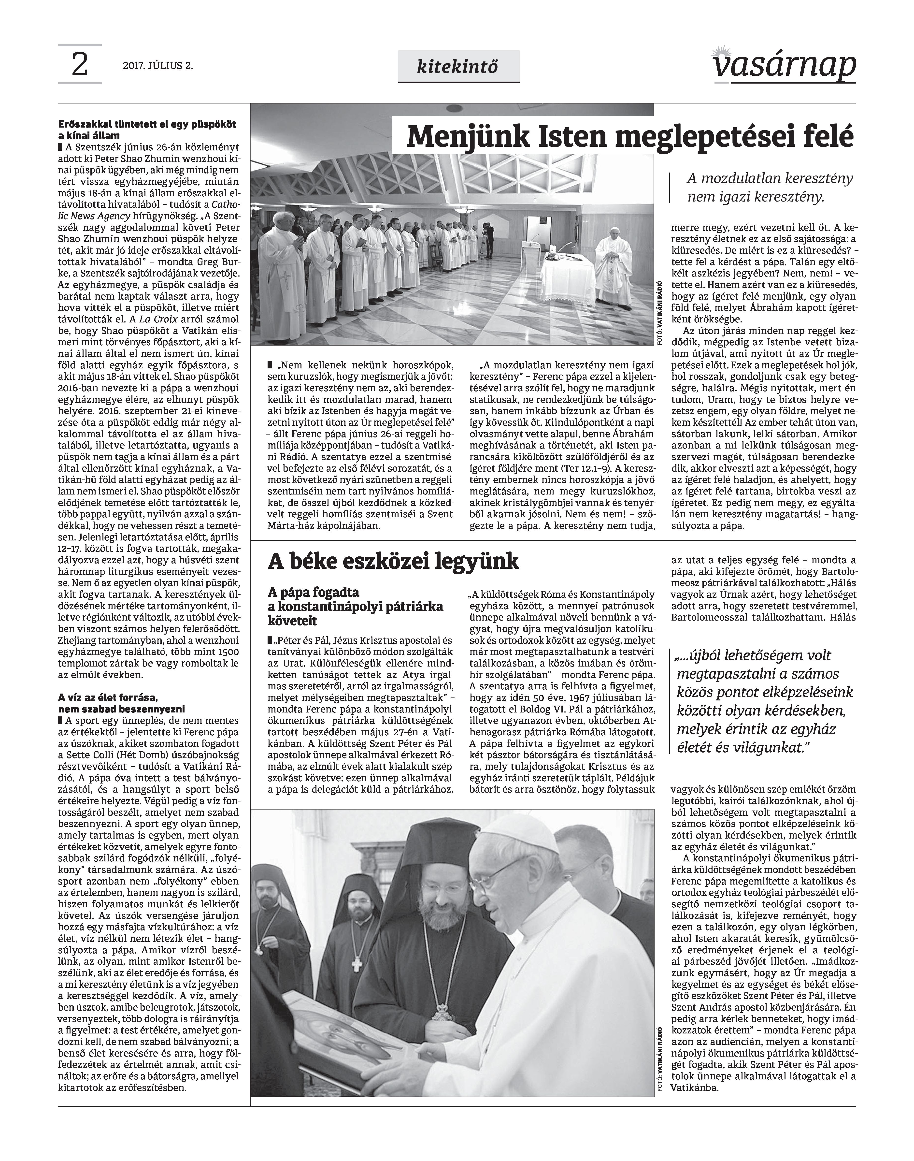 VASÁRNAP - 2017. JÚLIUS 2. A Vasárnap Katolikus Hetilap 2017. július 2. / XXVII. évf. / 27. számának digitális változata 1 / 12 2 & 3 / 12 4 & 5 / 12 6 & 7 / 12 8 & 9 / 12 10 & 11 / 12 12 / 12