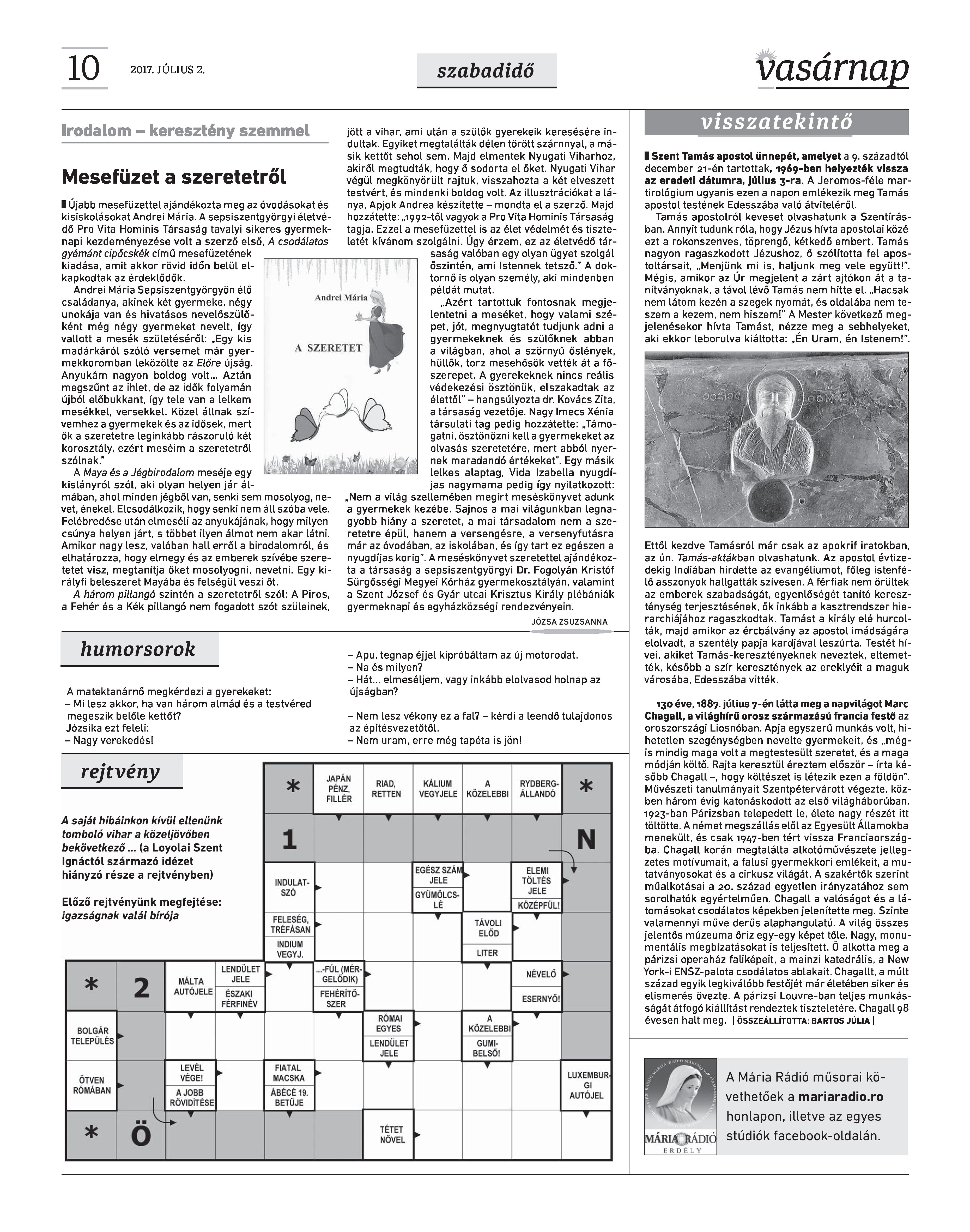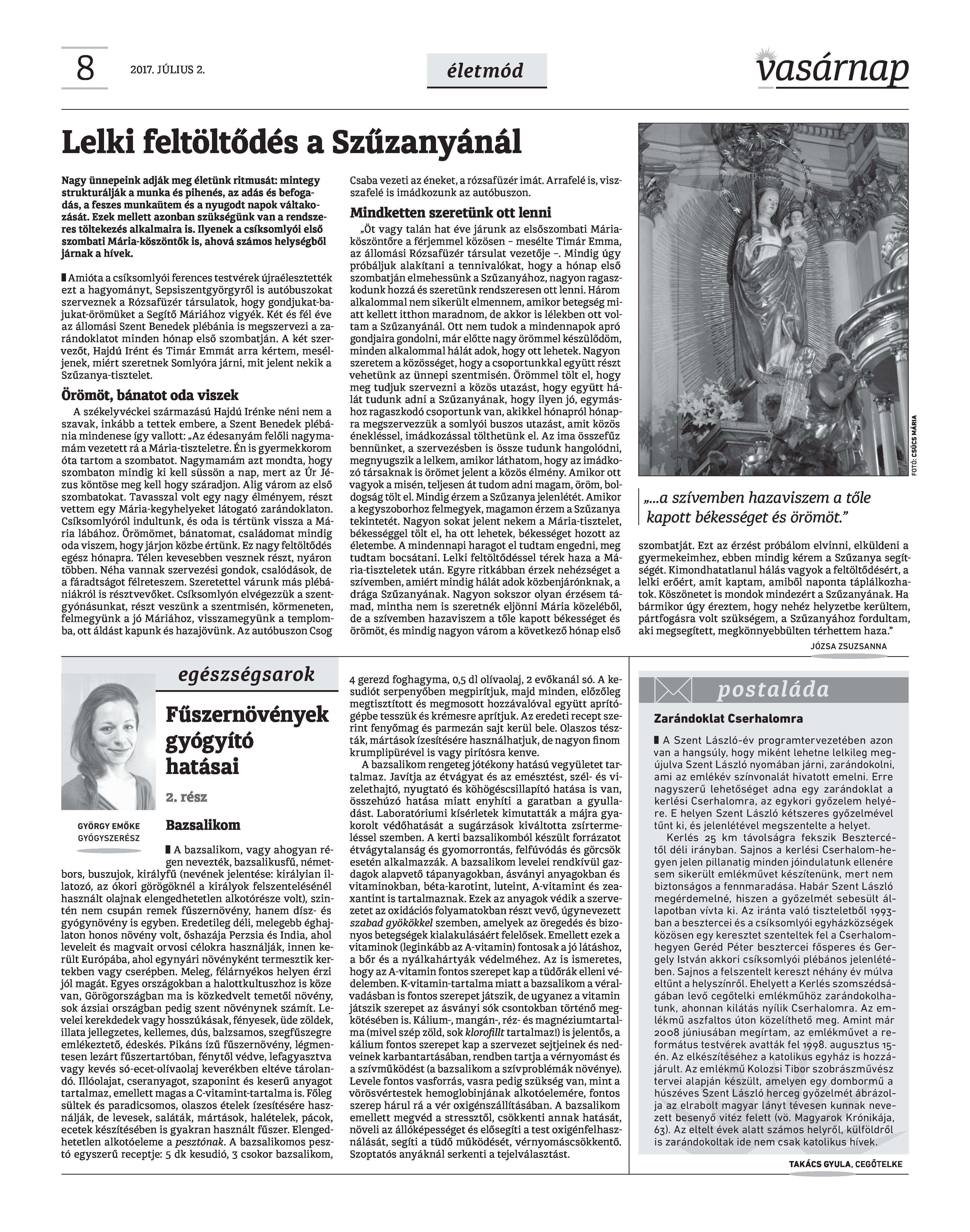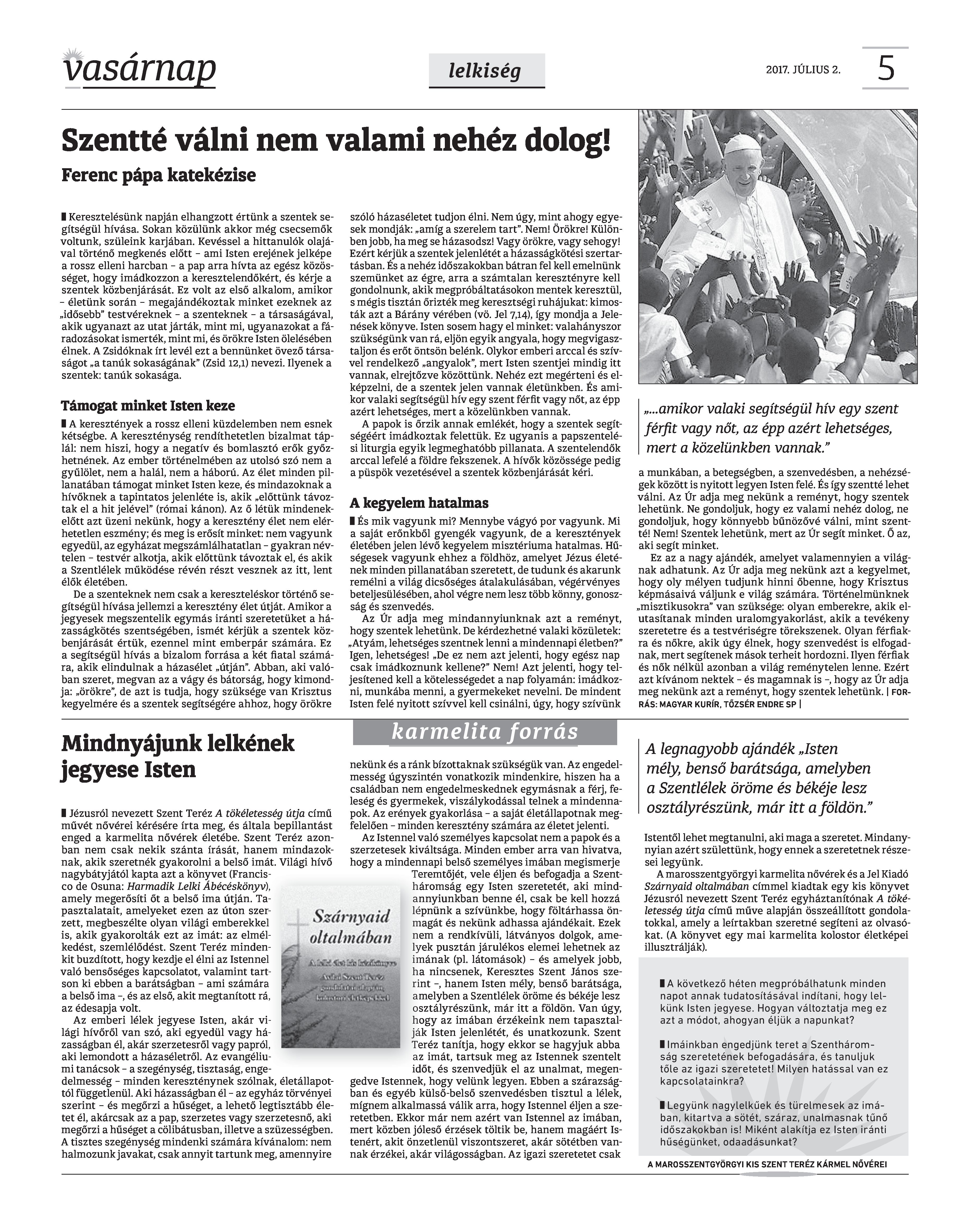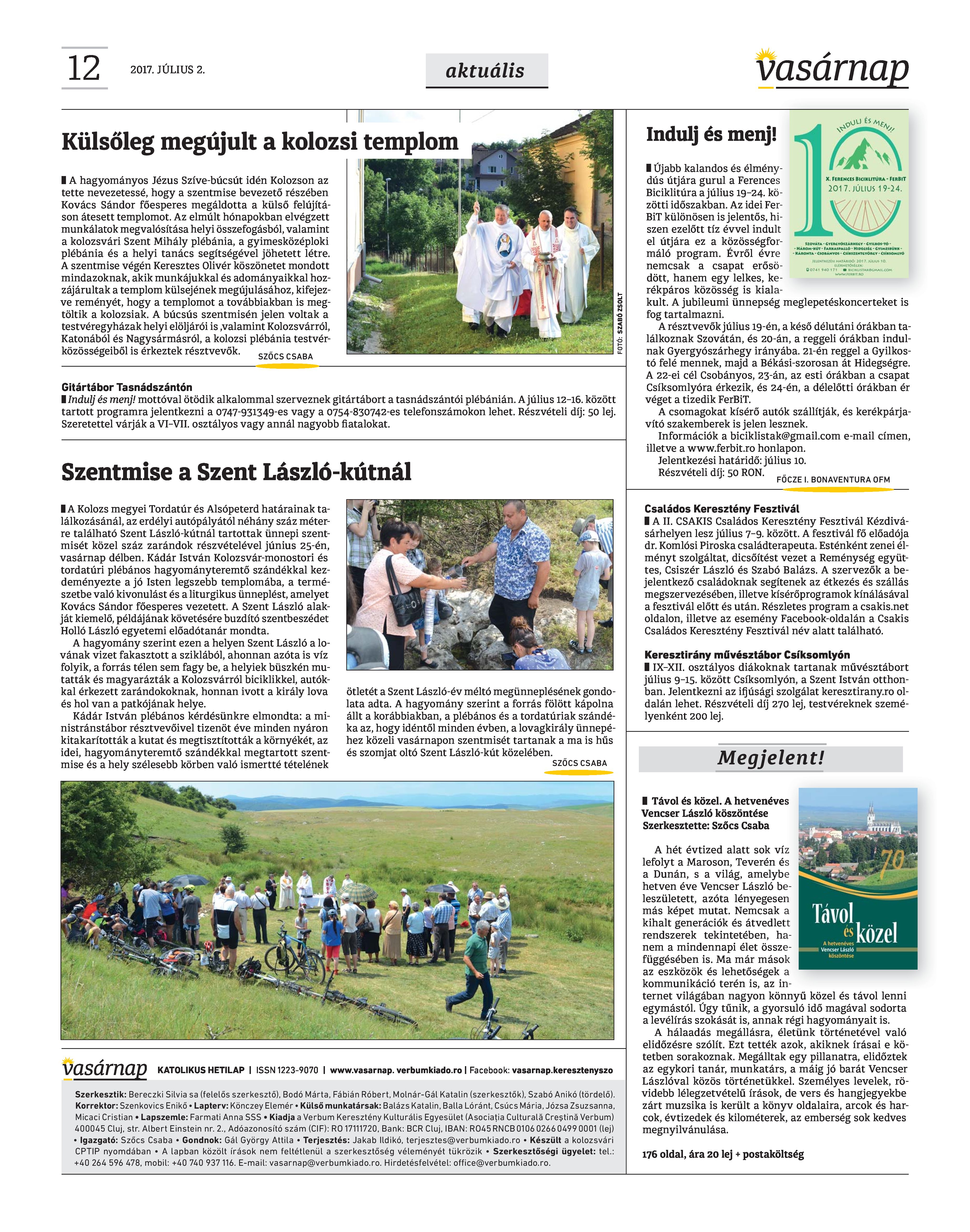 VASÁRNAP - 2017. JÚLIUS 2. A Vasárnap Katolikus Hetilap 2017. július 2. / XXVII. évf. / 27. számának digitális változata 1 / 12 2 & 3 / 12 4 & 5 / 12 6 & 7 / 12 8 & 9 / 12 10 & 11 / 12 12 / 12