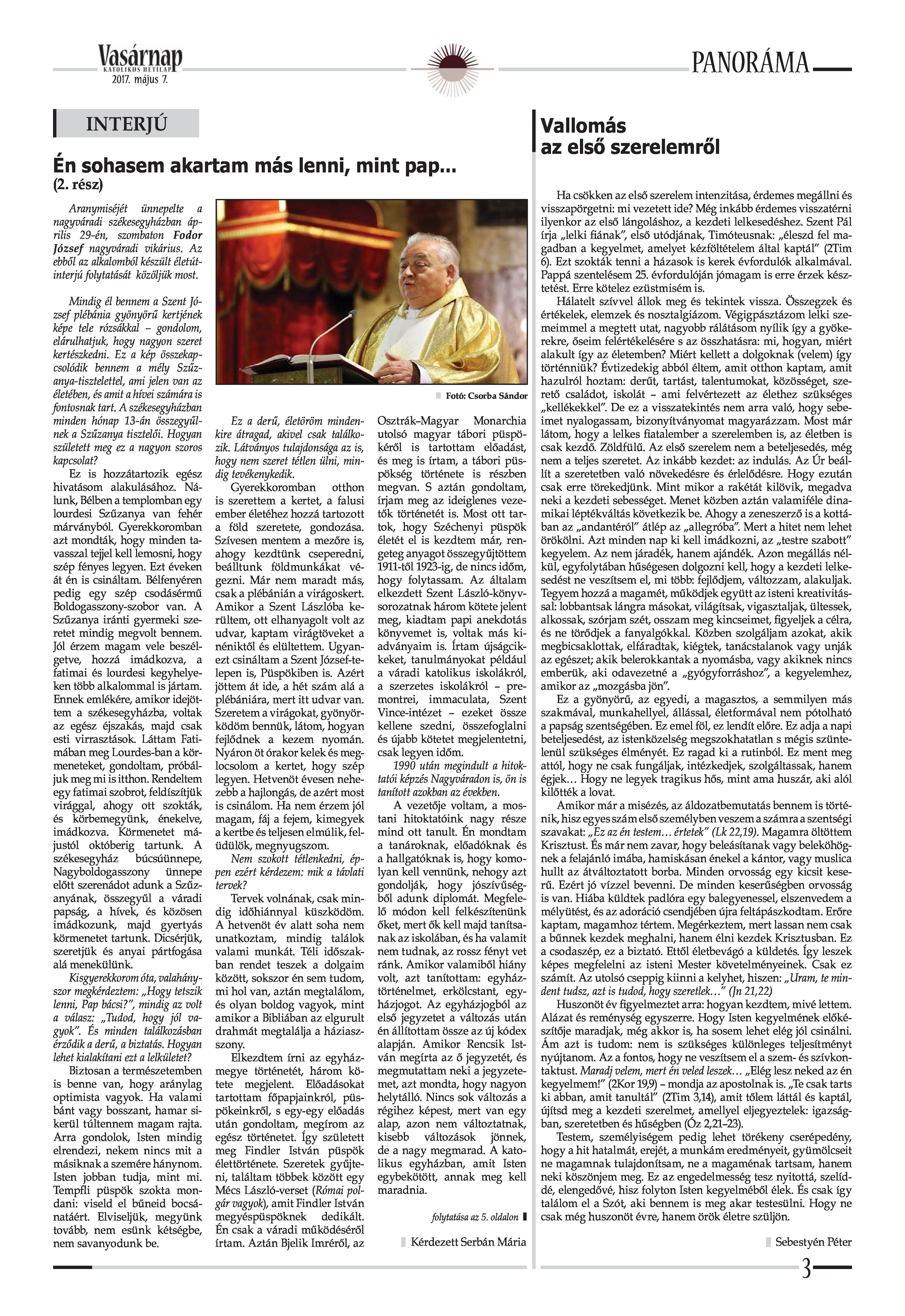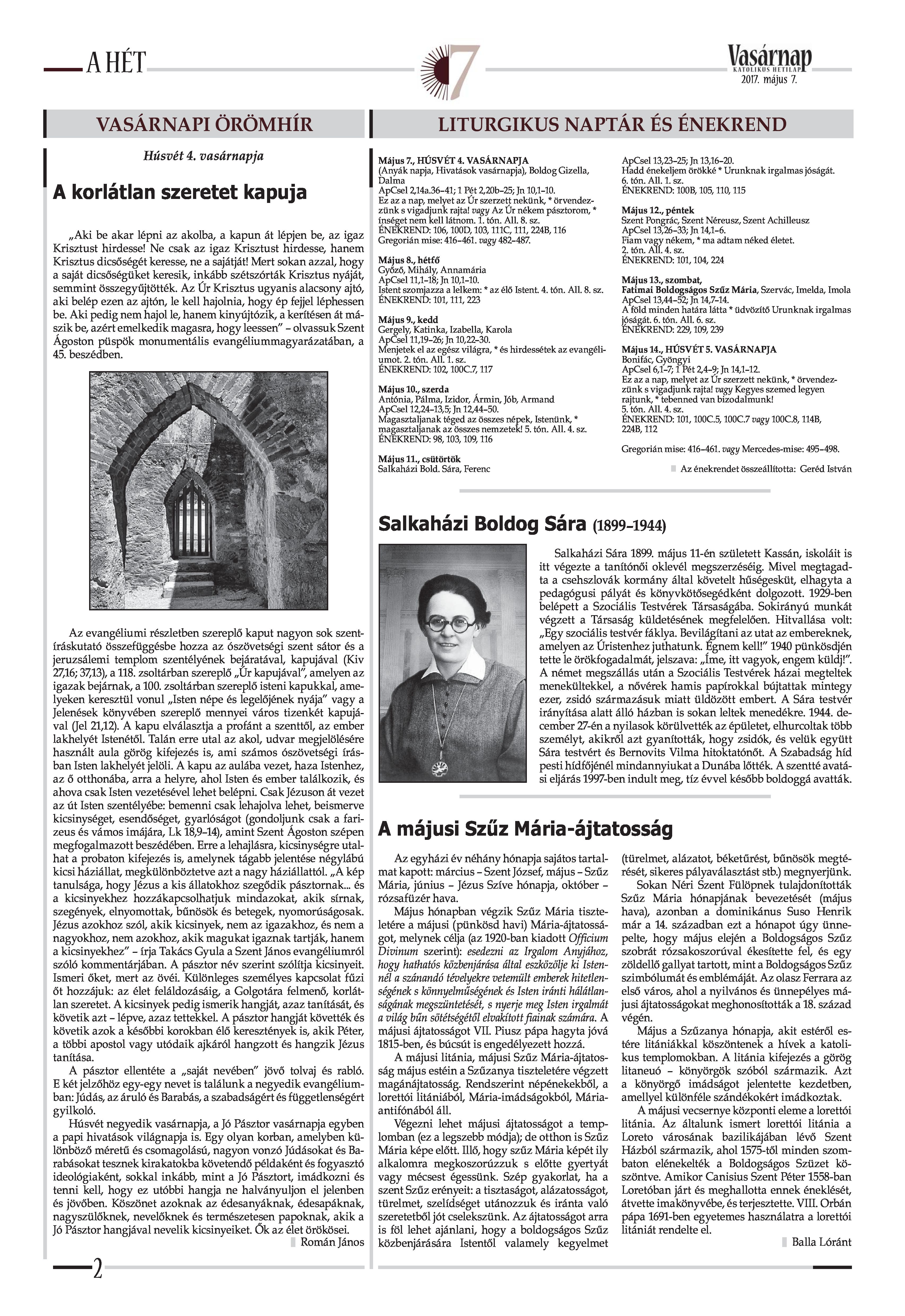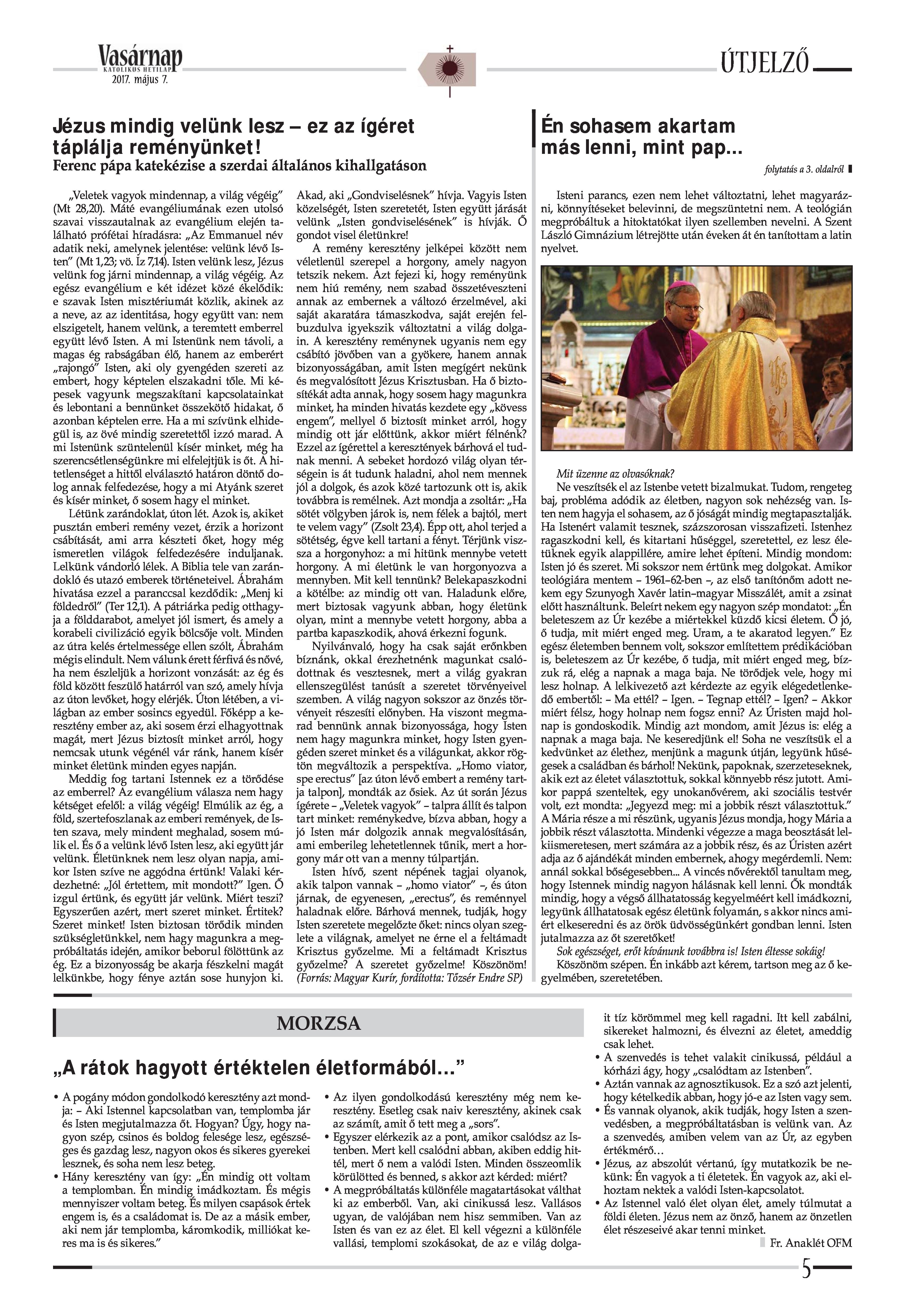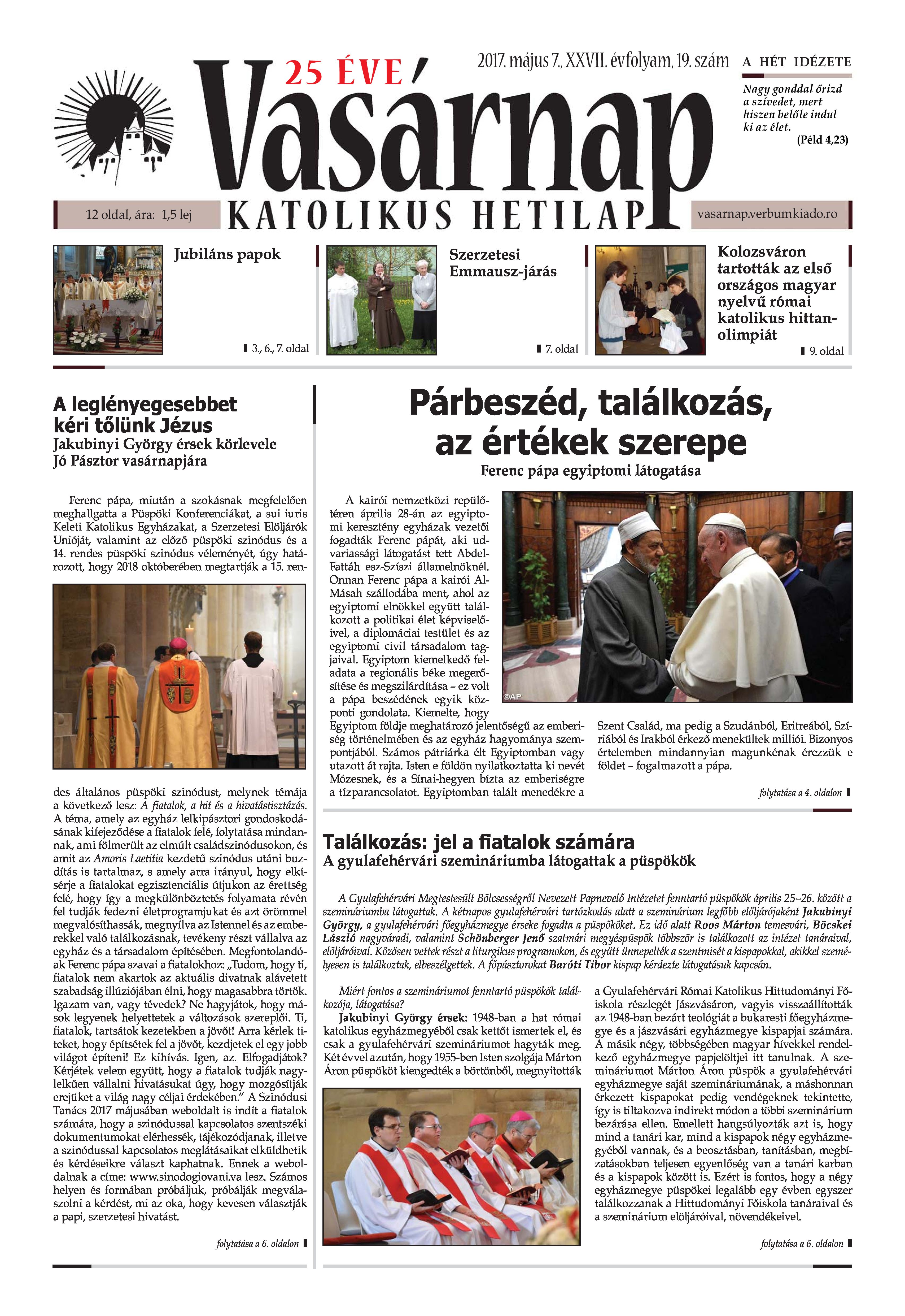 VASÁRNAP - 2017. MÁJUS 7. A Vasárnap Katolikus Hetilap 2017. május 7. / XXVII. évf. / 19. számának digitális változata. 1 / 12 2 & 3 / 12 4 & 5 / 12 6 & 7 / 12 8 & 9 / 12 10 & 11 / 12 12 / 12
