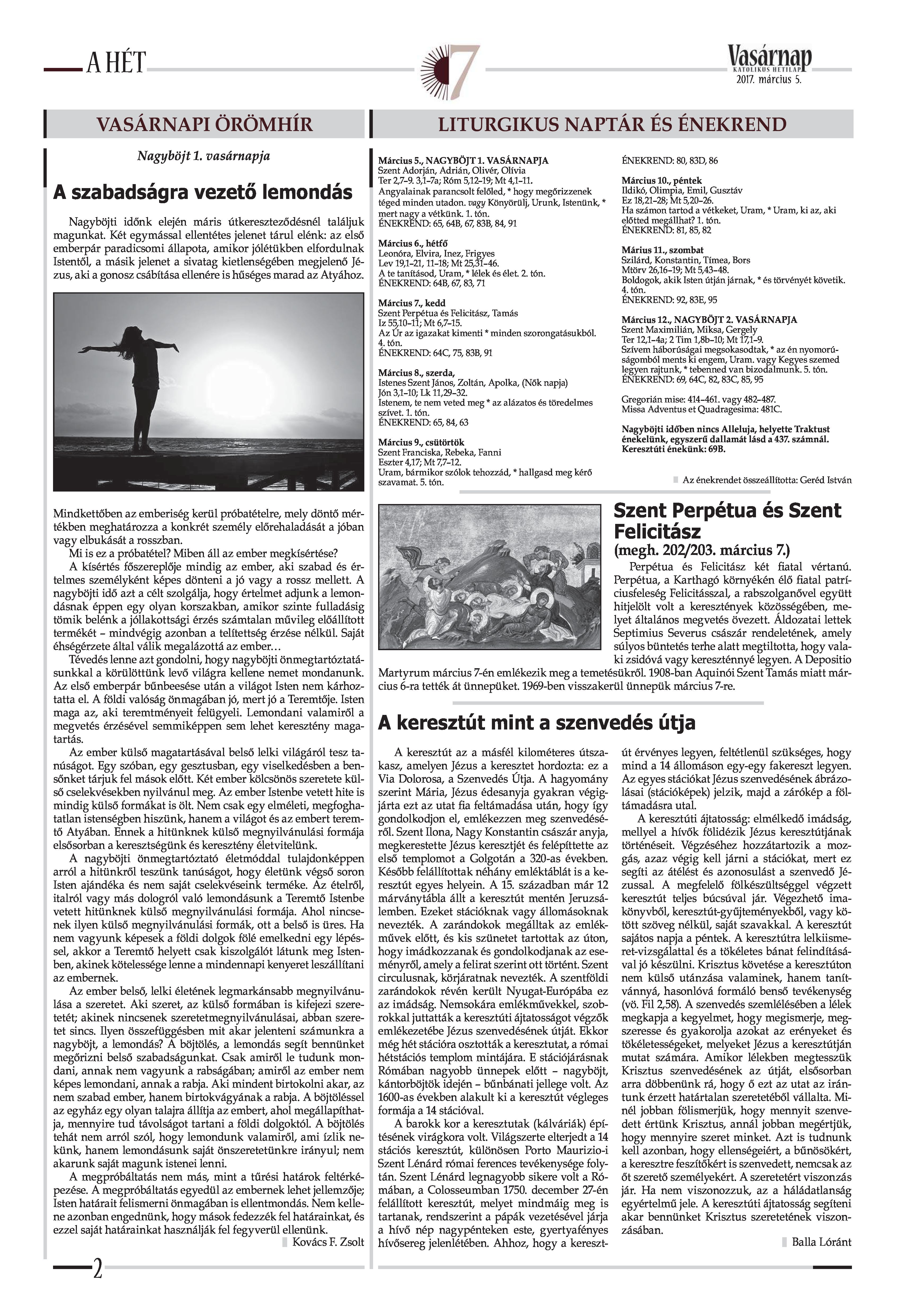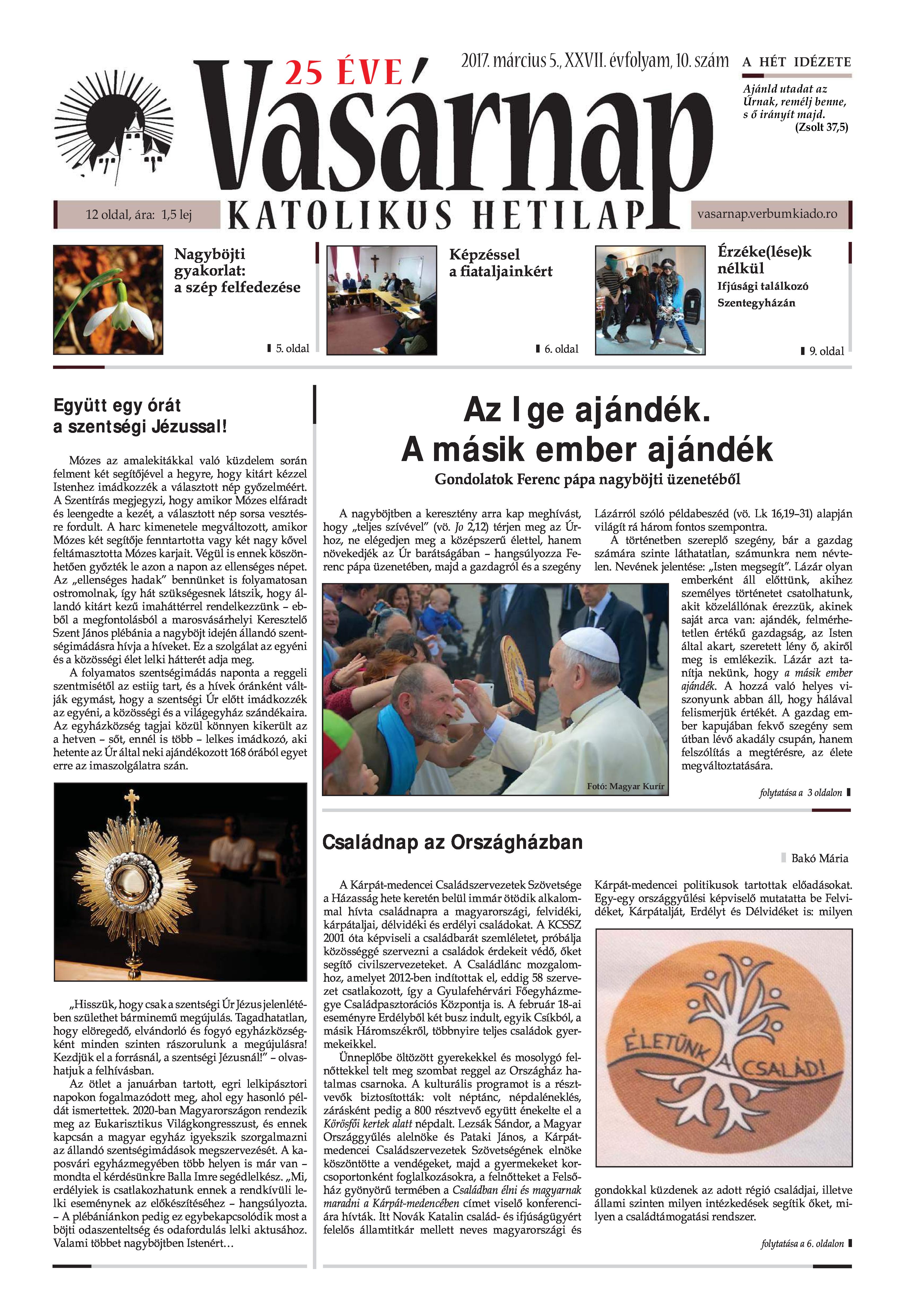 VASÁRNAP - 2017. MÁRCIUS 5. A Vasárnap Katolikus Hetilap 2017. március 5. / XXVII. évf. / 10. számának digitális változata. 1 / 12 2 & 3 / 12 4 & 5 / 12 6 & 7 / 12 8 & 9 / 12 10 & 11 / 12 12 / 12