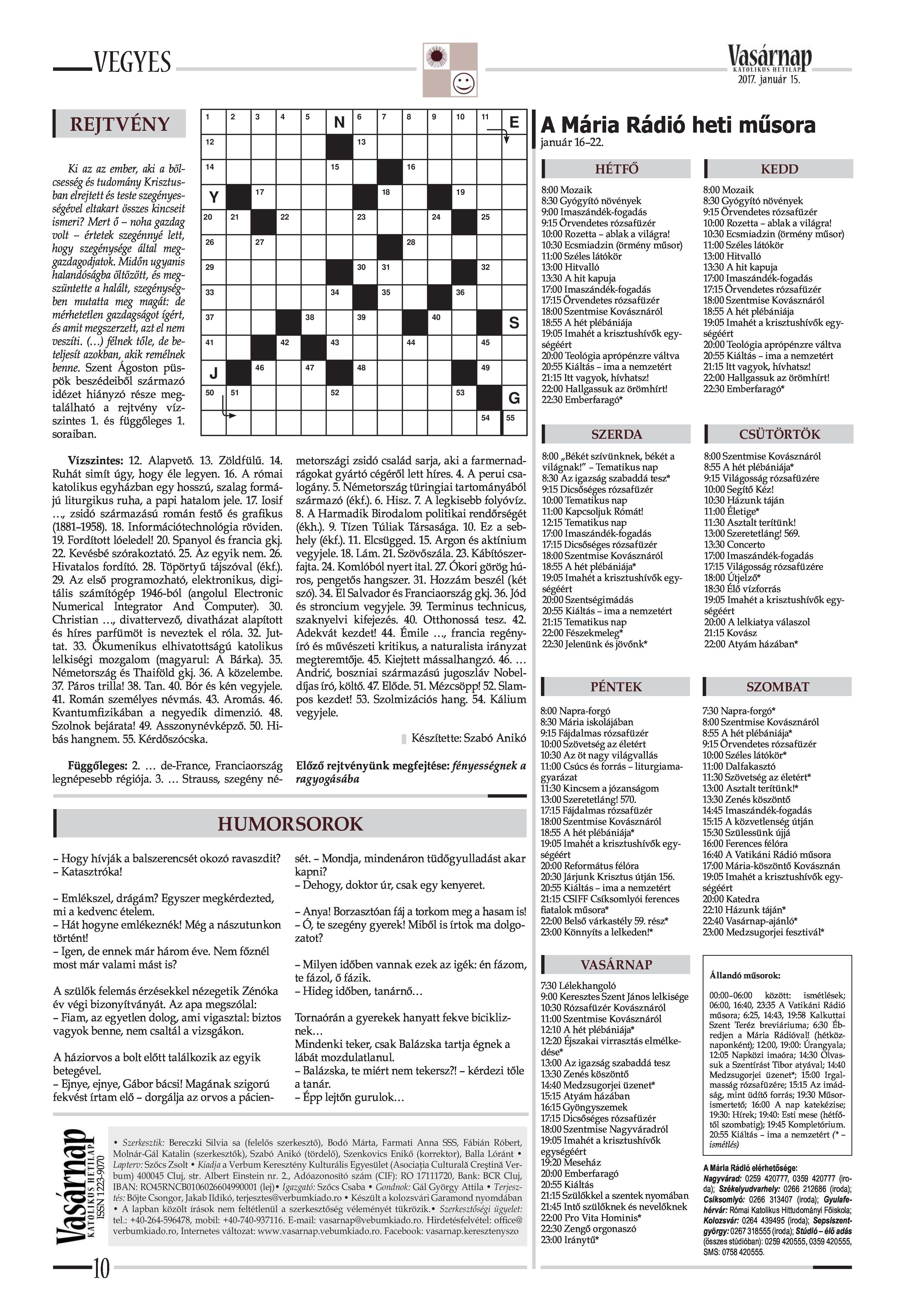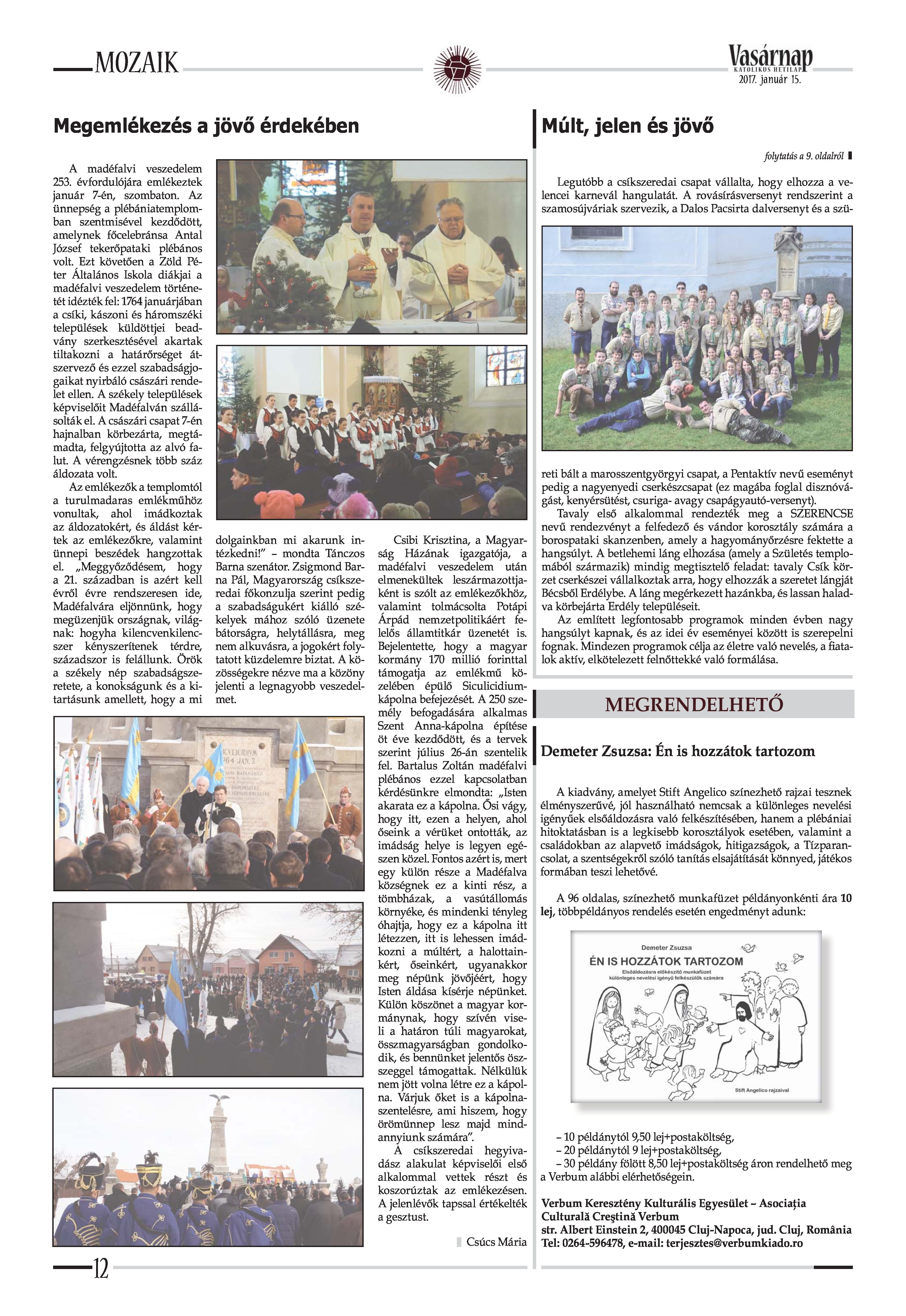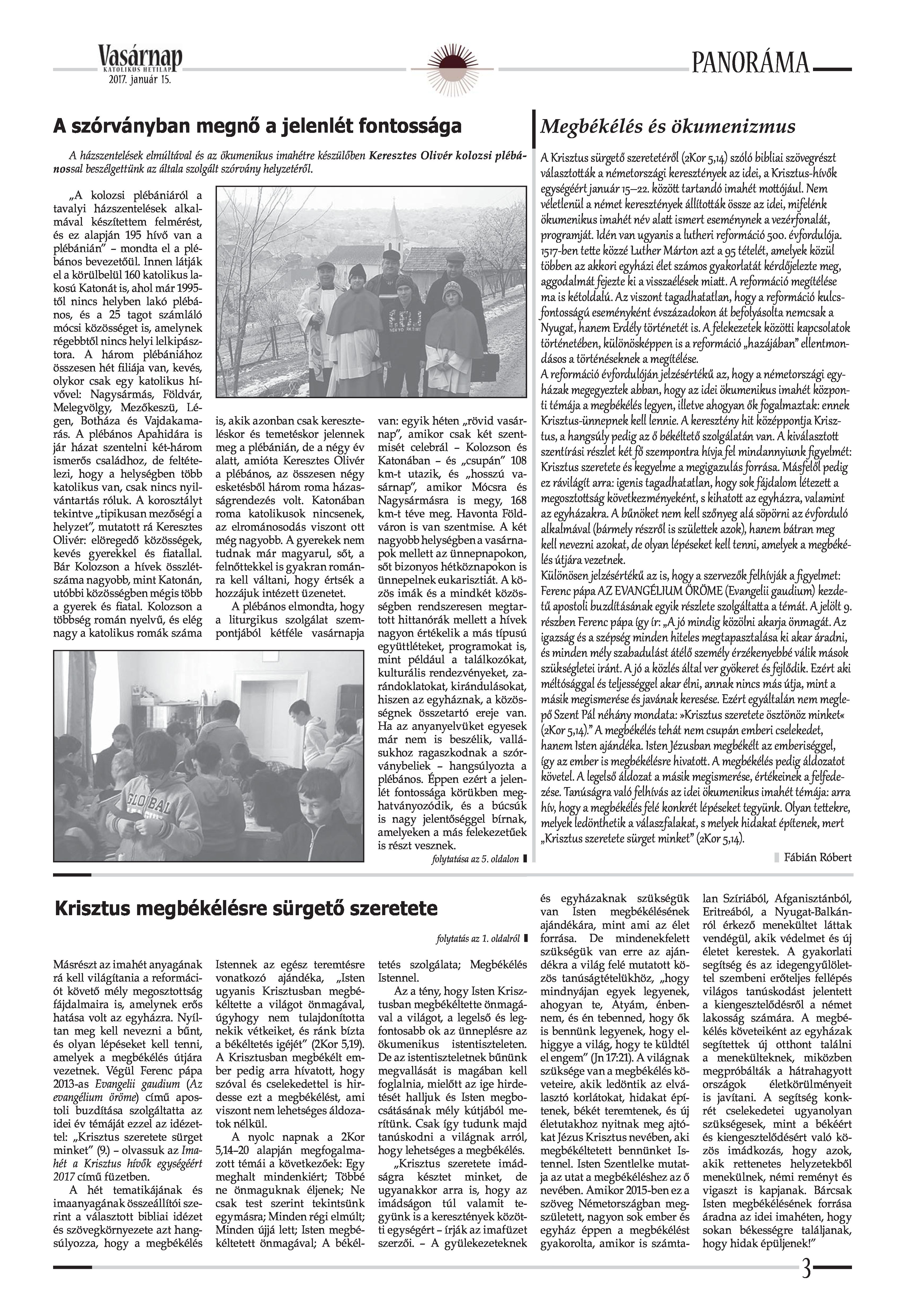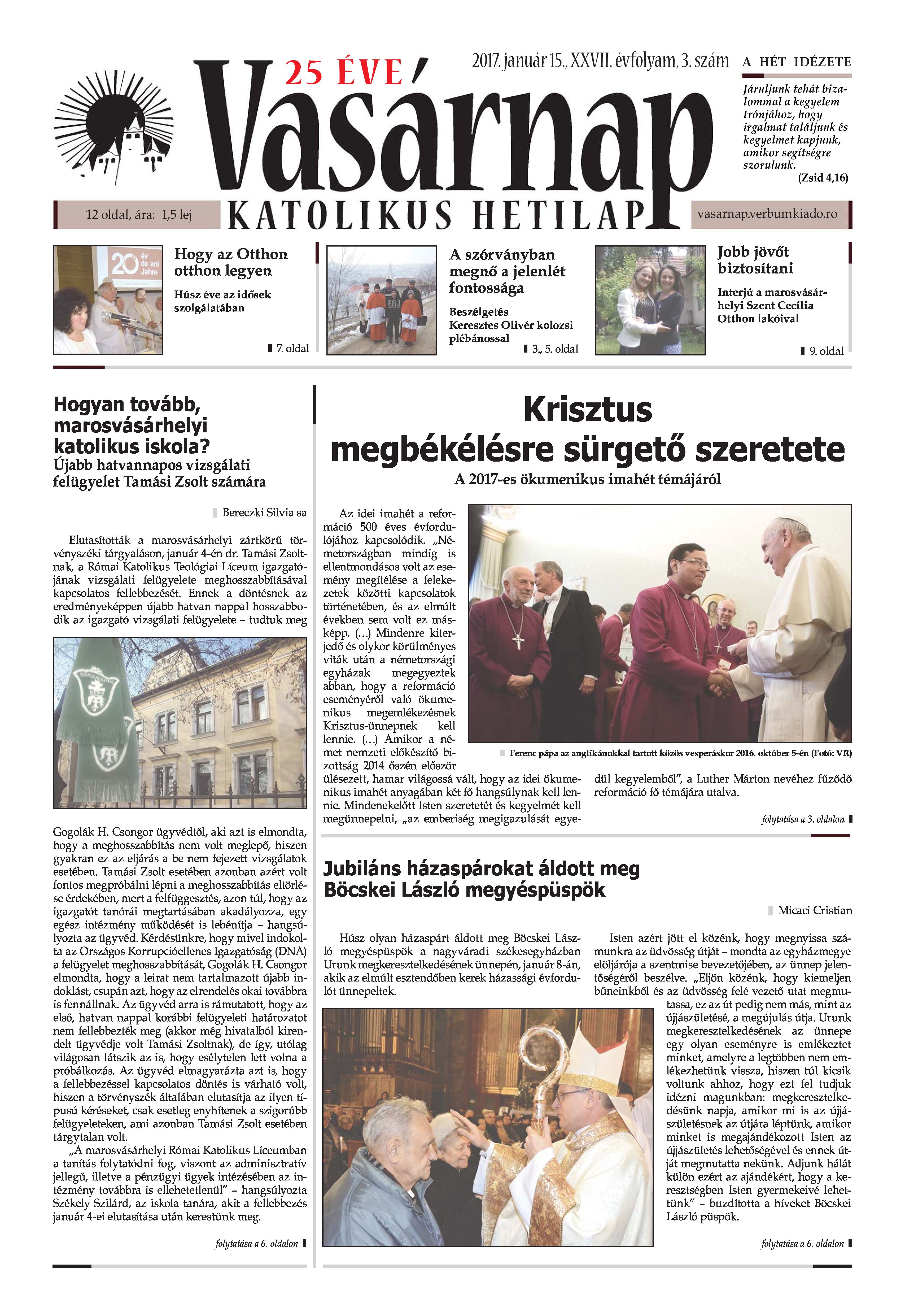 VASÁRNAP - 2017. JANUÁR 15. A Vasárnap Katolikus Hetilap 2017. január 15. / XXVII. évf. / 3. számának digitális változata. 1 / 12 2 & 3 / 12 4 & 5 / 12 6 & 7 / 12 8 & 9 / 12 10 & 11 / 12 12 / 12