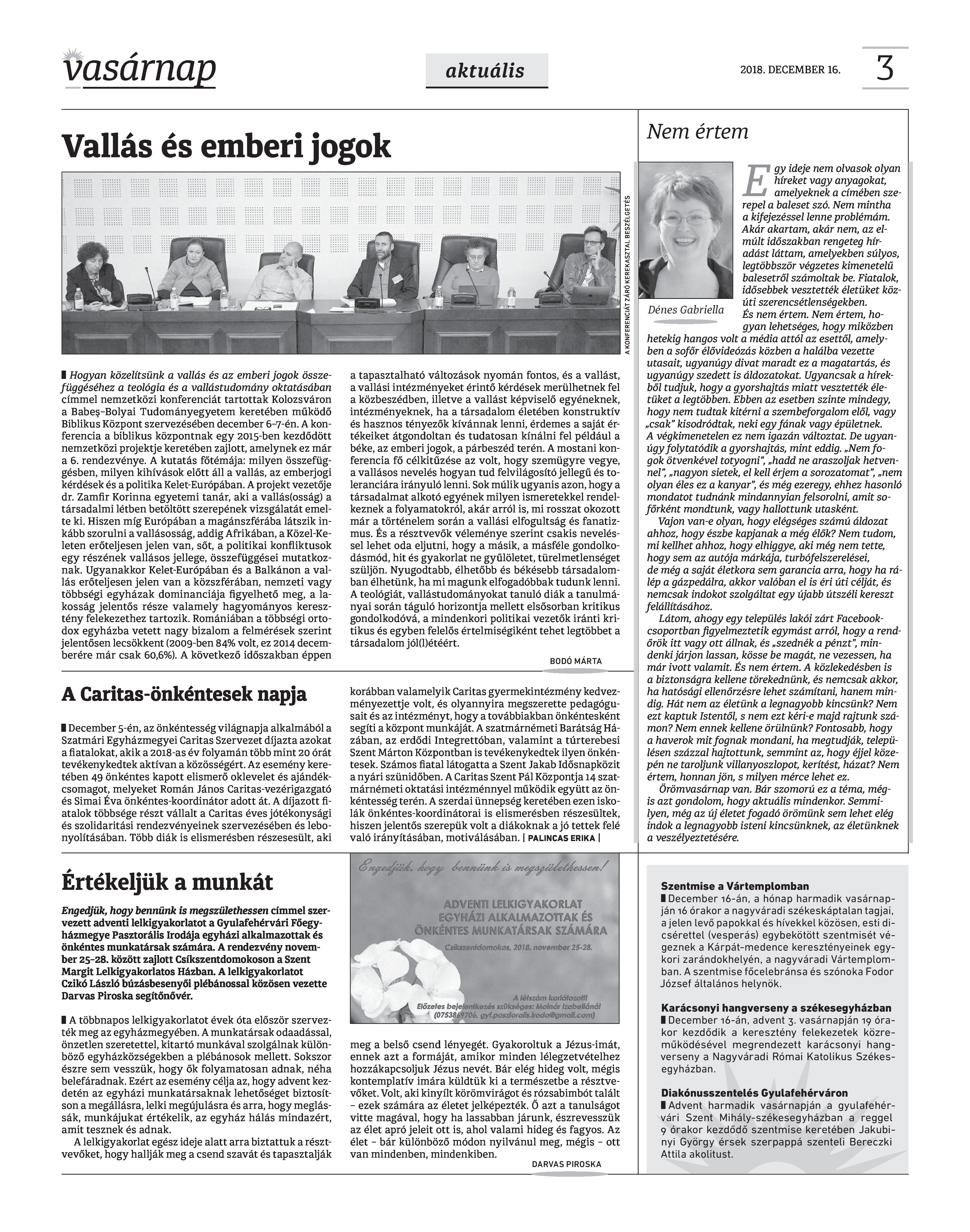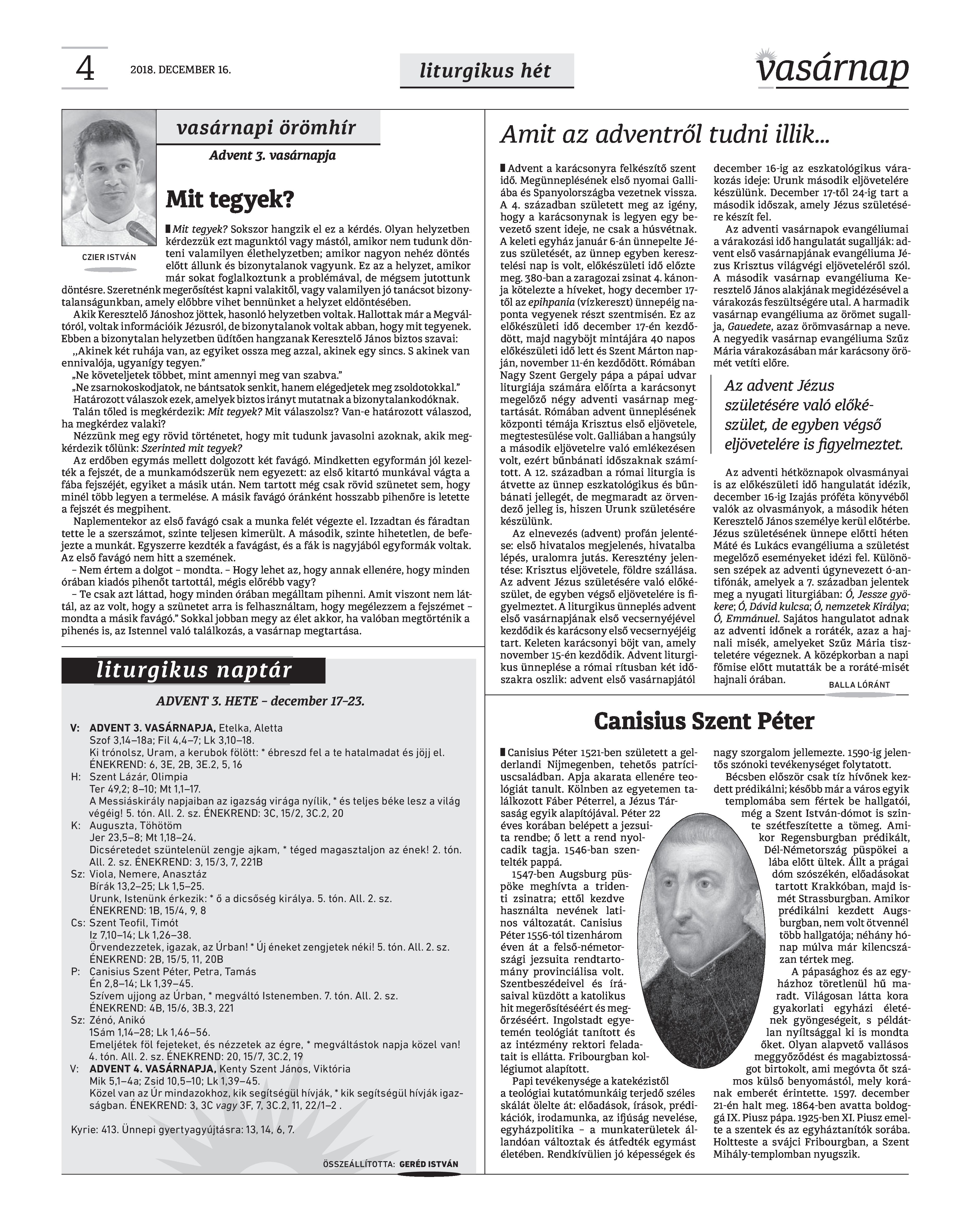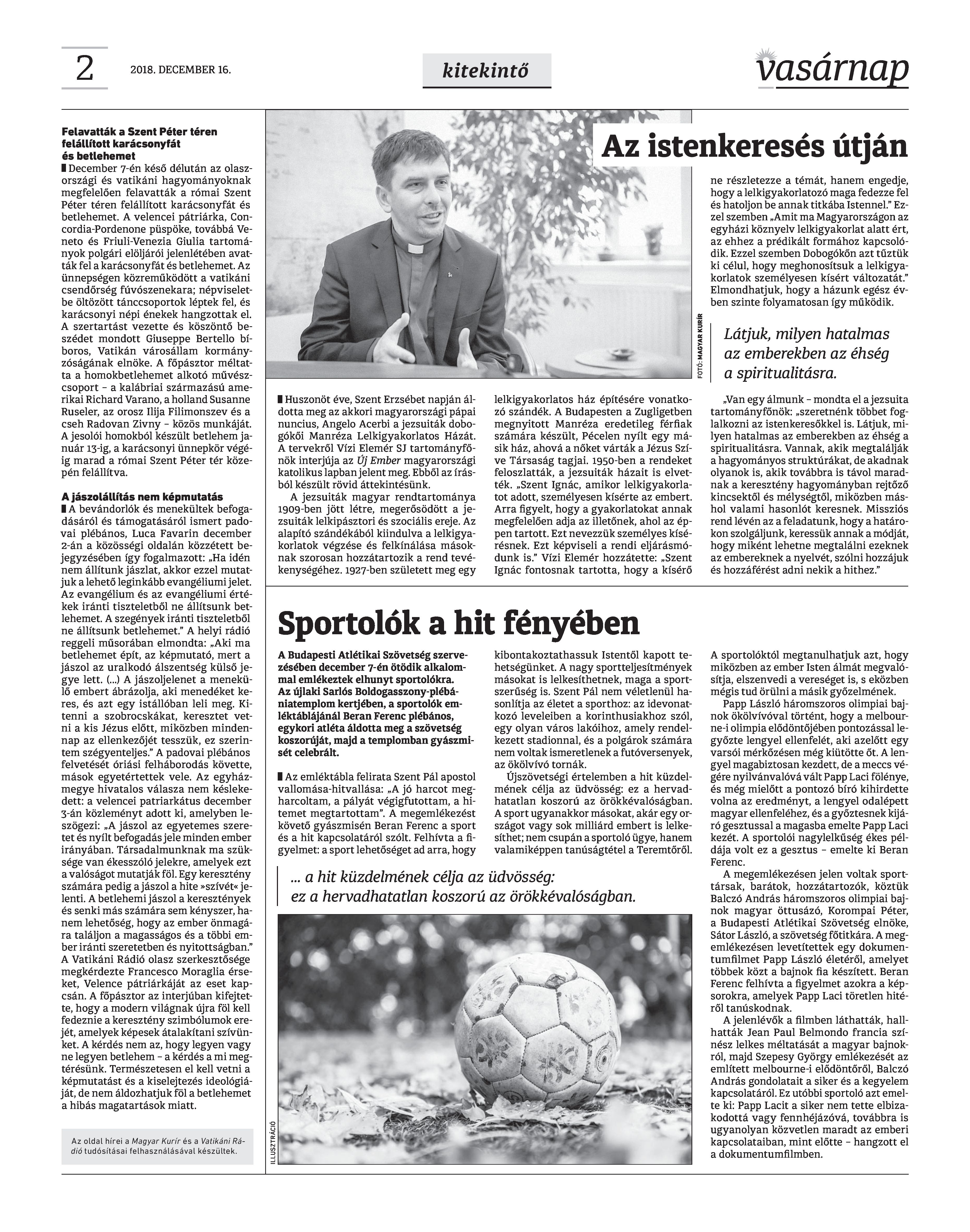 Vasárnap Katolikus Hetilap 2018. december 16. / XXVIII. évf. / 50. számának digitális változata.