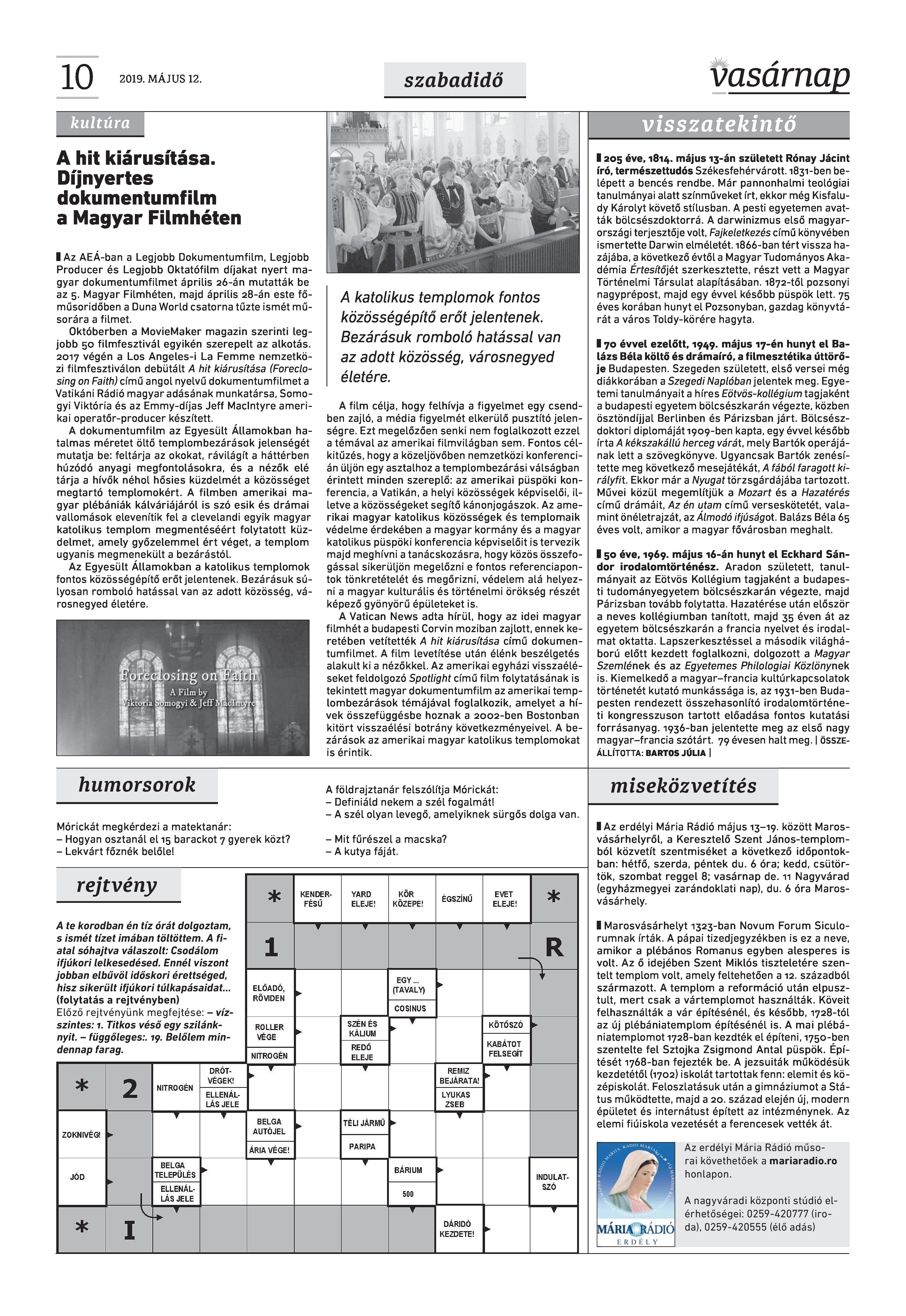 Vasárnap Katolikus Hetilap 2019. május 12. / XXIX évf. / 19. számának digitális változata.