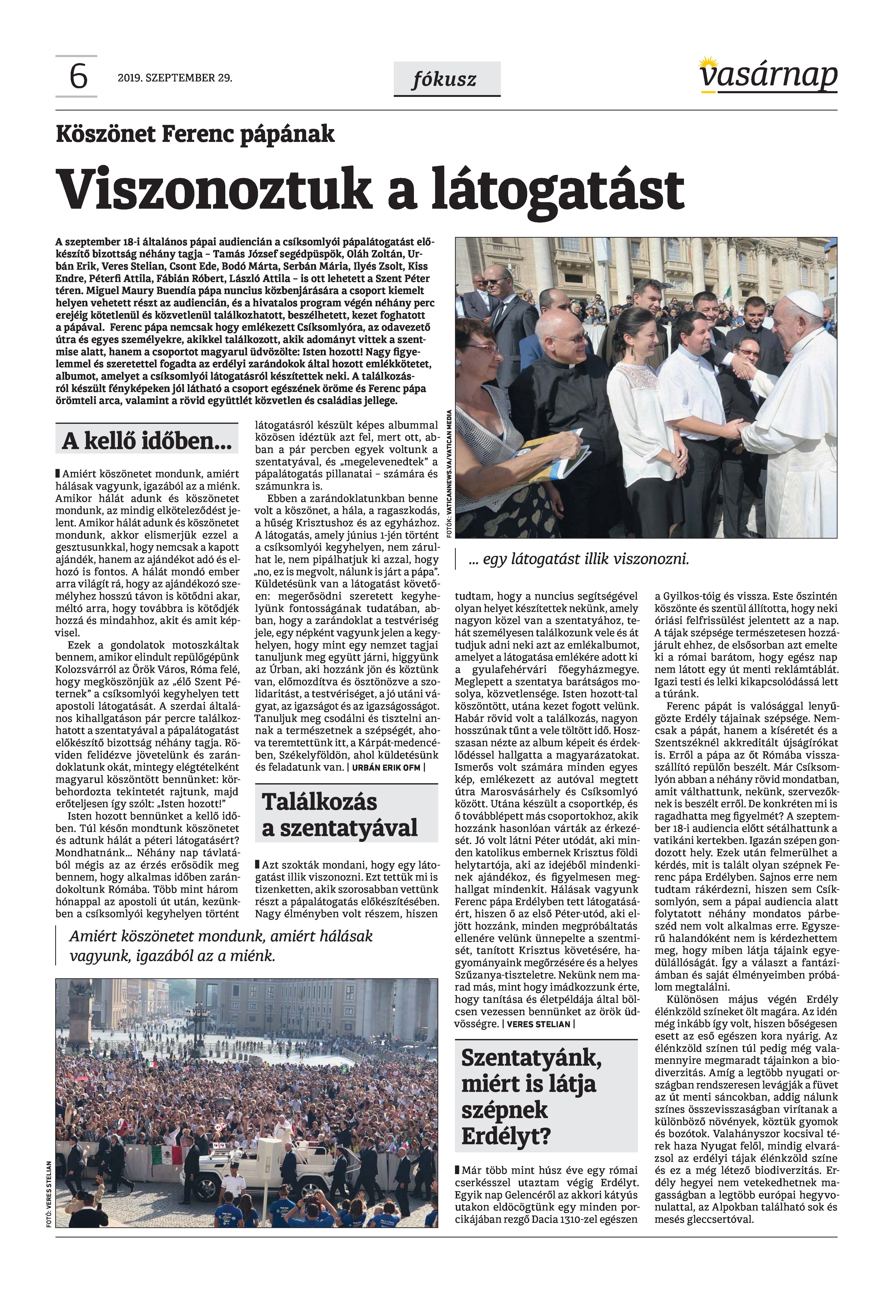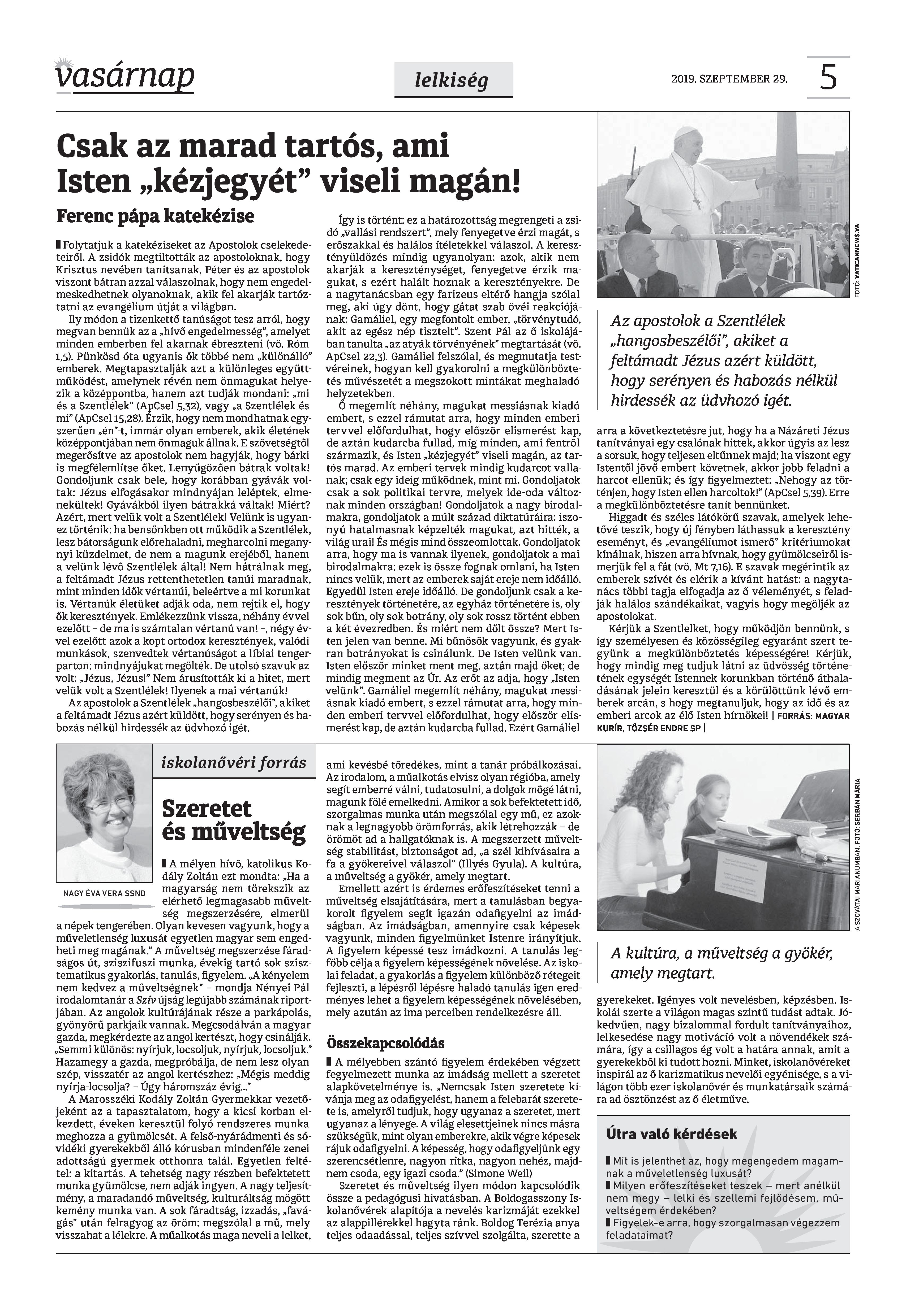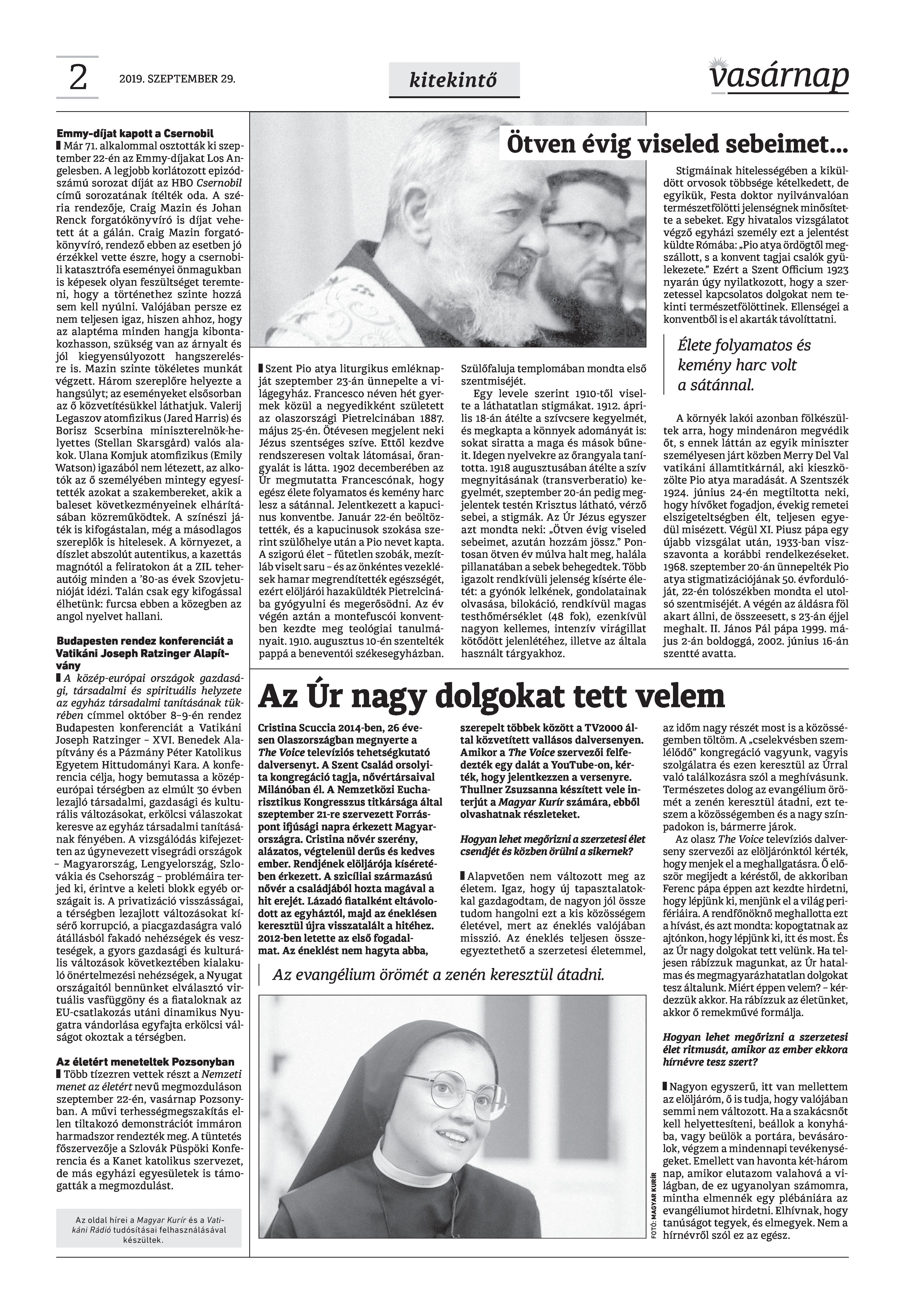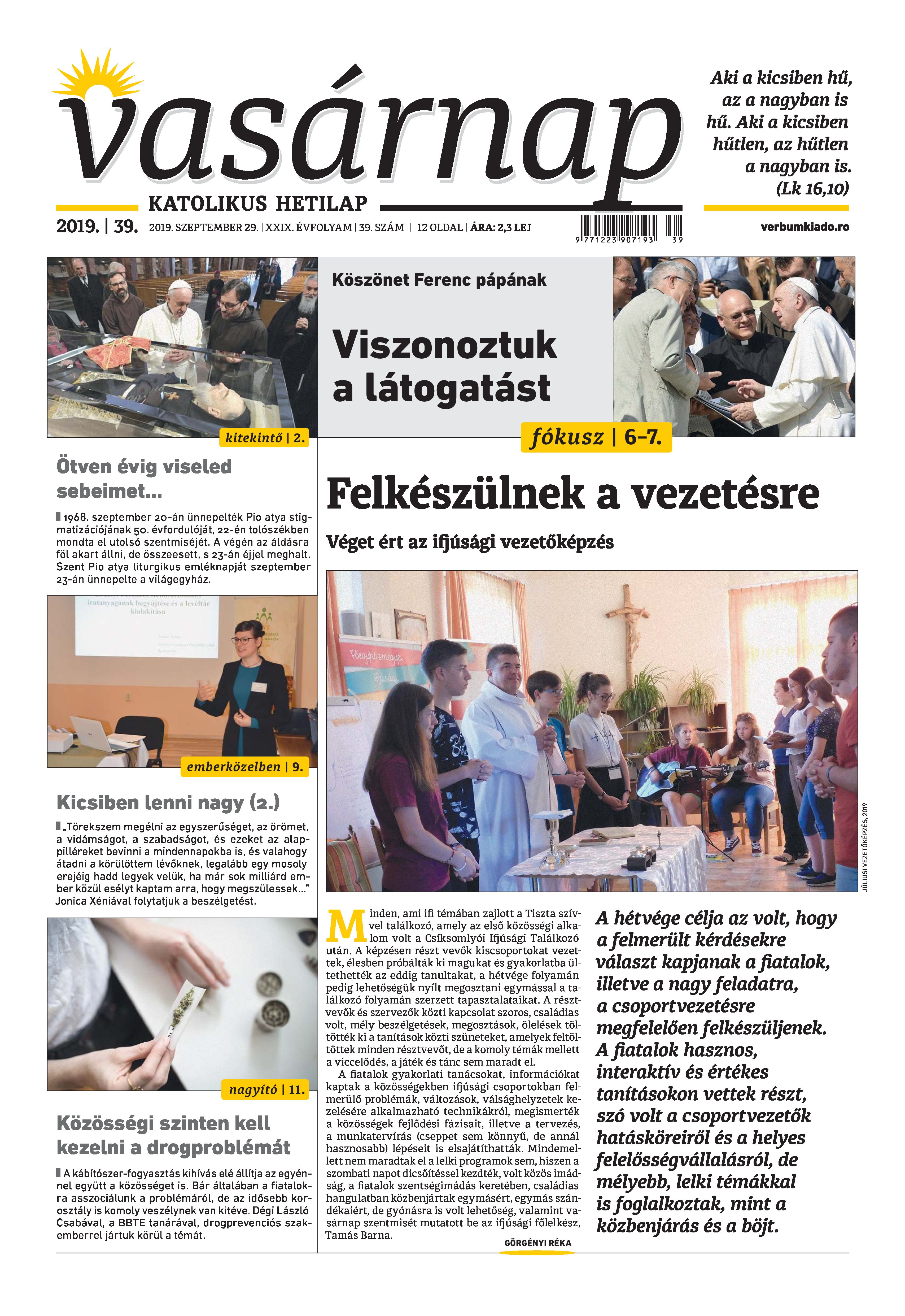 VASÁRNAP - 2019. SZEPTEMBER 29. A Vasárnap Katolikus Hetilap 2019. szeptember 29. / XXIX évf. / 39. számának digitális változata. 1 / 12 2 & 3 / 12 4 & 5 / 12 6 & 7 / 12 8 & 9 / 12 10 & 11 / 12 12 / 12