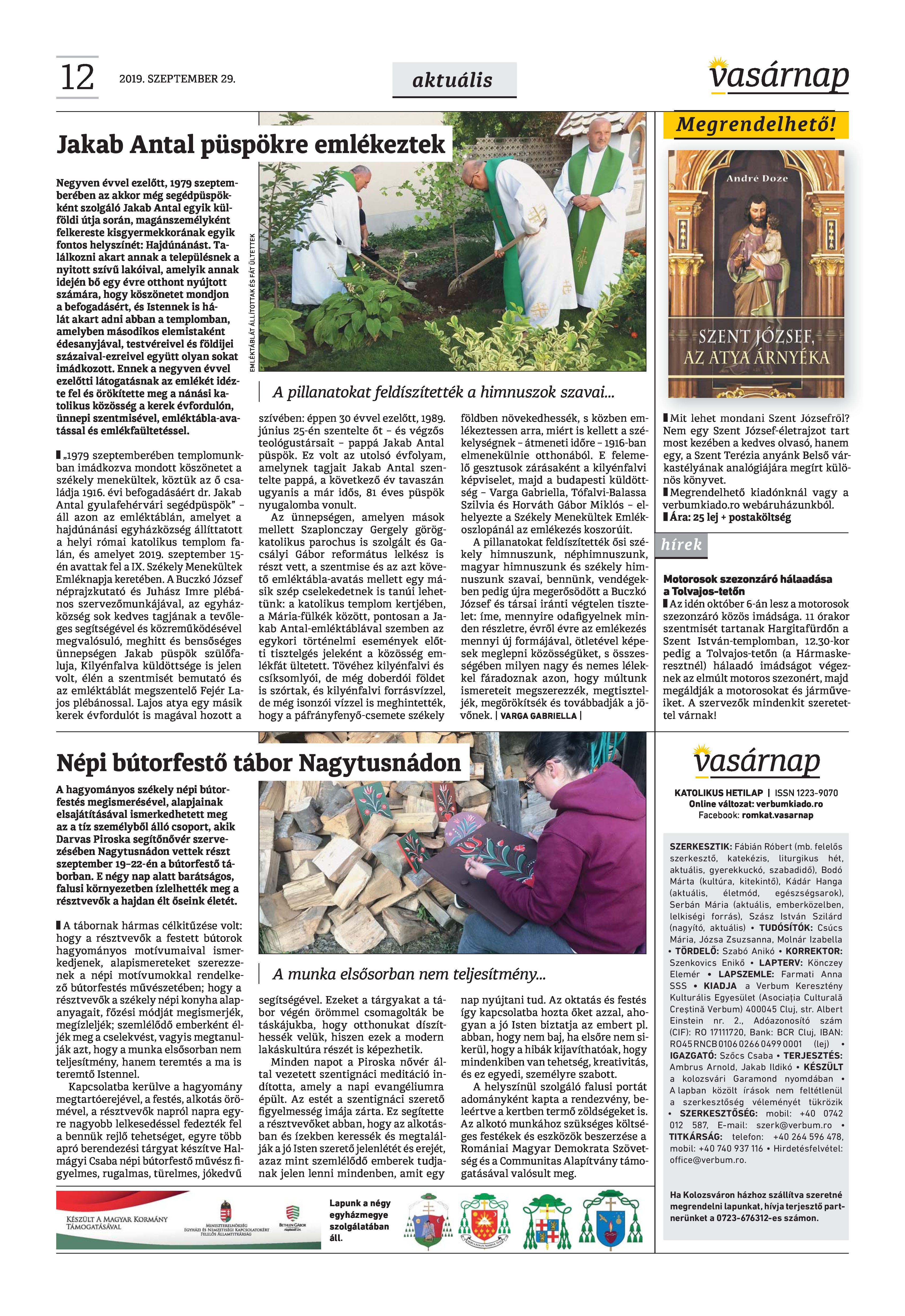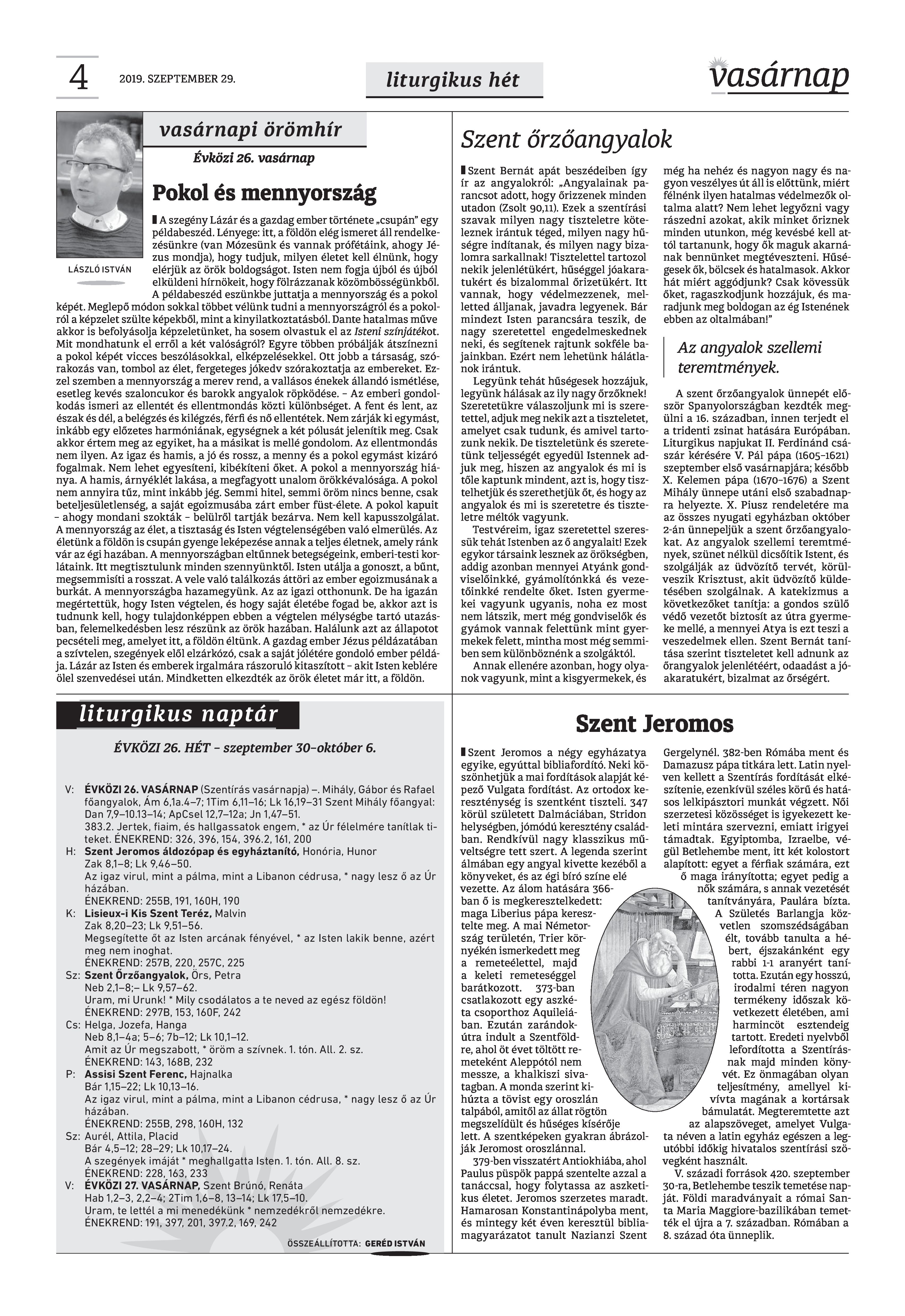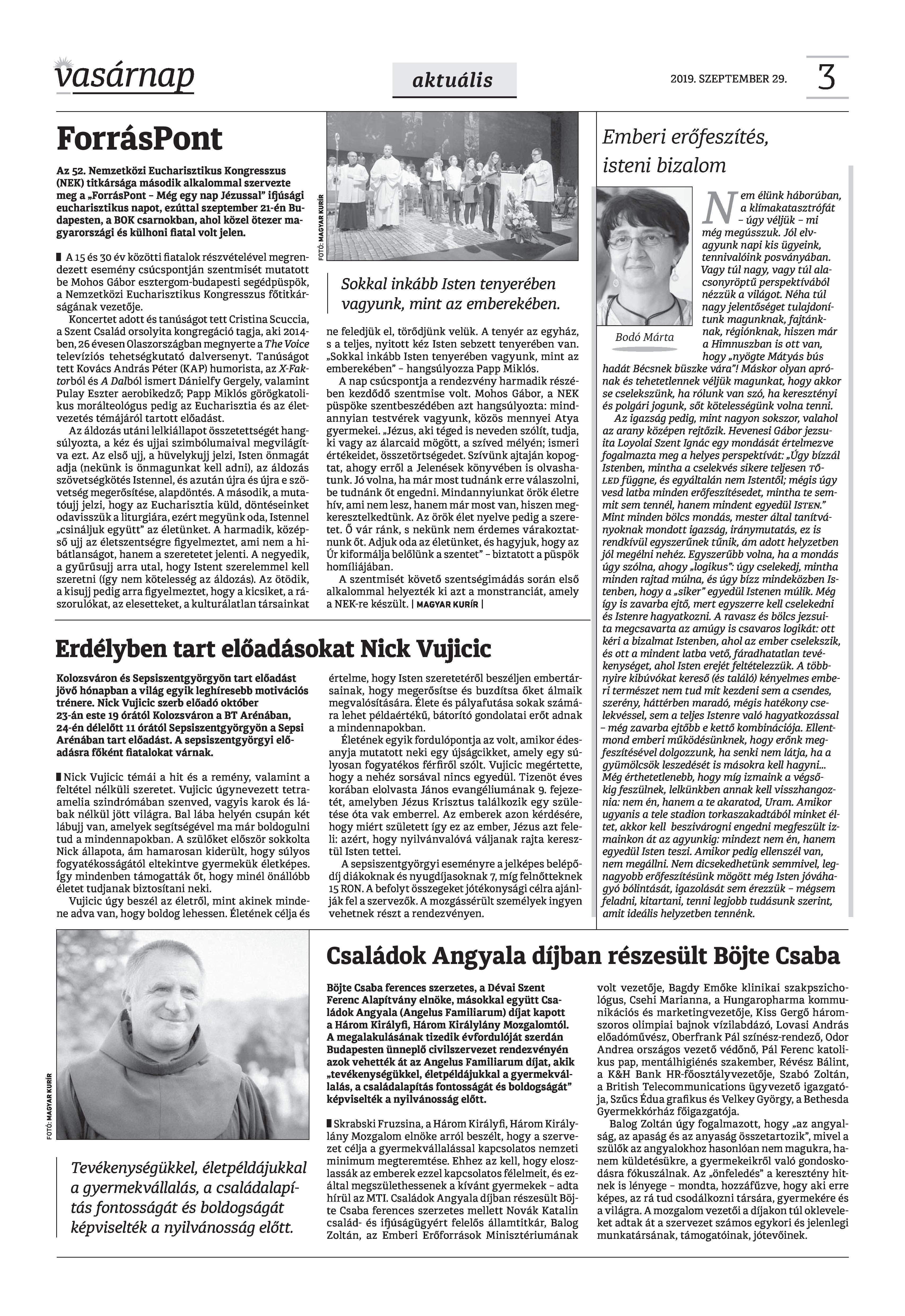 VASÁRNAP - 2019. SZEPTEMBER 29. A Vasárnap Katolikus Hetilap 2019. szeptember 29. / XXIX évf. / 39. számának digitális változata. 1 / 12 2 & 3 / 12 4 & 5 / 12 6 & 7 / 12 8 & 9 / 12 10 & 11 / 12 12 / 12