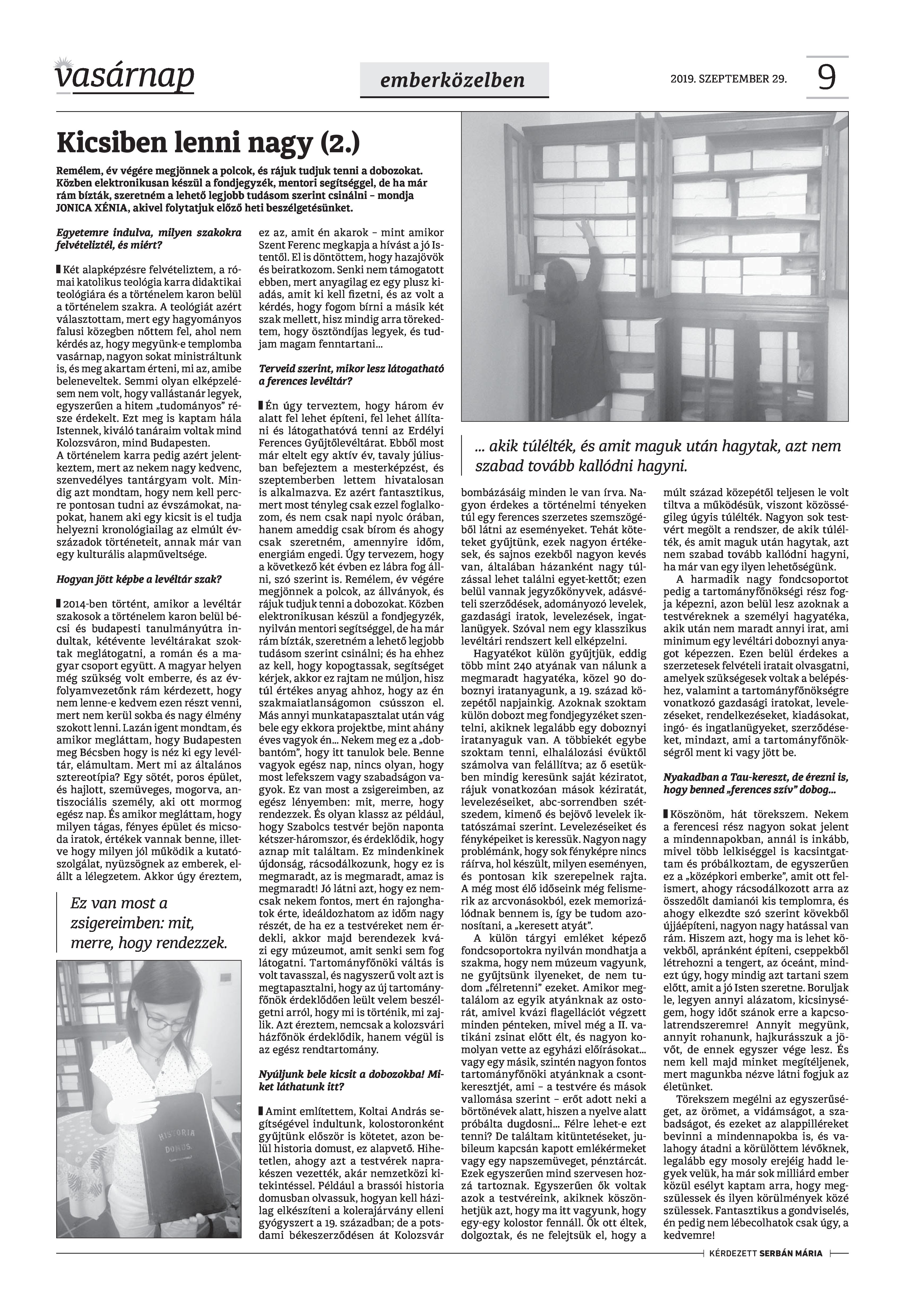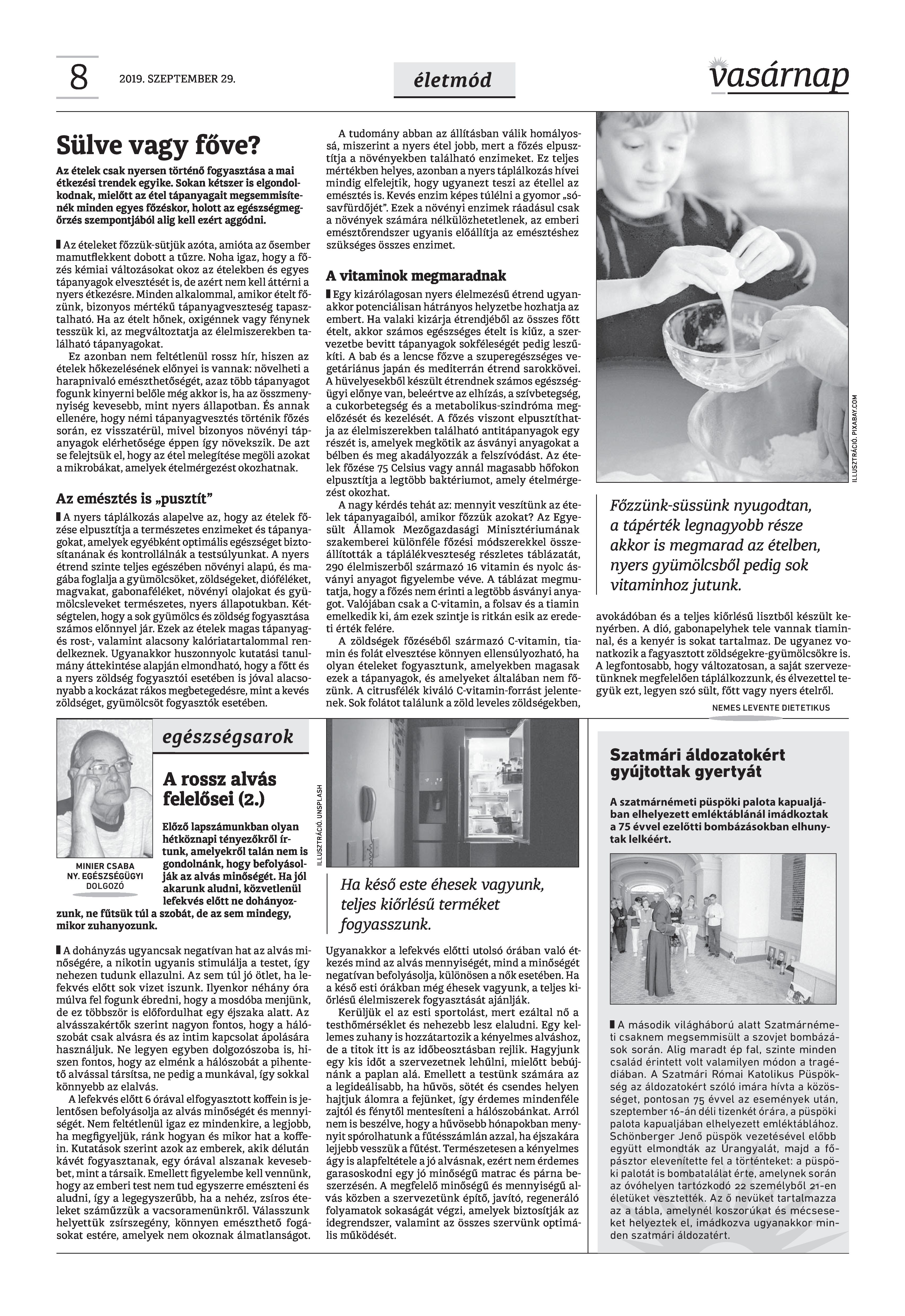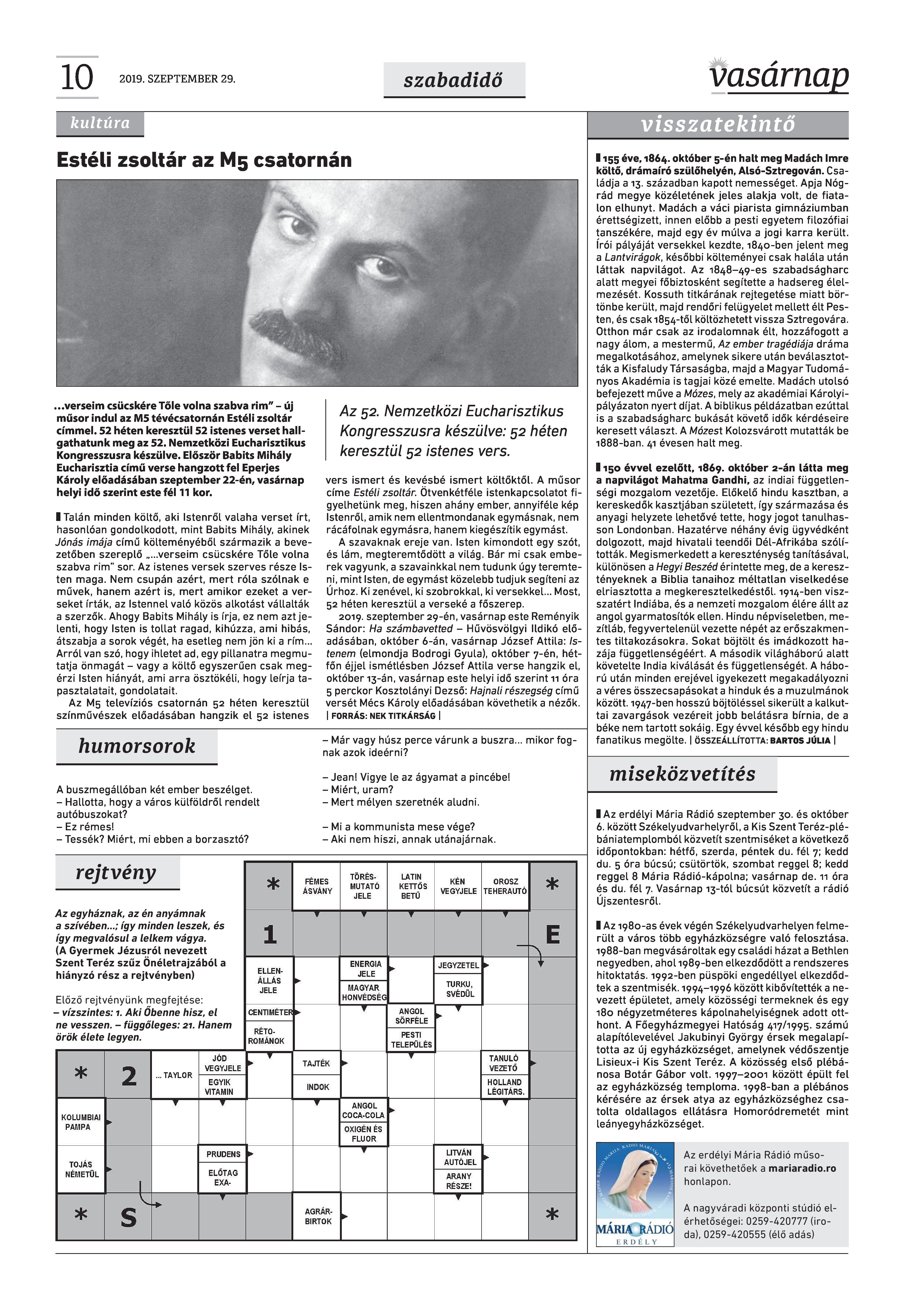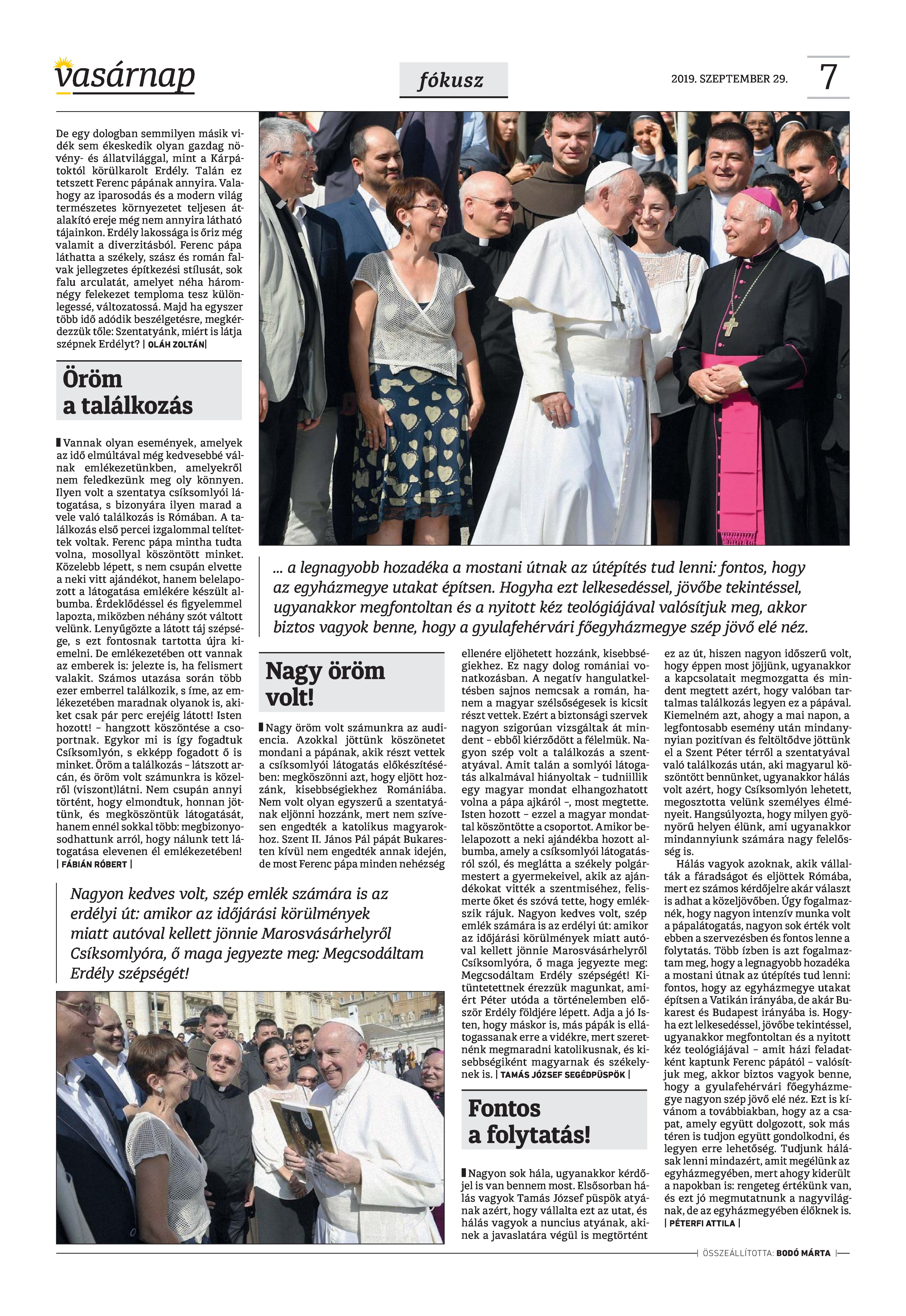 VASÁRNAP - 2019. SZEPTEMBER 29. A Vasárnap Katolikus Hetilap 2019. szeptember 29. / XXIX évf. / 39. számának digitális változata. 1 / 12 2 & 3 / 12 4 & 5 / 12 6 & 7 / 12 8 & 9 / 12 10 & 11 / 12 12 / 12