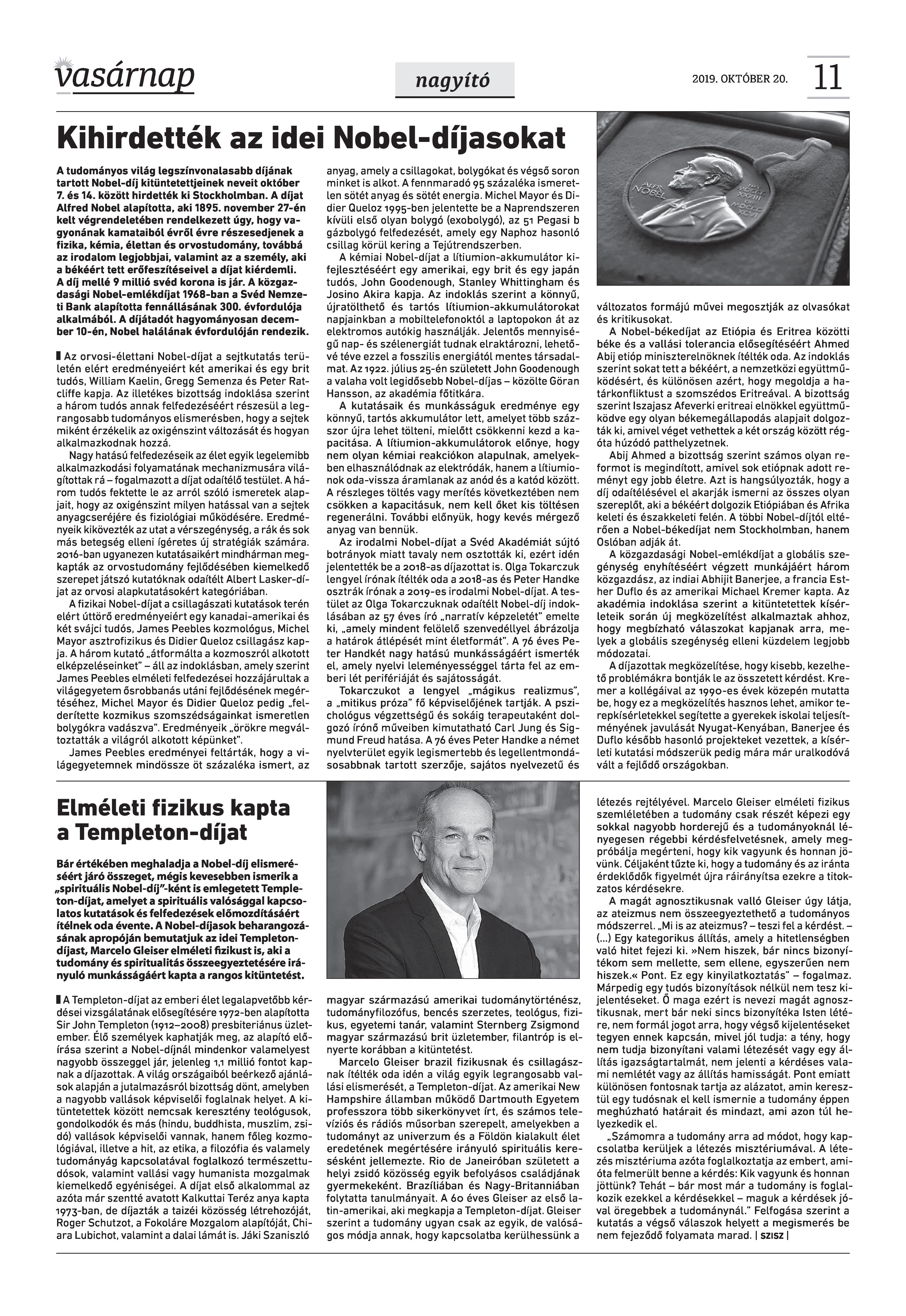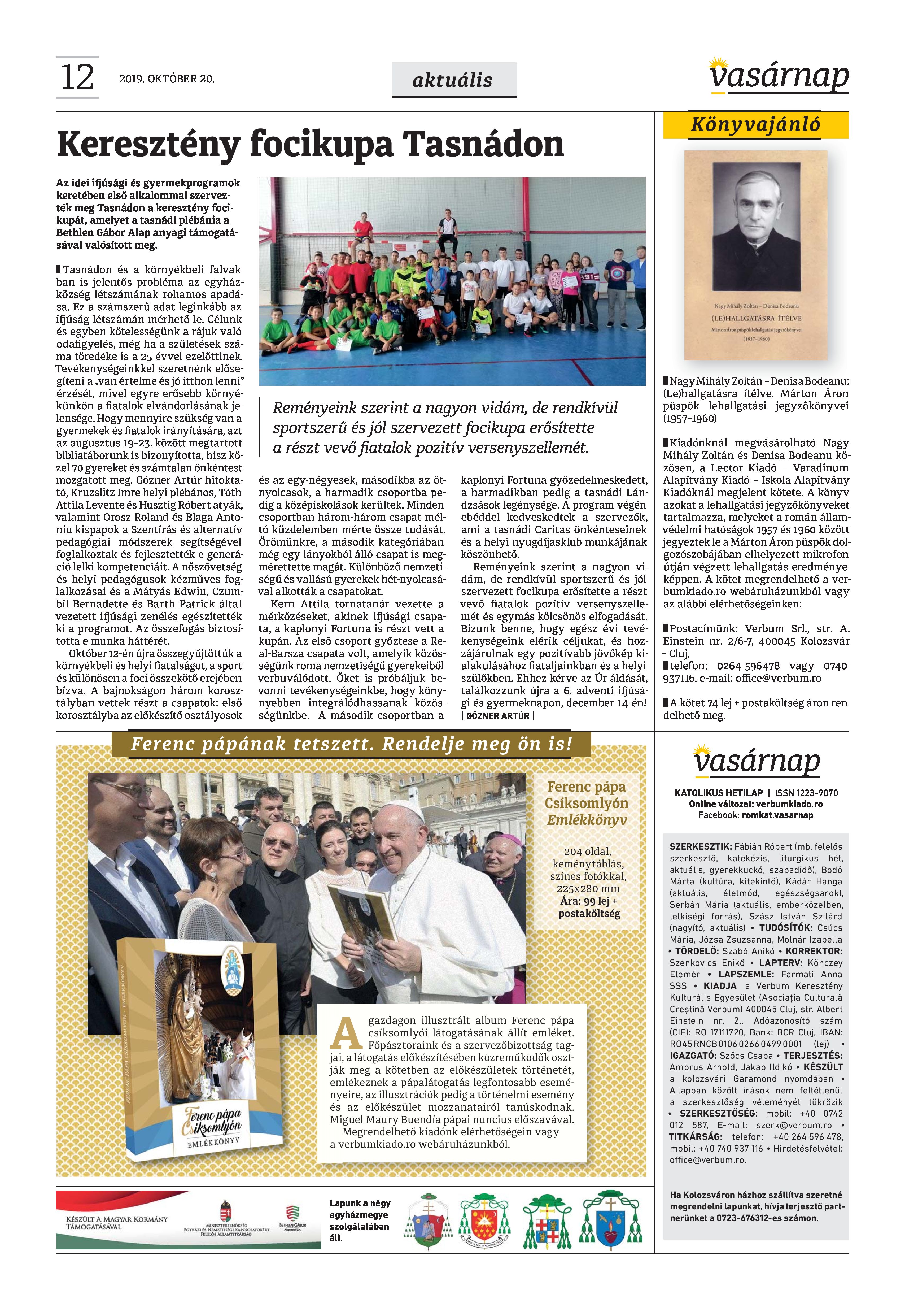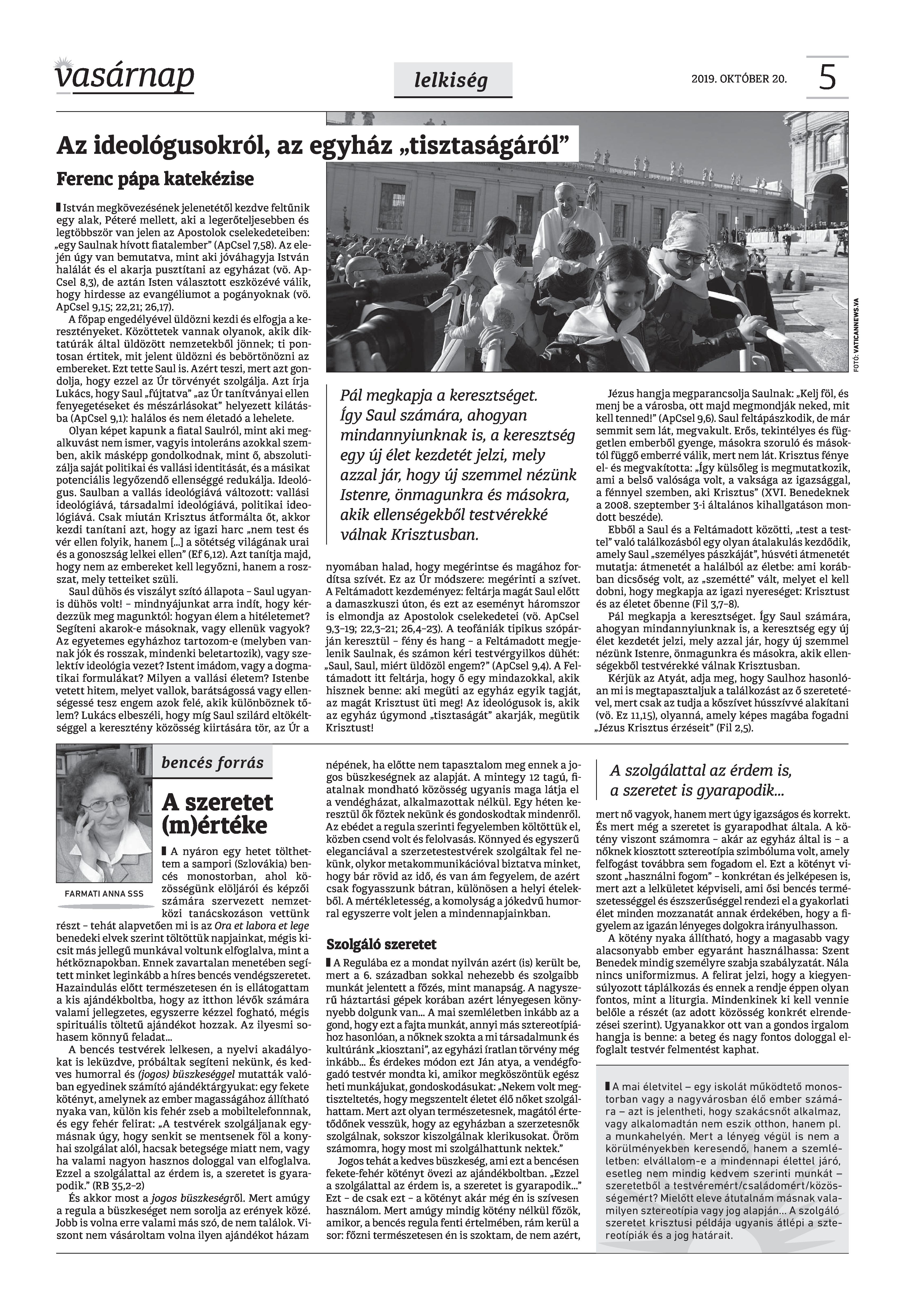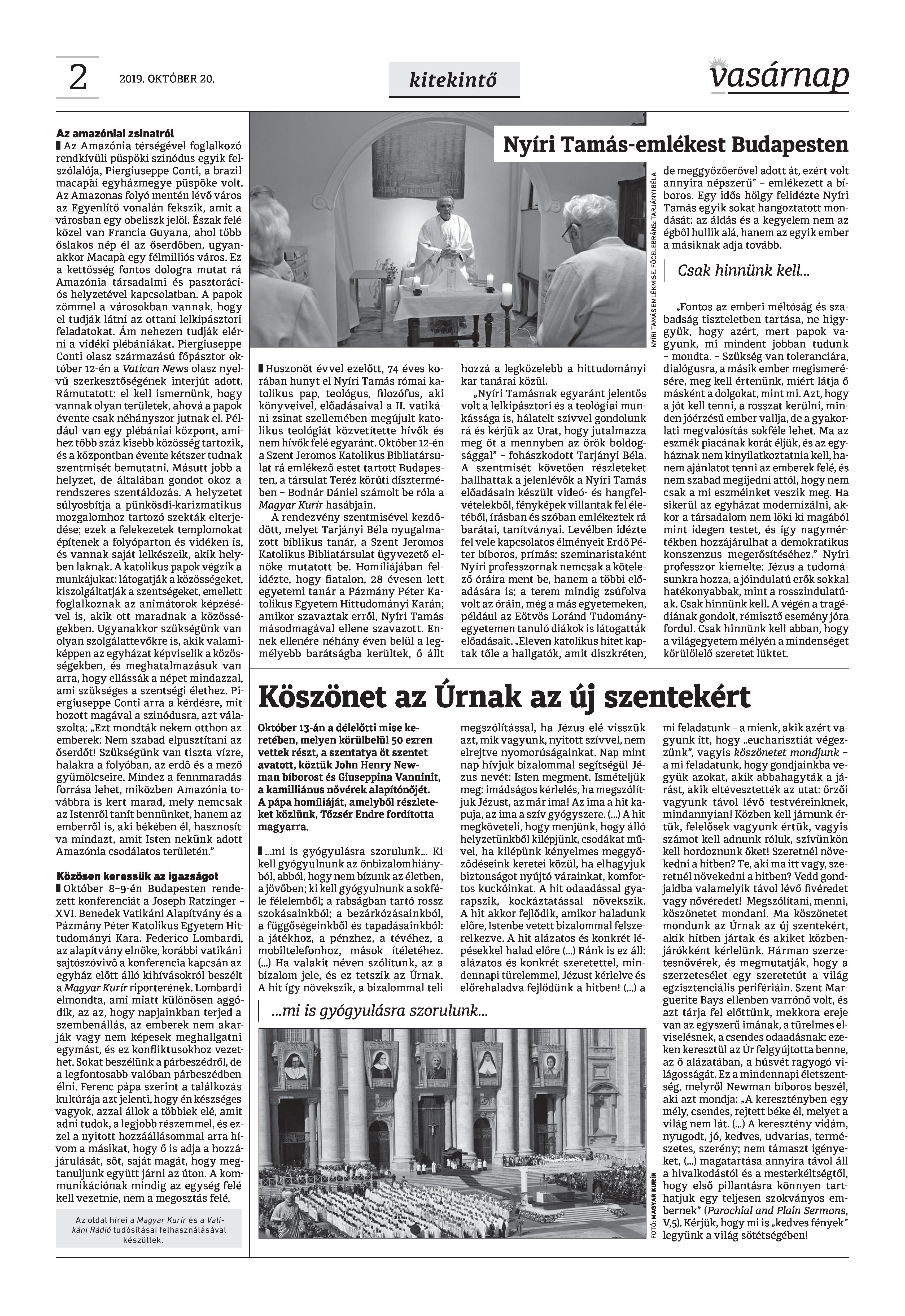 Vasárnap Katolikus Hetilap 2019. október 20. / XXIX évf. / 42. számának digitális változata.