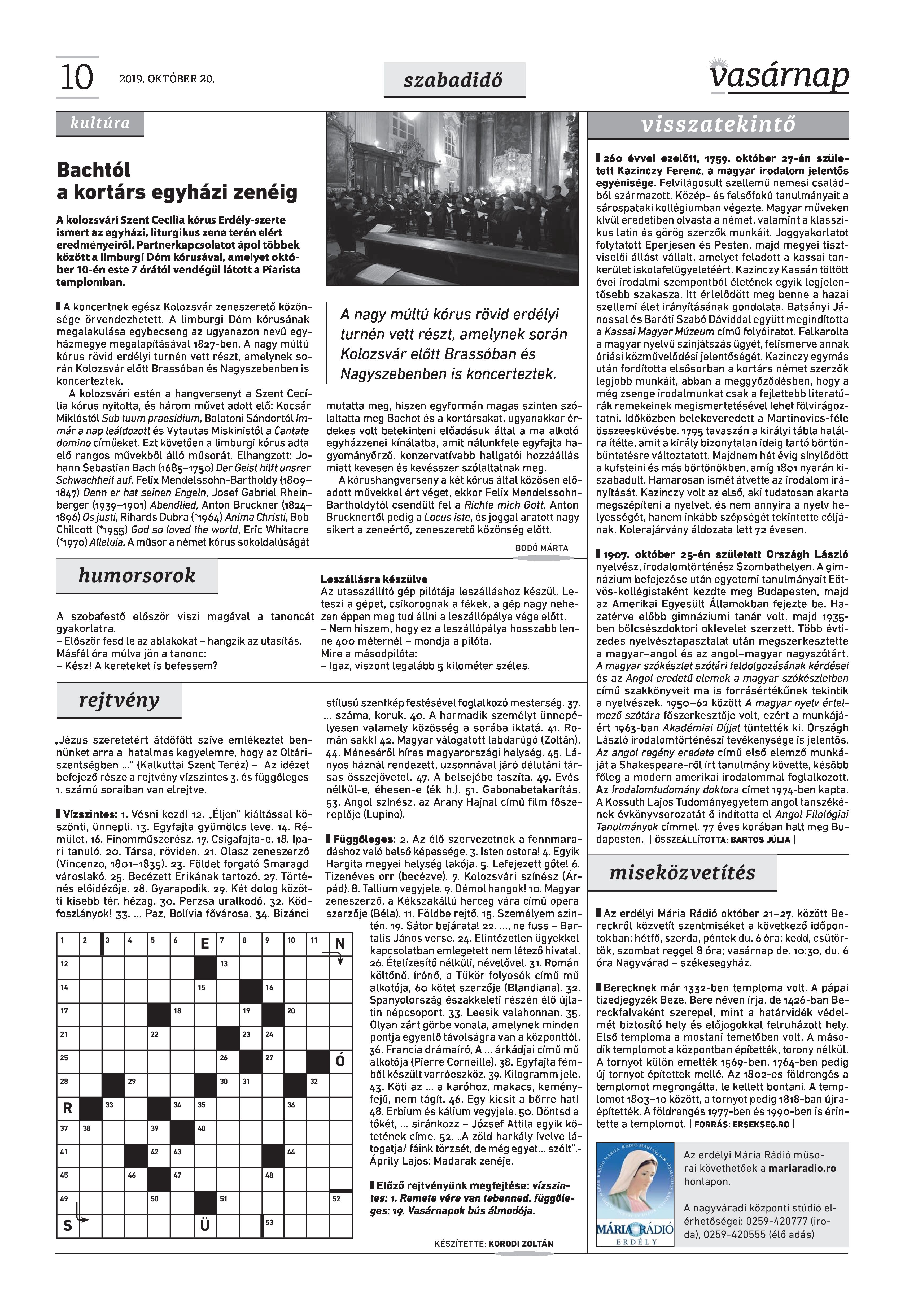 VASÁRNAP - 2019. OKTÓBER 20.