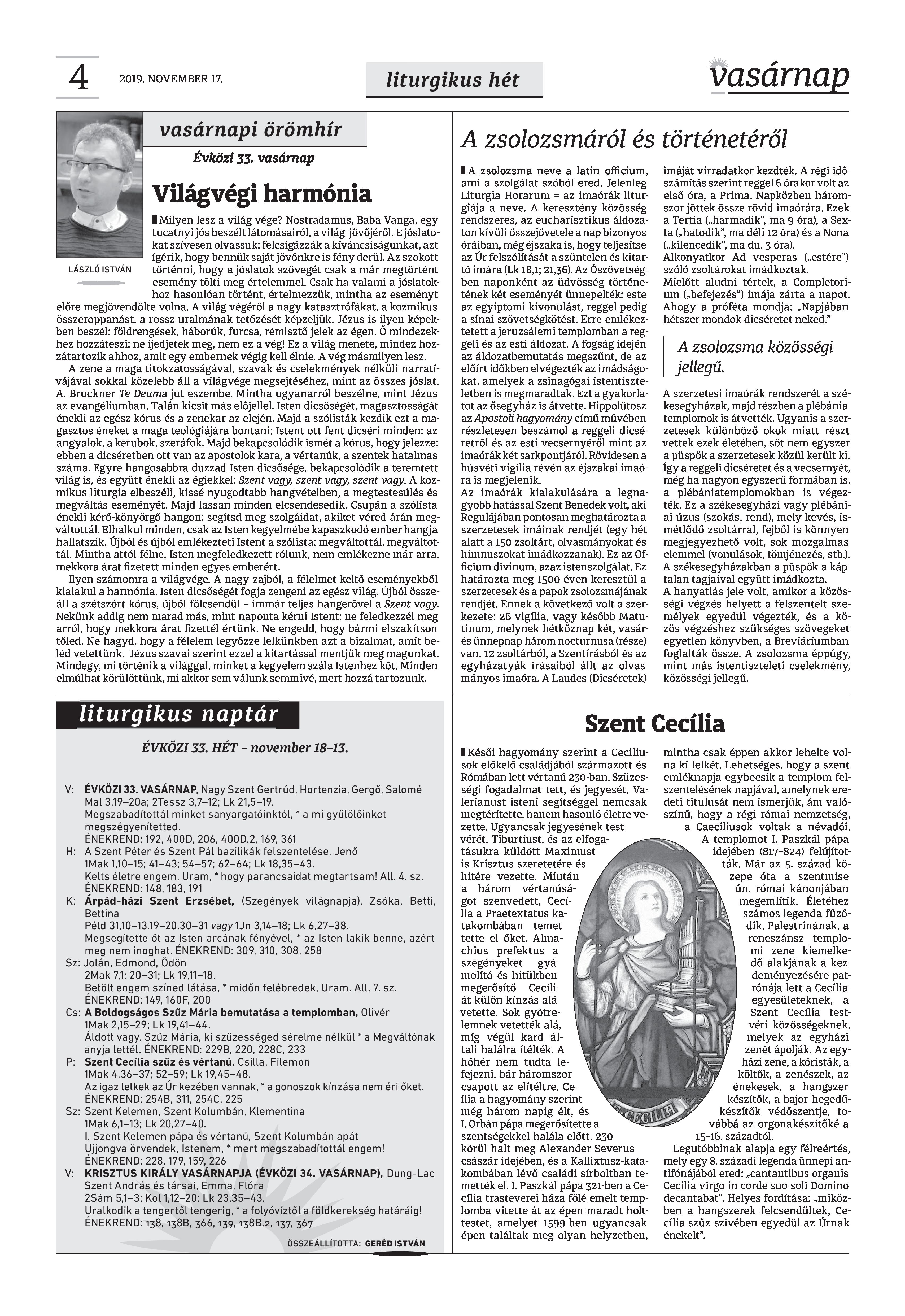 VASÁRNAP - 2019. NOVEMBER 17. A Vasárnap Katolikus Hetilap 2019. november 17. / XXIX évf. / 46. számának digitális változata. 1 / 12 2 & 3 / 12 4 & 5 / 12 6 & 7 / 12 8 & 9 / 12 10 & 11 / 12 12 / 12