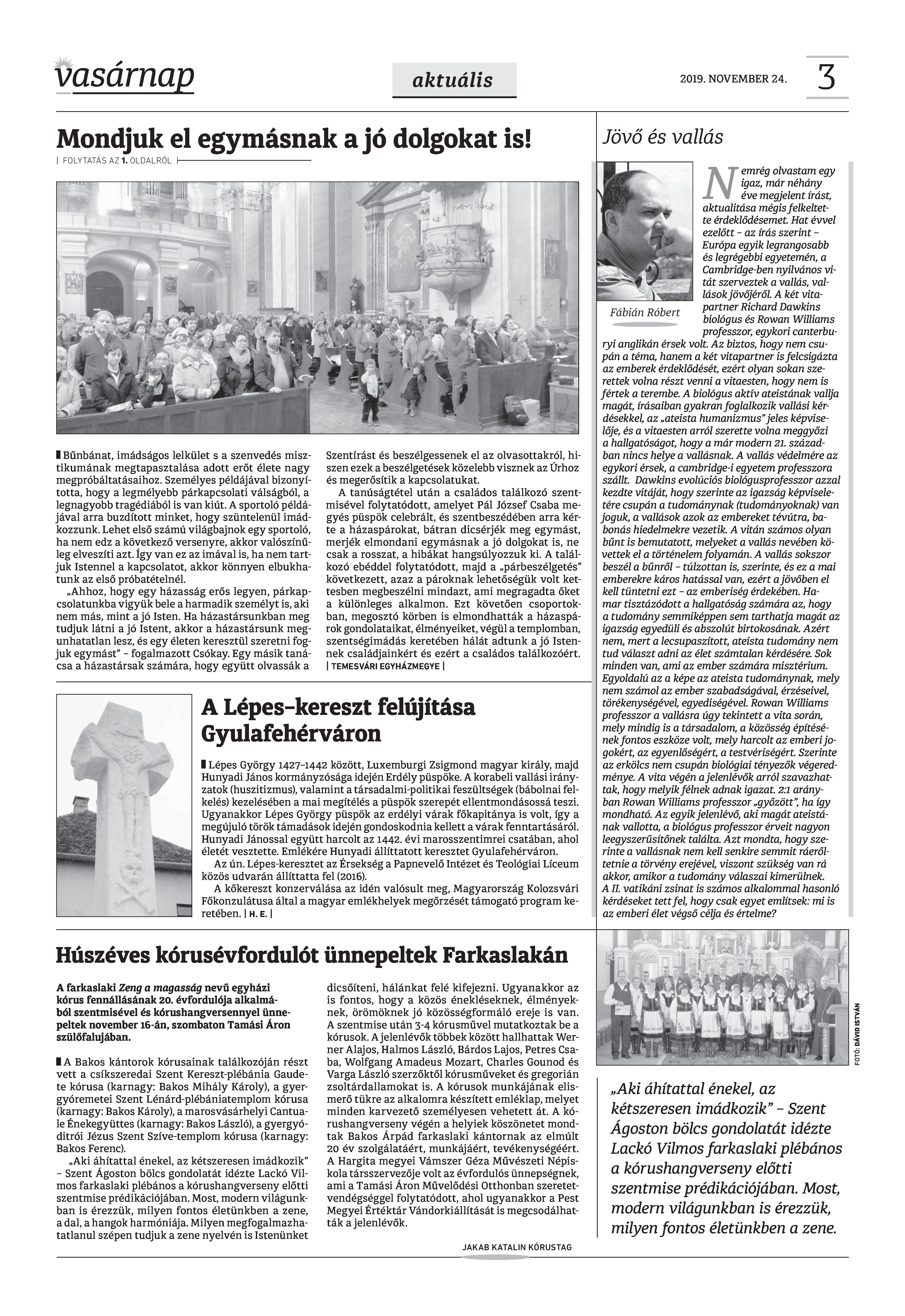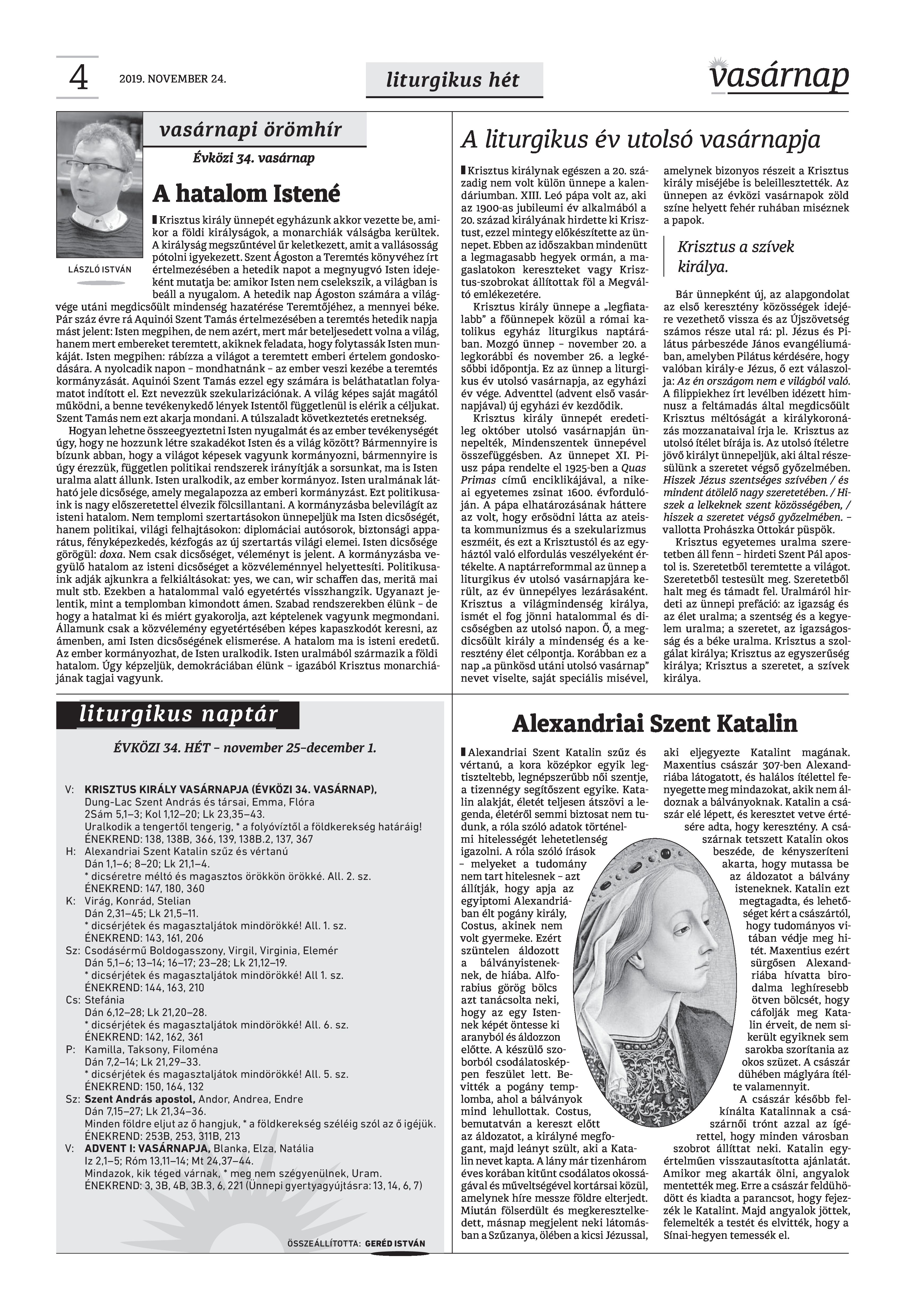 VASÁRNAP - 2019. NOVEMBER 24. A Vasárnap Katolikus Hetilap 2019. november 24. / XXIX évf. / 47. számának digitális változata. 1 / 12 2 & 3 / 12 4 & 5 / 12 6 & 7 / 12 8 & 9 / 12 10 & 11 / 12 12 / 12