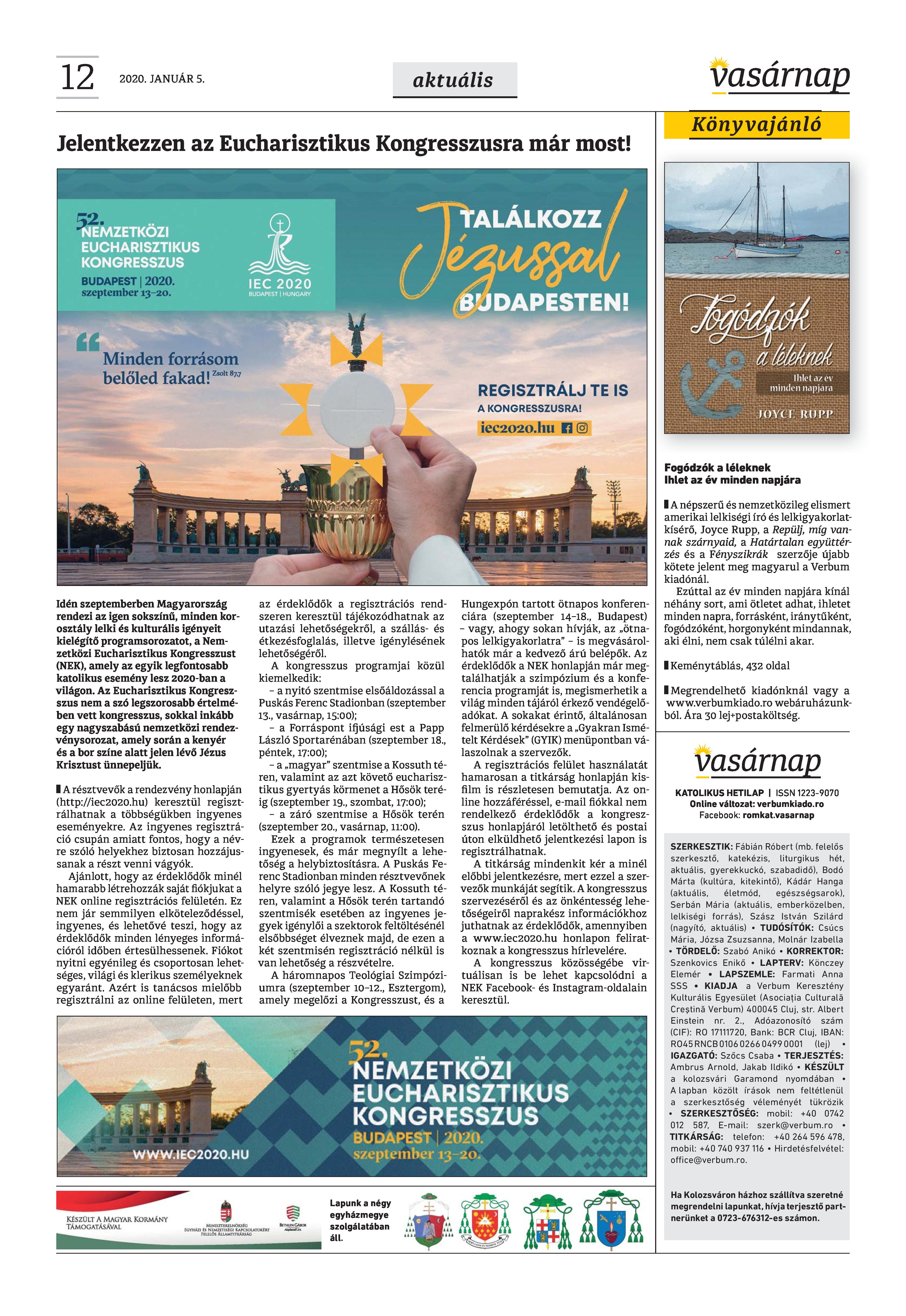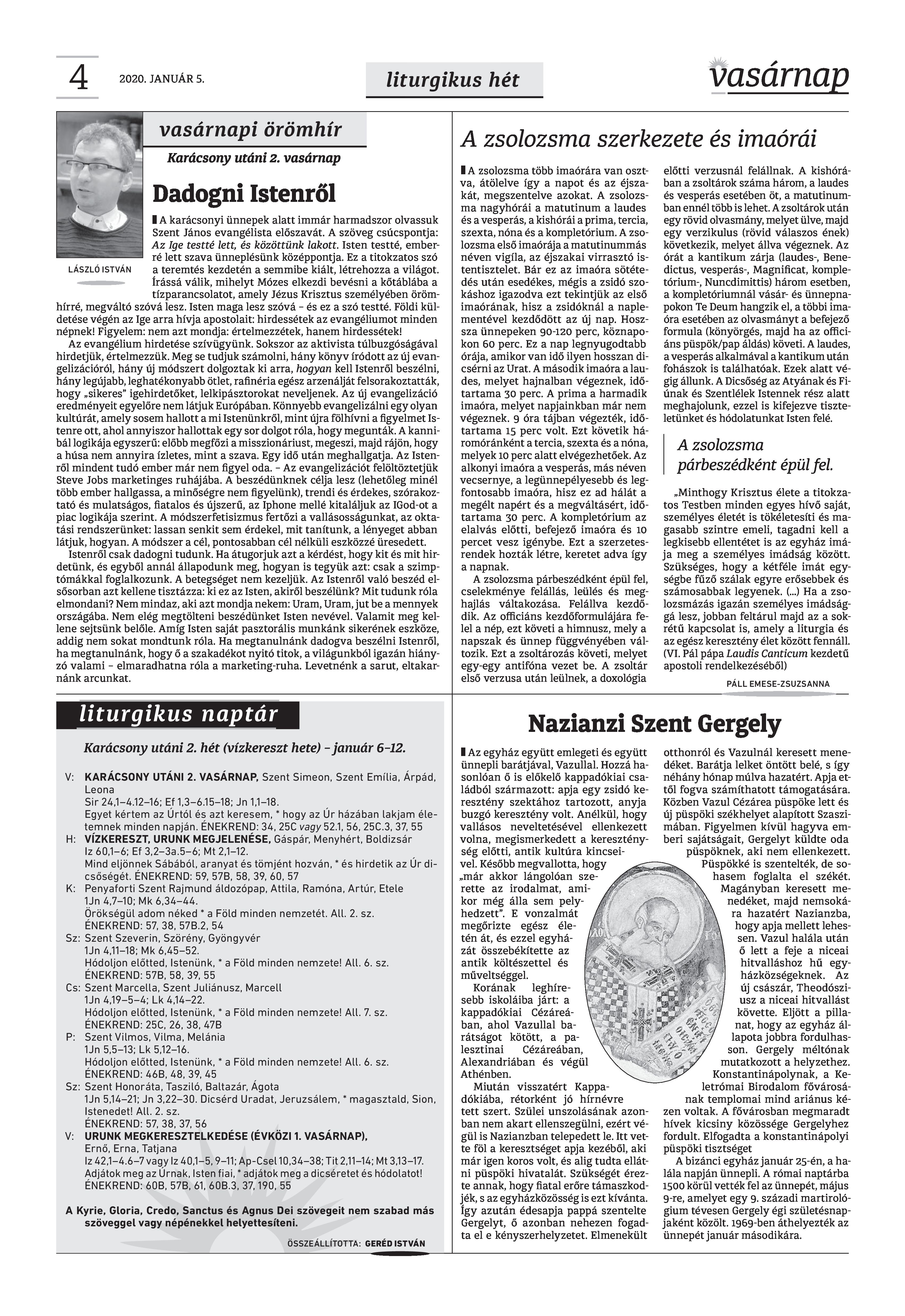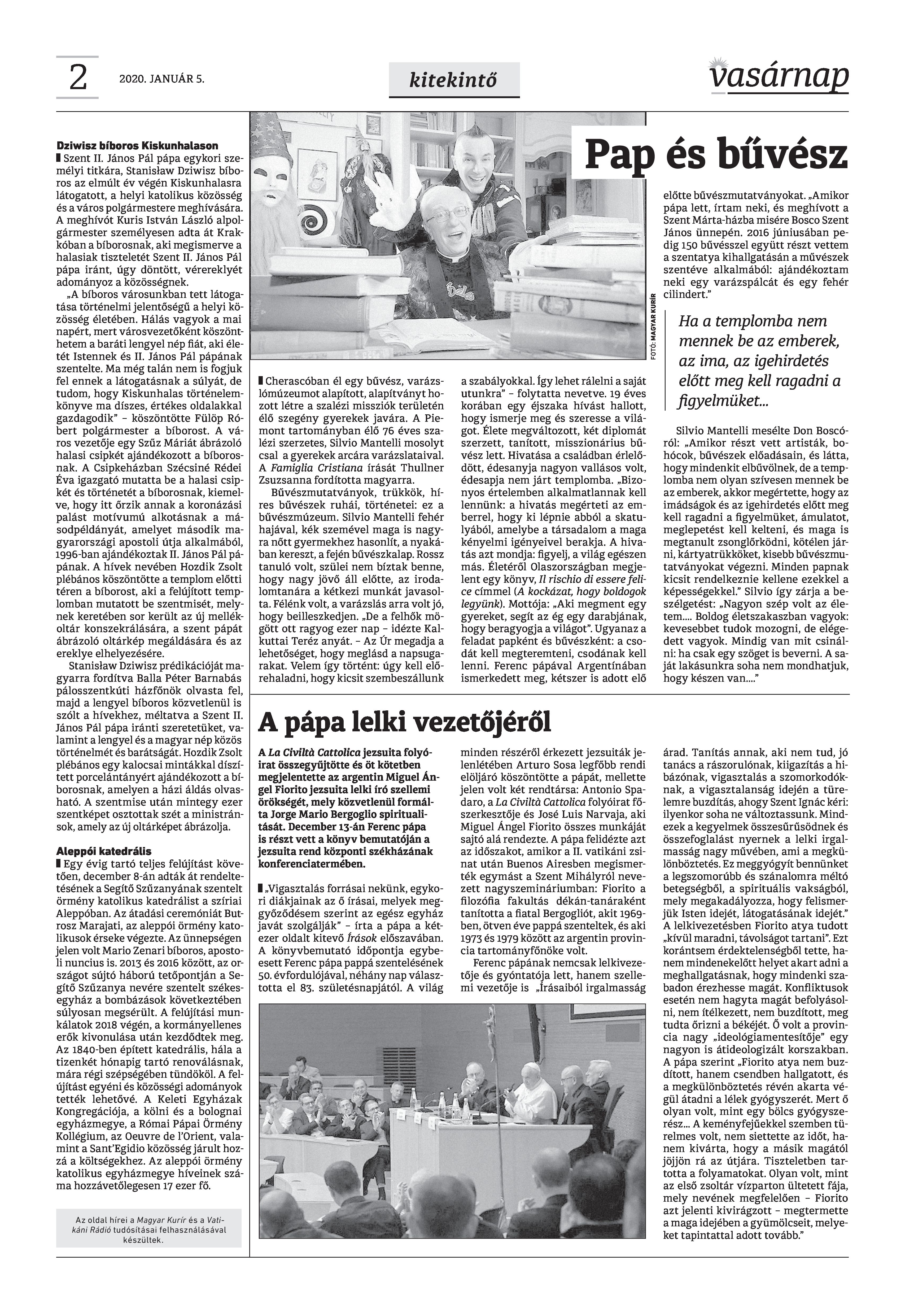 VASÁRNAP - 2020. JANUÁR 5. A Vasárnap Katolikus Hetilap 2020 január 5. / XXX évf. / 1. számának digitális változata. 1 / 12 2 & 3 / 12 4 & 5 / 12 6 & 7 / 12 8 & 9 / 12 10 & 11 / 12 12 / 12