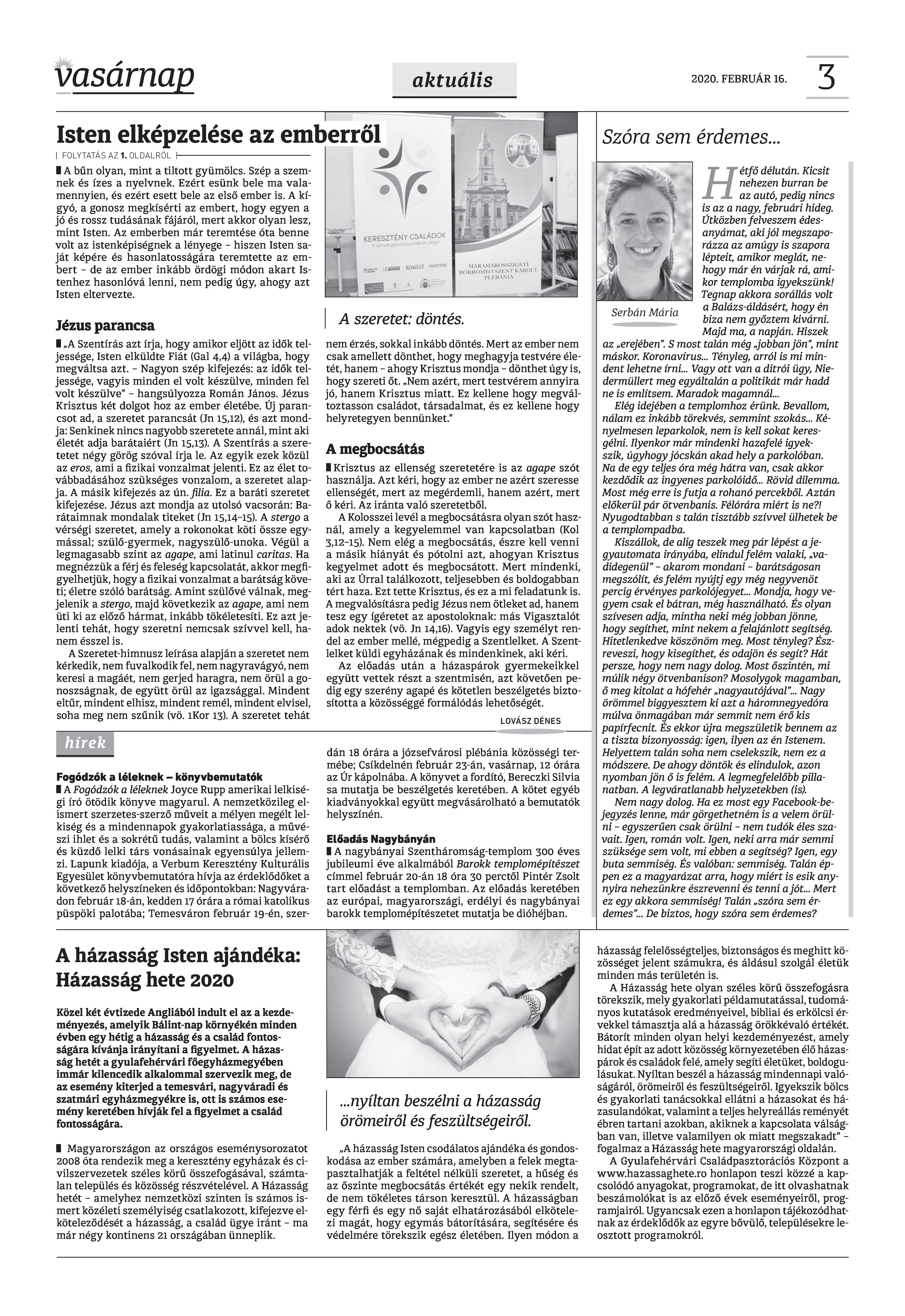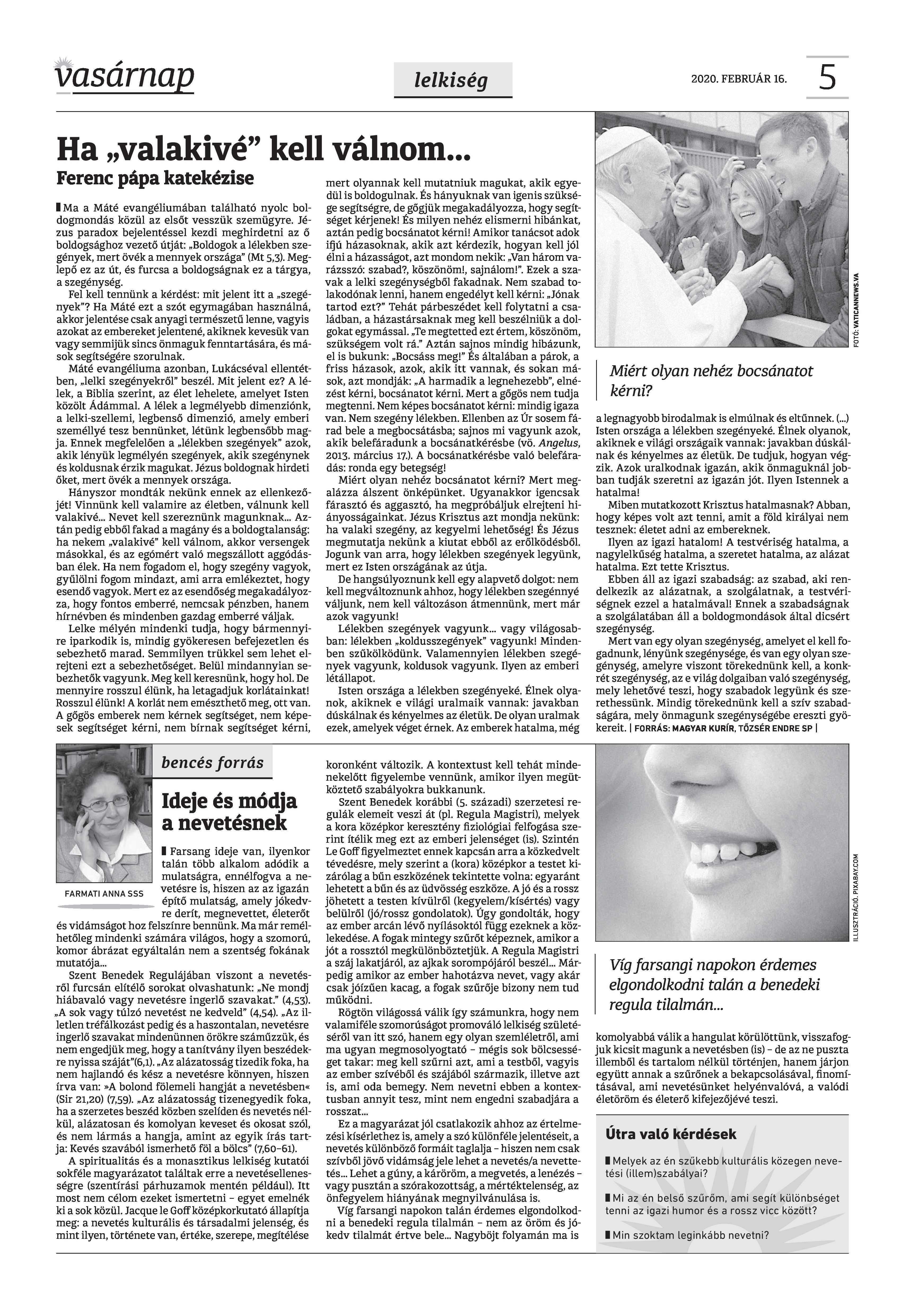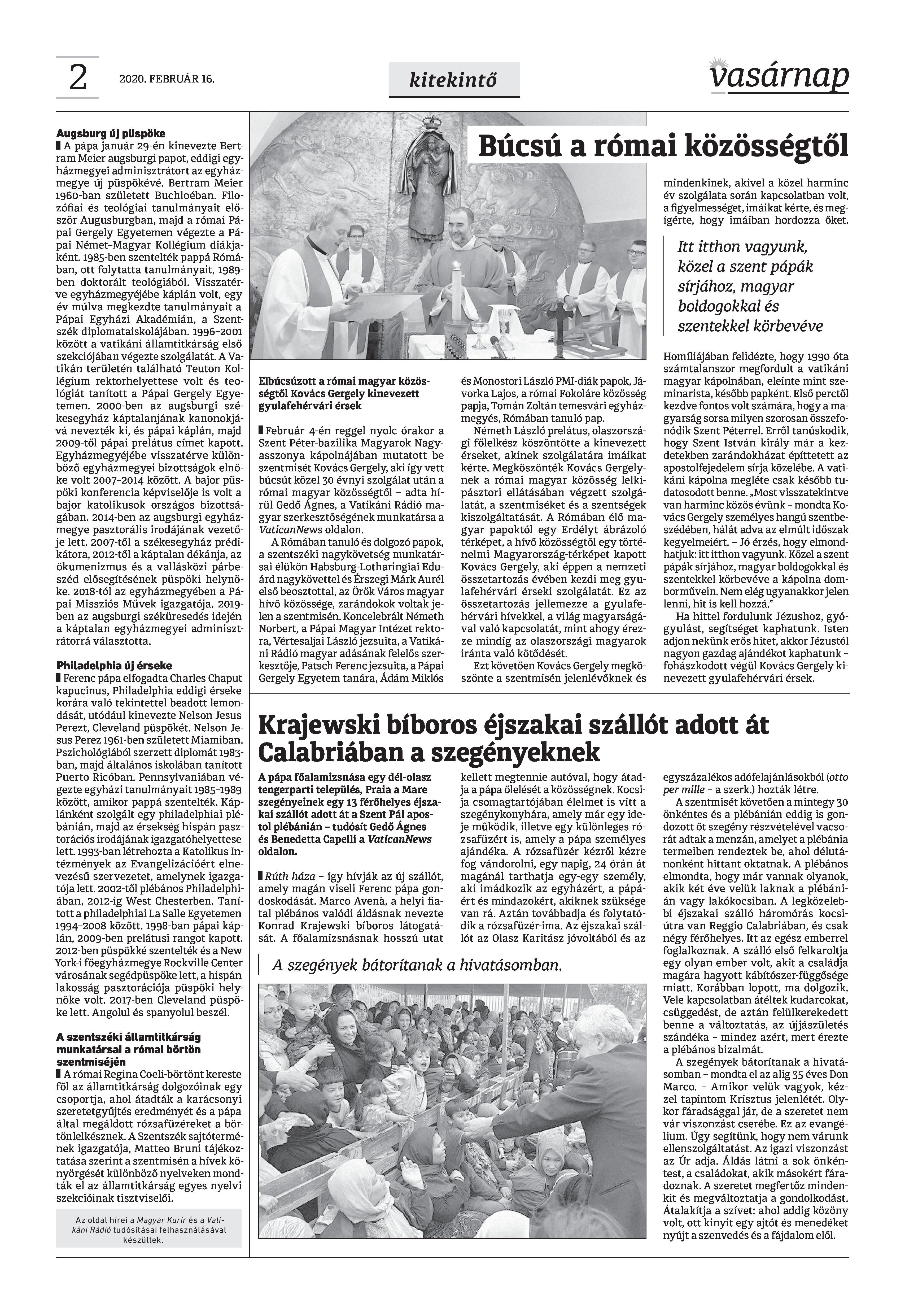 Vasárnap Katolikus Hetilap 2020. február 16. / XXX évf. / 7. számának digitális változata.