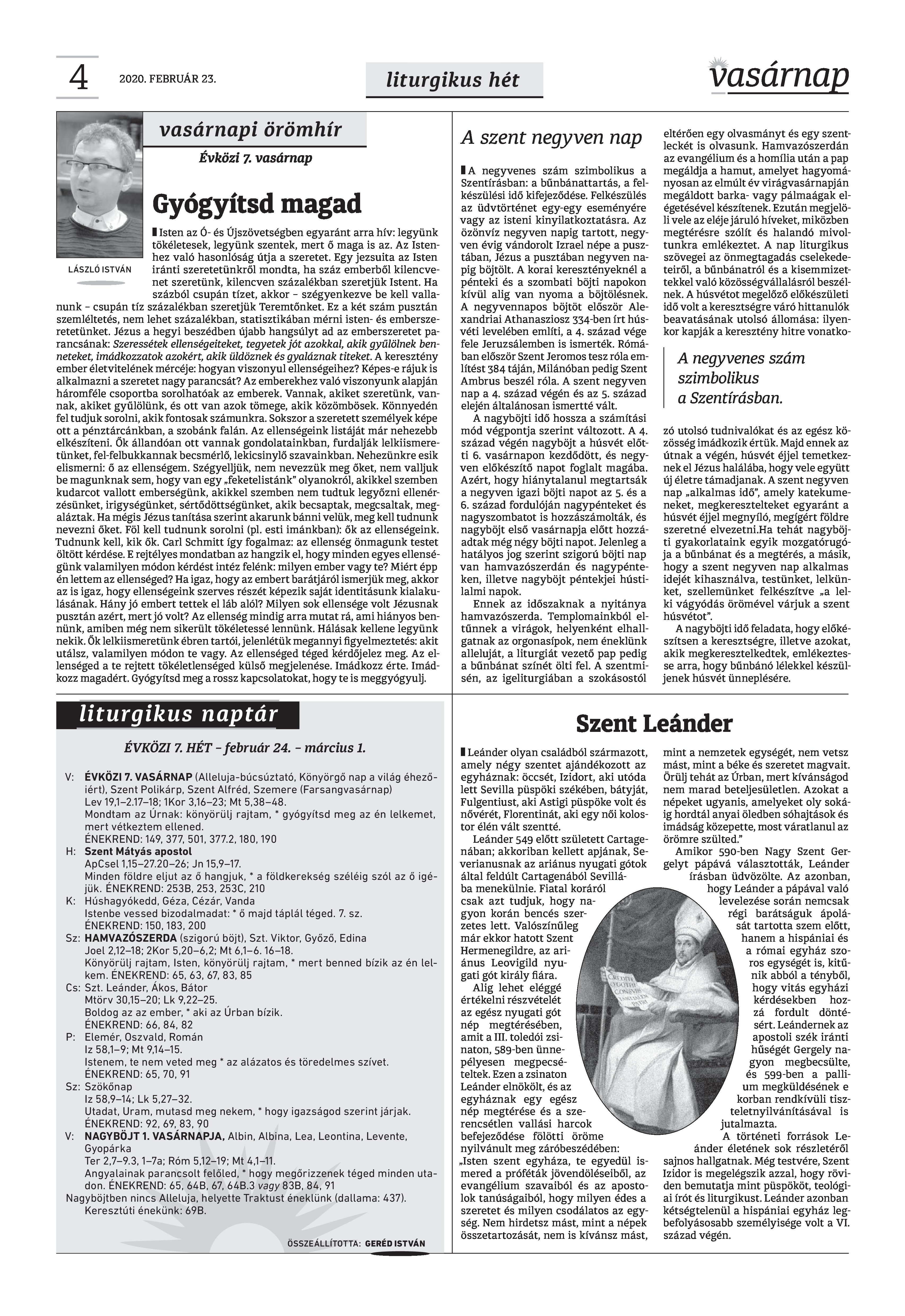 Vasárnap Katolikus Hetilap 2020. február 23. / XXX évf. / 8. számának digitális változata.