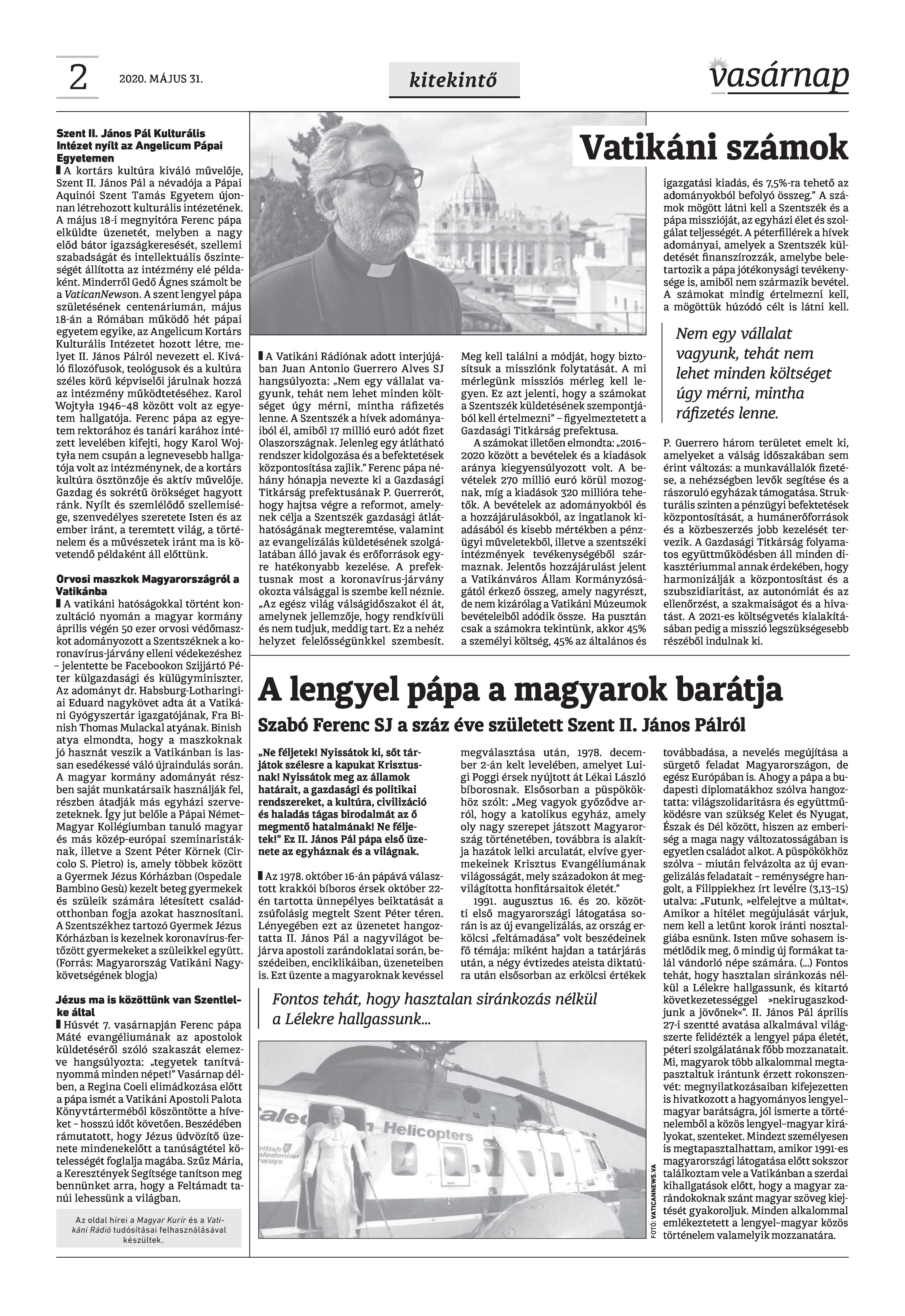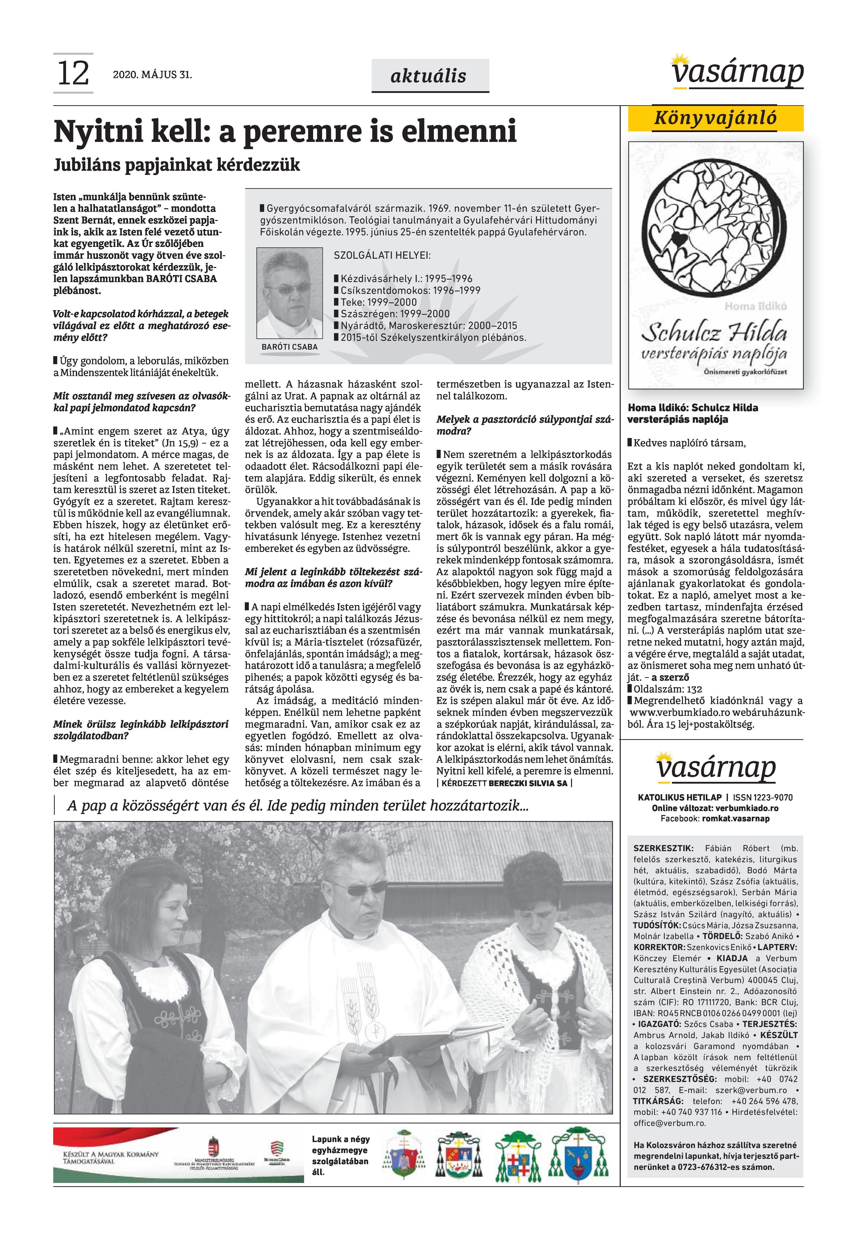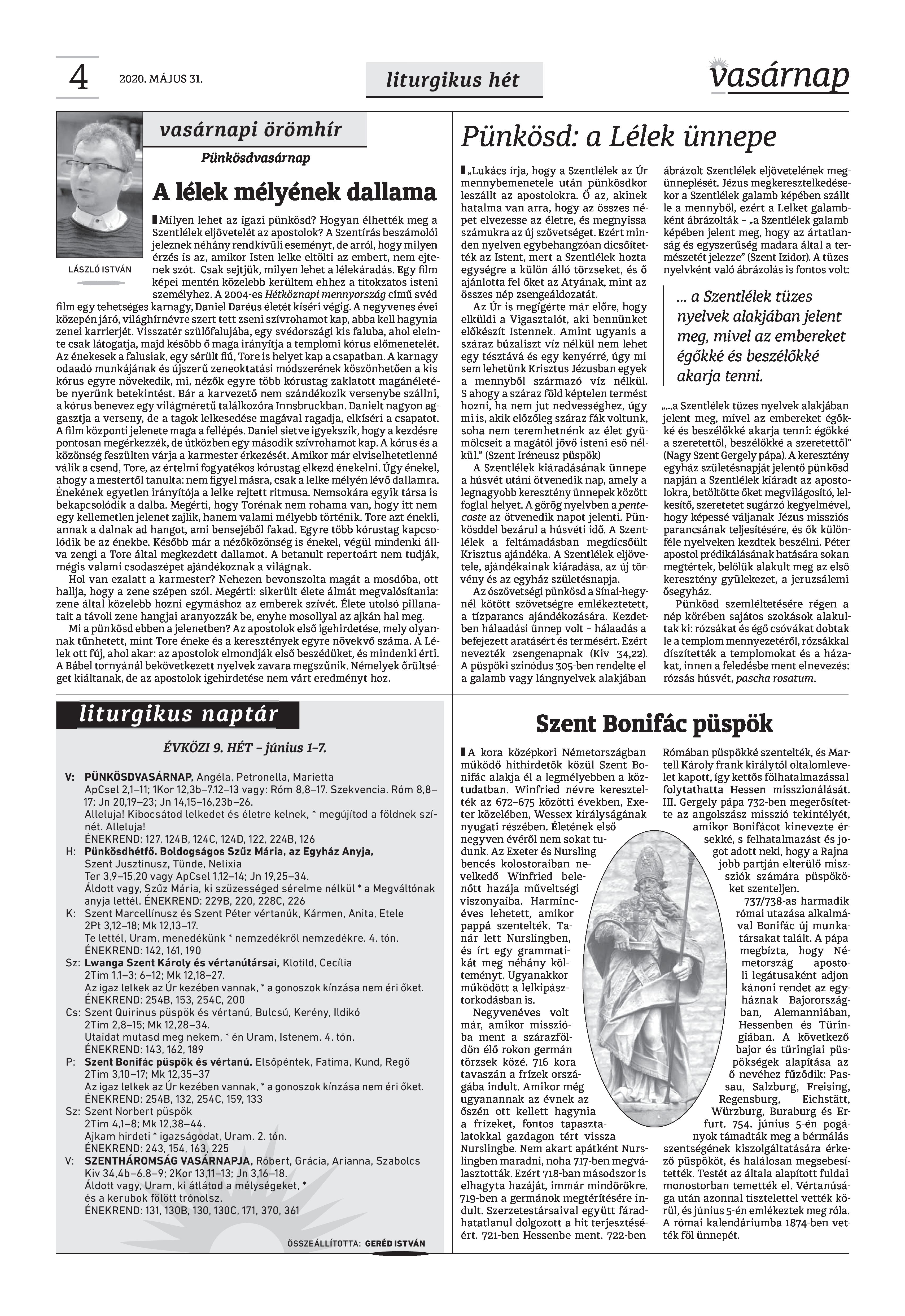 VASÁRNAP - 2020. MÁJUS 31. A Vasárnap Katolikus Hetilap 2020. május 31. / XXX évf. / 22. számának digitális változata. 1 / 12 2 & 3 / 12 4 & 5 / 12 6 & 7 / 12 8 & 9 / 12 10 & 11 / 12 12 / 12