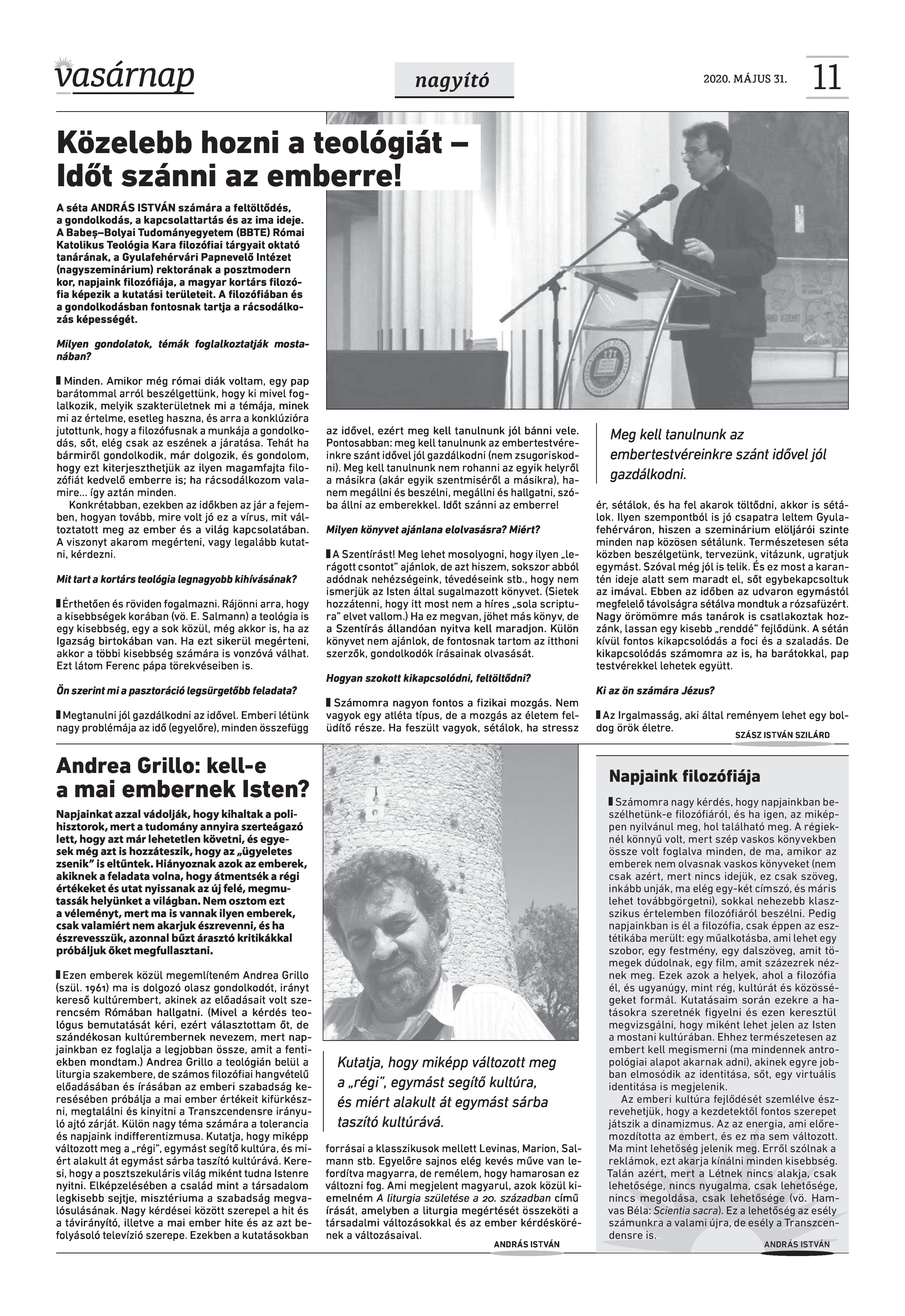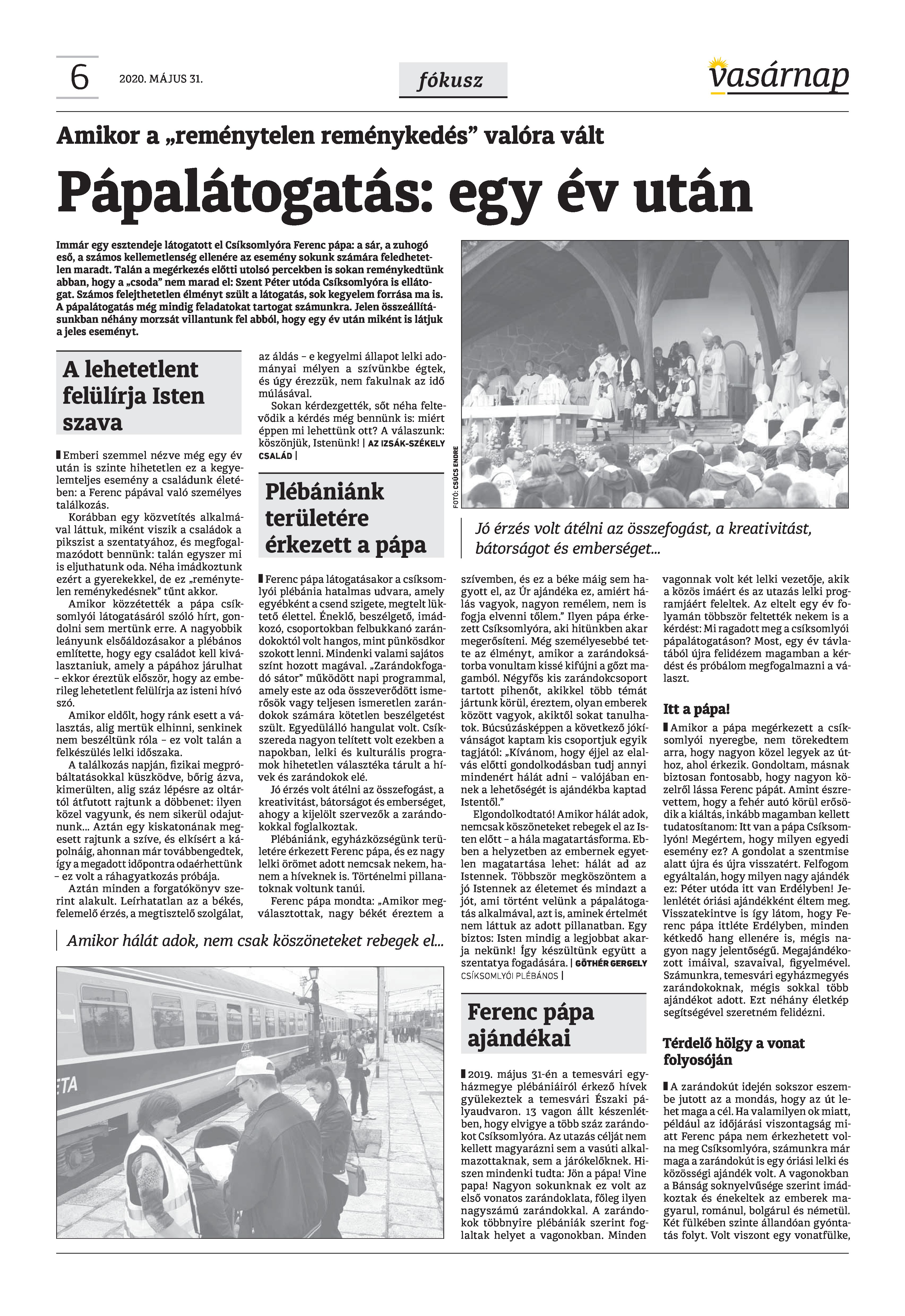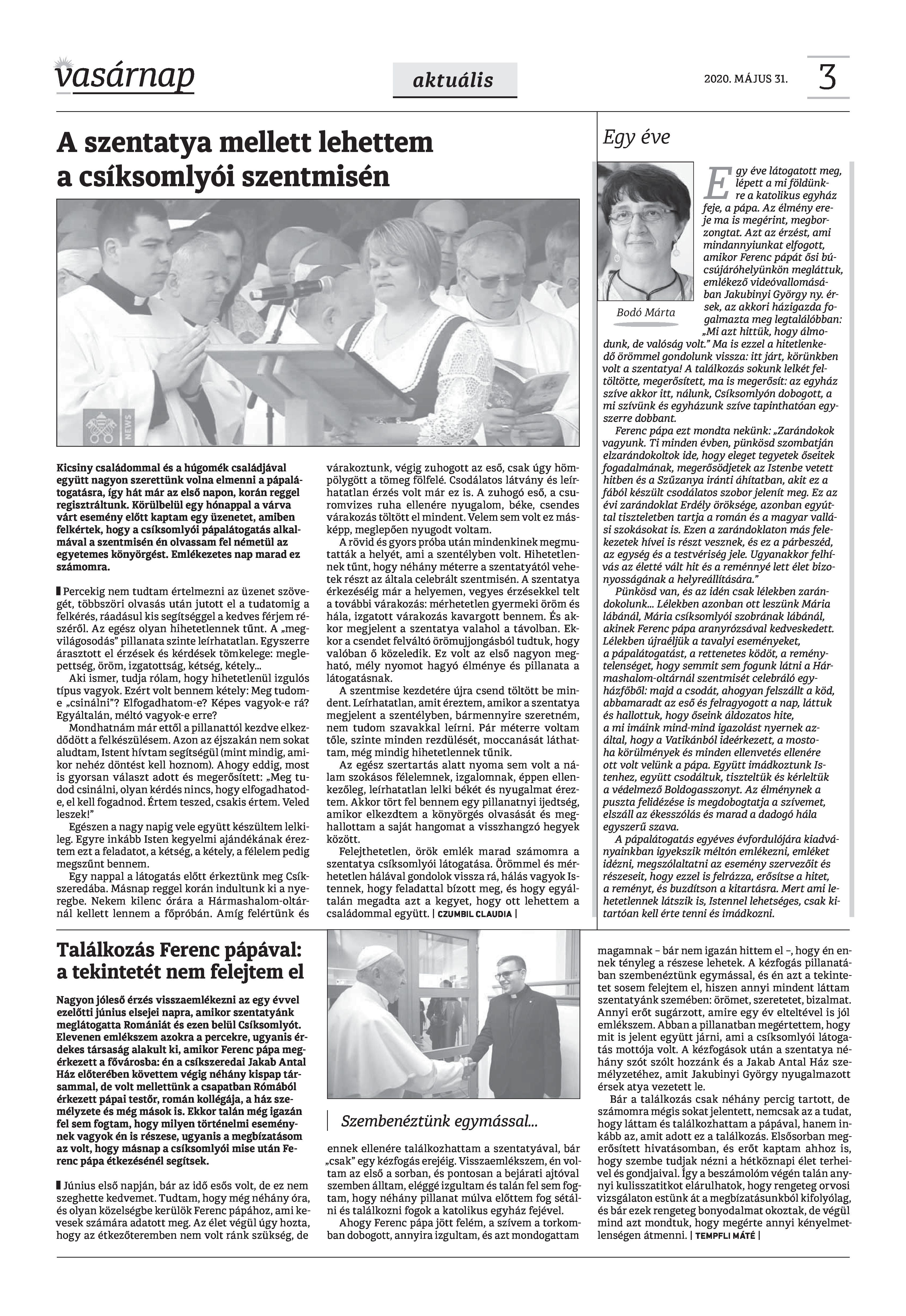 VASÁRNAP - 2020. MÁJUS 31. A Vasárnap Katolikus Hetilap 2020. május 31. / XXX évf. / 22. számának digitális változata. 1 / 12 2 & 3 / 12 4 & 5 / 12 6 & 7 / 12 8 & 9 / 12 10 & 11 / 12 12 / 12