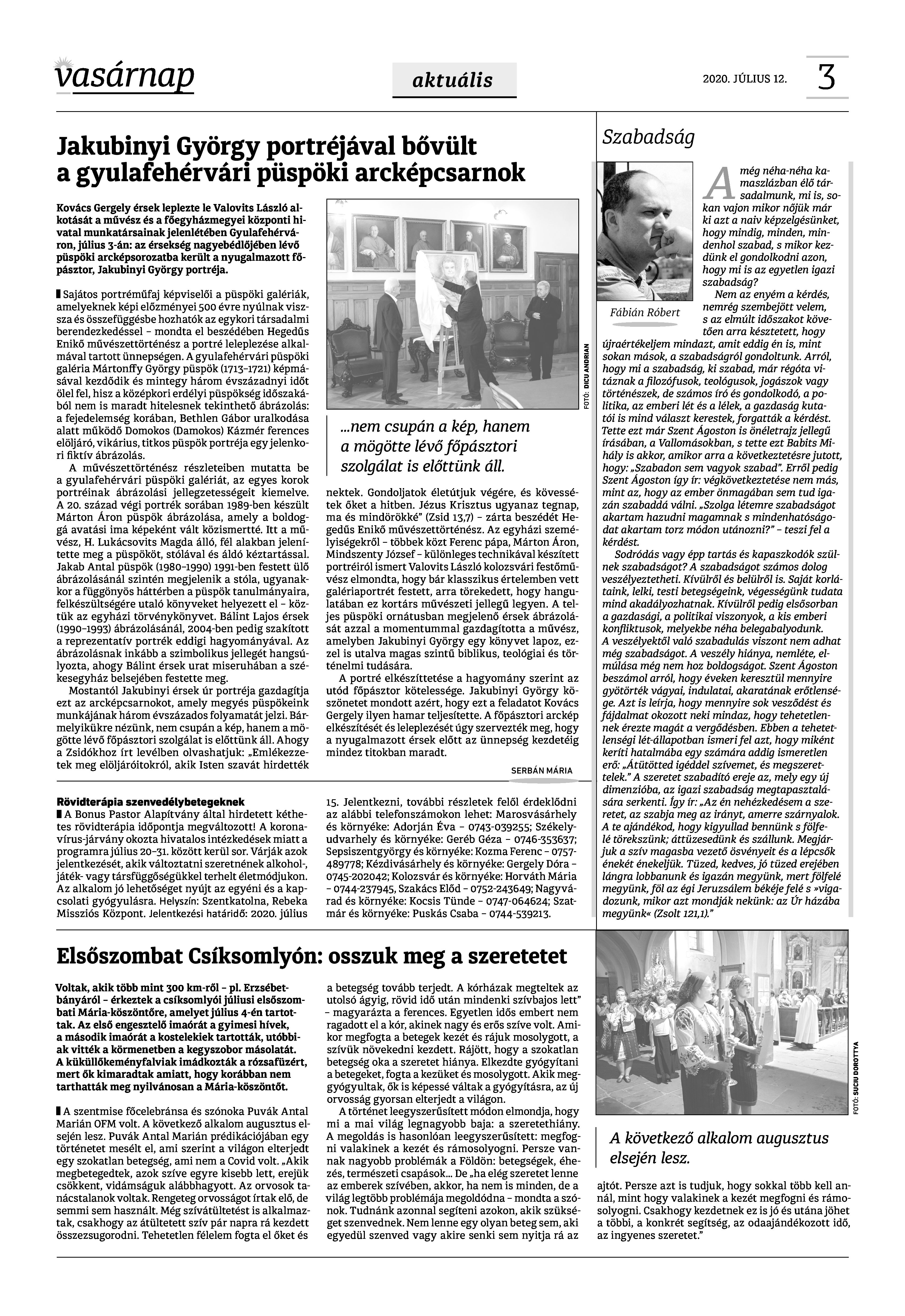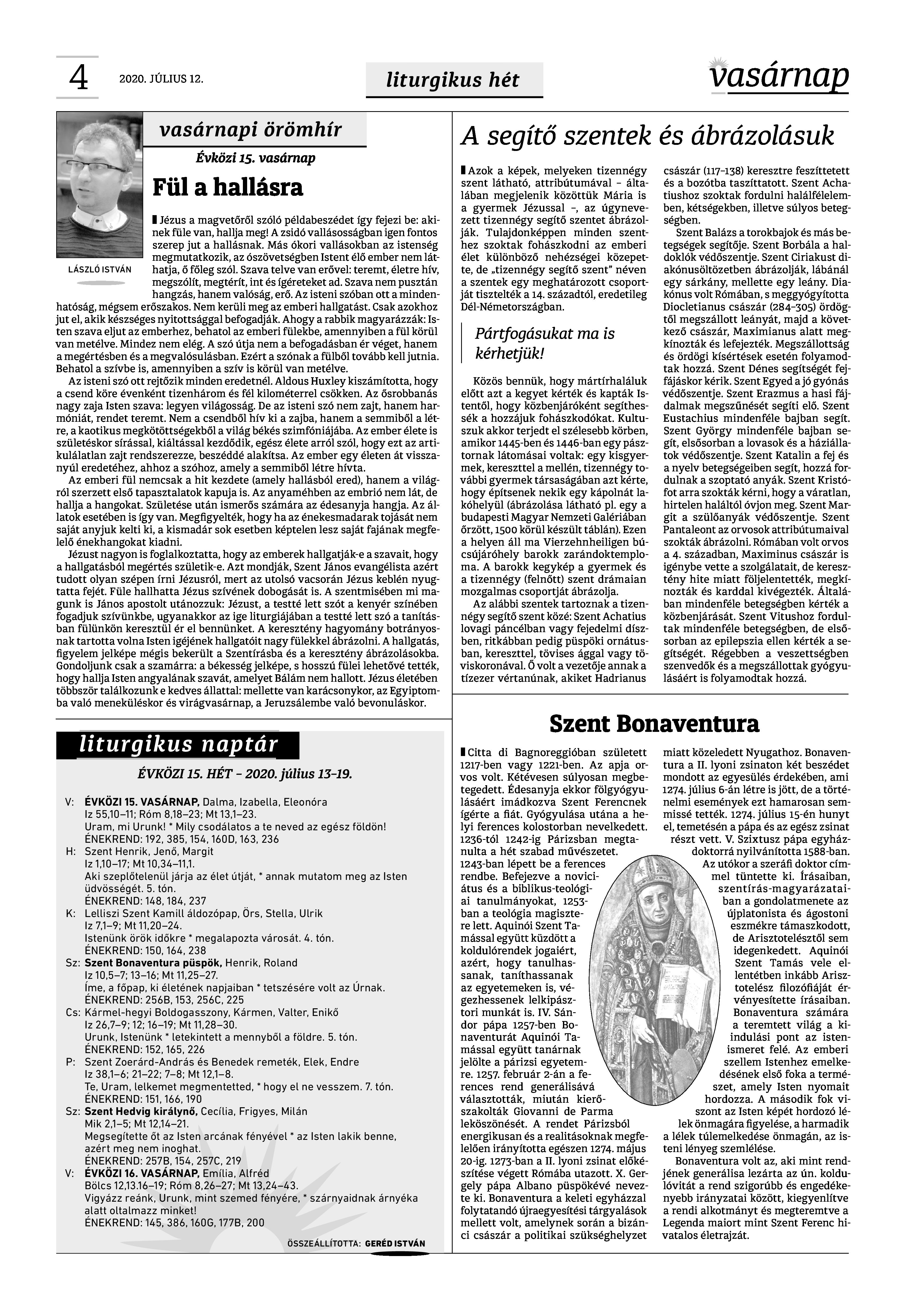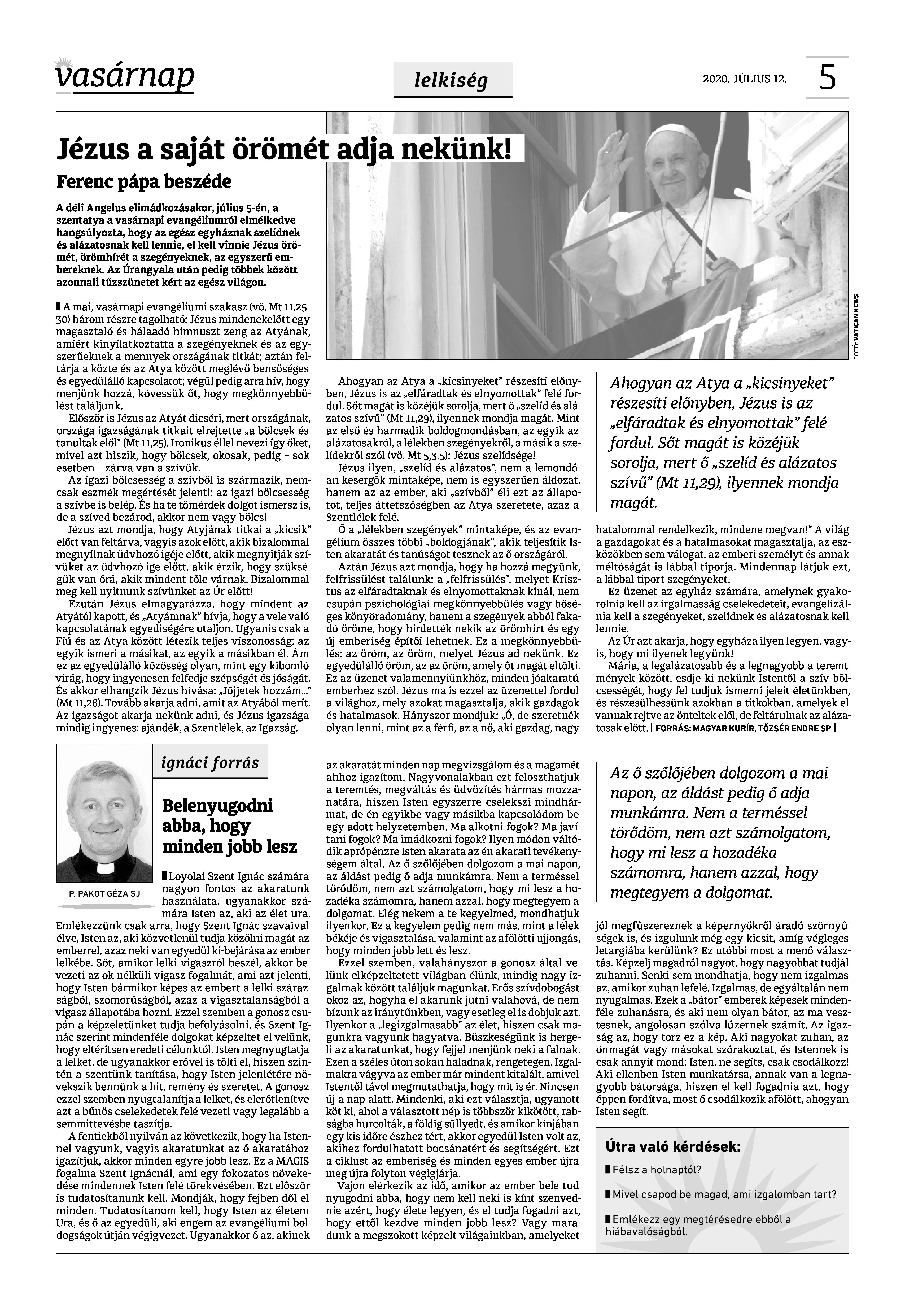 VASÁRNAP - 2020. JÚLIUS 12. A Vasárnap Katolikus Hetilap 2020. július 12. / XXX évf. / 28. számának digitális változata. 1 / 12 2 & 3 / 12 4 & 5 / 12 6 & 7 / 12 8 & 9 / 12 10 & 11 / 12 12 / 12