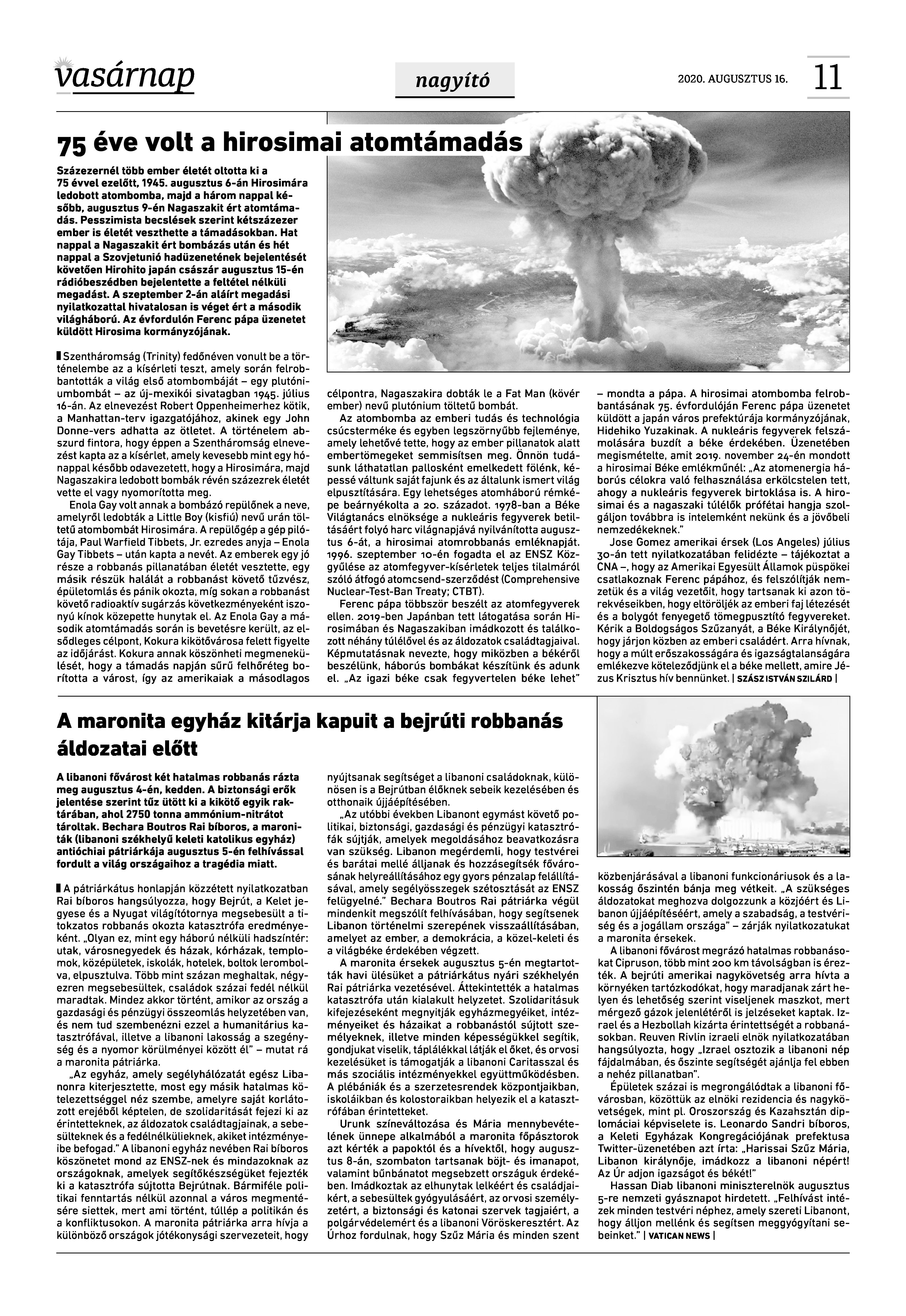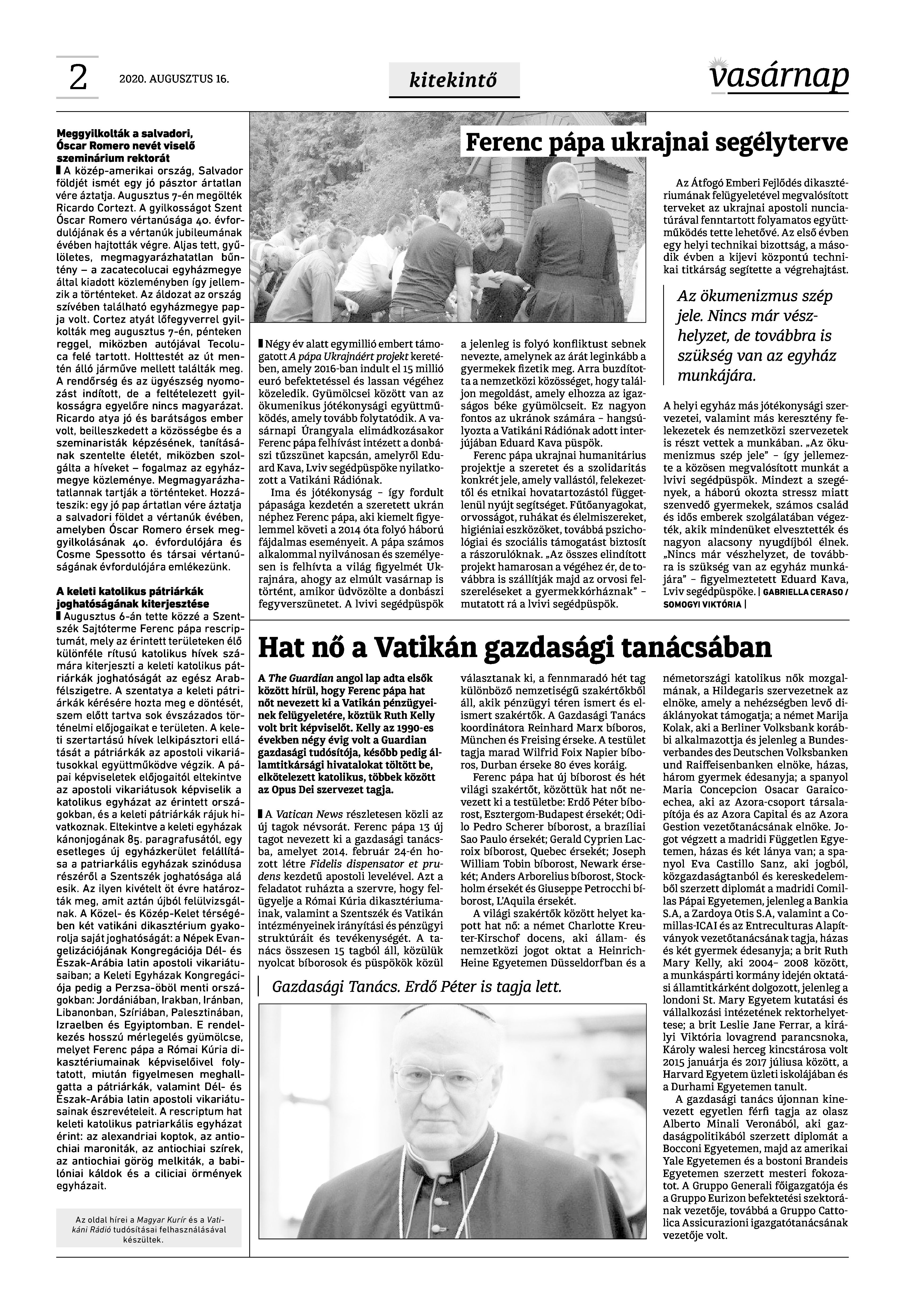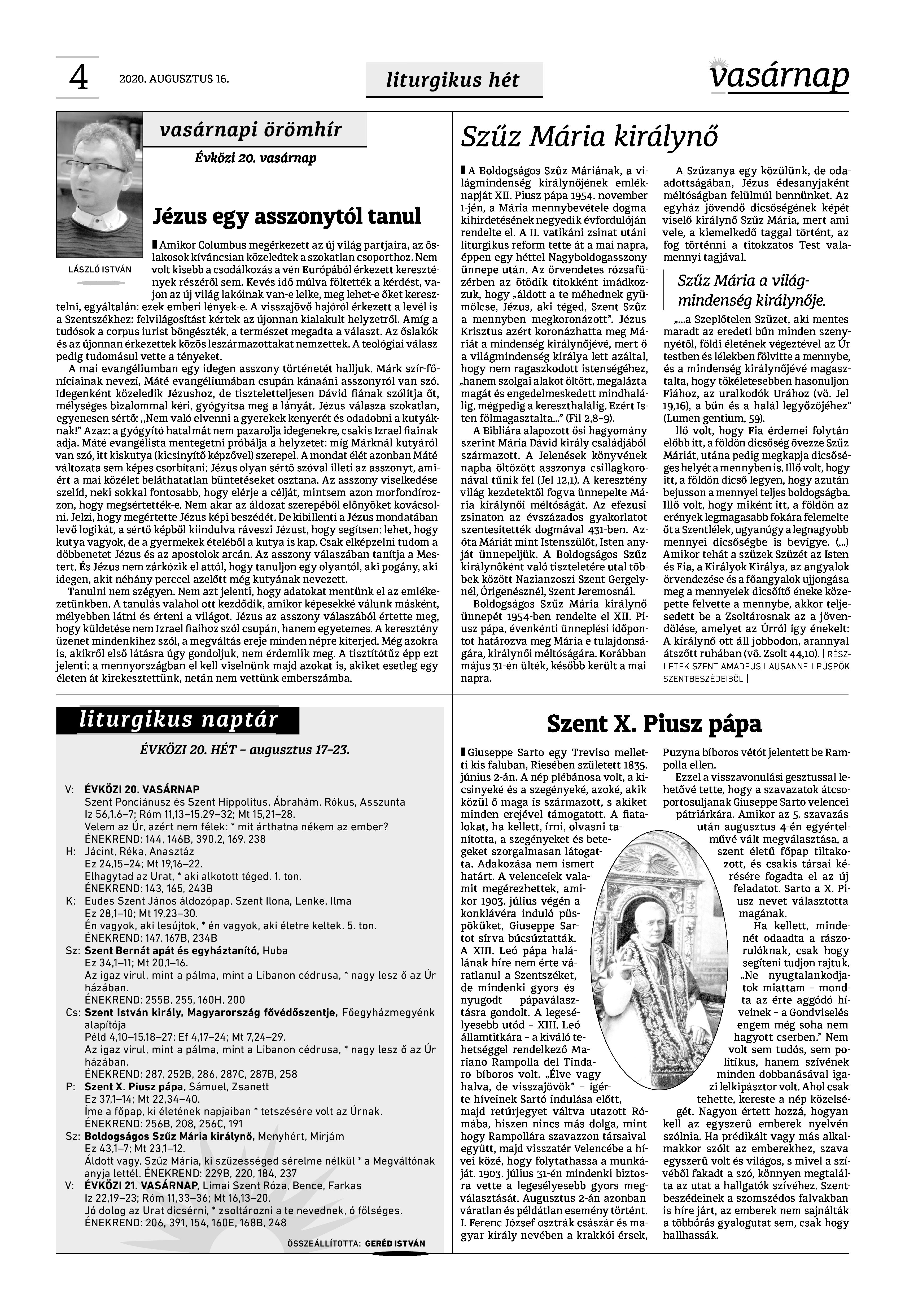 VASÁRNAP - 2020. AUGUSZTUS 16. A Vasárnap Katolikus Hetilap 2020. augusztus 16. / XXX évf. / 33. számának digitális változata. 1 / 12 2 & 3 / 12 4 & 5 / 12 6 & 7 / 12 8 & 9 / 12 10 & 11 / 12 12 / 12