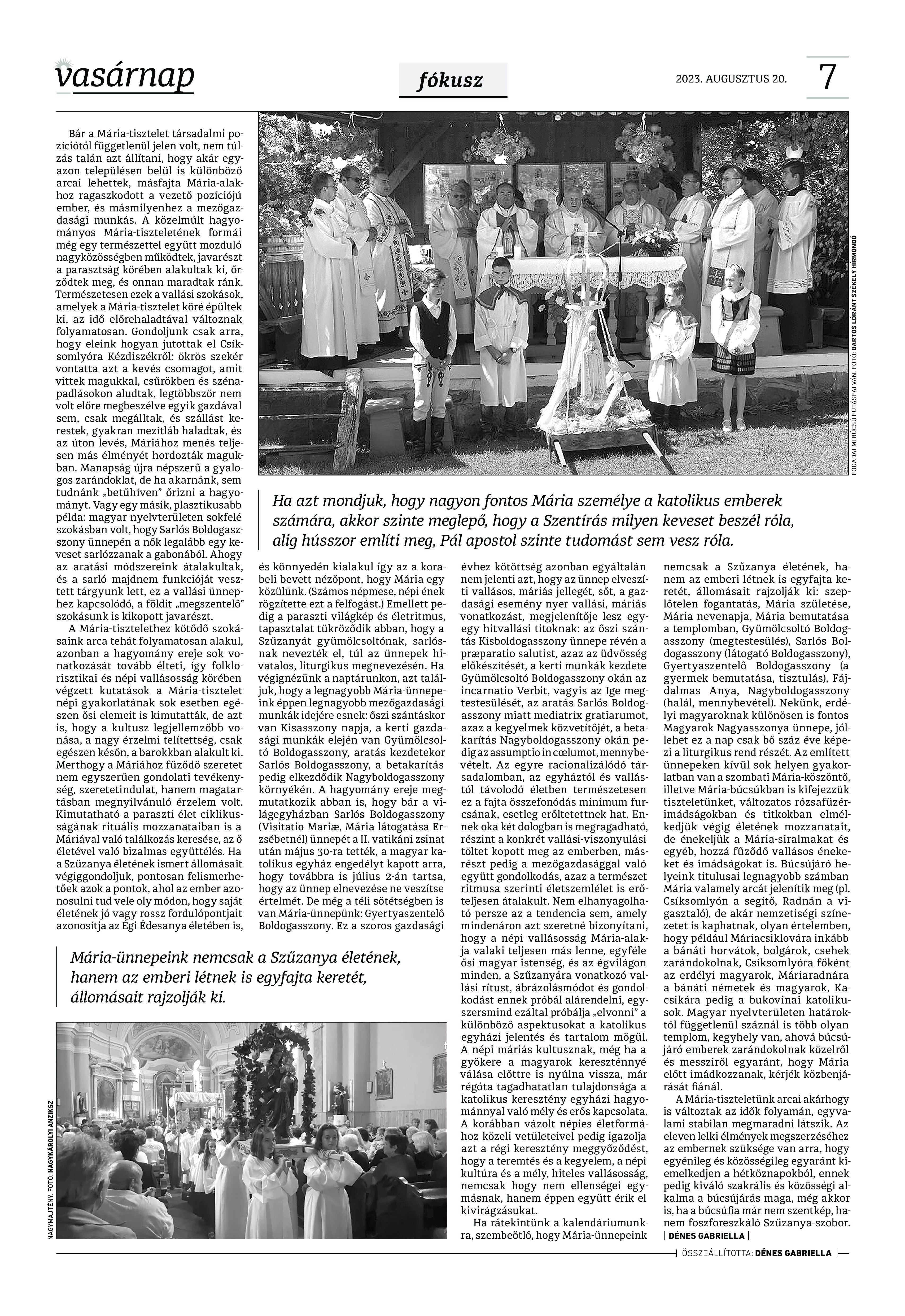 VASÁRNAP - 2023. augusztus 20. A Vasárnap Katolikus Hetilap 2023. augusztus 20. / XXXIII évf. / 34. számának digitális változata 1 / 12 2 & 3 / 12 4 & 5 / 12 6 & 7 / 12 8 & 9 / 12 10 & 11 / 12 12 / 12