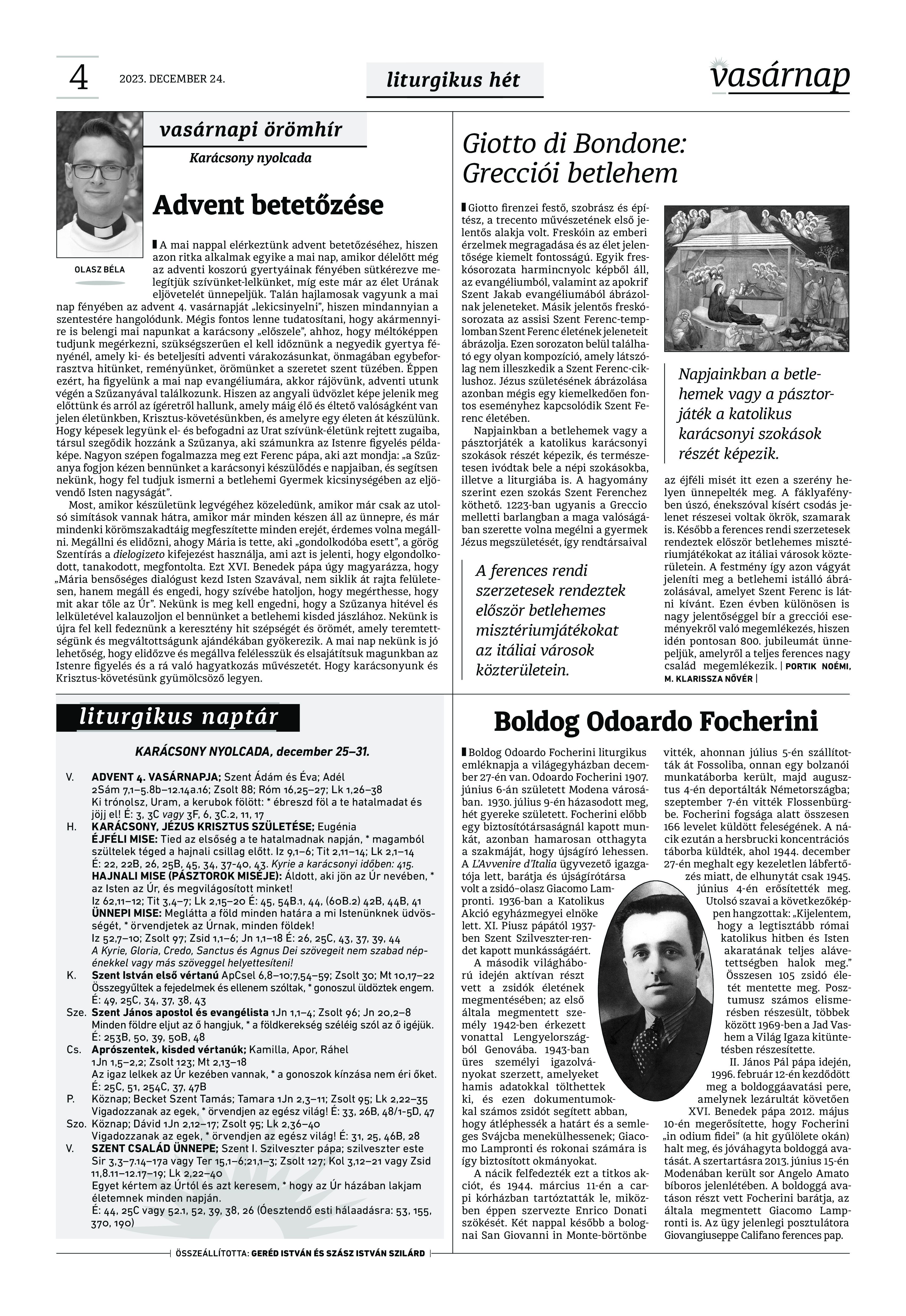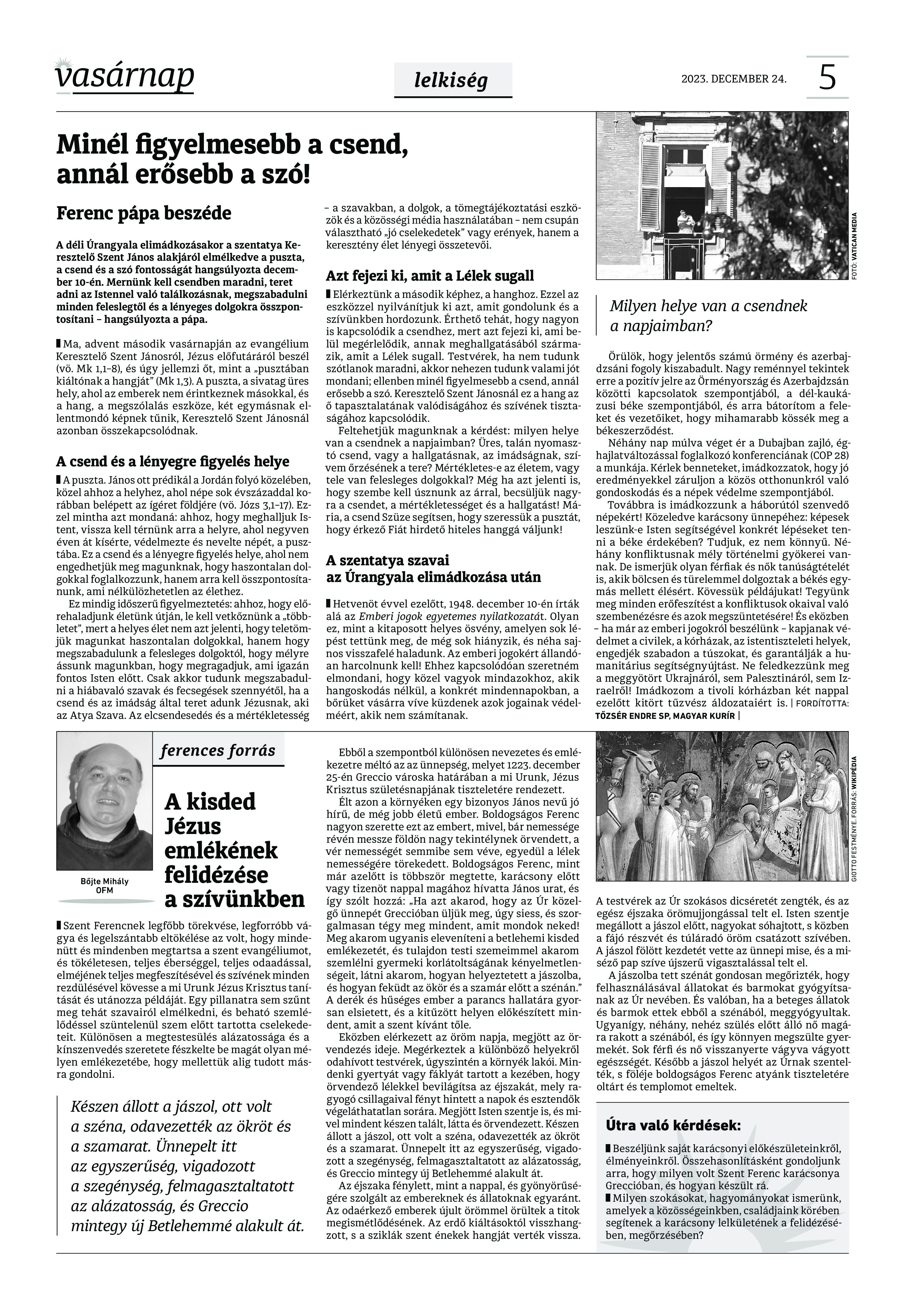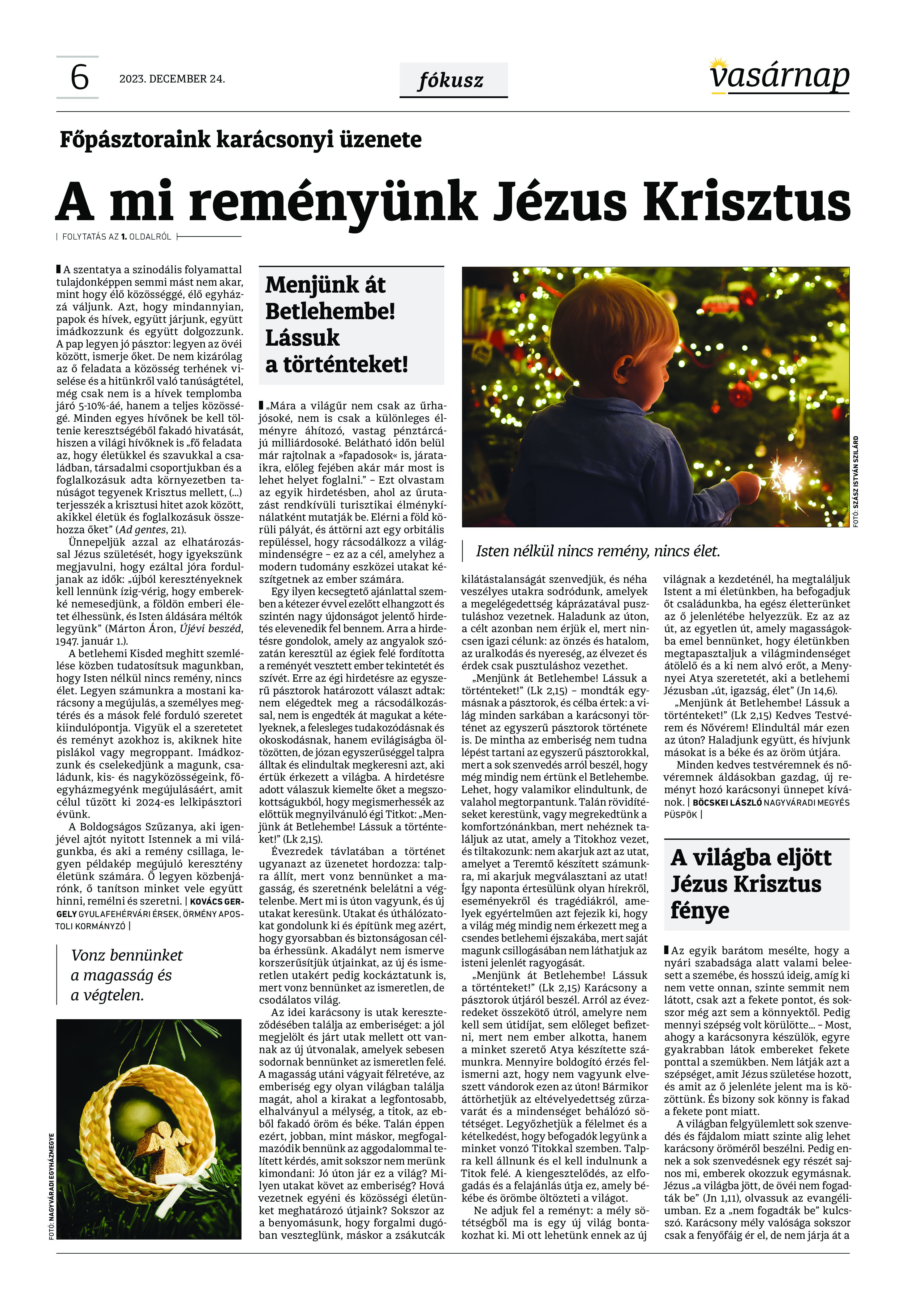 VASÁRNAP - 2023. december 24. A Vasárnap Katolikus Hetilap 2023. december 24. / XXXIII évf. / 52. számának digitális változata. 1 / 12 2 & 3 / 12 4 & 5 / 12 6 & 7 / 12 8 & 9 / 12 10 & 11 / 12 12 / 12