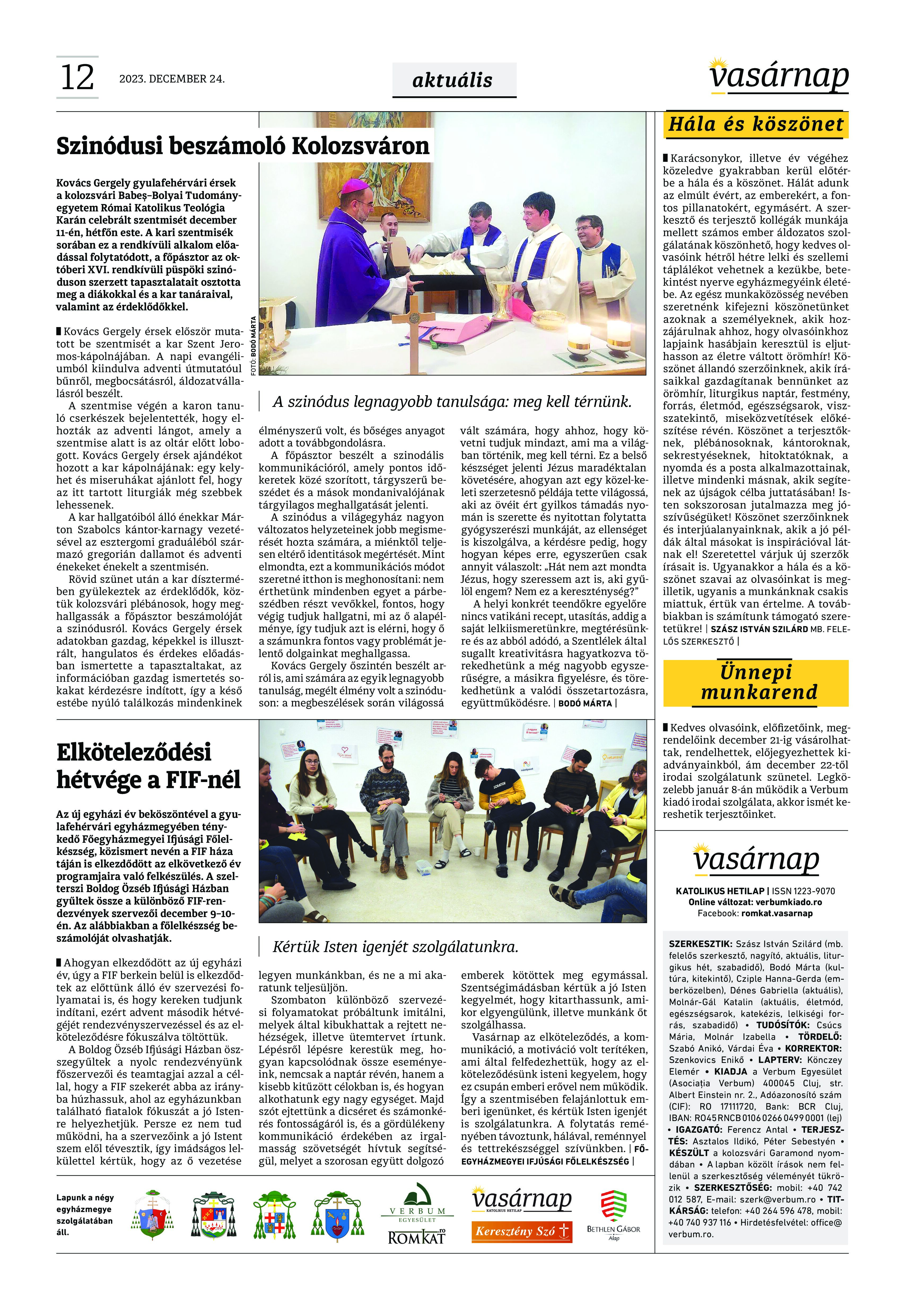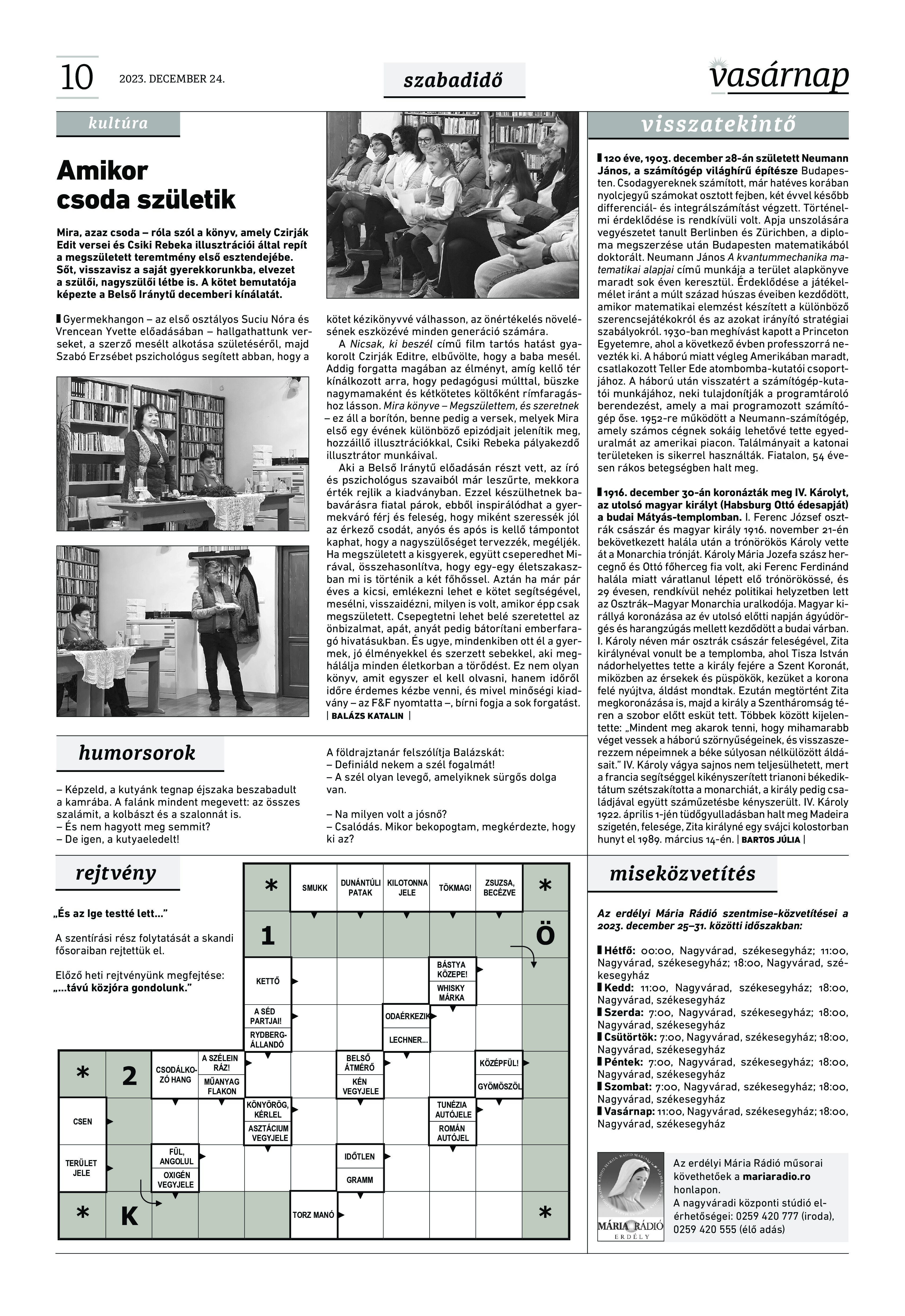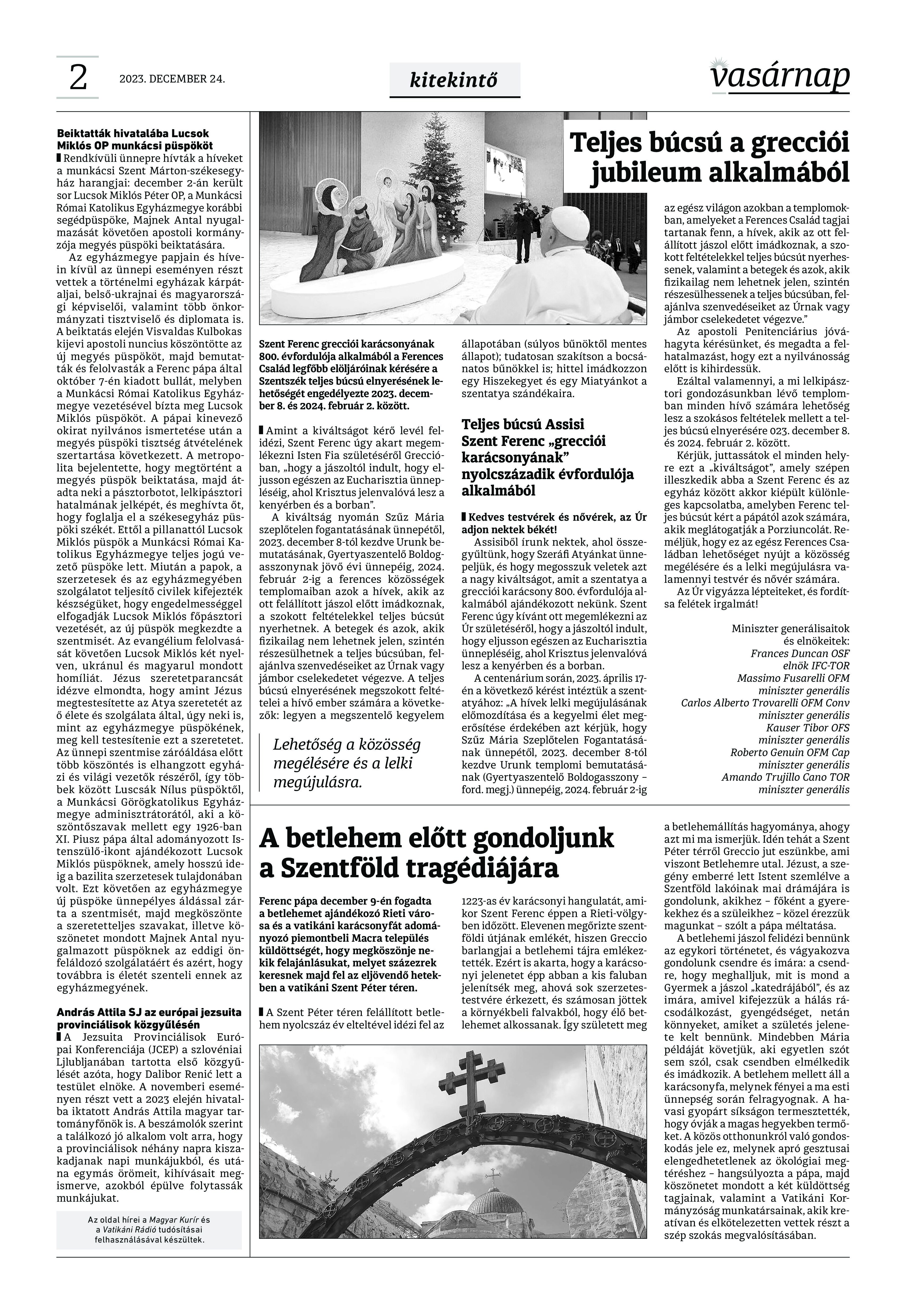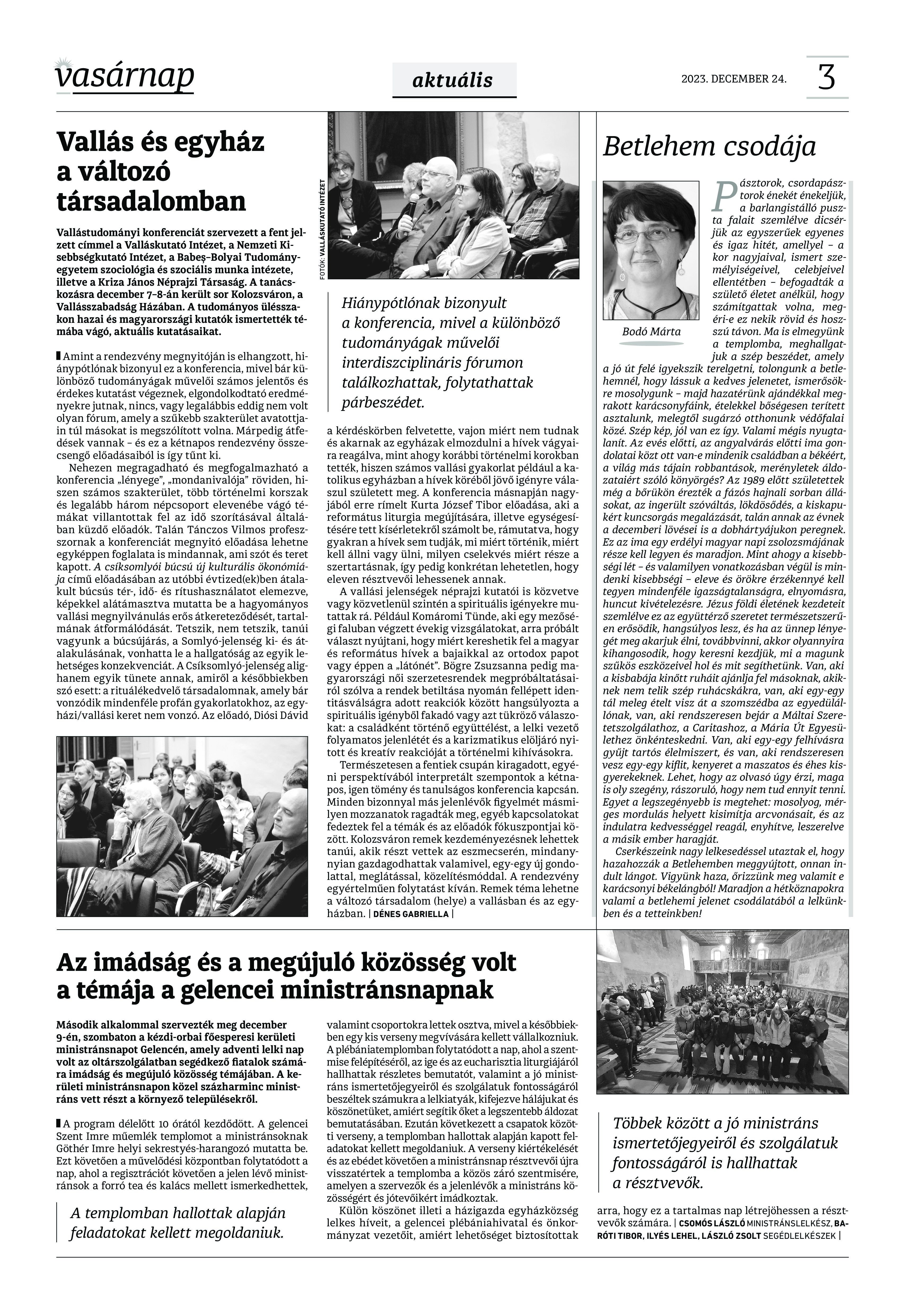 VASÁRNAP - 2023. december 24. A Vasárnap Katolikus Hetilap 2023. december 24. / XXXIII évf. / 52. számának digitális változata. 1 / 12 2 & 3 / 12 4 & 5 / 12 6 & 7 / 12 8 & 9 / 12 10 & 11 / 12 12 / 12