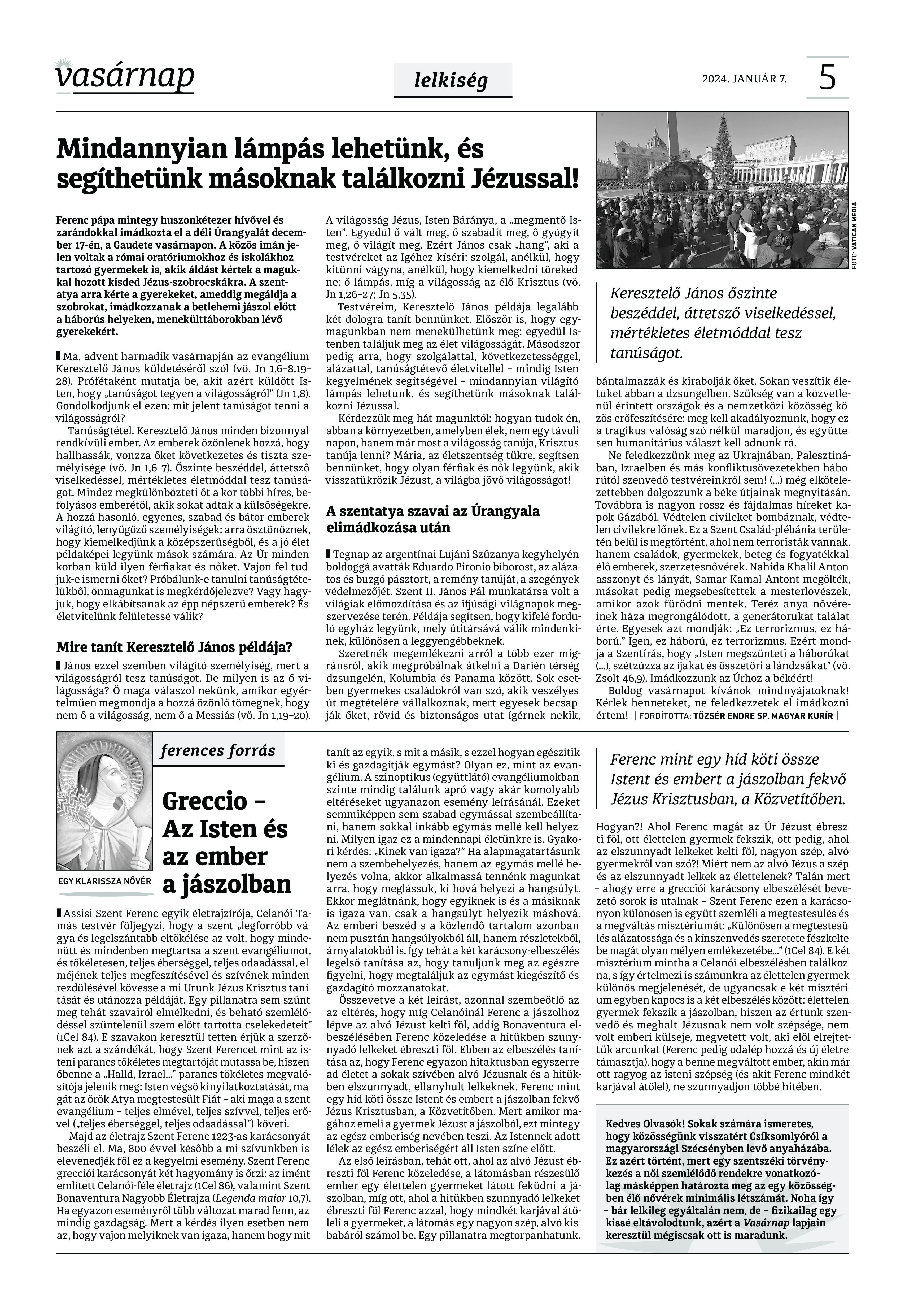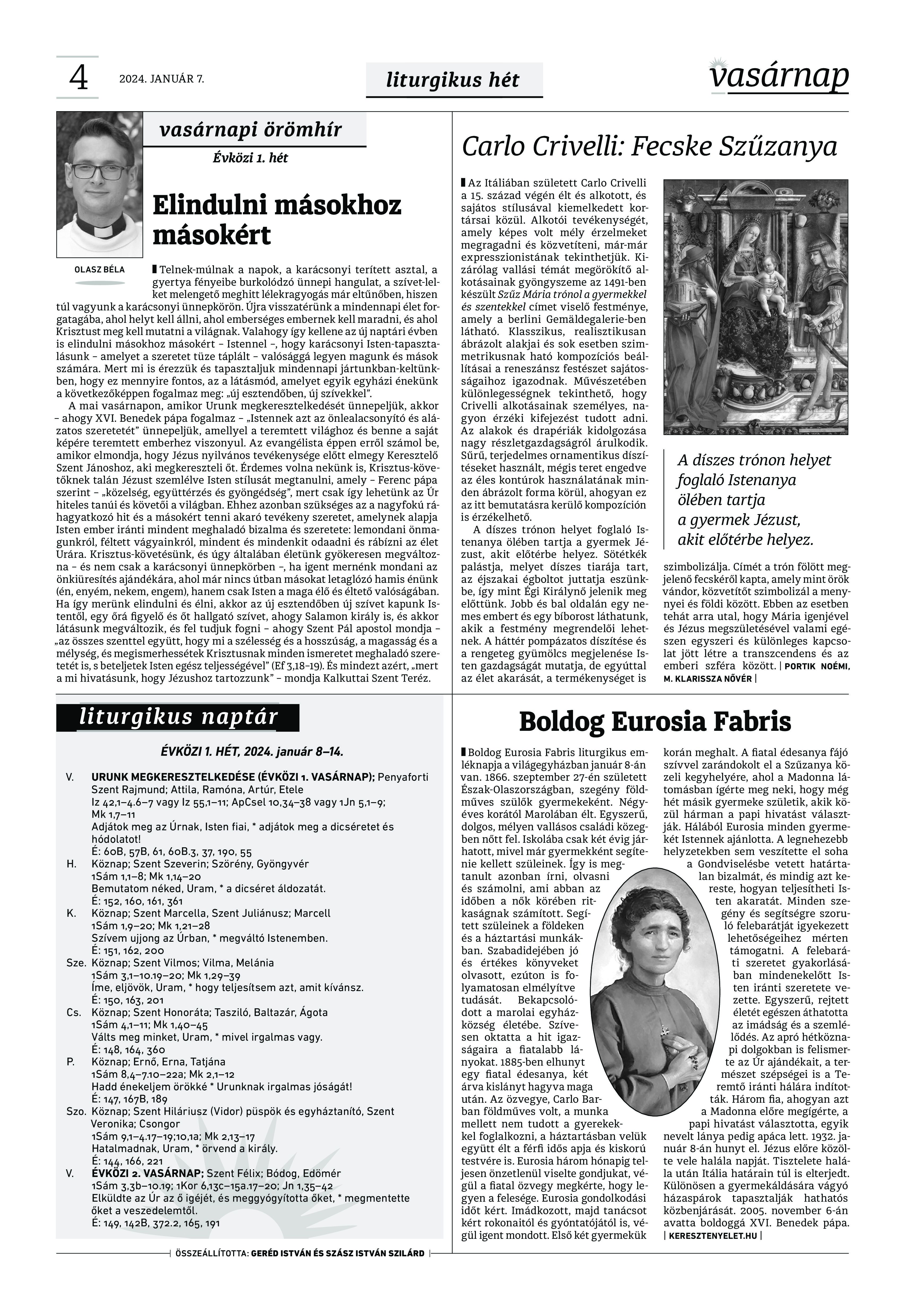 VASÁRNAP - 2024. január 7. A Vasárnap Katolikus Hetilap 2024. január 7. / XXXIV évf. / 1. számának digitális változata. 1 / 12 2 & 3 / 12 4 & 5 / 12 6 & 7 / 12 8 & 9 / 12 10 & 11 / 12 12 / 12
