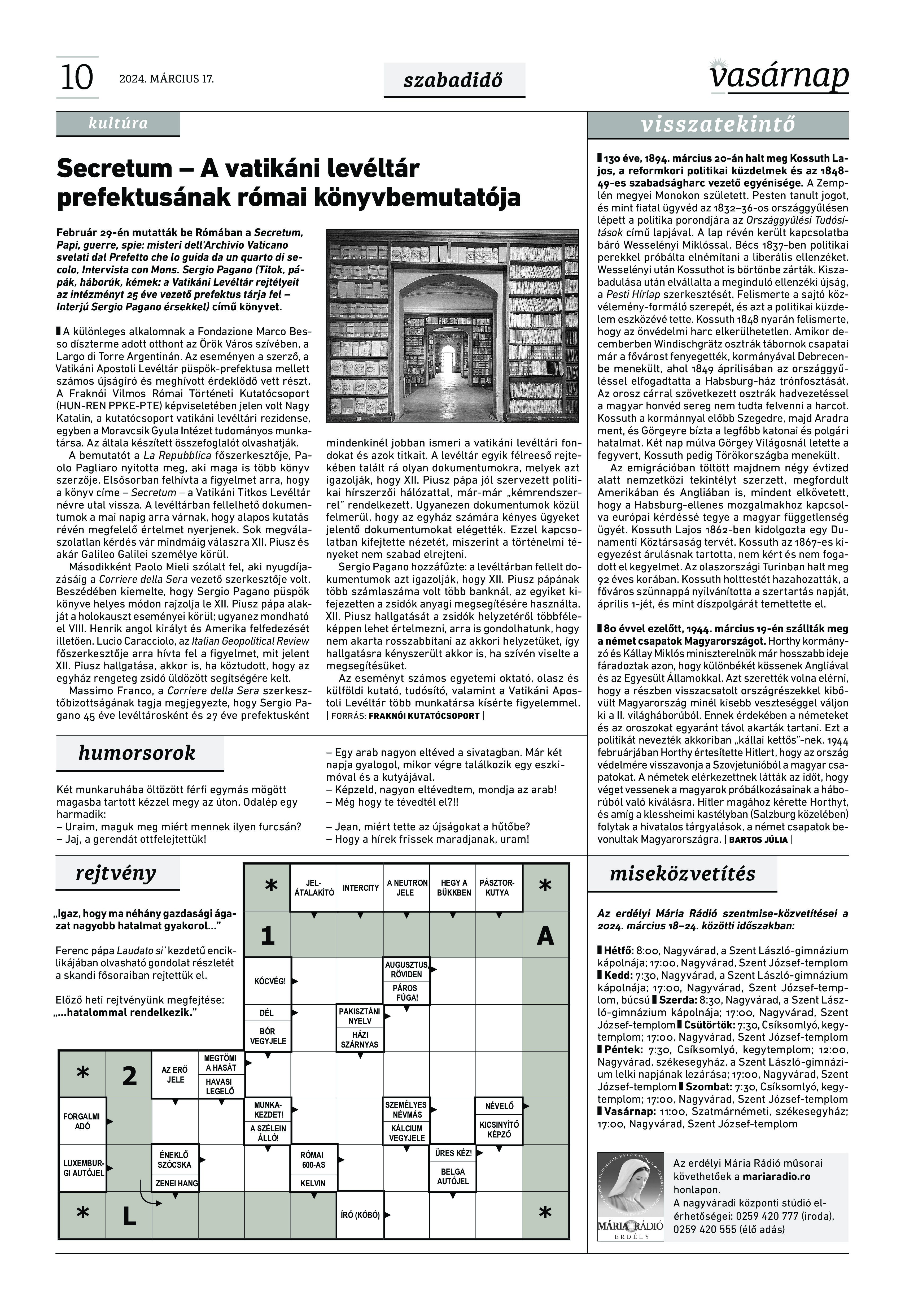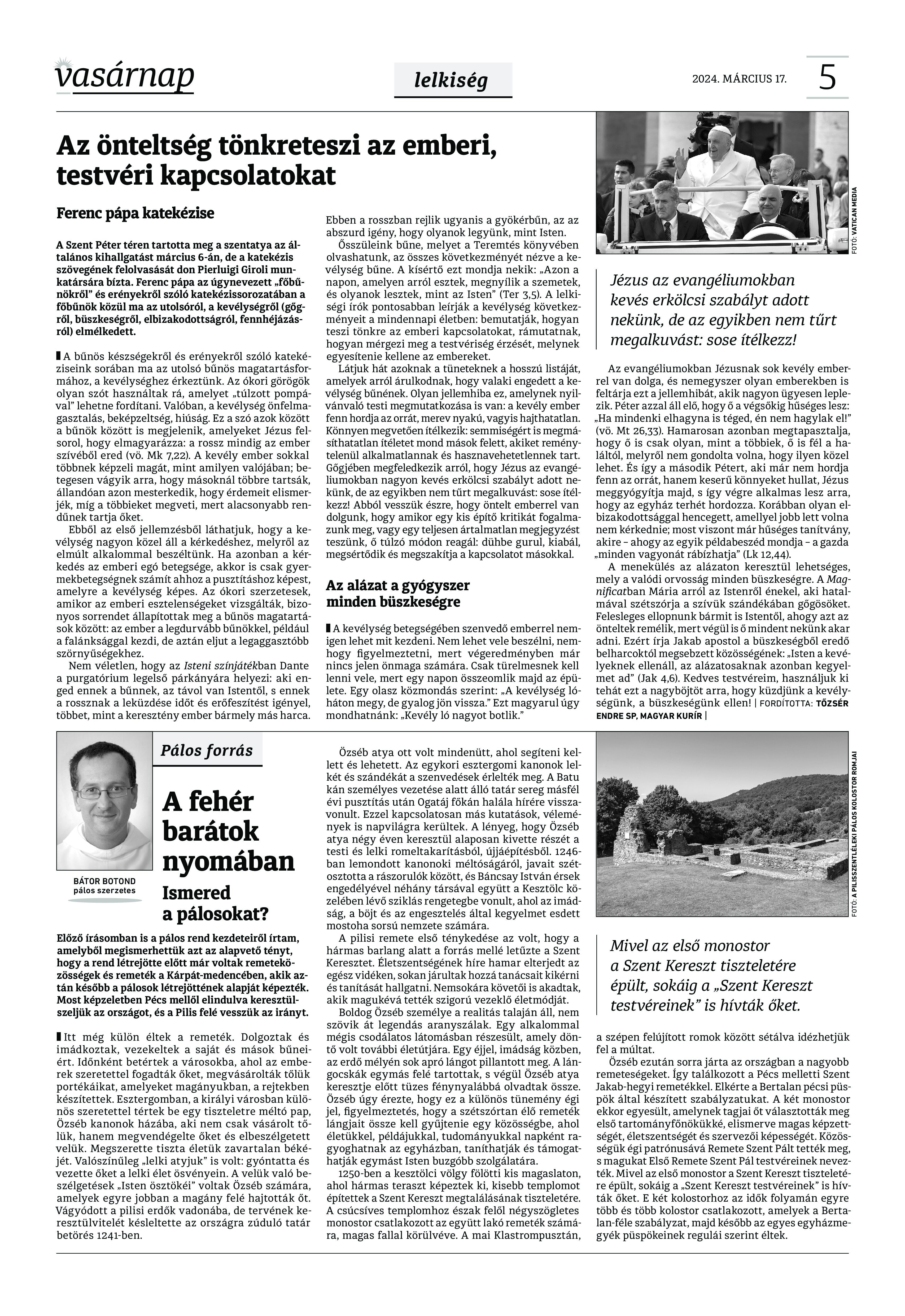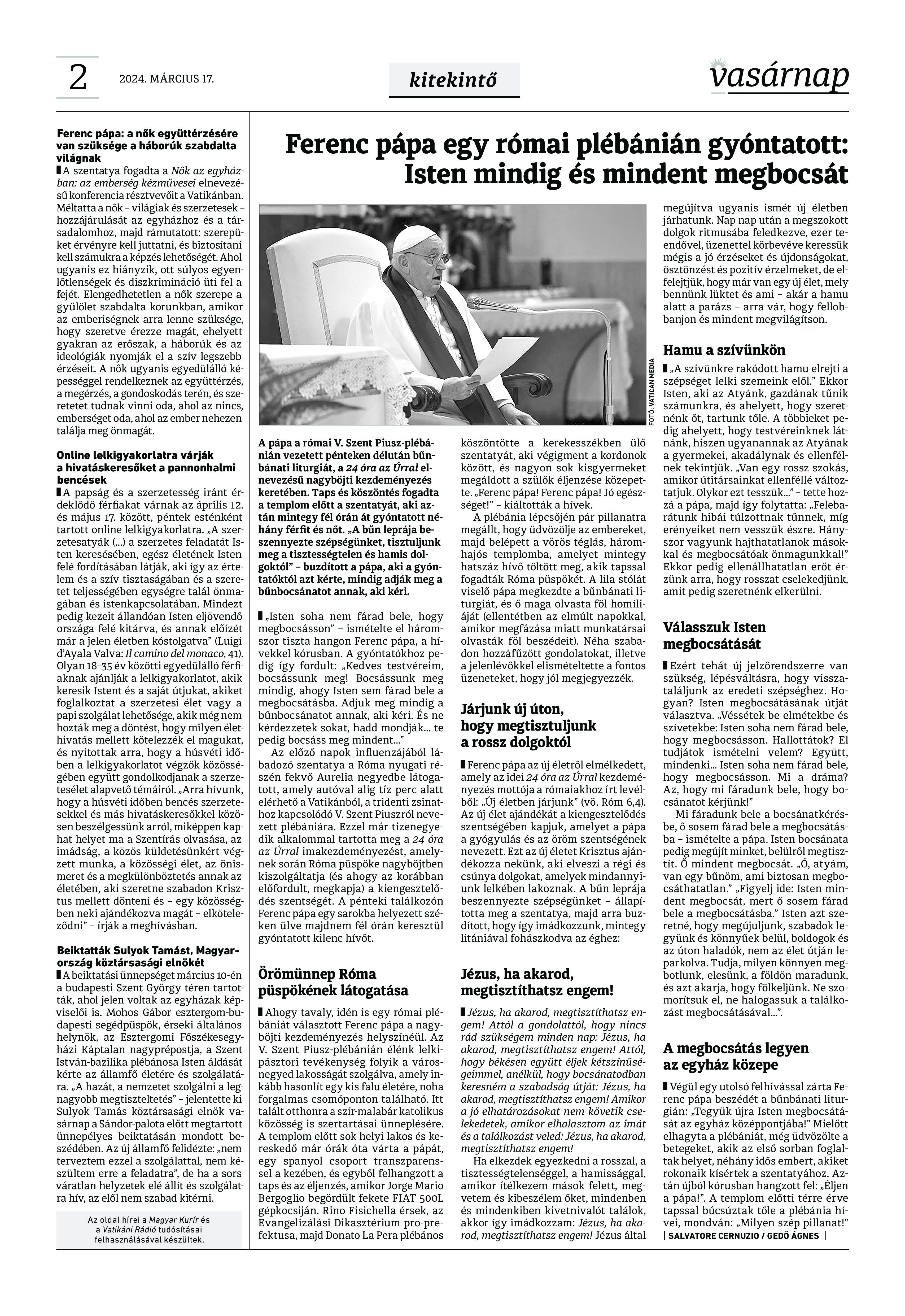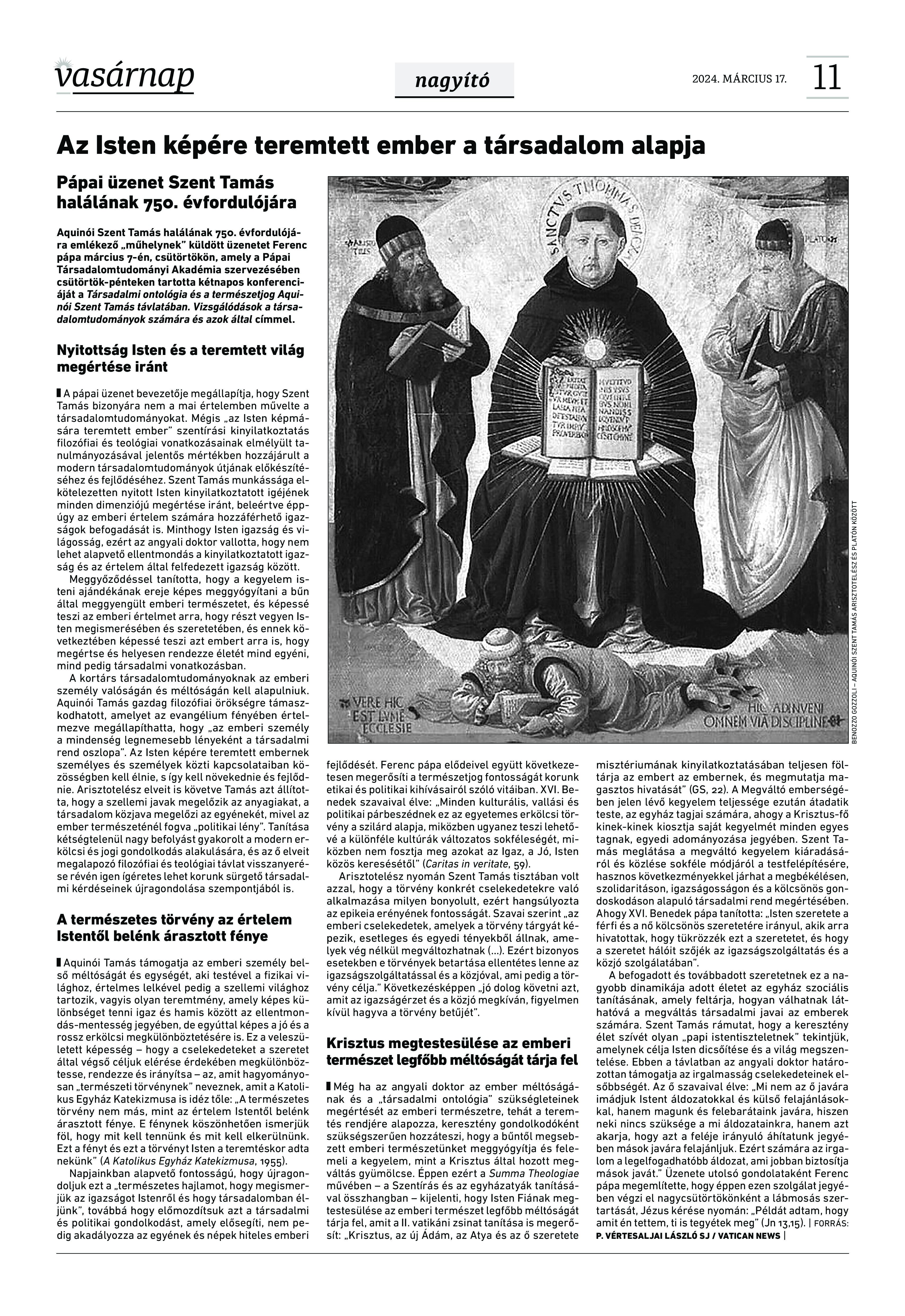 A Vasárnap Katolikus Hetilap 2024. március 17. / XXXIV évf. / 11. számának digitális változata.