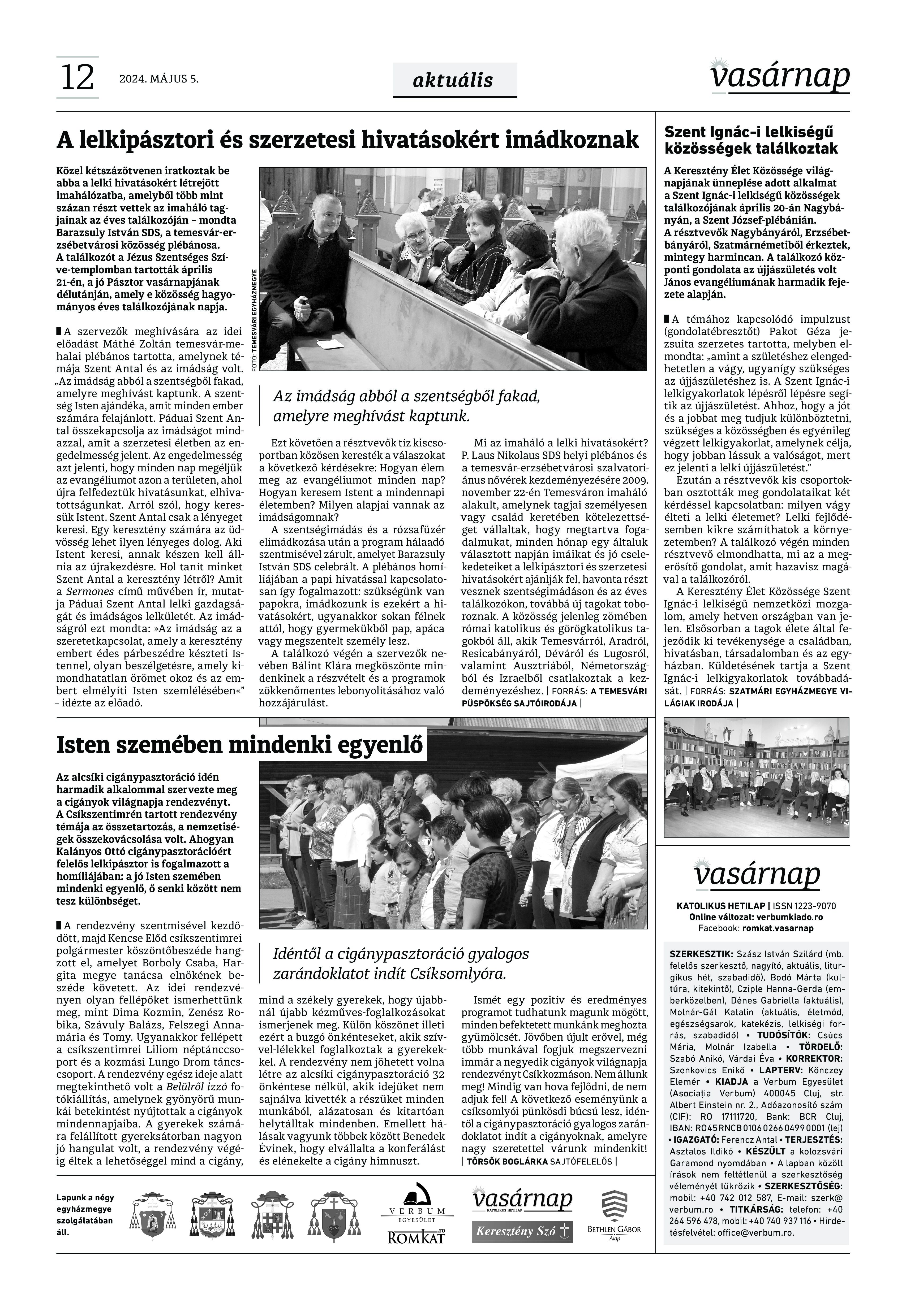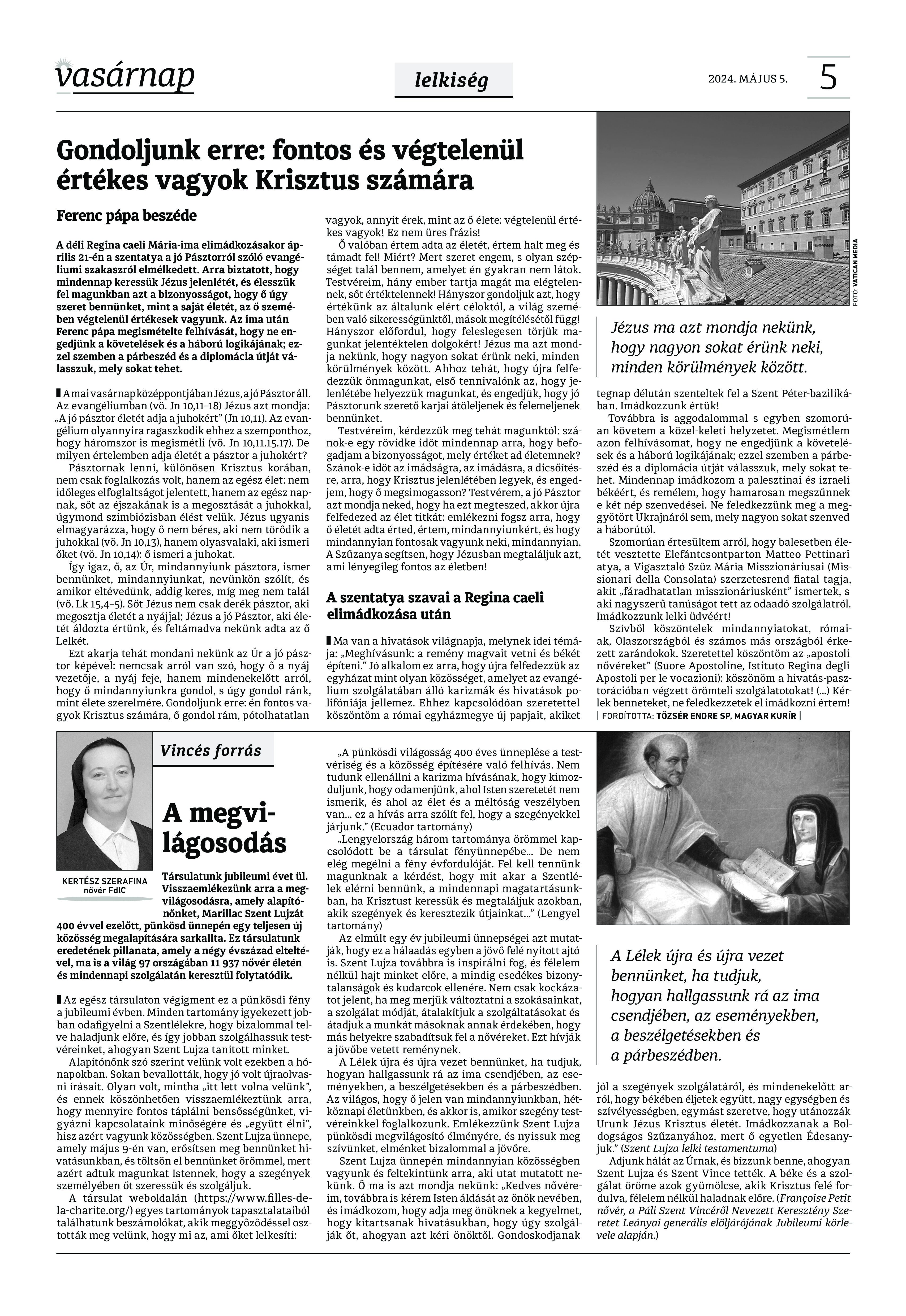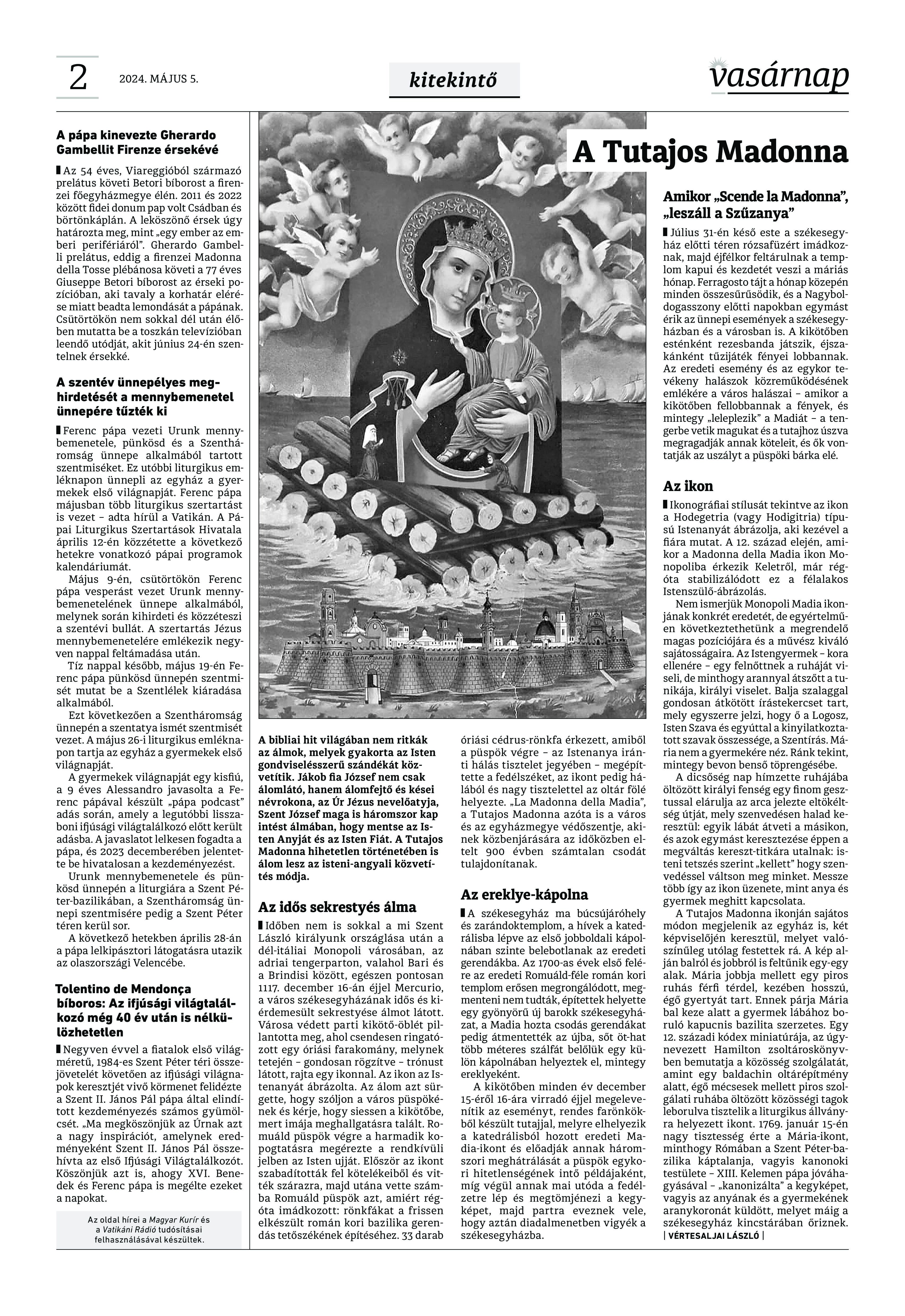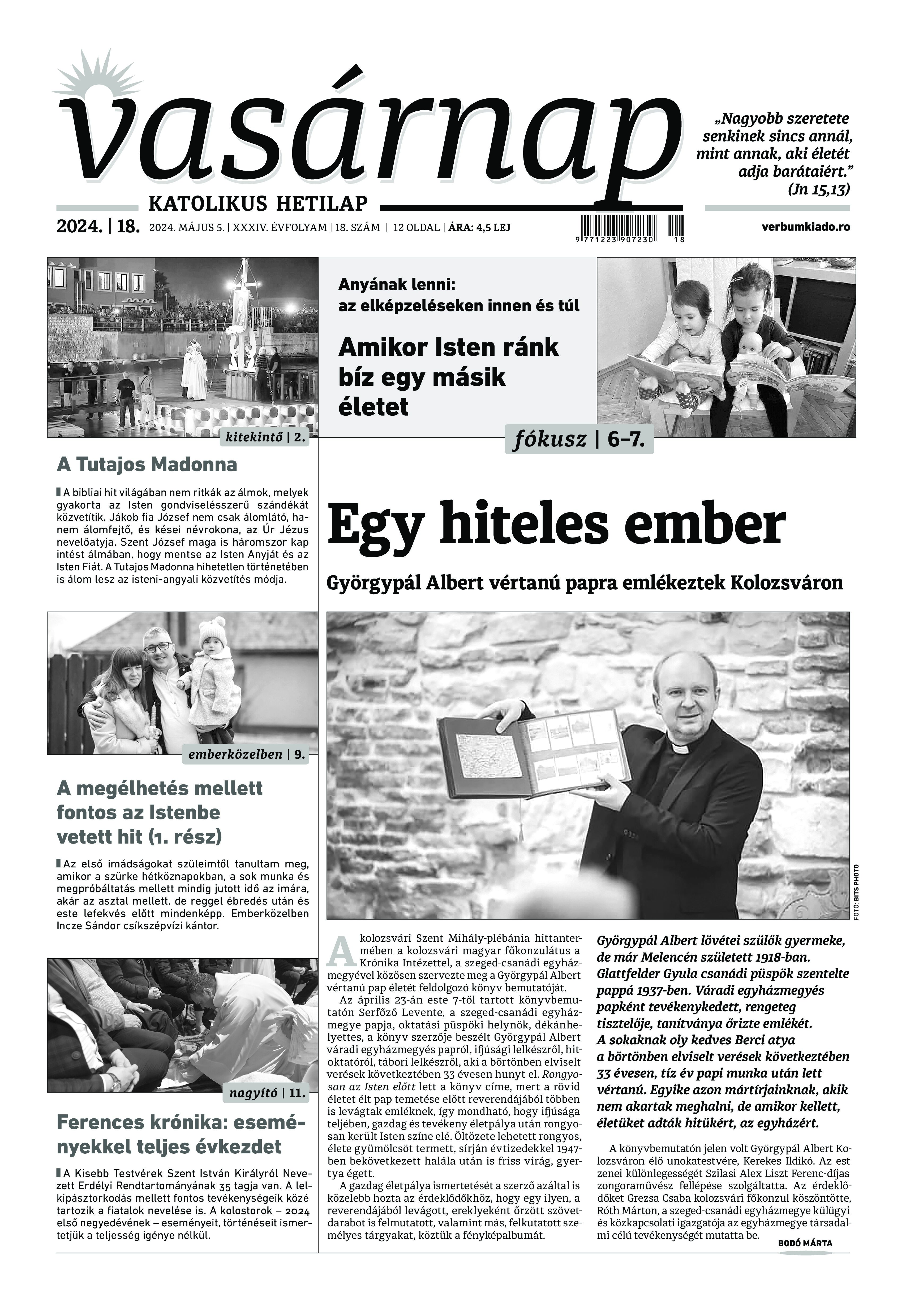 A Vasárnap Katolikus Hetilap 2024. május 5. / XXXIV évf. / 18. számának digitális változata.