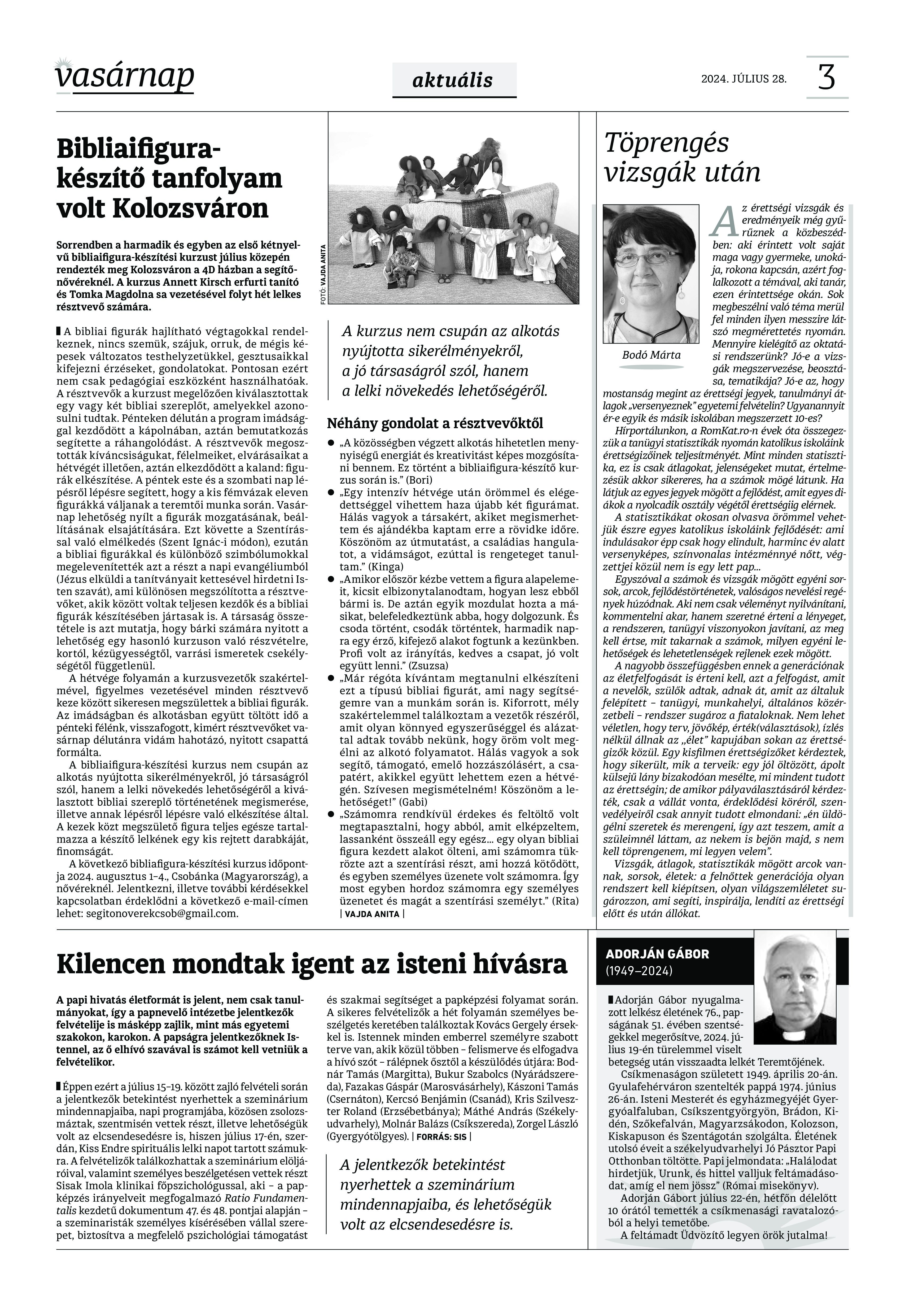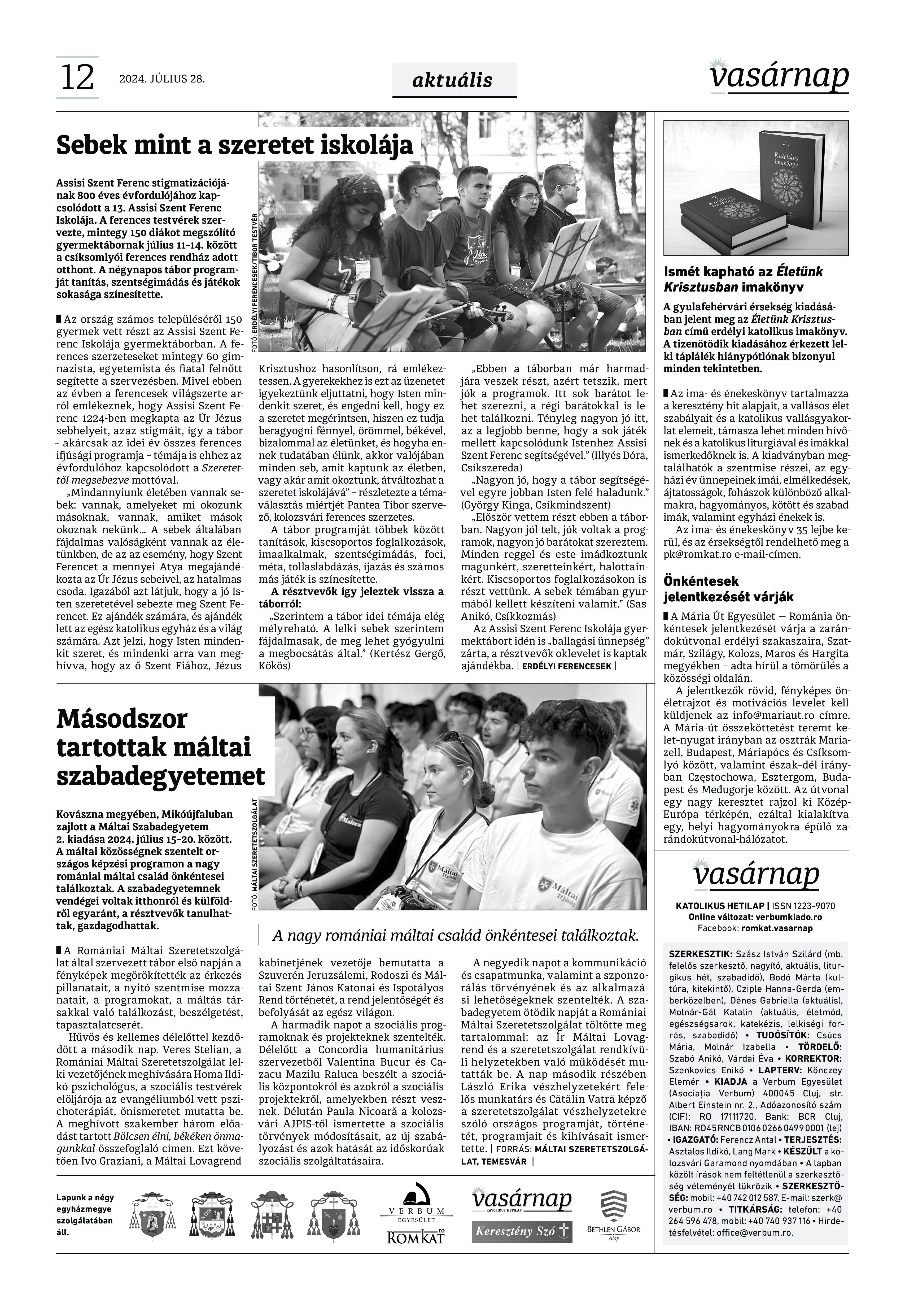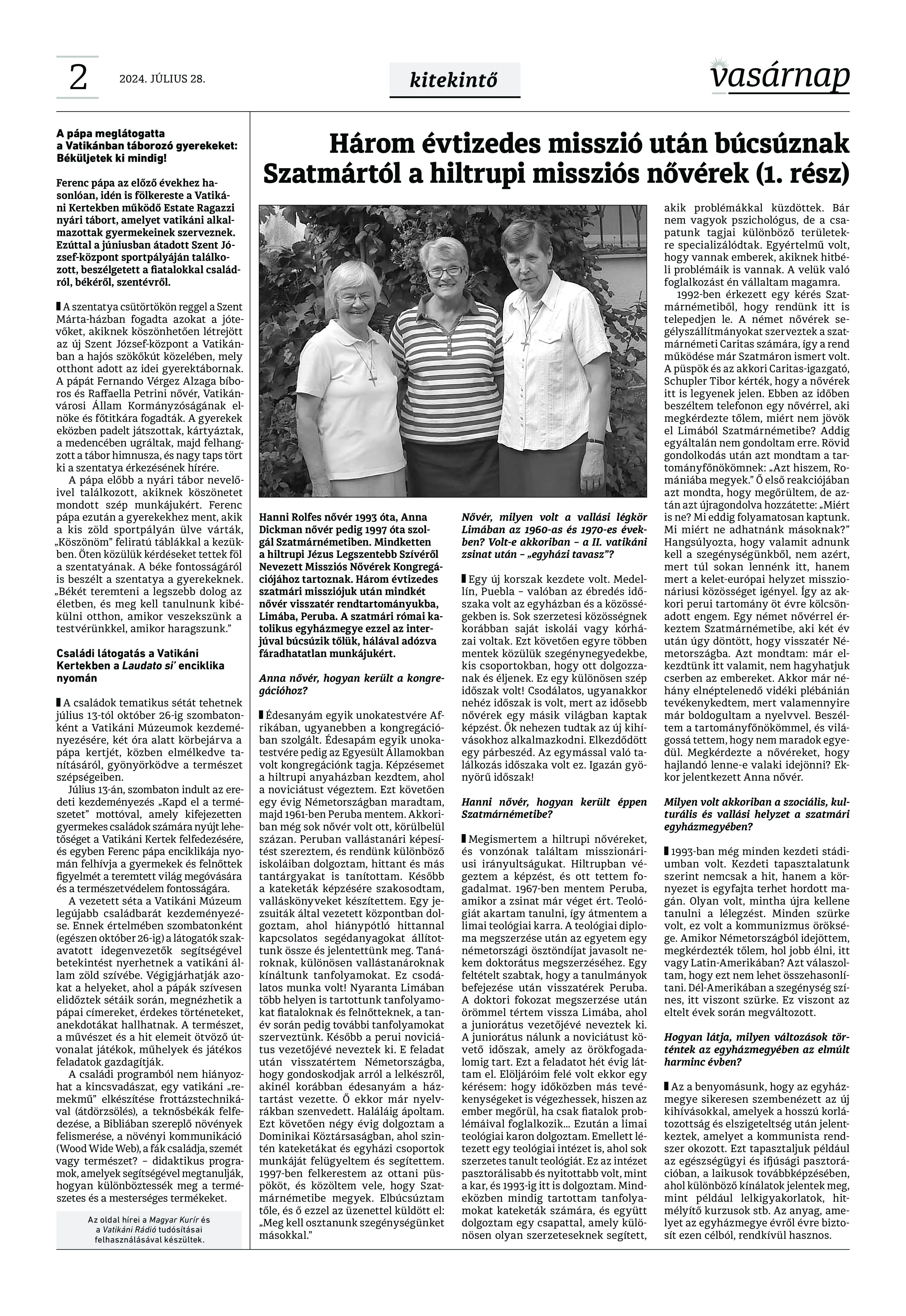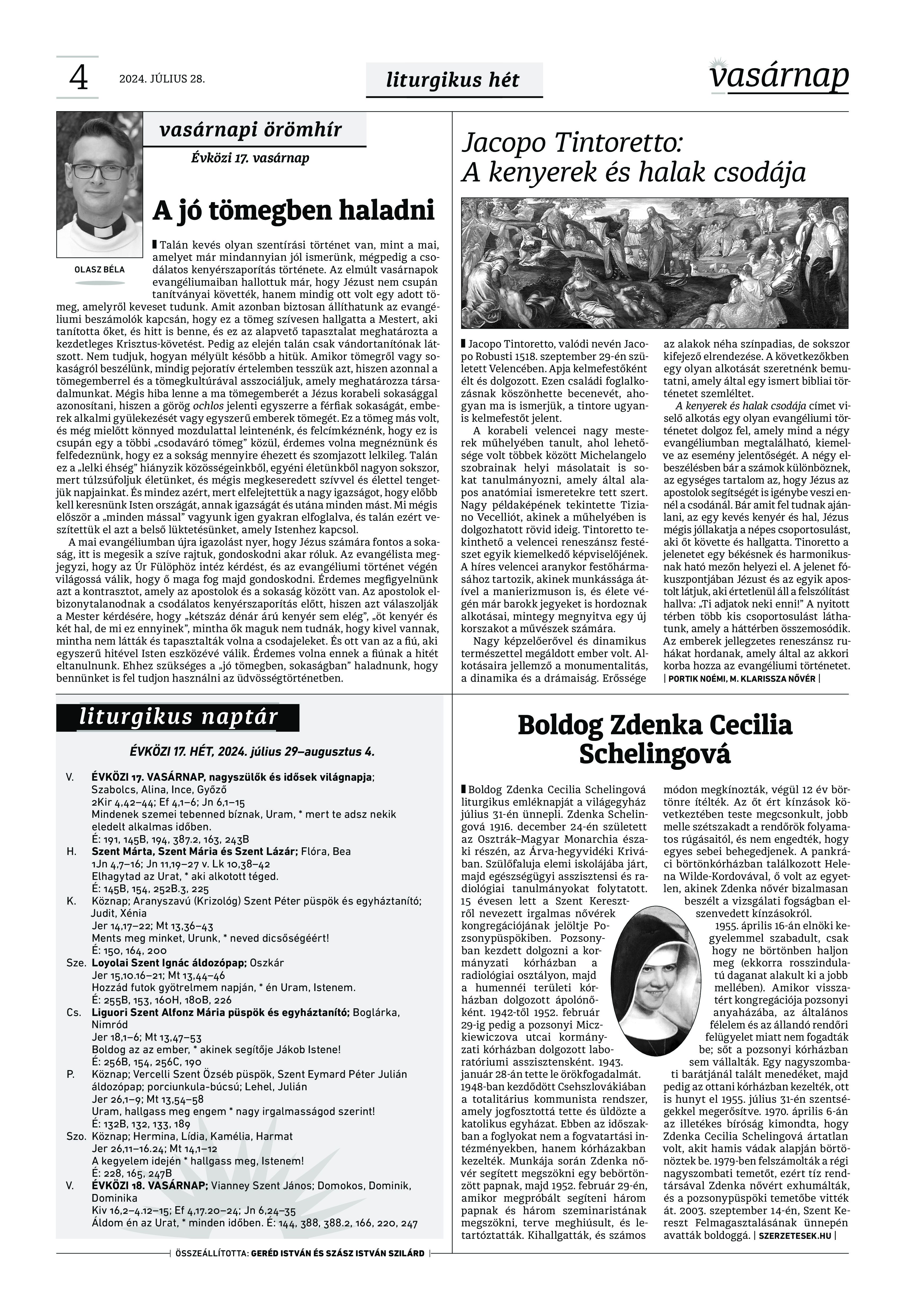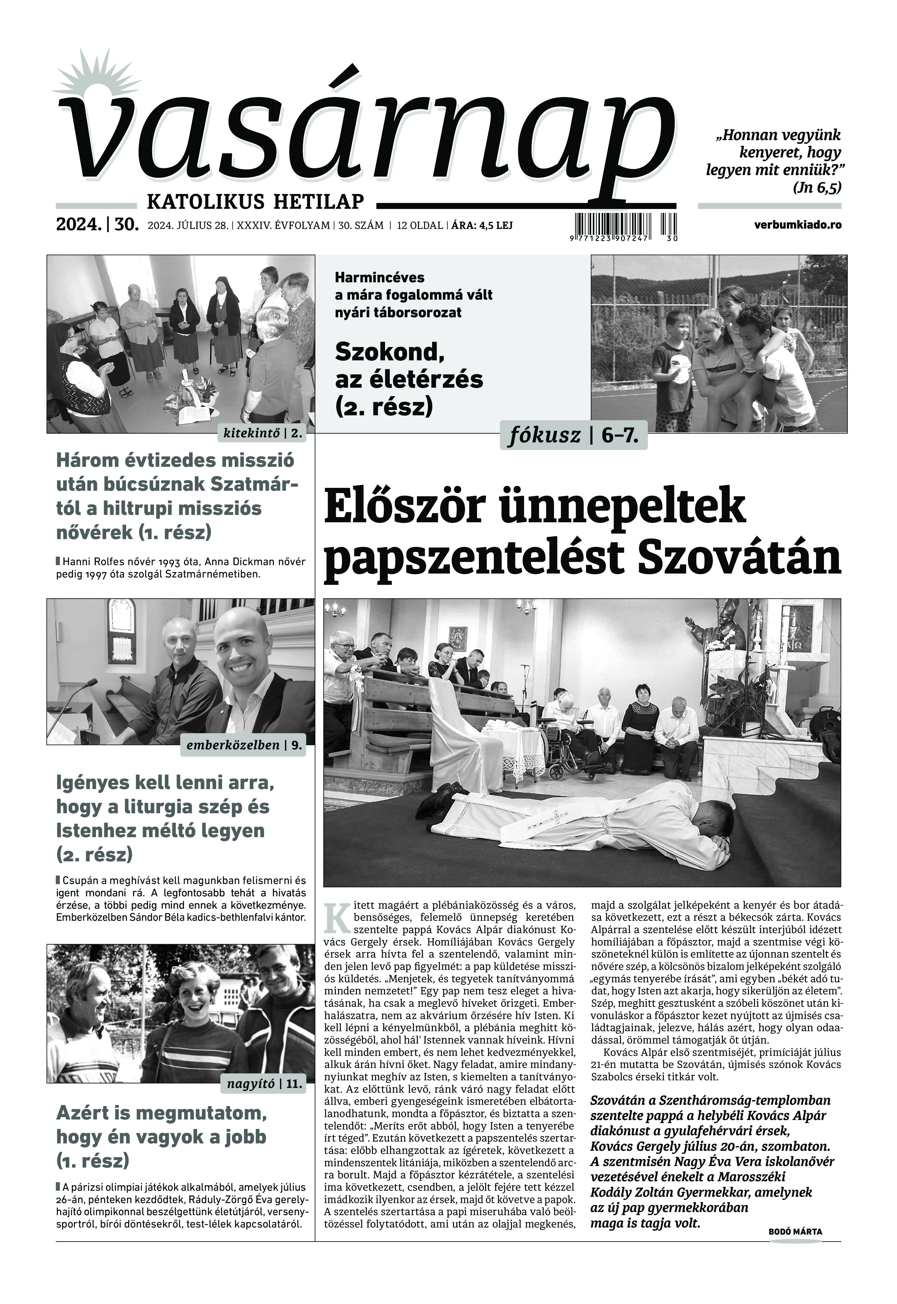 A Vasárnap Katolikus Hetilap 2024. július 28. / XXXIV évf. / 30. számának digitális változata.