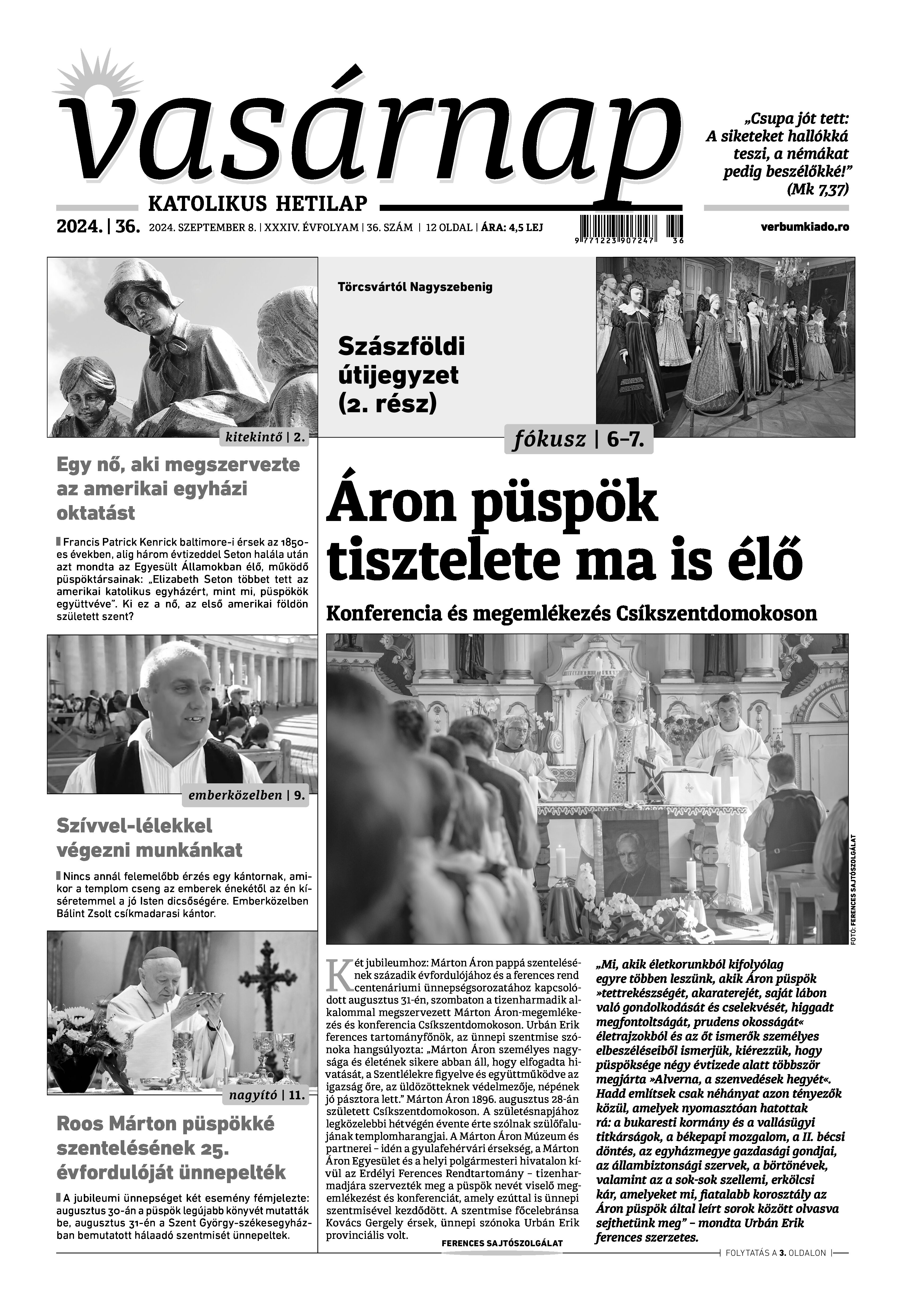 VASÁRNAP - 2024. szeptember 8. A Vasárnap Katolikus Hetilap 2024. szeptember 8. / XXXIV évf. / 36. számának digitális változata. 1 / 12 2 & 3 / 12 4 & 5 / 12 6 & 7 / 12 8 & 9 / 12 10 & 11 / 12 12 / 12
