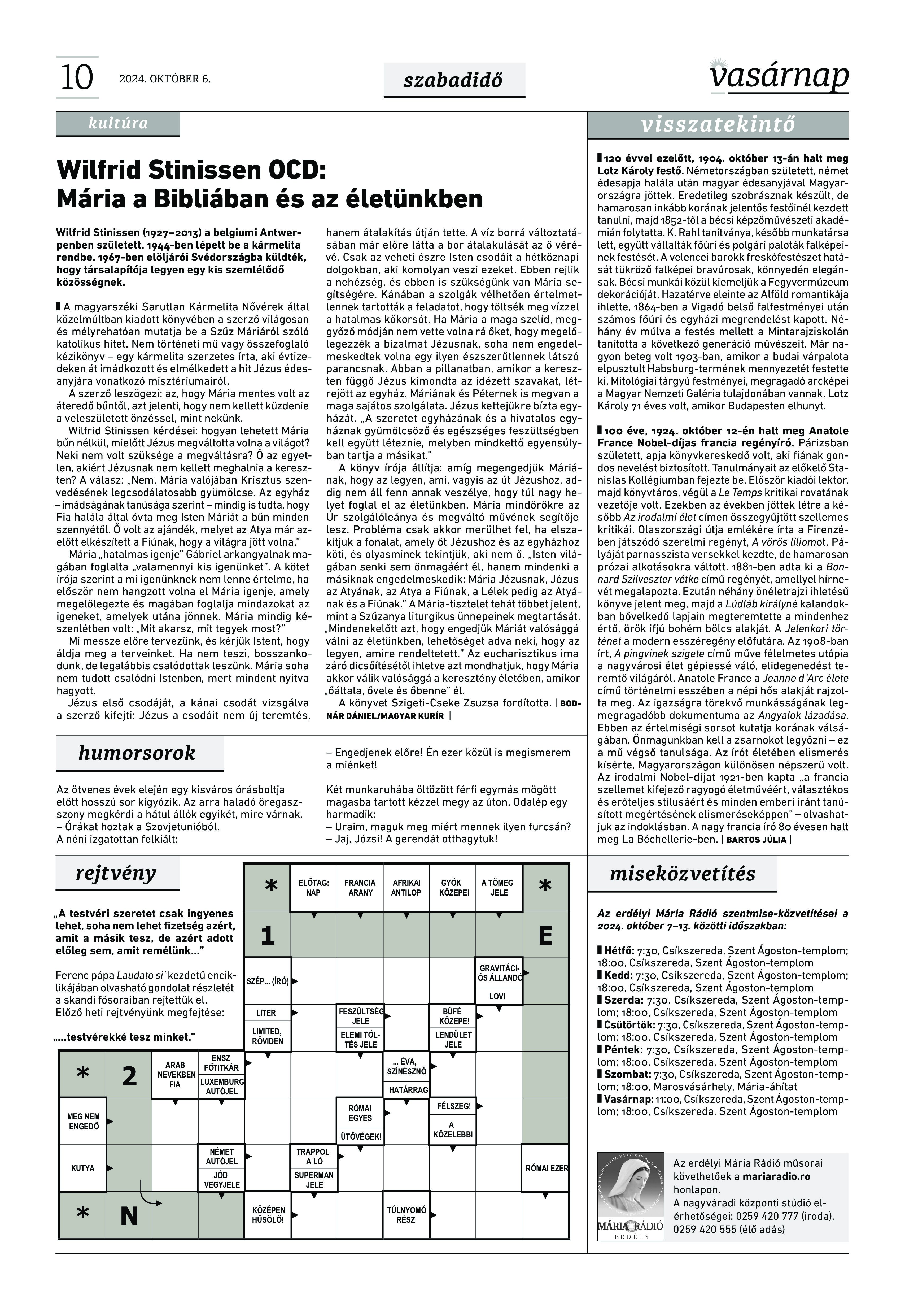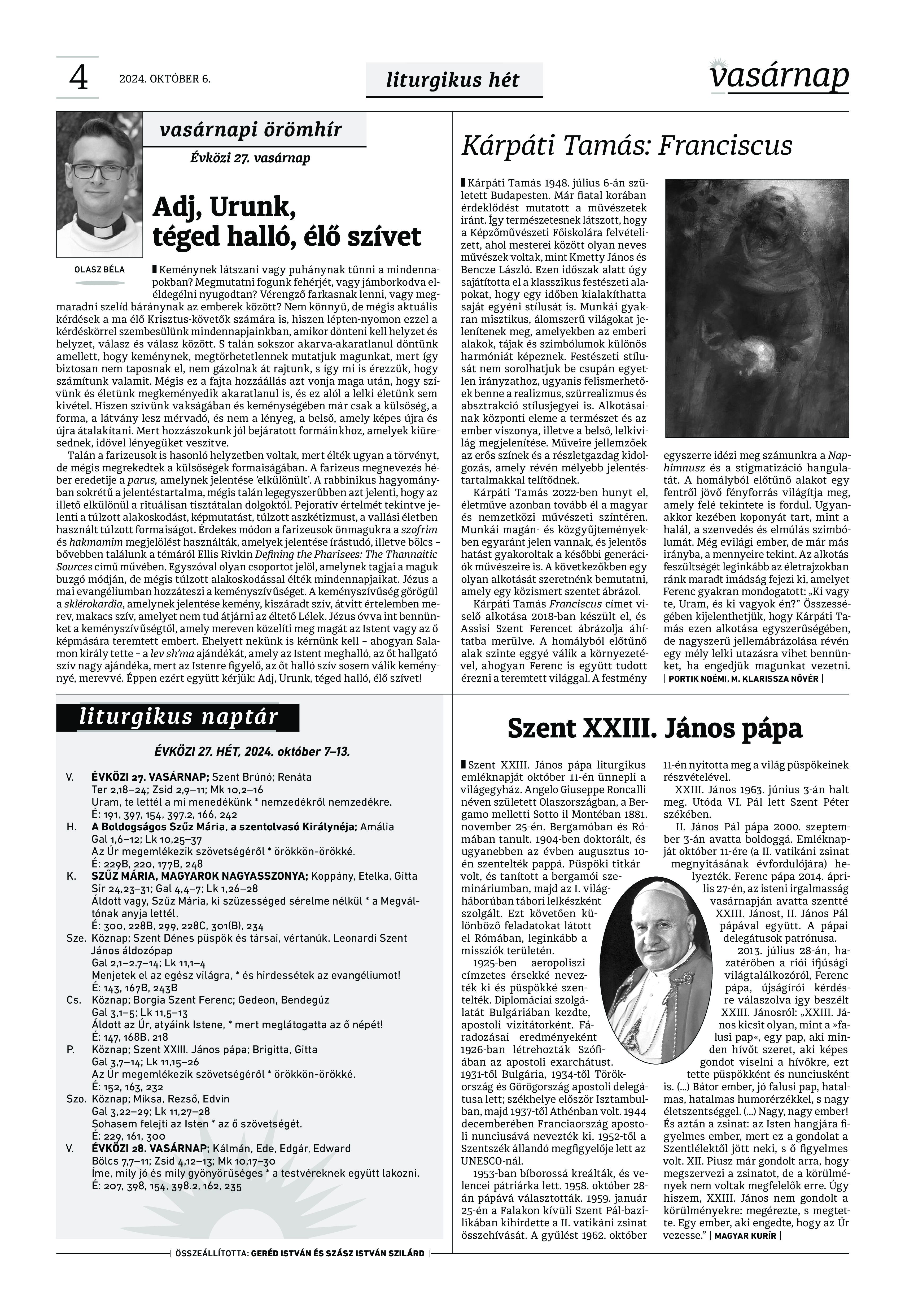 VASÁRNAP - 2024. október 6. A Vasárnap Katolikus Hetilap 2024.október 6. / XXXIV évf. / 40. számának digitális változata. 1 / 12 2 & 3 / 12 4 & 5 / 12 6 & 7 / 12 8 & 9 / 12 10 & 11 / 12 12 / 12