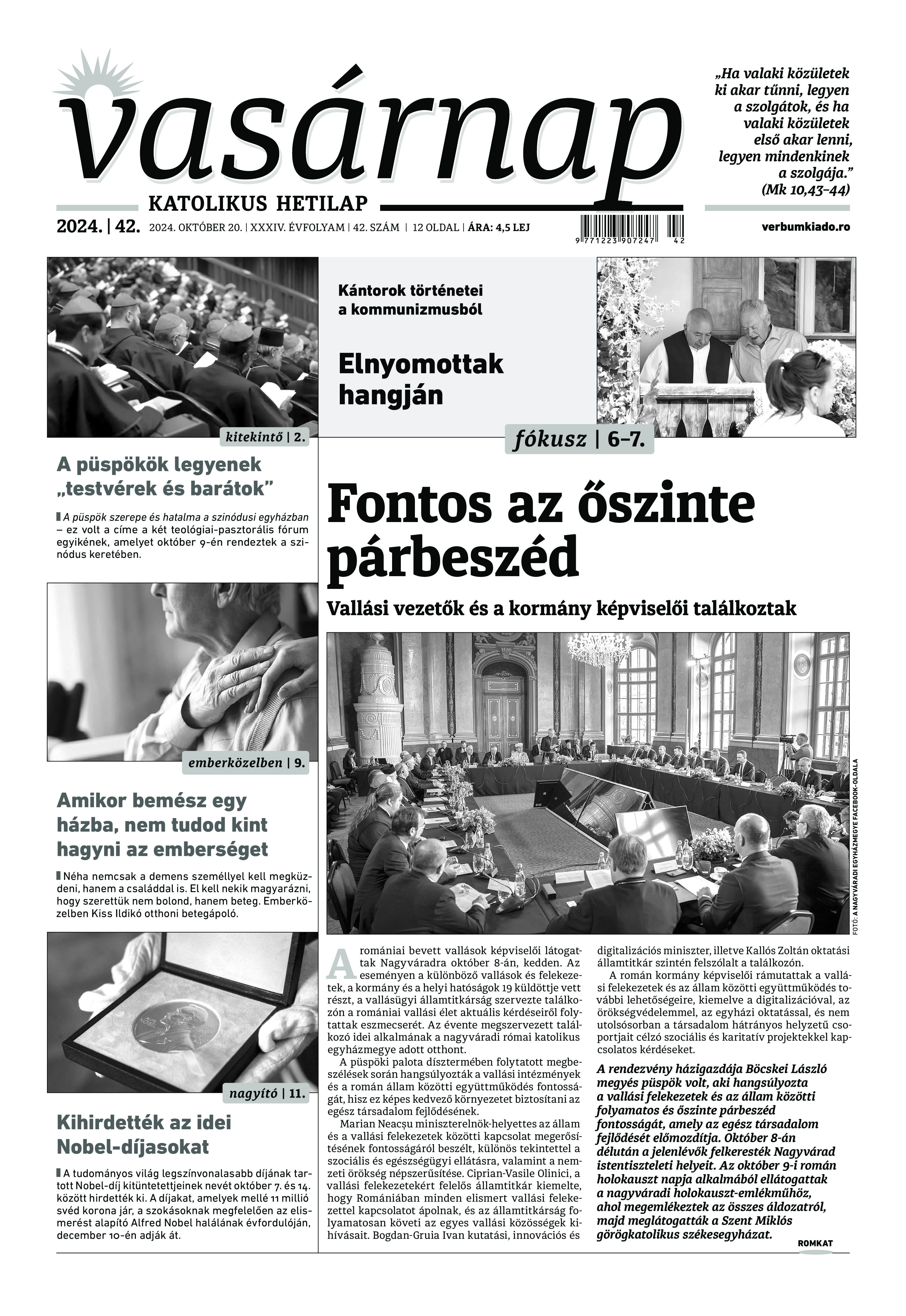 VASÁRNAP - 2024. október 20. A Vasárnap Katolikus Hetilap 2024.október 20. / XXXIV évf. / 42. számának digitális változata. 1 / 12 2 & 3 / 12 4 & 5 / 12 6 & 7 / 12 8 & 9 / 12 10 & 11 / 12 12 / 12