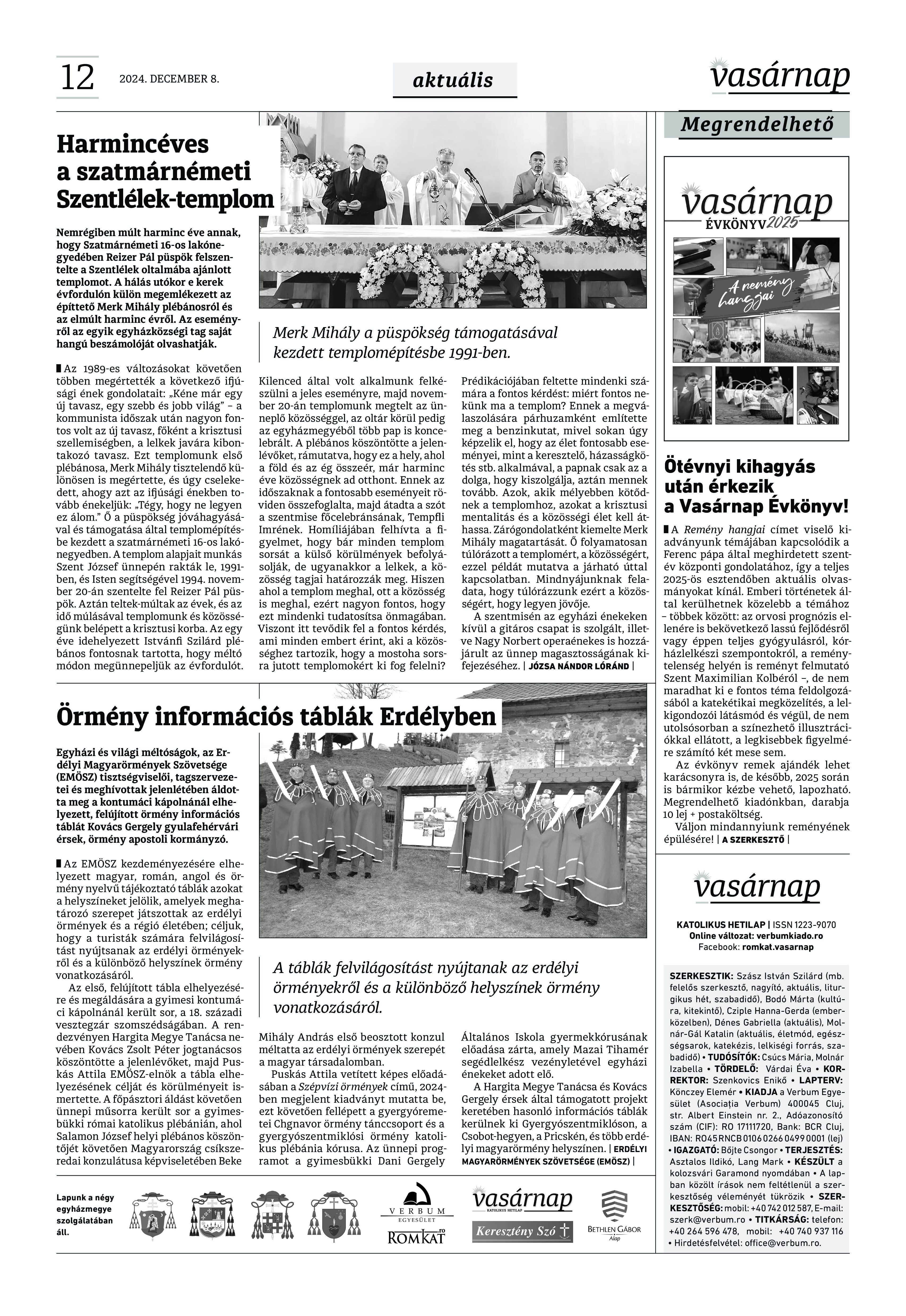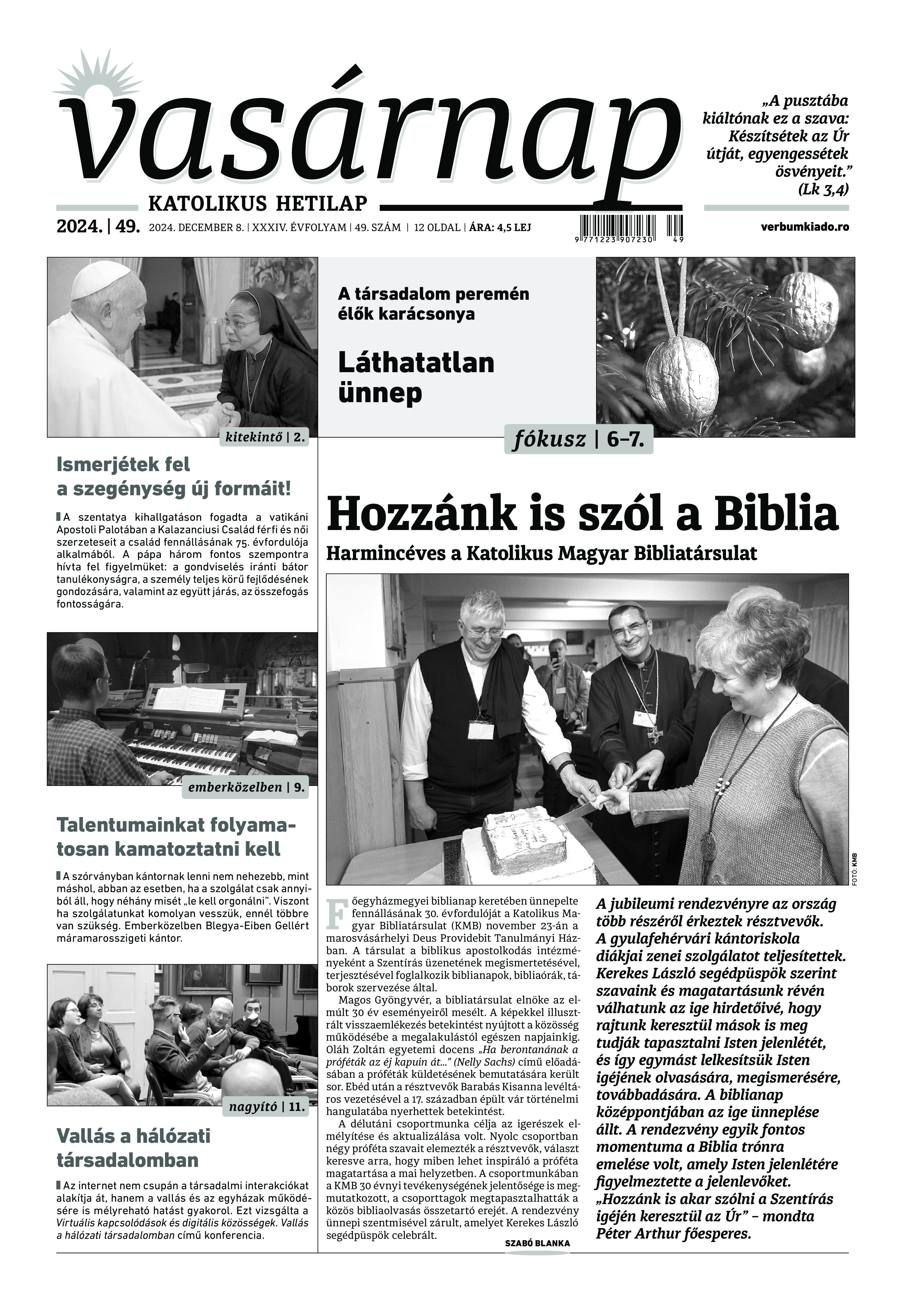 VASÁRNAP - 2024. december 8. A Vasárnap Katolikus Hetilap 2024. december 8. / XXXIV évf. / 49. számának digitális változata. 1 / 12 2 & 3 / 12 4 & 5 / 12 6 & 7 / 12 8 & 9 / 12 10 & 11 / 12 12 / 12