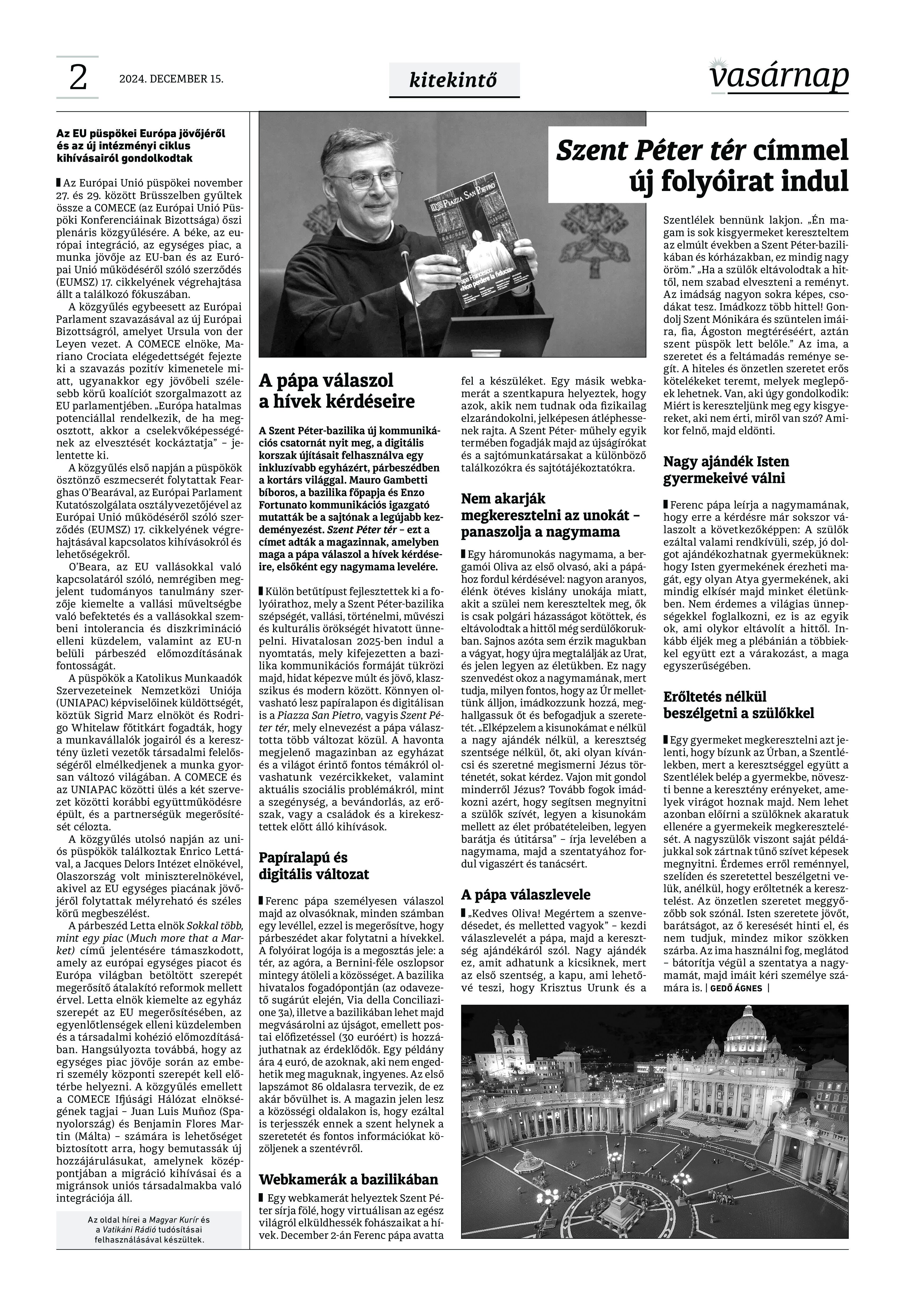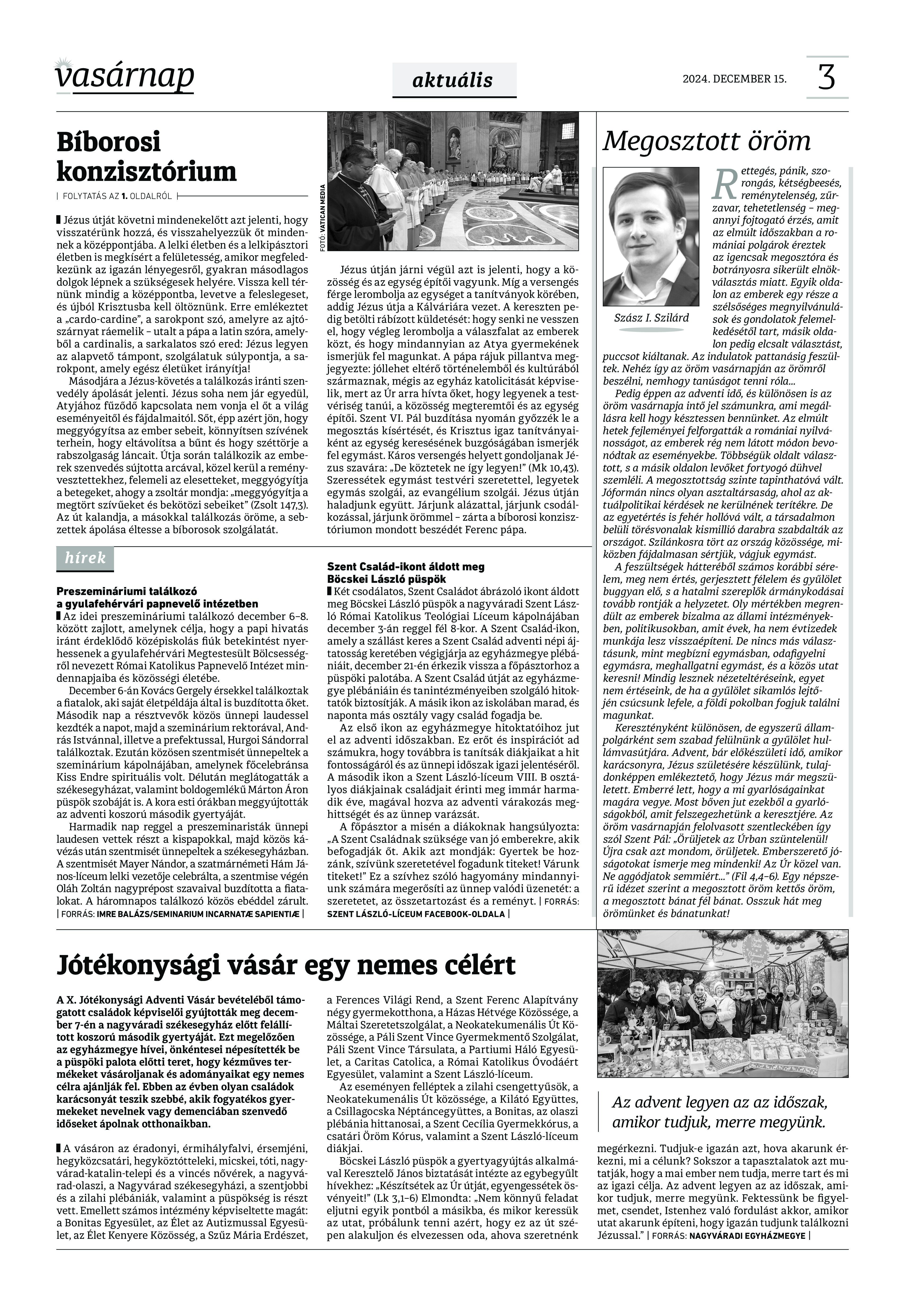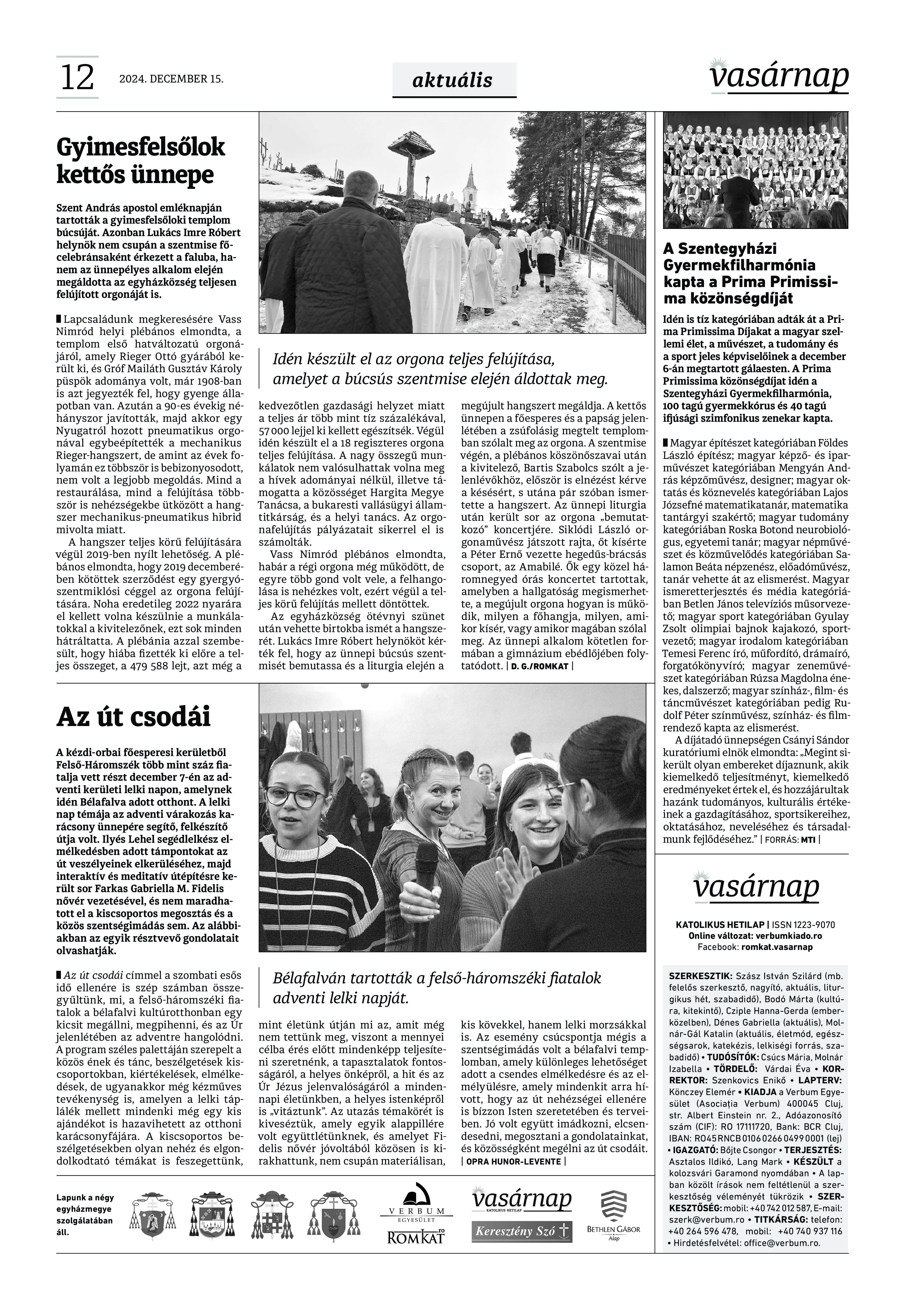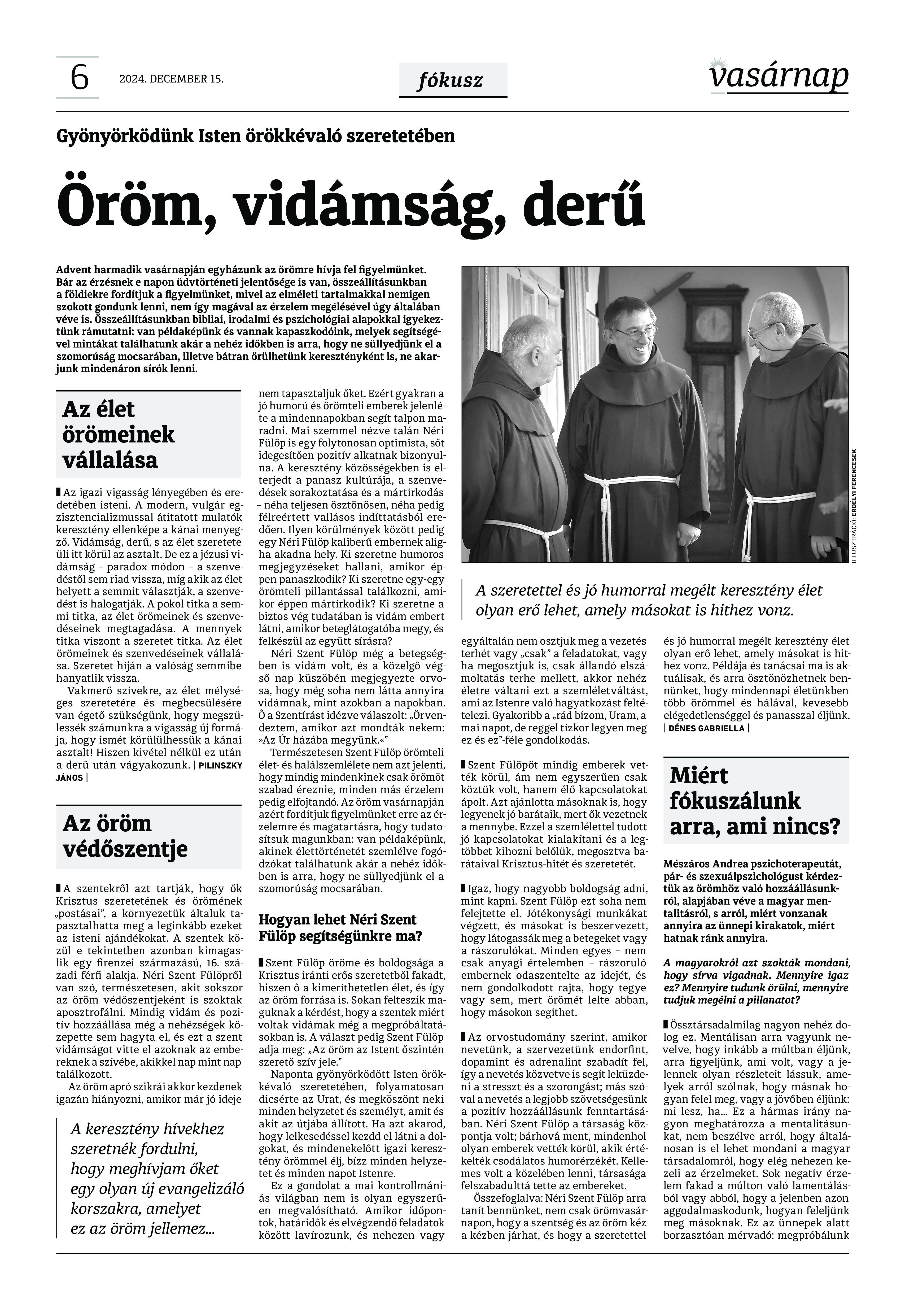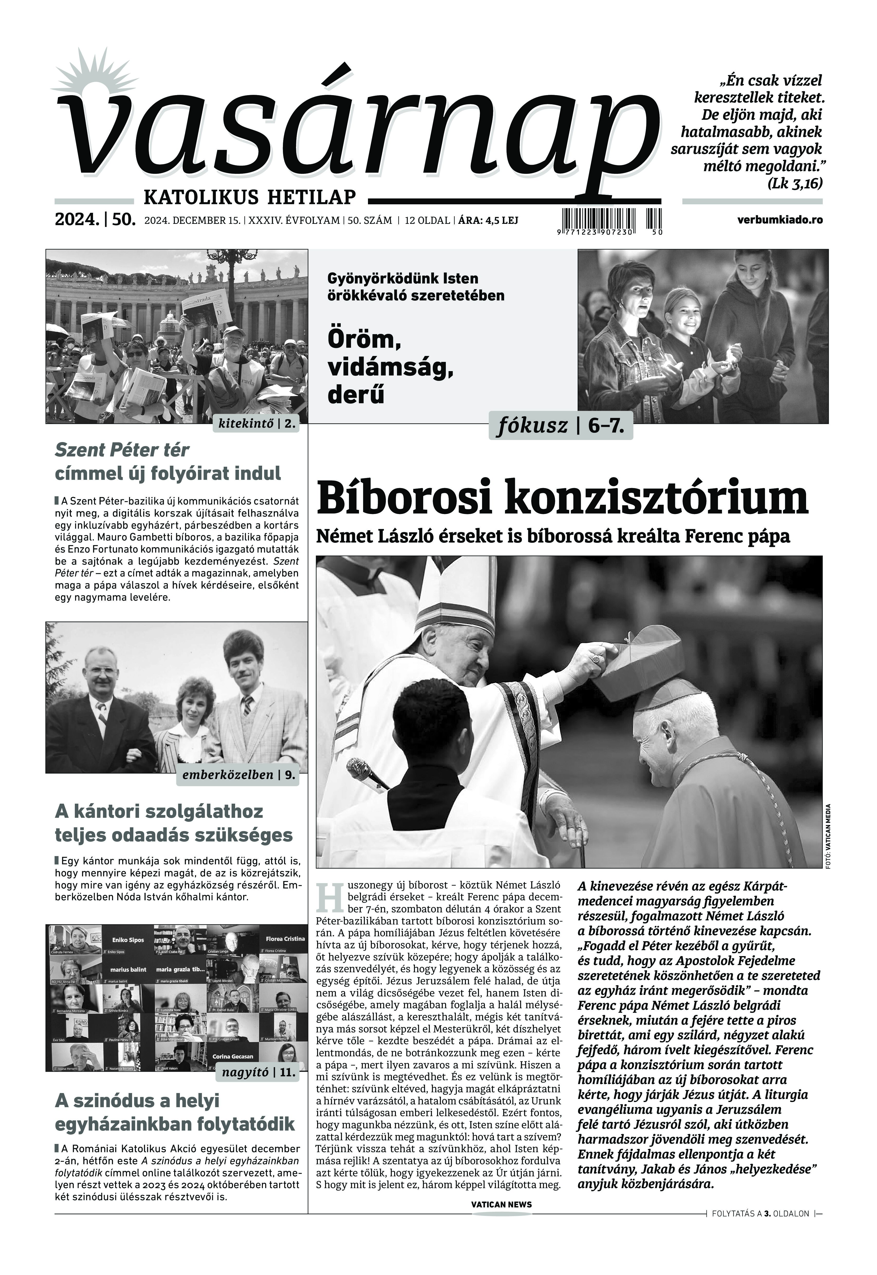 VASÁRNAP - 2024. december 15. A Vasárnap Katolikus Hetilap 2024. december 15. / XXXIV évf. / 50. számának digitális változata. 1 / 12 2 & 3 / 12 4 & 5 / 12 6 & 7 / 12 8 & 9 / 12 10 & 11 / 12 12 / 12