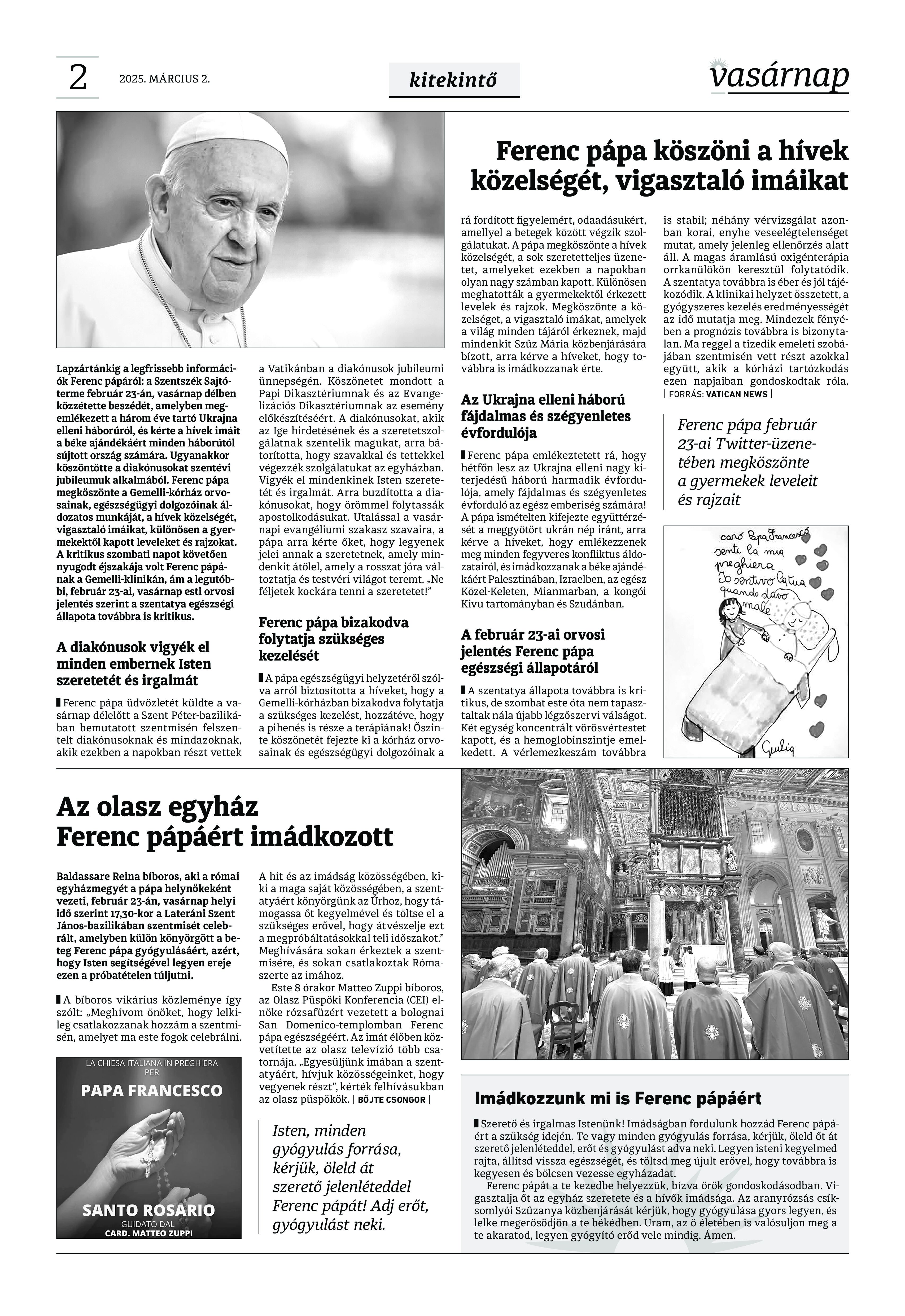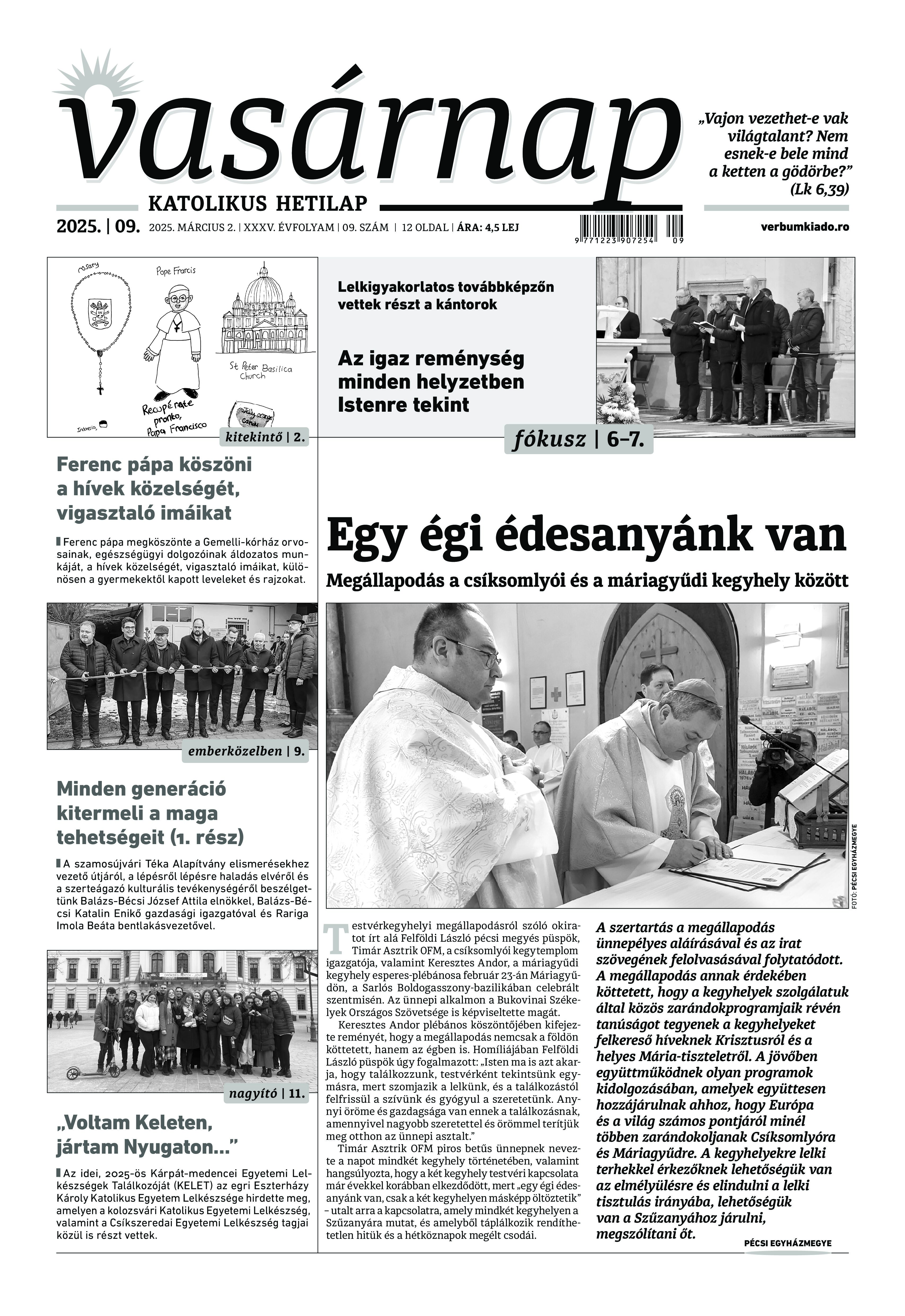 A Vasárnap Katolikus Hetilap 2025. március 2. / XXXV évf. / 9. számának digitális változata.